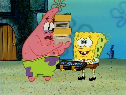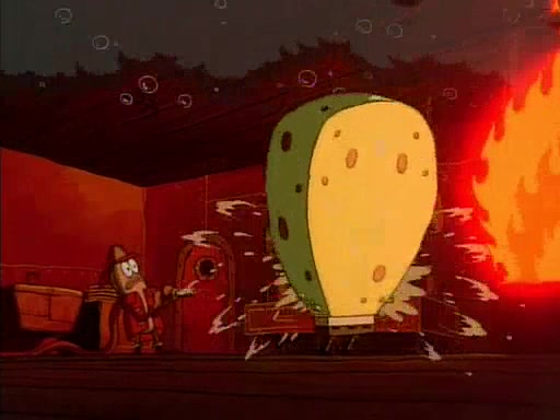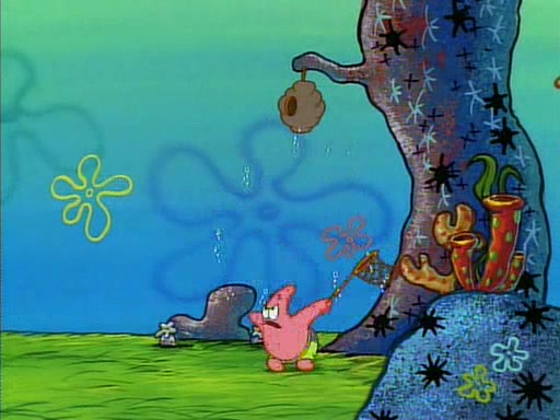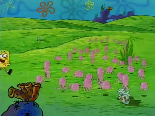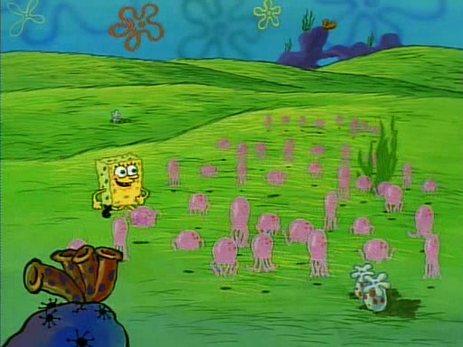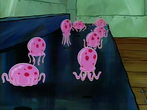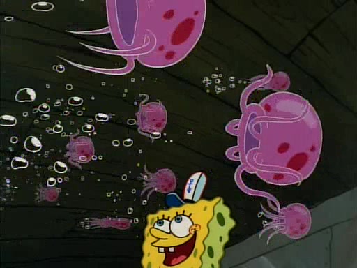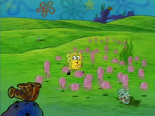 At the Krusty Krab, SpongeBob daydreams of living with the jellyfish in Jellyfish Fields. He accidentally starts a fire, and a fireman runs in and turns on the hose. SpongeBob though is in the way, thus fills up with the water and falls on the fire, putting it out. Mr. Krabs asks SpongeBob why he was not concentrating, and SpongeBob explains that he wishes to live in the wild. He moves to Jellyfish Fields, and gives Patrick mayonnaise, old phone books, and his special jellyfishing net, "Ol' Reliable."