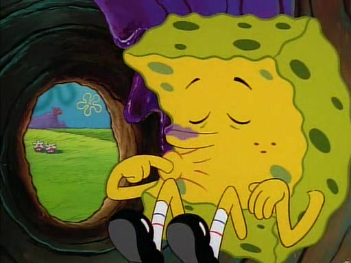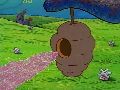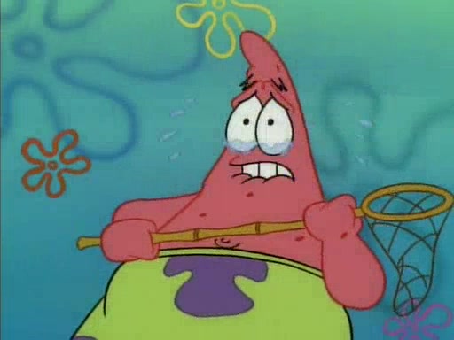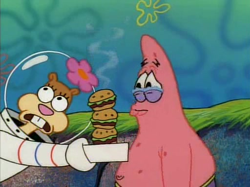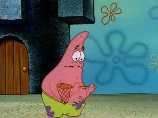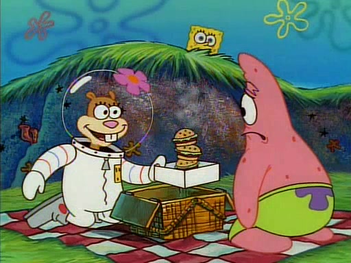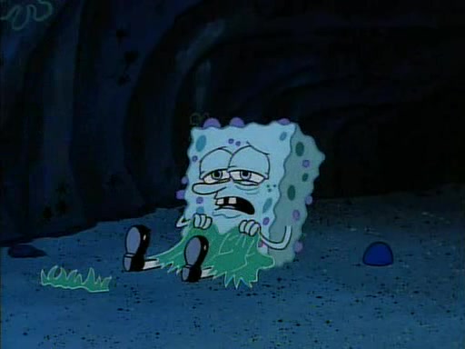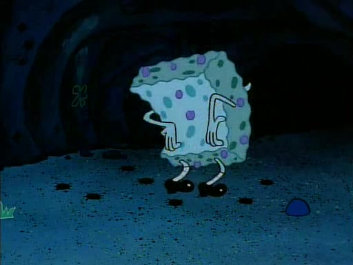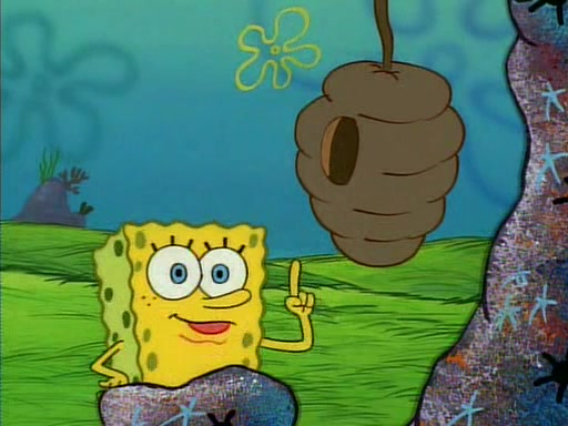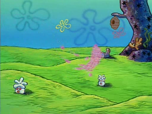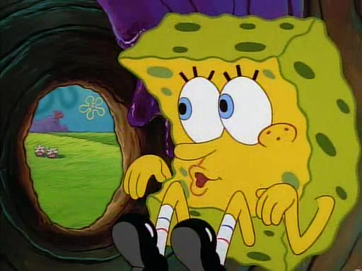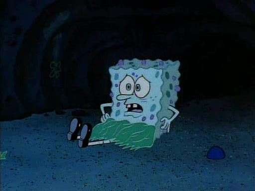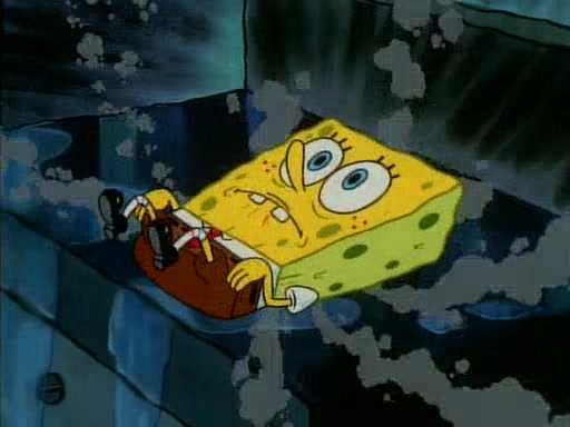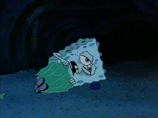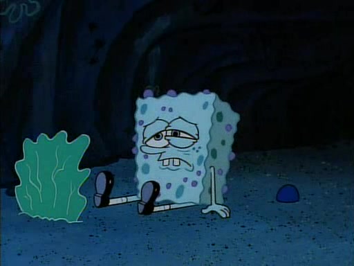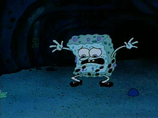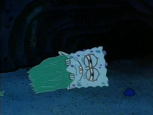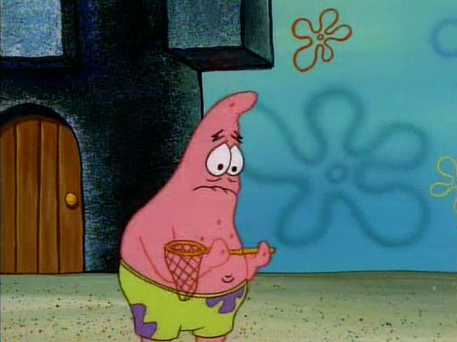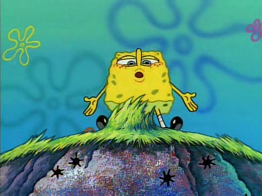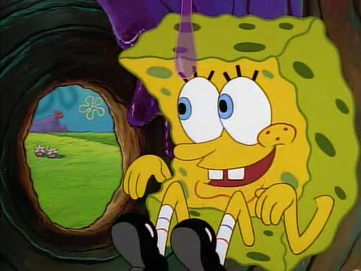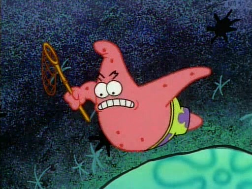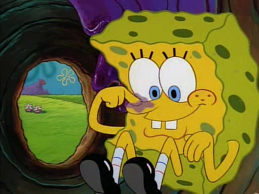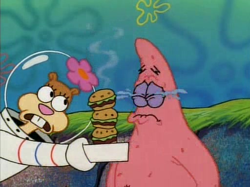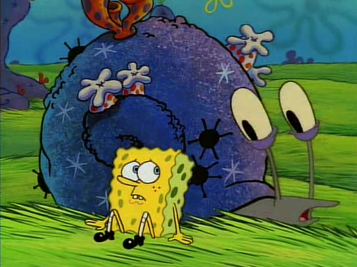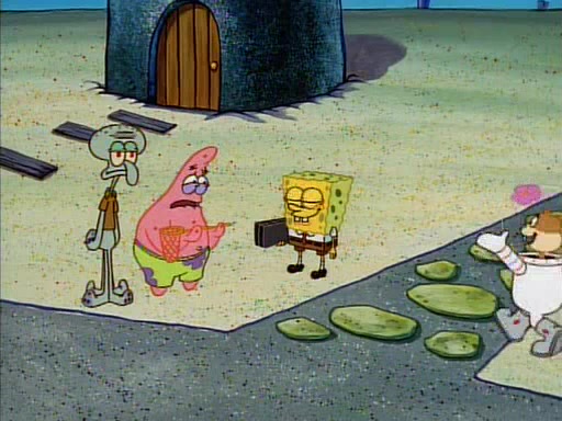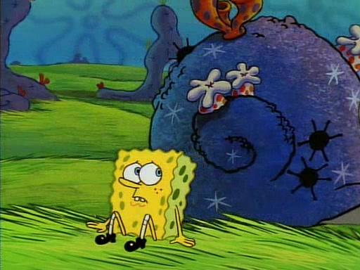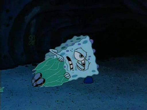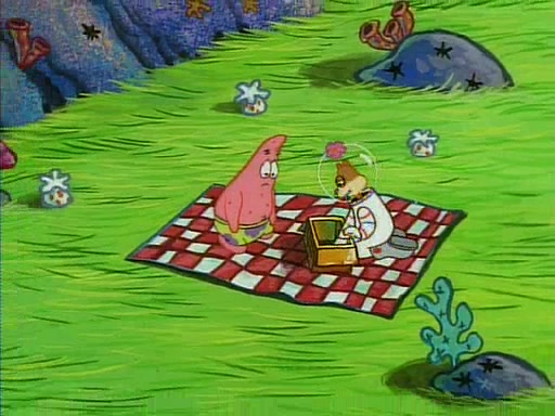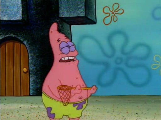 He even takes off everything he's wearing, except his shoes. SpongeBob tries to fit in with the jellyfish, but he just can't get the hang of it. Meanwhile, Patrick and Sandy have a set-up picnic to try to trick SpongeBob into coming back. They eat Krabby Patties, as an attempt to bribe SpongeBob, but he resists. A crazed and heartbroken Patrick then tries to catch him with Ol' Reliable while jellyfishing, but fails when SpongeBob jumps into the jellyfish hive, where he takes to eating the jelly inside. Upon the swarm's return, SpongeBob greets them in a friendly manner, but is then repeatedly stung and chased into a cave by them. Disheartened, but not giving up yet, SpongeBob tries to sleep in a cave, using a fern as a blanket, but ultimately ends up getting covered in poison sea urchins.
