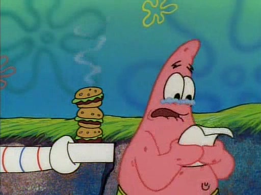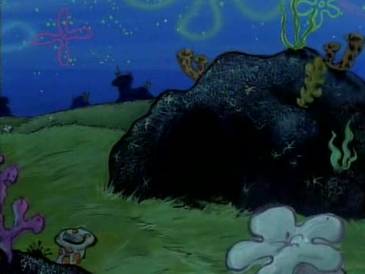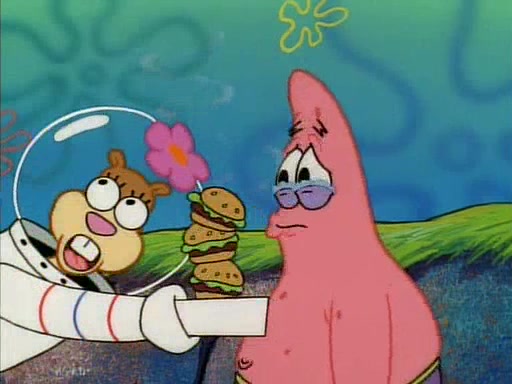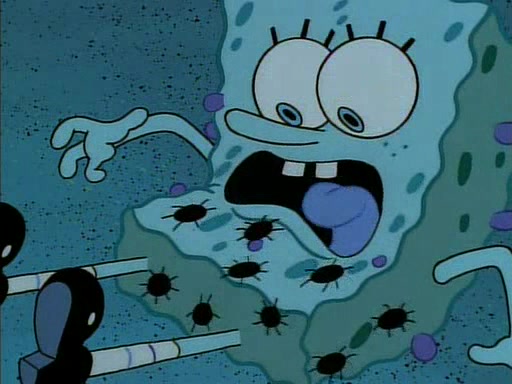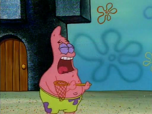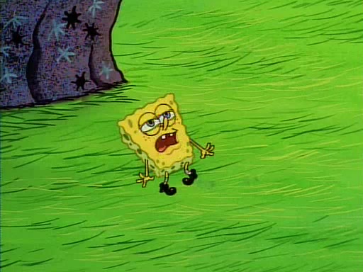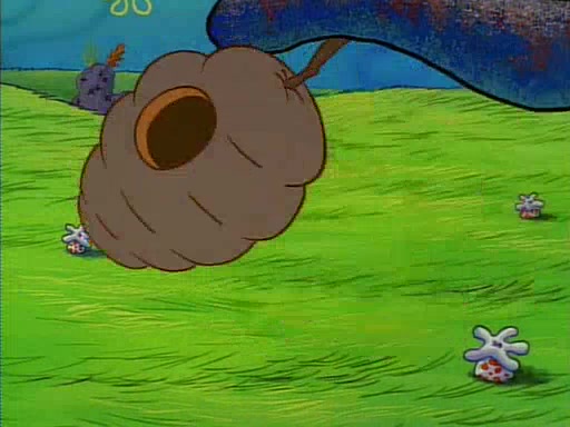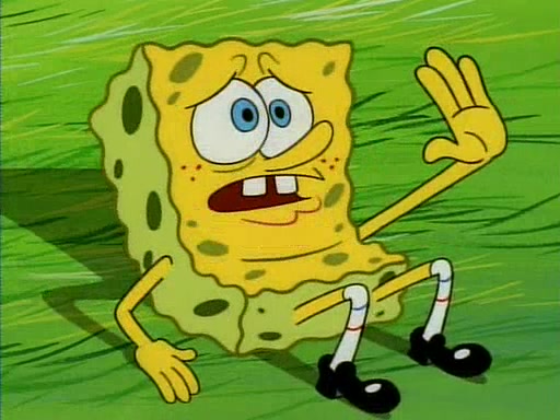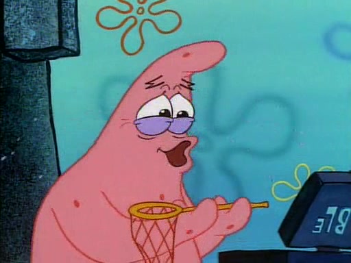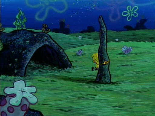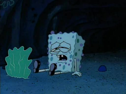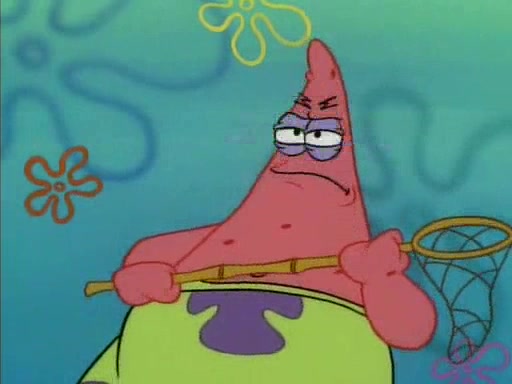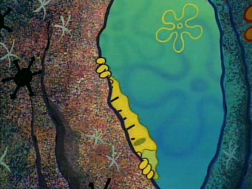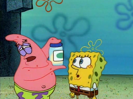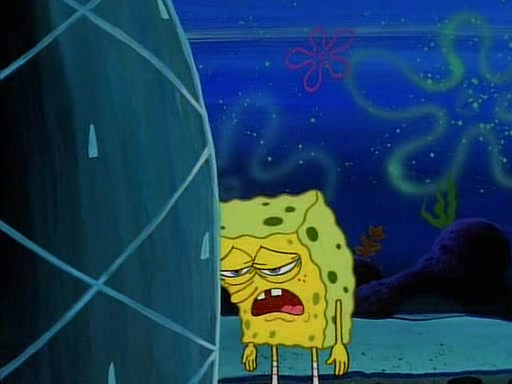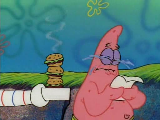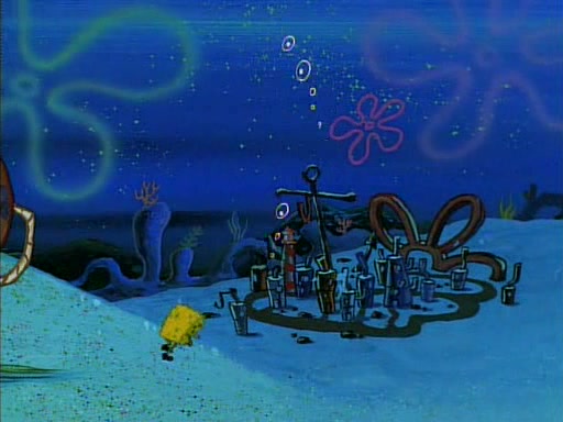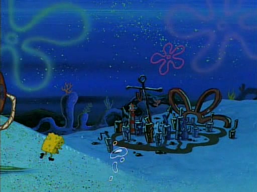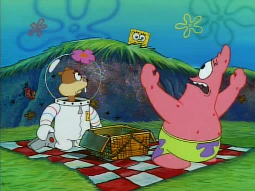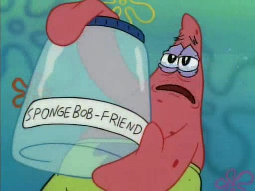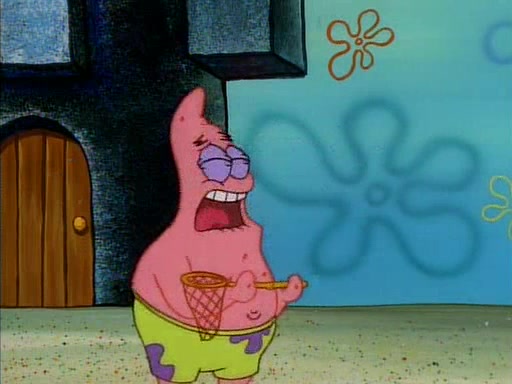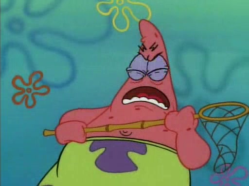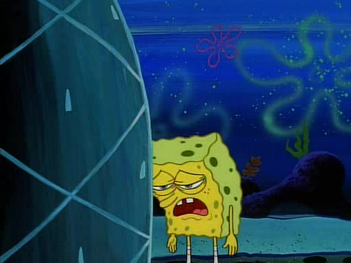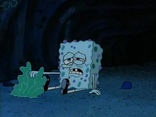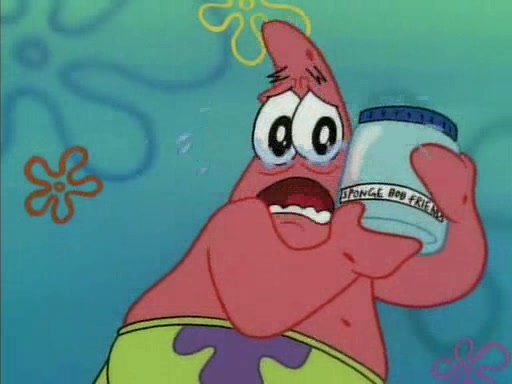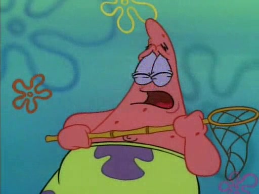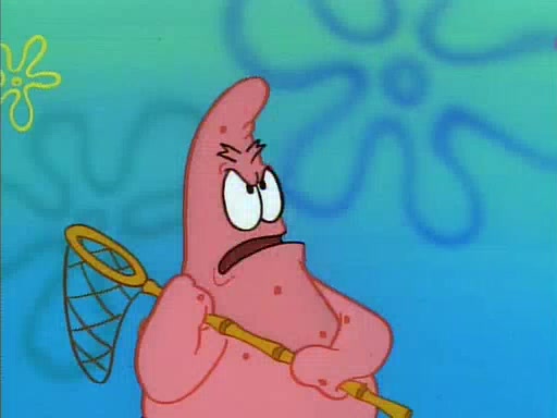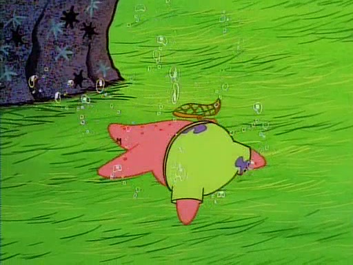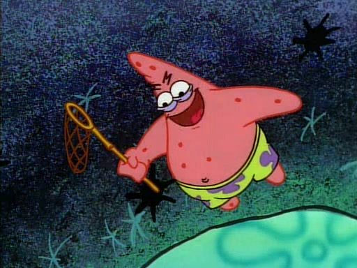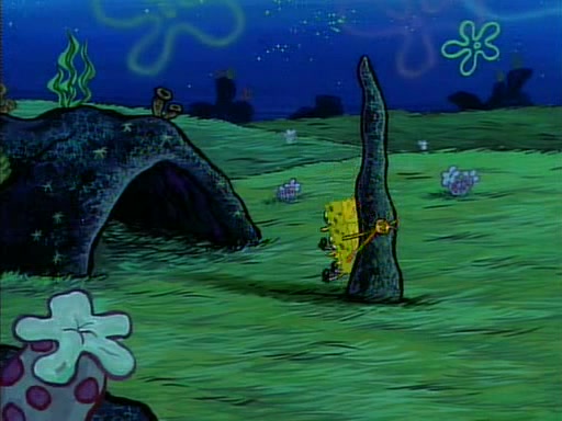 He even takes off everything he's wearing, except his shoes. SpongeBob tries to fit in with the jellyfish, but he just can't get the hang of it. Meanwhile, Patrick and Sandy have a set-up picnic to try to trick SpongeBob into coming back. They eat Krabby Patties, as an attempt to bribe SpongeBob, but he resists. A crazed and heartbroken Patrick then tries to catch him with Ol' Reliable while jellyfishing, but fails when SpongeBob jumps into the jellyfish hive, where he takes to eating the jelly inside. Upon the swarm's return, SpongeBob greets them in a friendly manner, but is then repeatedly stung and chased into a cave by them. Disheartened, but not giving up yet, SpongeBob tries to sleep in a cave, using a fern as a blanket, but ultimately ends up getting covered in poison sea urchins.