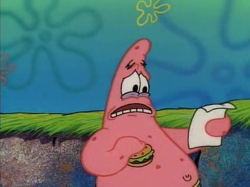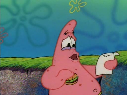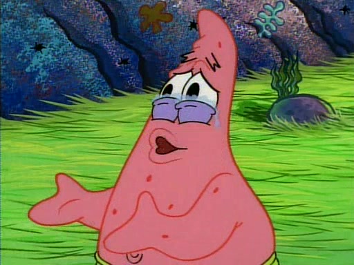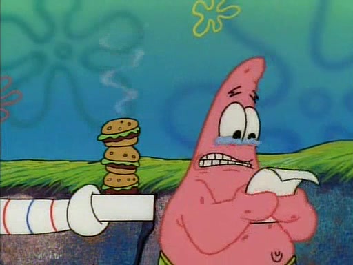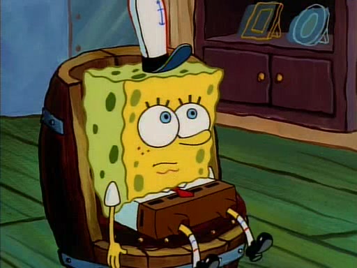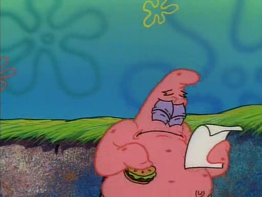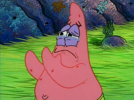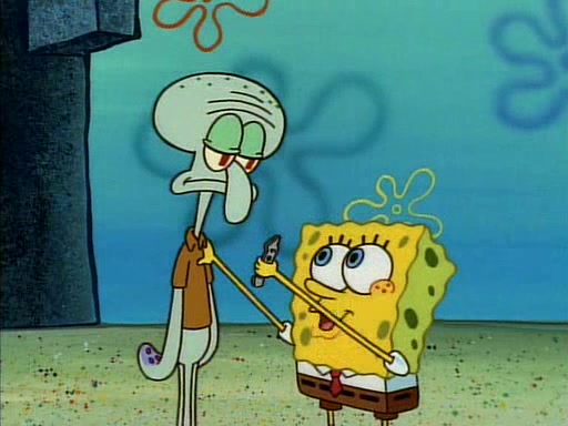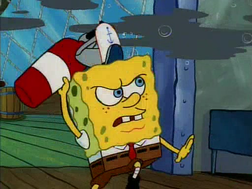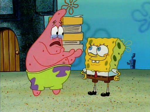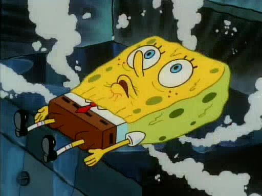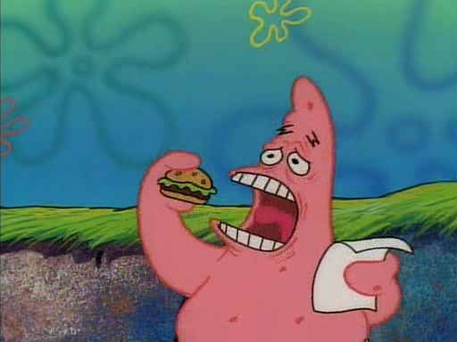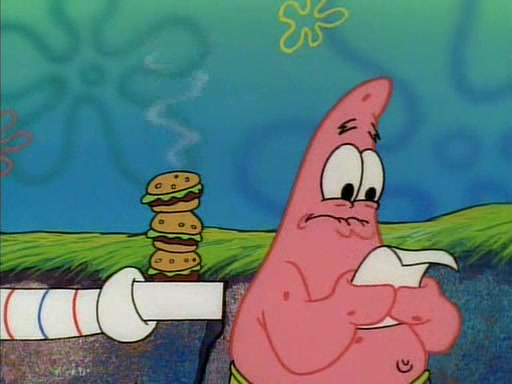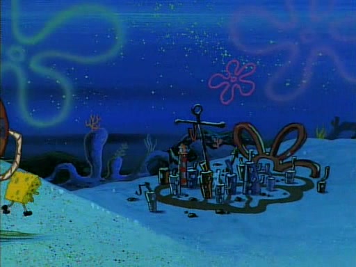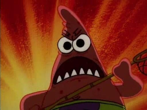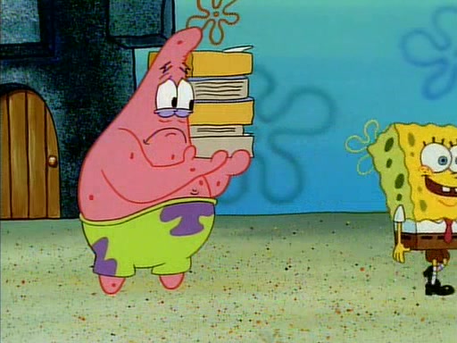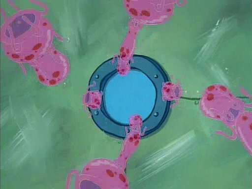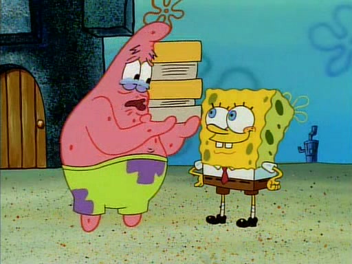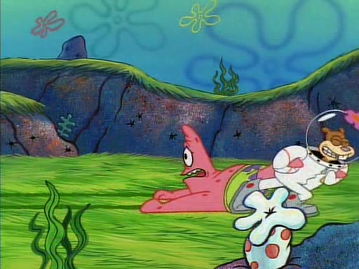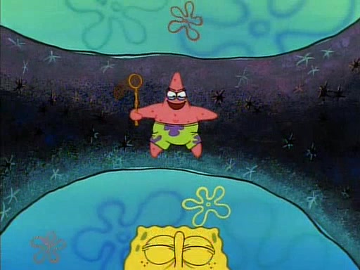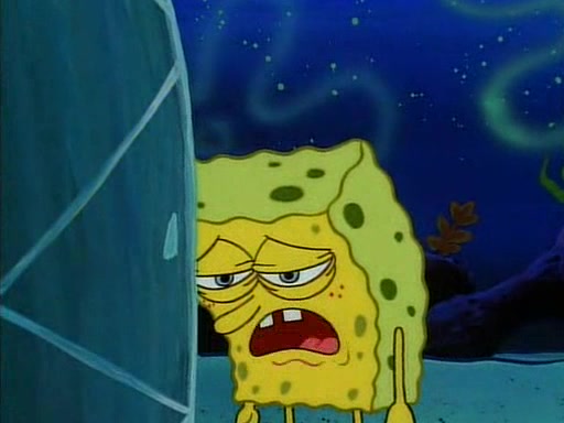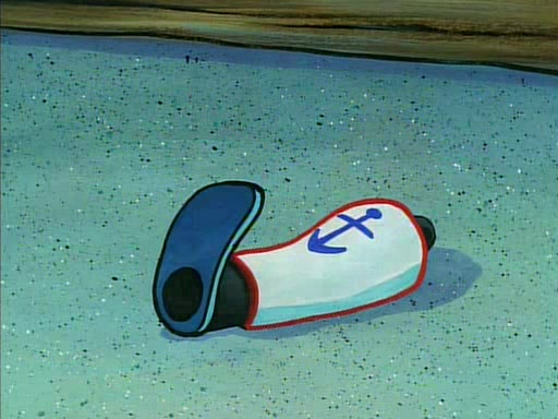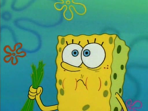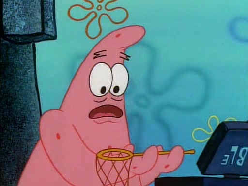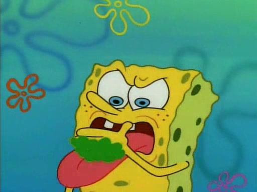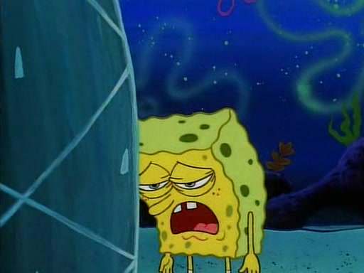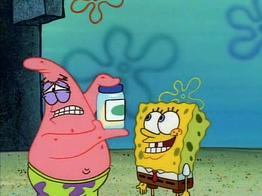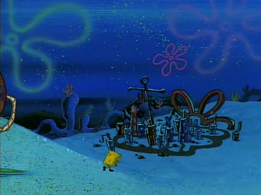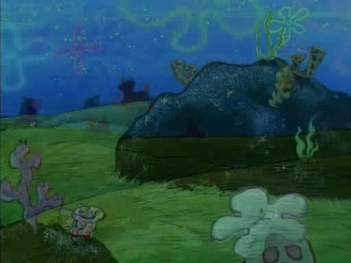 He even takes off everything he's wearing, except his shoes. SpongeBob tries to fit in with the jellyfish, but he just can't get the hang of it. Meanwhile, Patrick and Sandy have a set-up picnic to try to trick SpongeBob into coming back. They eat Krabby Patties, as an attempt to bribe SpongeBob, but he resists. A crazed and heartbroken Patrick then tries to catch him with Ol' Reliable while jellyfishing, but fails when SpongeBob jumps into the jellyfish hive, where he takes to eating the jelly inside. Upon the swarm's return, SpongeBob greets them in a friendly manner, but is then repeatedly stung and chased into a cave by them. Disheartened, but not giving up yet, SpongeBob tries to sleep in a cave, using a fern as a blanket, but ultimately ends up getting covered in poison sea urchins.