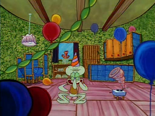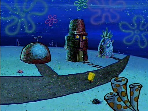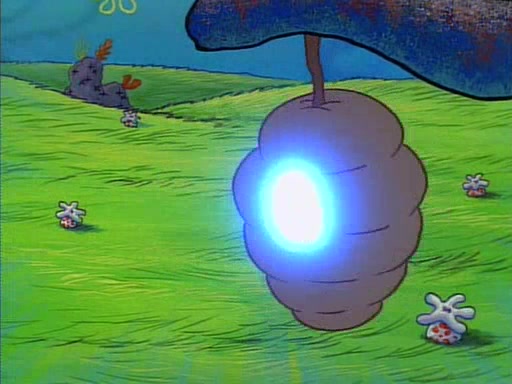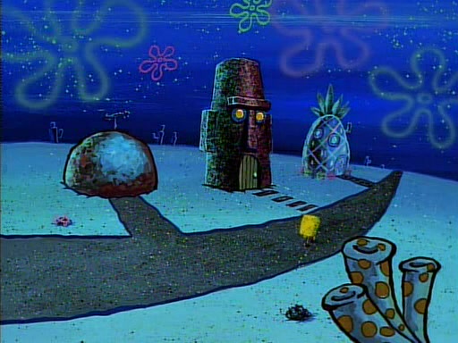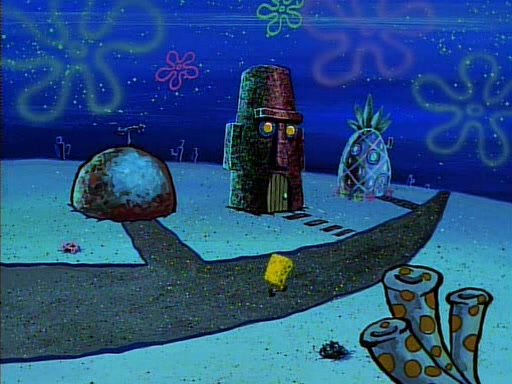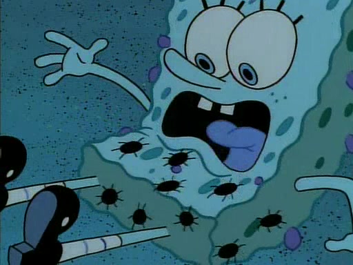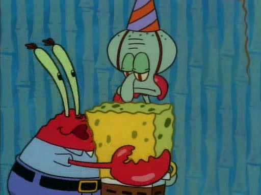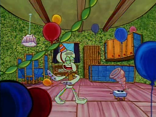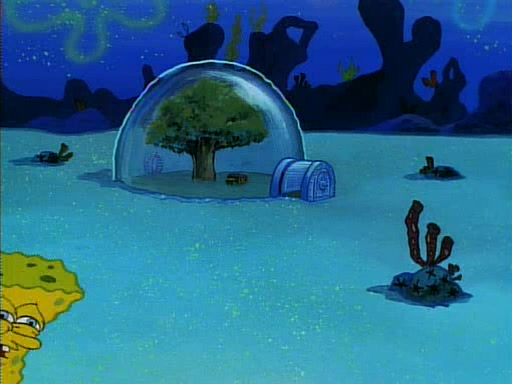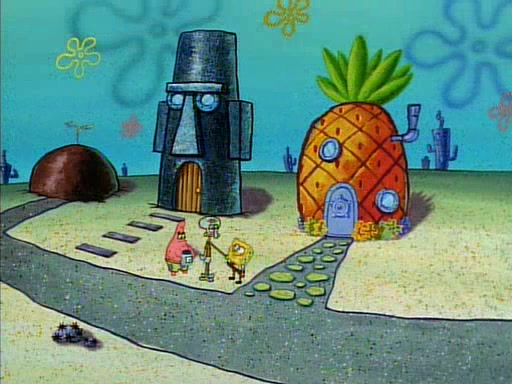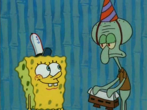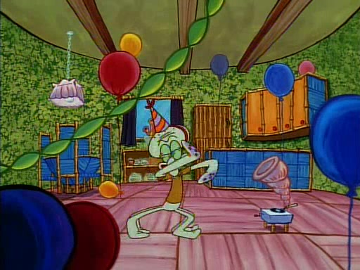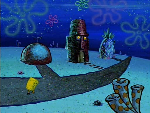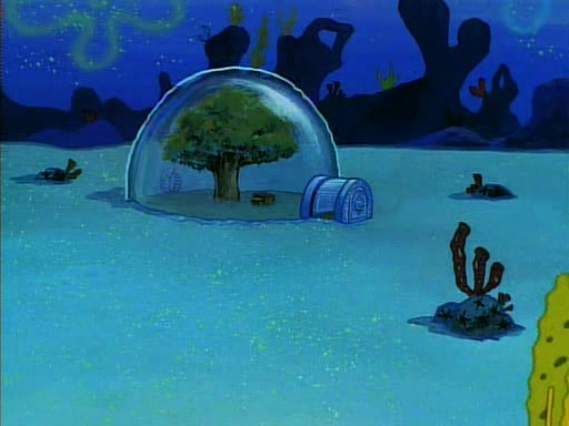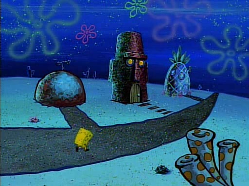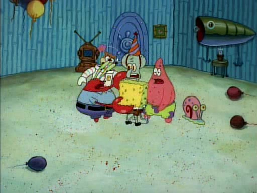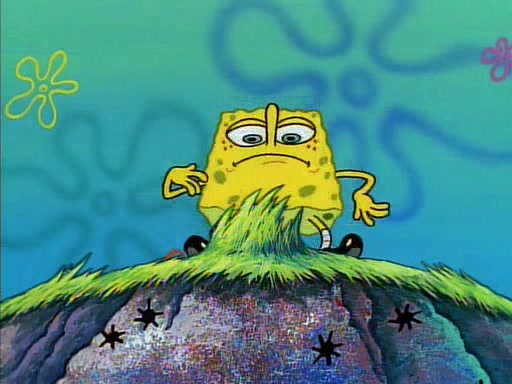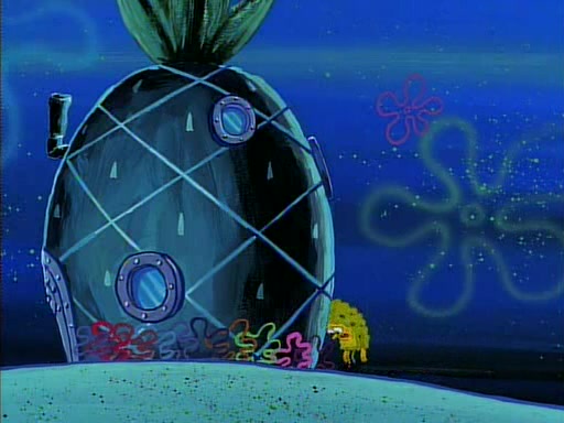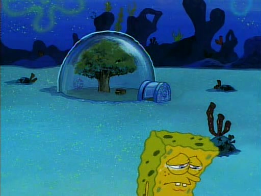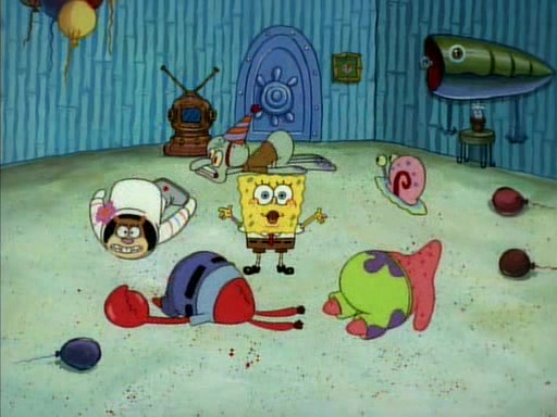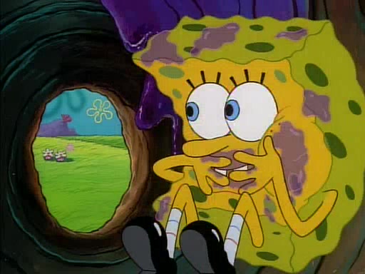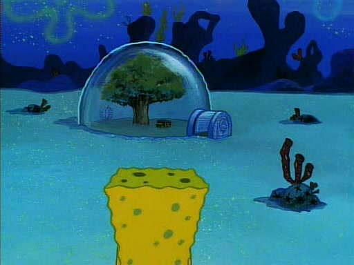Finally deciding that the wild isn't as good as he thought, SpongeBob returns to Bikini Bottom and, after seeing Sandy's Treedome and the Krusty Krab, realizes his mistake; he had a great life and friends, and gave it all up. Upon his return to the pineapple, he is greeted with a massive "Welcome Home" party, the others apparently having been expecting him. All is forgiven, SpongeBob puts his clothes back on as a favour to Squidward, and everyone group-hugs. However, the poison sea urchin bacteria spreads, and everyone except SpongeBob becomes itchy.
