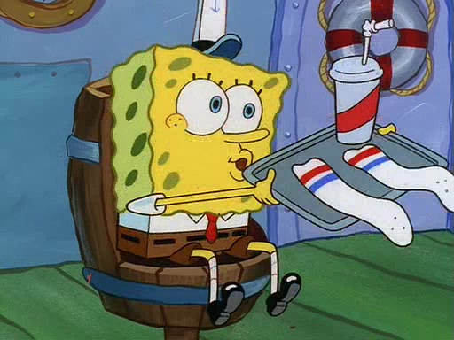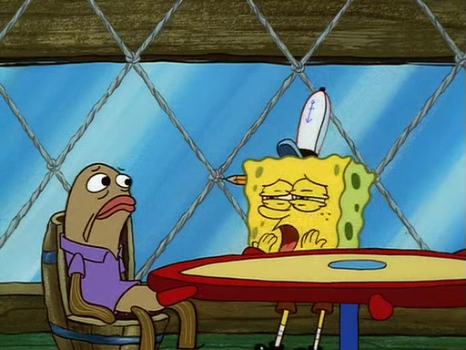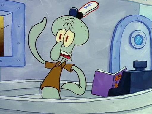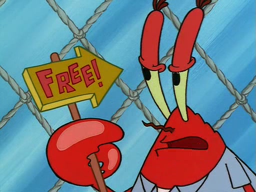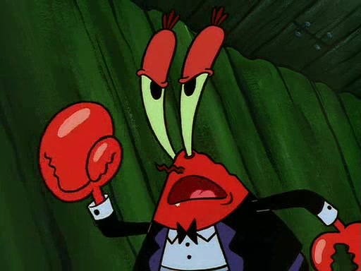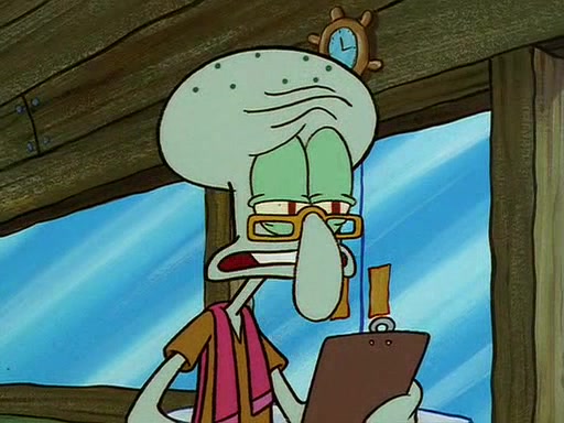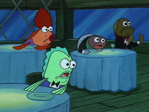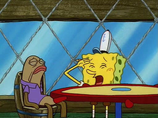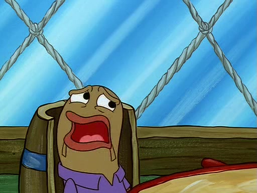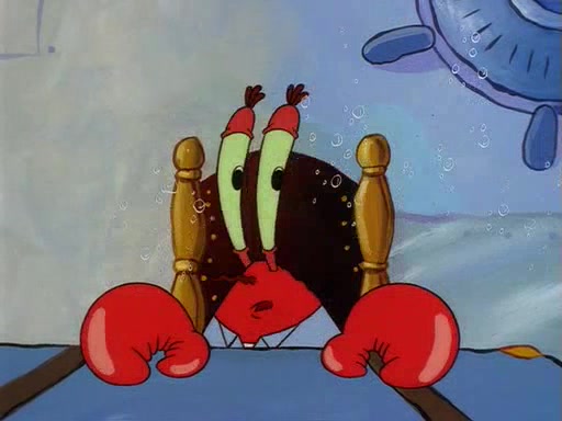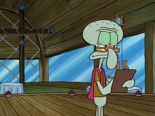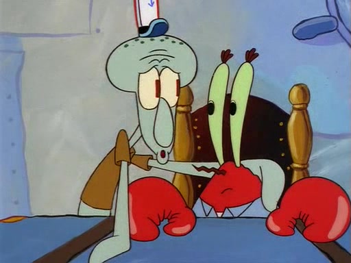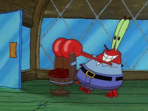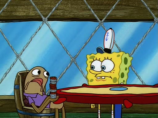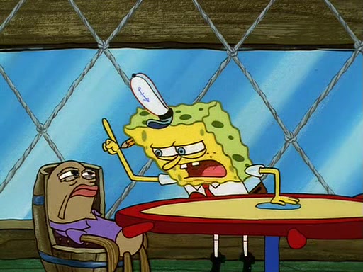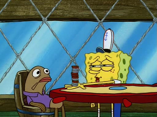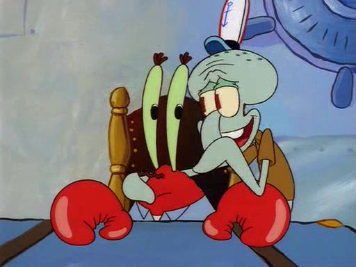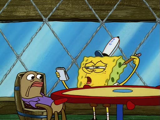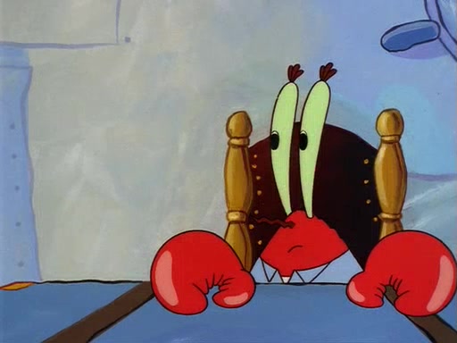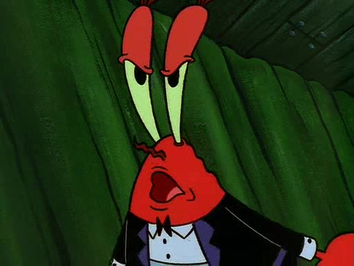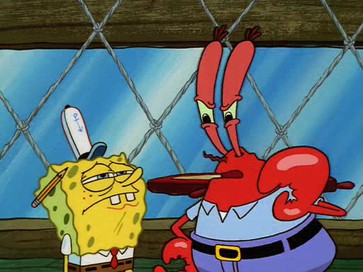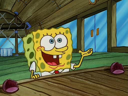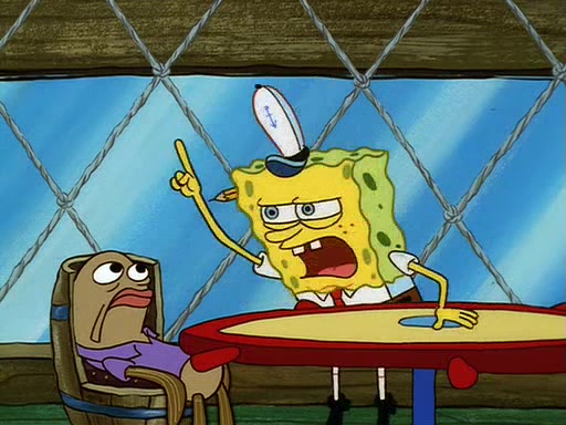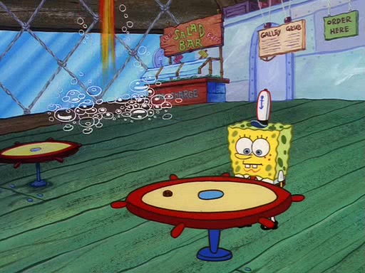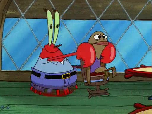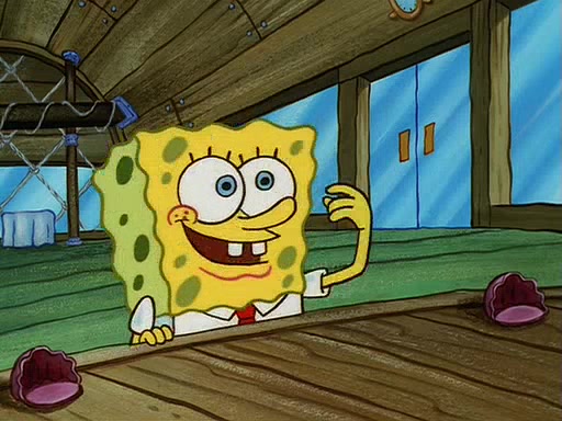 As Mr. Krabs stores the penny away into his vault, he gives his two employees the bad news: Profits are way down this month, and they need a gimmick to bring in customers. Asking for ideas results in apathy from Squidward and increasingly absurd ideas from SpongeBob (including a free pair of socks with each purchase, "Double Patty Midnight Madness", and giving a free drink to the customer who comes in with a mouthful of clams). After Mr. Krabs points out that he was thinking along the lines of "live entertainment", Squidward hits a brainstorm: the first Krusty Krab Talent Show, with him as the host!