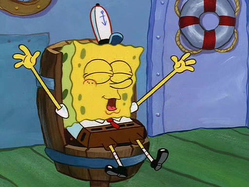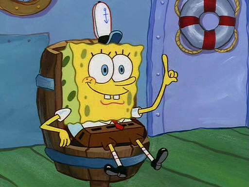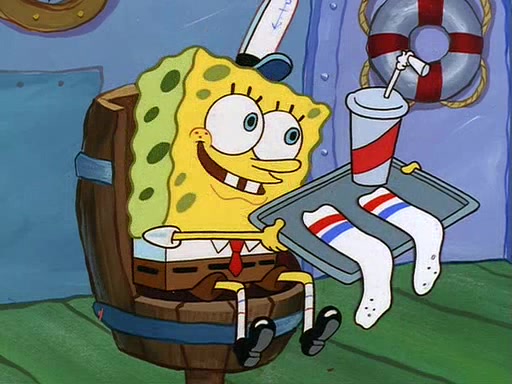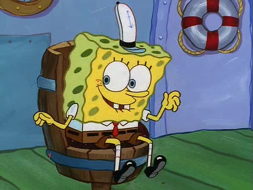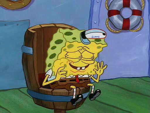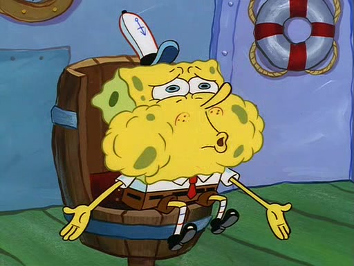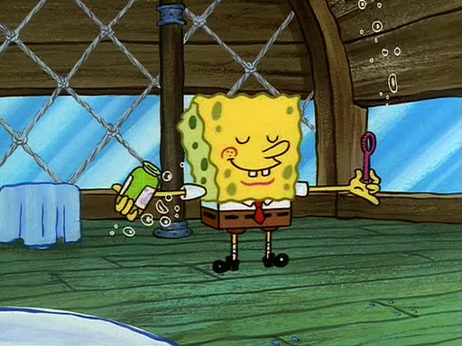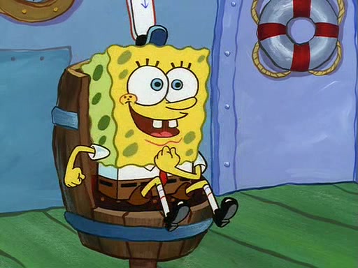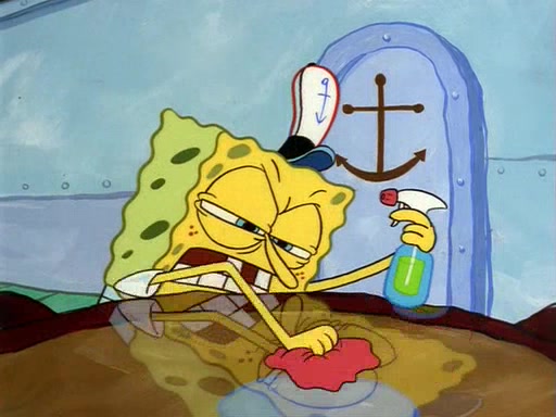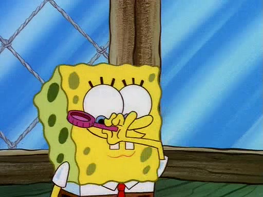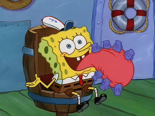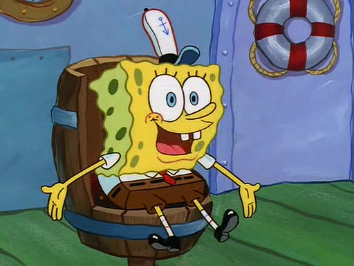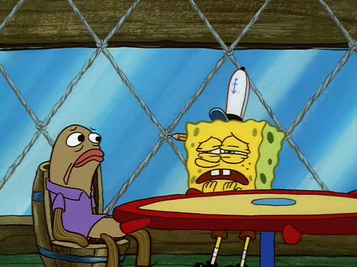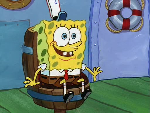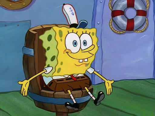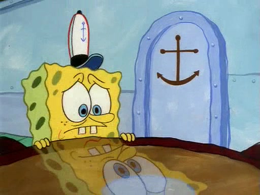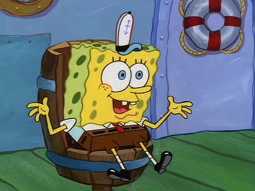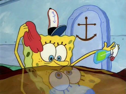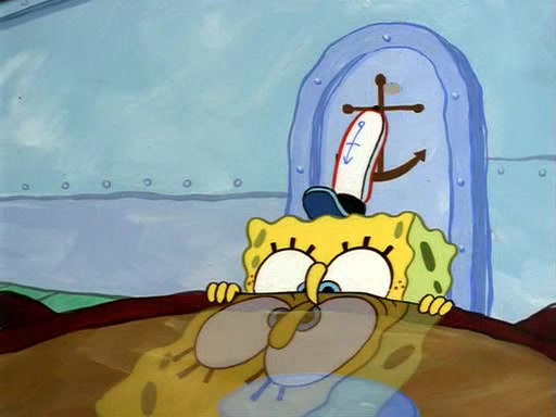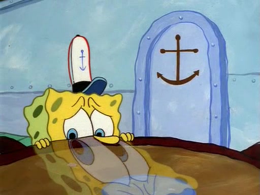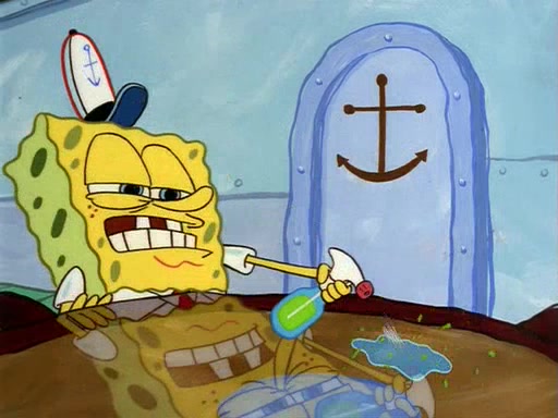 It's now night-time, and the Krusty Krab is packed; even Patrick has come along with SpongeBob's parents, who Mr. Krabs introduces himself to ("Hello! I'm Mr Krabs, and I like money!"). In the backstage, Squidward makes it very clear to everyone else that this is HIS chance to reach stardom, but is interrupted by SpongeBob's newest act: inflating himself with water and showing off his sponge traits. Squidward once again shoots him down, not wanting SpongeBob to ruin his chances at stardom. SpongeBob tearfully begs Squidward to let him on the show, claiming he'll do anything, with the squid relegating him to clean up duty after the show is done. SpongeBob, not realizing this, takes his new "act" with great enthusiasm.
