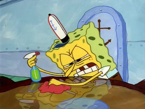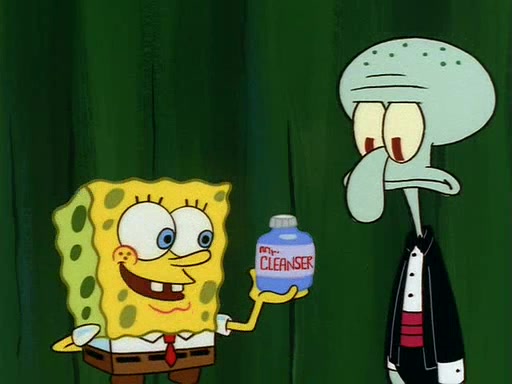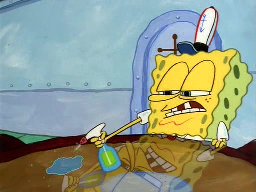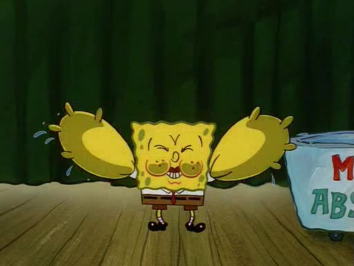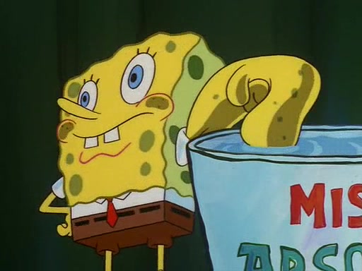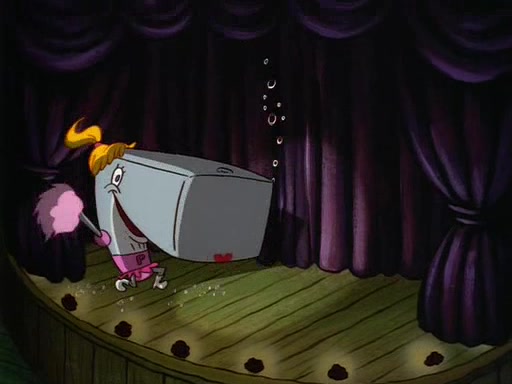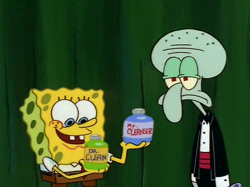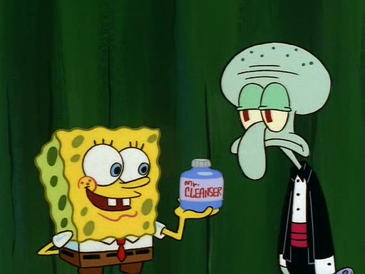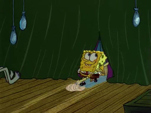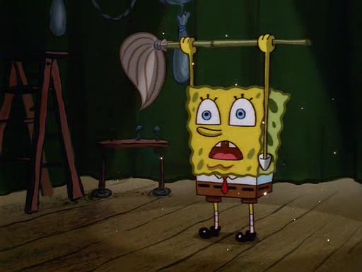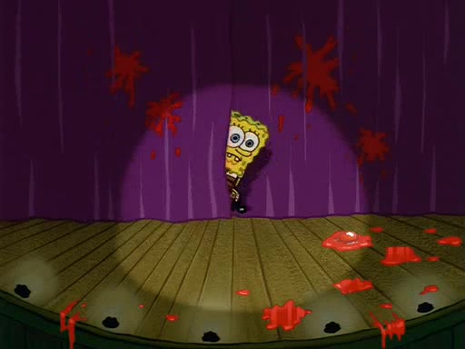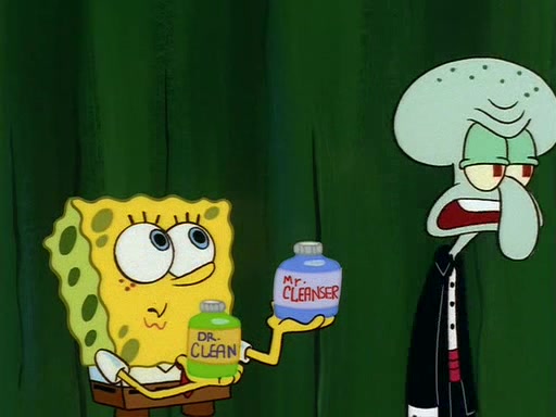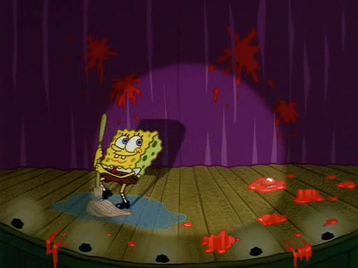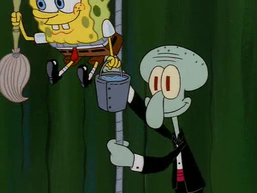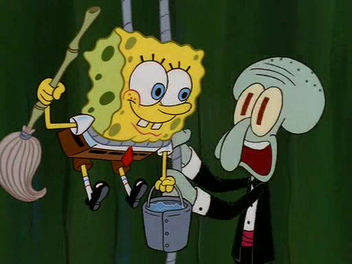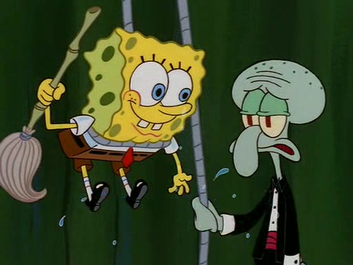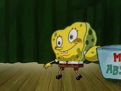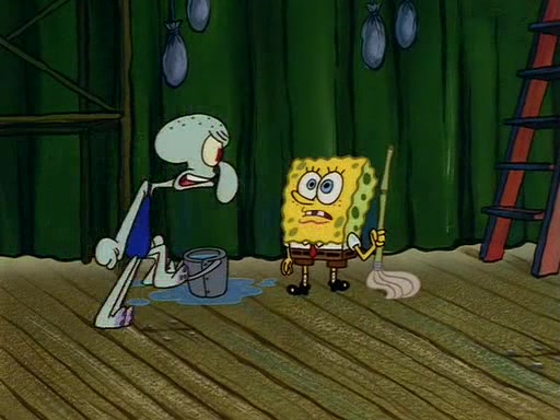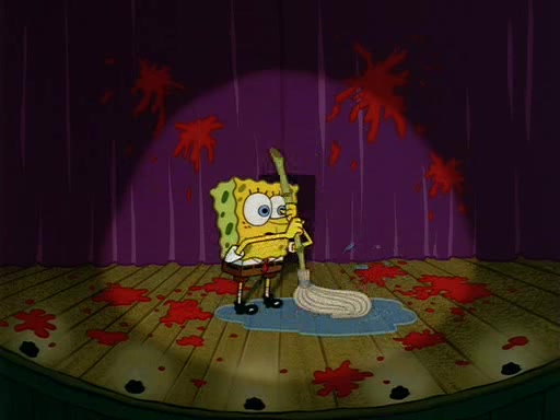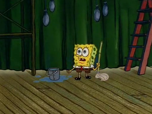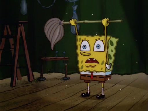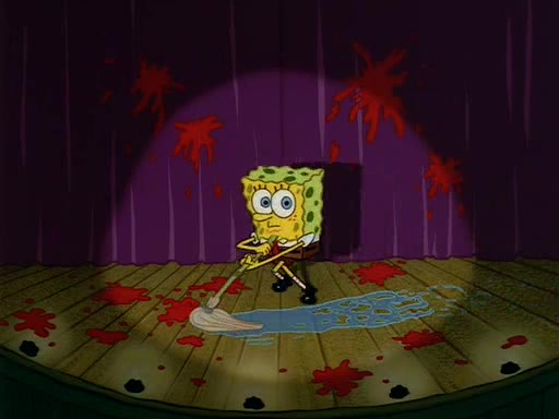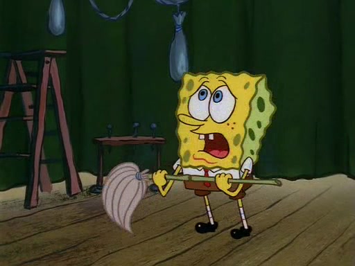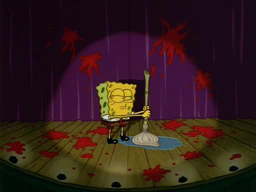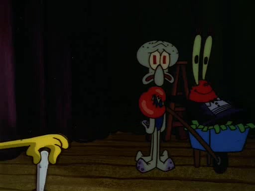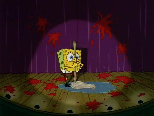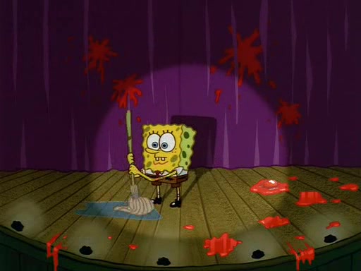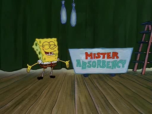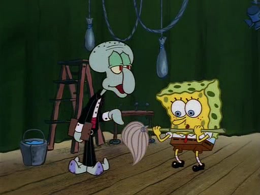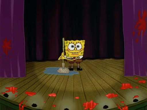 SpongeBob gets to work cleaning the stage, only to receive an unexpected surprise: the audience likes his act! Squidward thinks the audience has changed their mind about him, and charges onstage as SpongeBob leaves...only to be met with silence. He storms off again, and SpongeBob continues cleaning to great applause. Squidward charges in and is once again met by silence. However, he begins to realize that SpongeBob seems to be tied to the audience's sudden change in behavior, and tries several times to get the audience to cheer for him by doing SpongeBob's act, only to be rejected. Squidward is forced to conclude that it's SpongeBob the audience is cheering for and watches from the sidelines. Squidward gets praised for his show, as well as making SpongeBob a star. Mr. Krabs, lying in a wheelbarrow full of money, says he'll need another one for next week's show; Squidward can only sigh and watch with envy as SpongeBob gets a standing ovation for his cleaning. It looks like Squidward did save the best for last; it just wasn't his act.