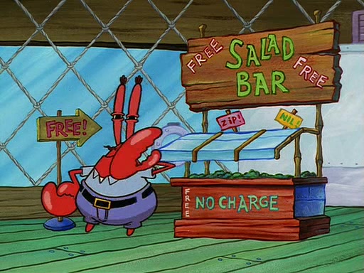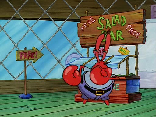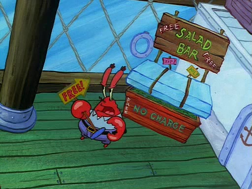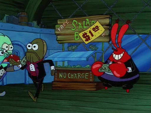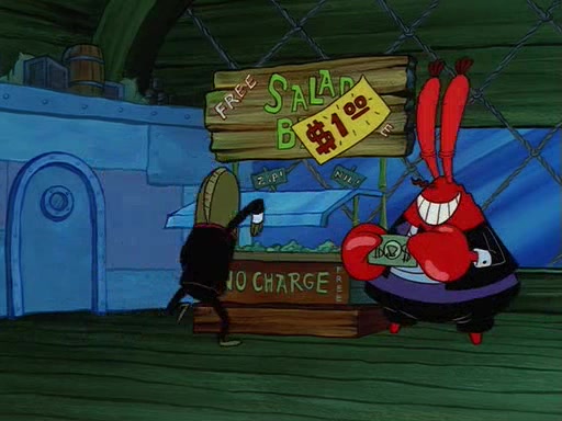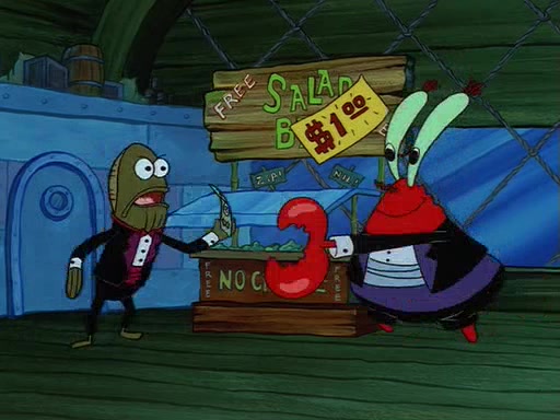 It's another day at the Krusty Krab, with Mr. Krabs manning a free salad bar, SpongeBob preoccupied with cleaning rogue dust particles off a table, and Squidward daydreaming about dancing. Mr. Krabs is getting irritated at the lack of customers, when one decides to comes in. Ecstatic at finally getting a customer, Mr. Krabs orders SpongeBob to cater to the fish's every whim. Unfortunately for them the fish was only looking to get change for a dollar, and is driven away by SpongeBob's excess enthusiasm, though not before leaving a penny behind for SpongeBob. However, Mr. Krabs catches wind of the penny and gets the drop on it first (literally).