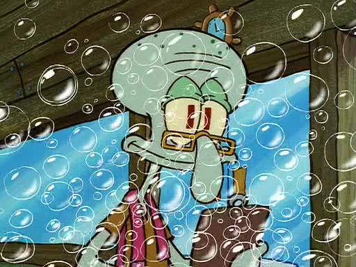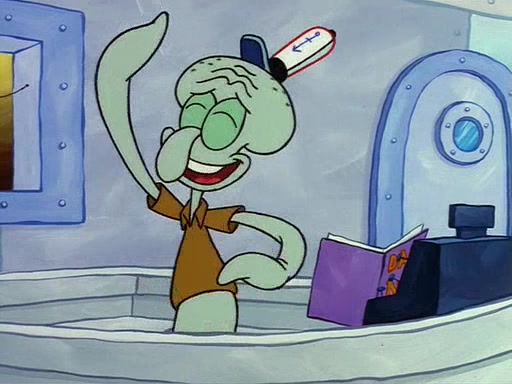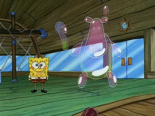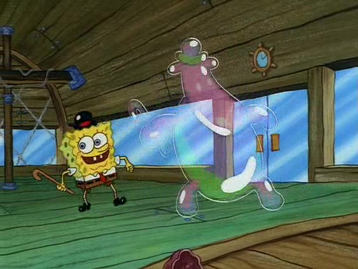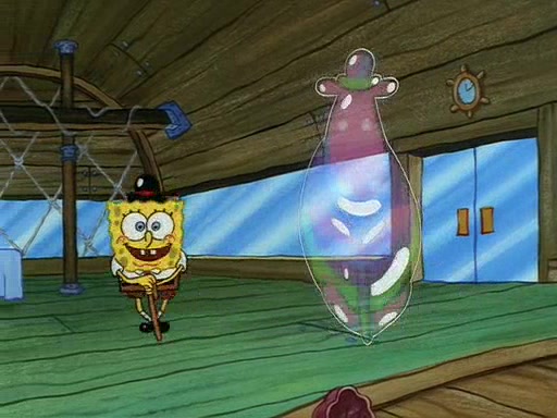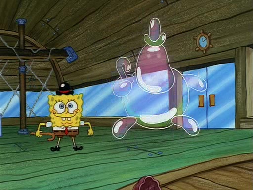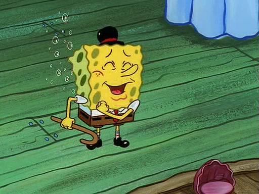 He nearly blurts out his intent to make himself into a star, but quickly corrects his faux-pas by claiming it would "bring culture to this cultural wasteland we call Bikini Bottom", and that it would bring in much needed revenue. Squidward draws in Mr. Krabs further by claiming that his whale daughter Pearl could become a star through this. SpongeBob is excited at the chance to show off his talents, and runs off to call his folks, while Mr. Krabs gives Squidward the go-ahead on the show. As the Krusty Krab gets set up for the upcoming show, SpongeBob asks Squidward when he's going to go on the show, even demonstrating his act (blowing a hippopotamus shaped bubble, then tap dancing along with it). Unfortunately the act does not impress Squidward, who claims it isn't "cultured" enough. SpongeBob runs off, vowing to come up with the most cultural act ever.