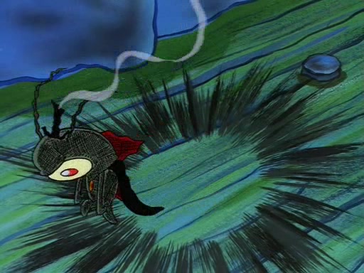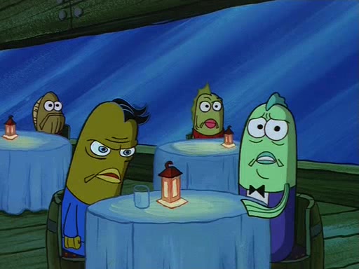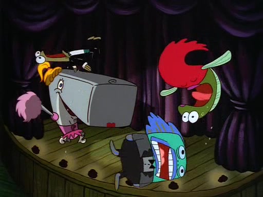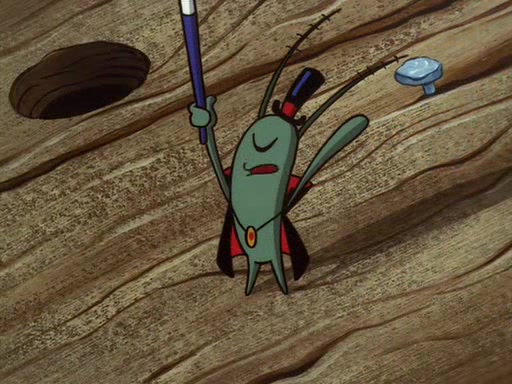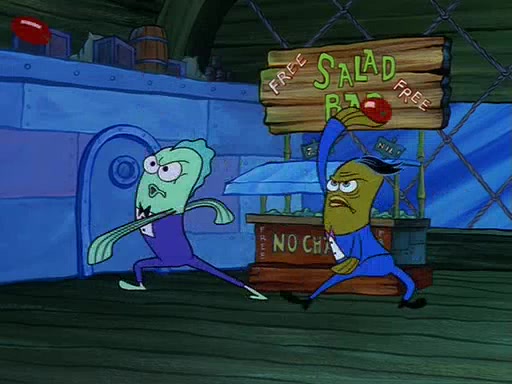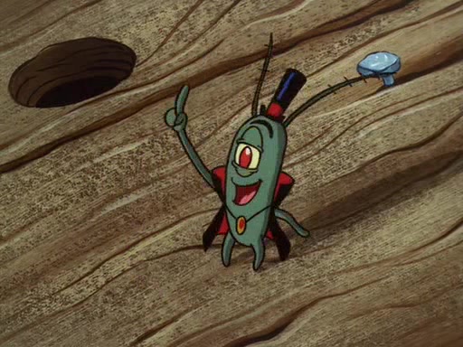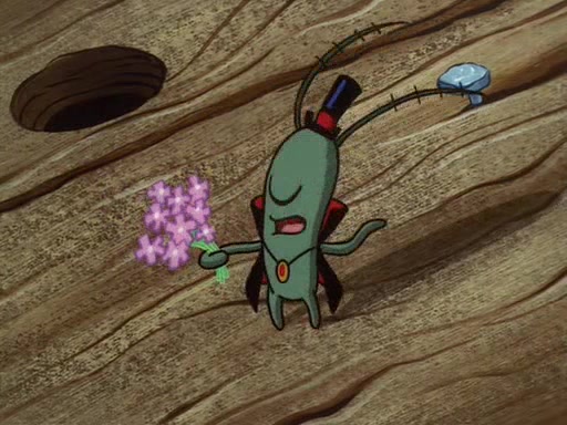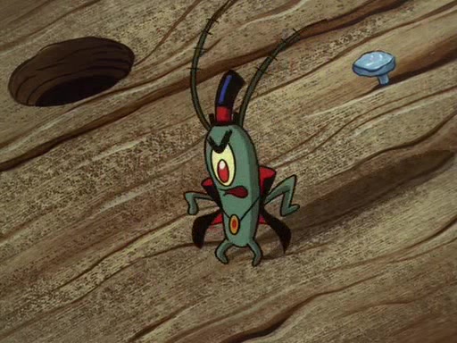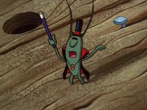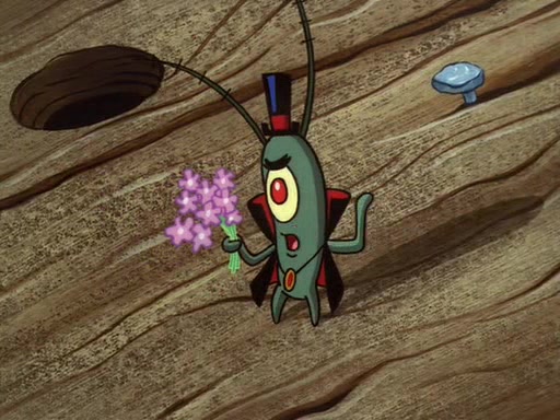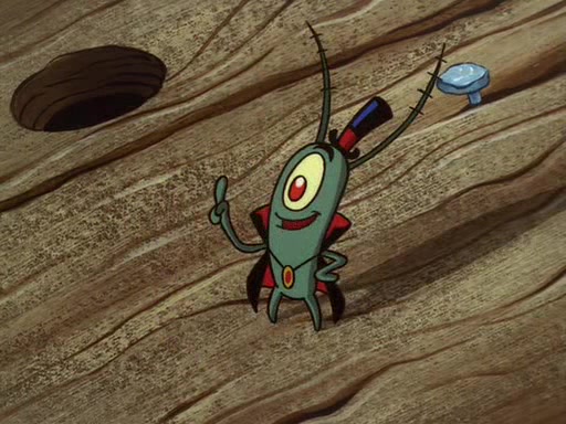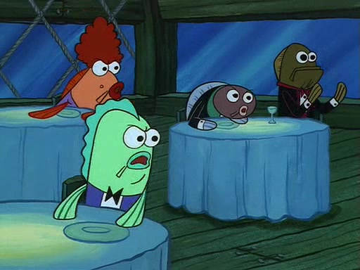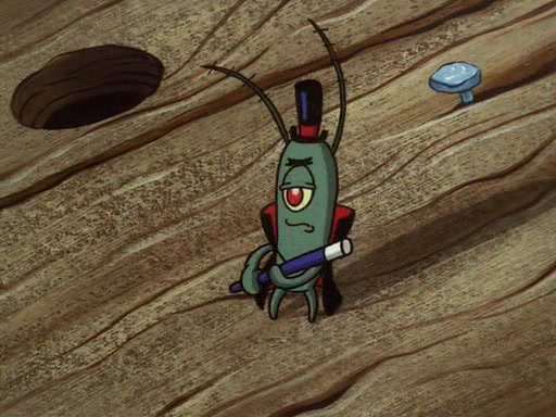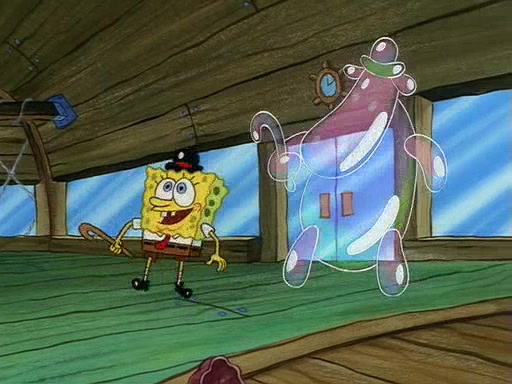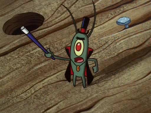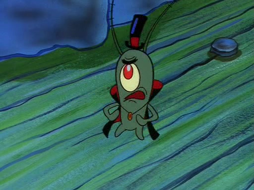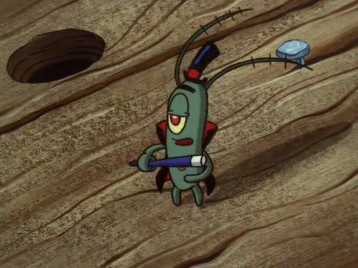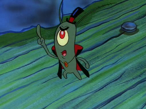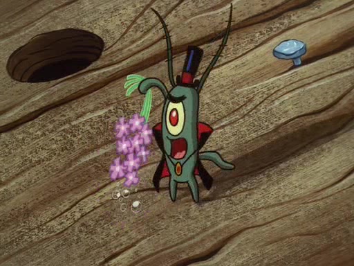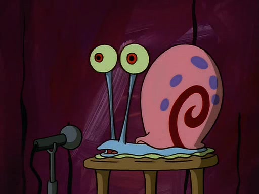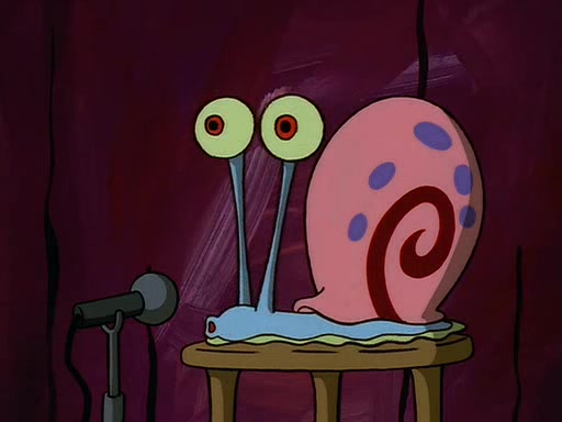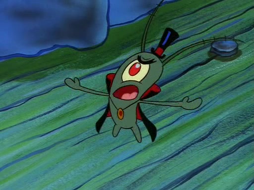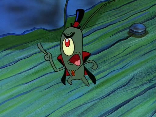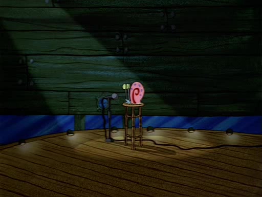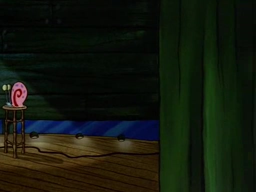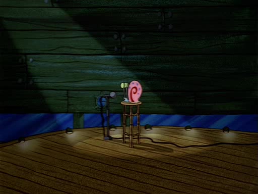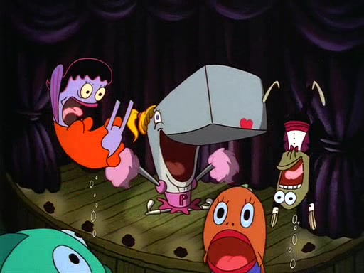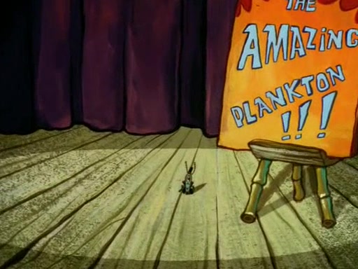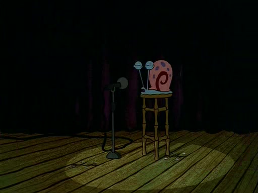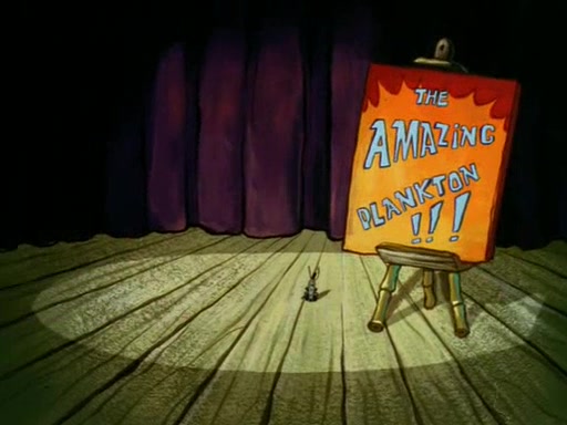 The next act is poetry by SpongeBob's pet snail Gary. However due to speaking in meows, only Sandy Cheeks is able to understand how good his poetry is. Squidward is getting antsy at this point, both from how much time Gary is taking with his act and from SpongeBob bothering him again. The third act is by Mr. Krabs' business rival Plankton as "The Amazing Plankton!!!", with him intending to make a Krabby Patty disappear before the audience's eyes. However, it's just another ploy to steal the Krabby Patty formula, one that Mr. Krabs stops and ends with Plankton blowing himself up.