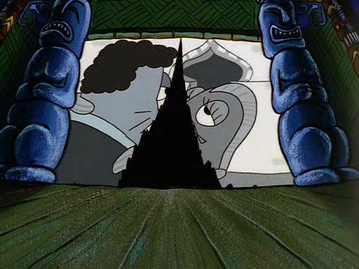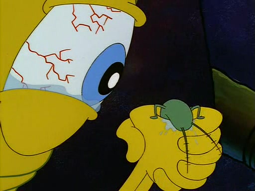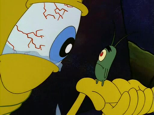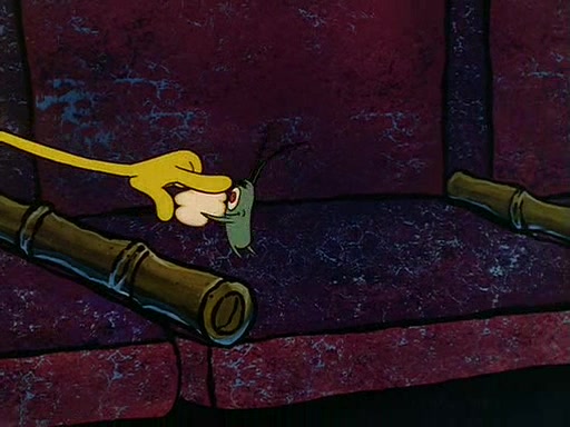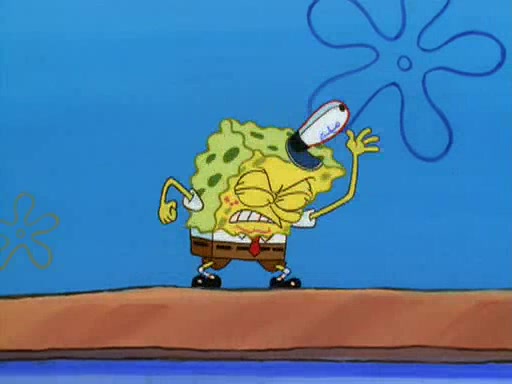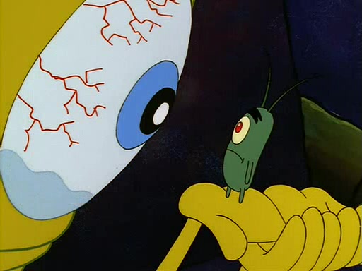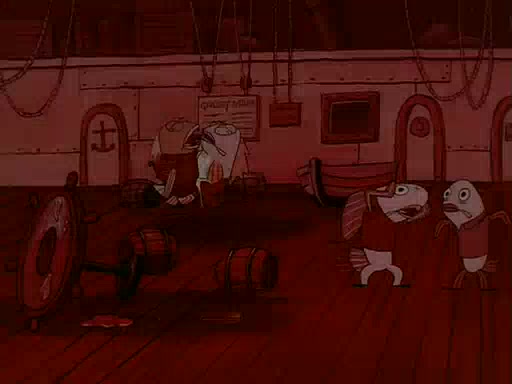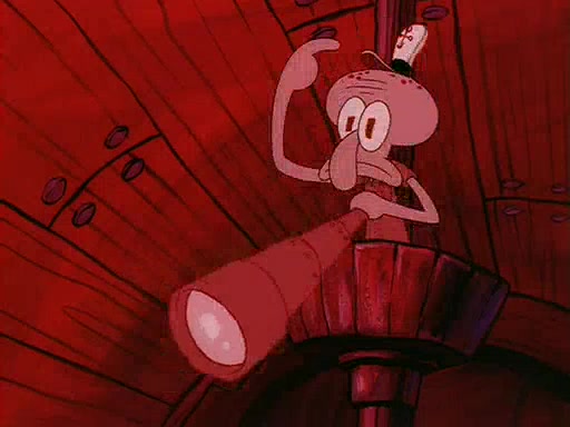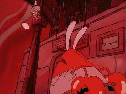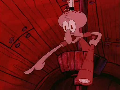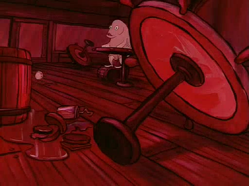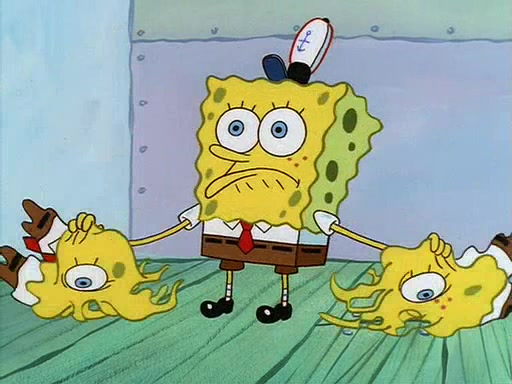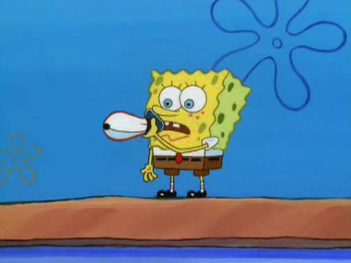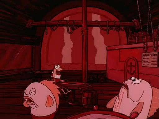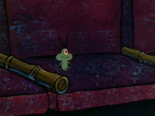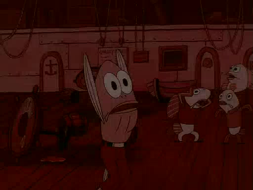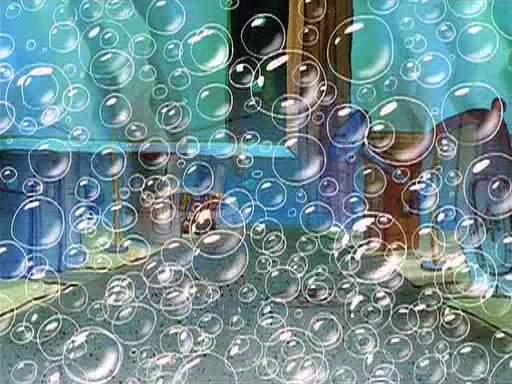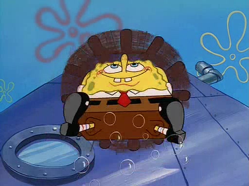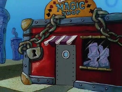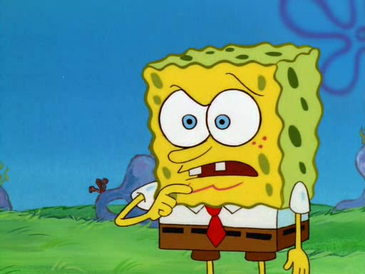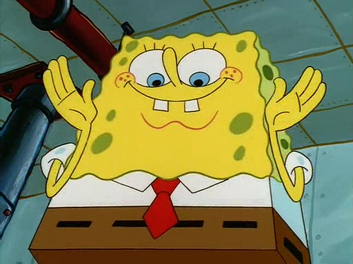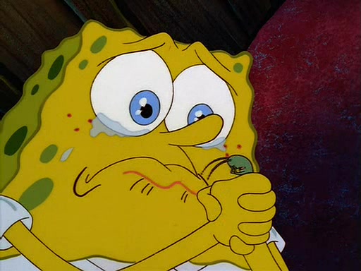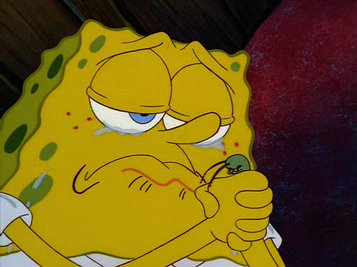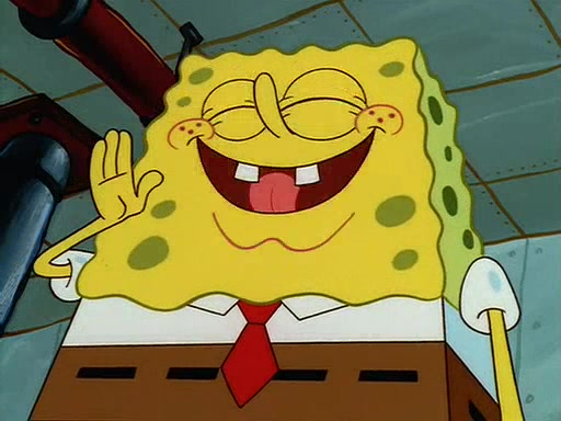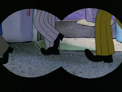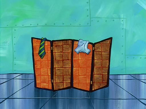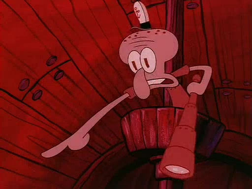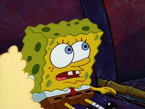 At the Reef Cinema, Mr. Krabs appears in front of the projector and shouts "reach into his pocket now and take what he's got!" SpongeBob reaches into Plankton's pocket and finds a Krabby Patty (the other people simply steal from their neighbor's pocket and leave the theater). SpongeBob realizes that Plankton used him to get a Krabby Patty, and Plankton attempts to explain that he realizes now that he only ever wanted friendship, before admitting to everything and running off with the patty. However, he runs directly through the movie screen into a solid wall. Plankton is squashed, badly, and Mr. Krabs flicks him off the wall onto Bubble Bass' hand, who mistakes Plankton for a jellybean and chases him around his hand.