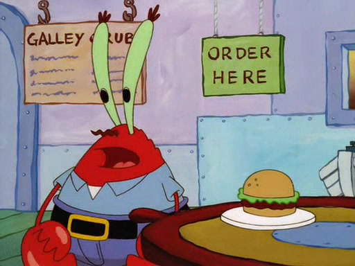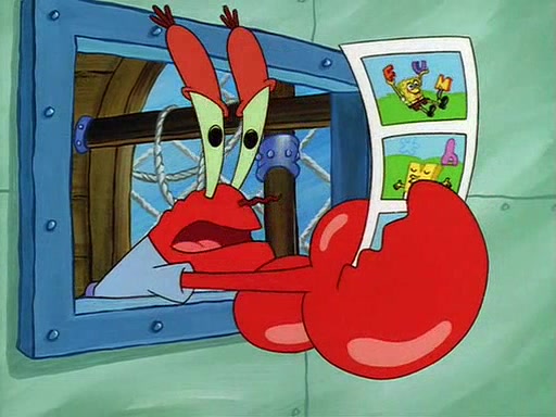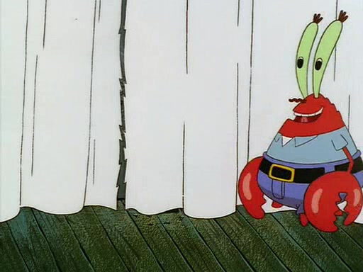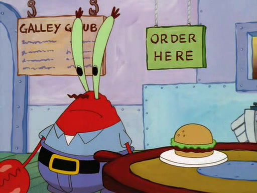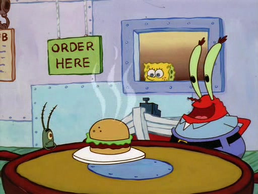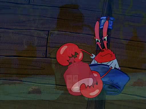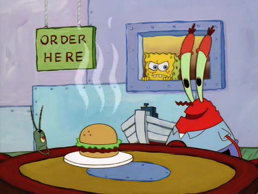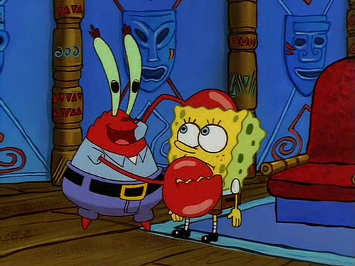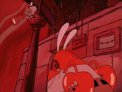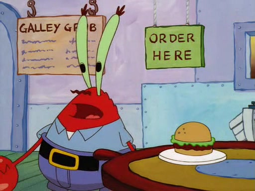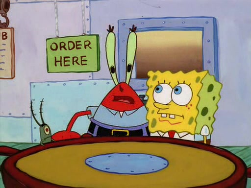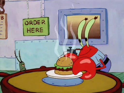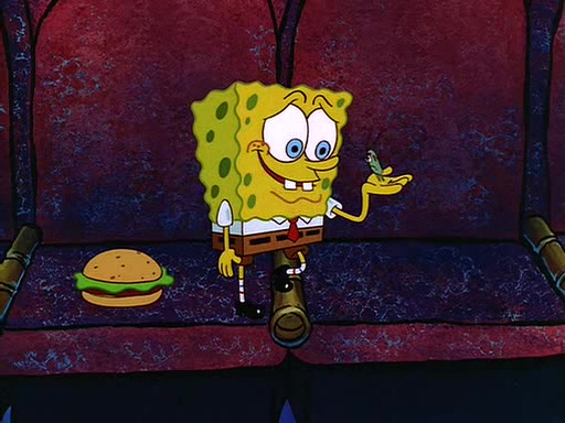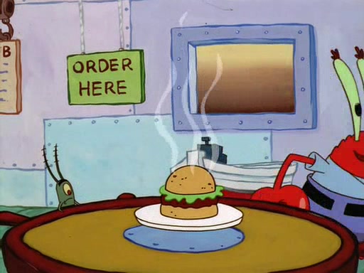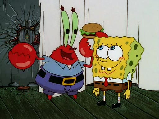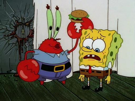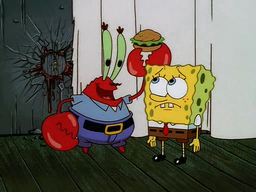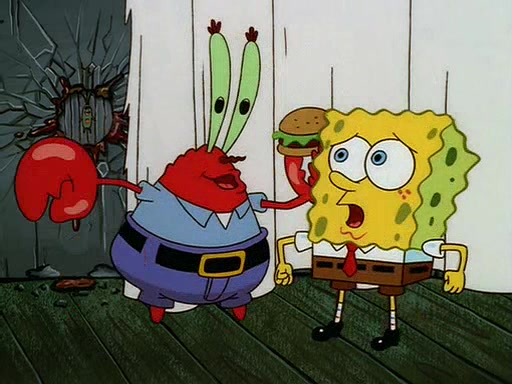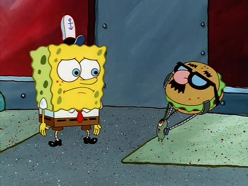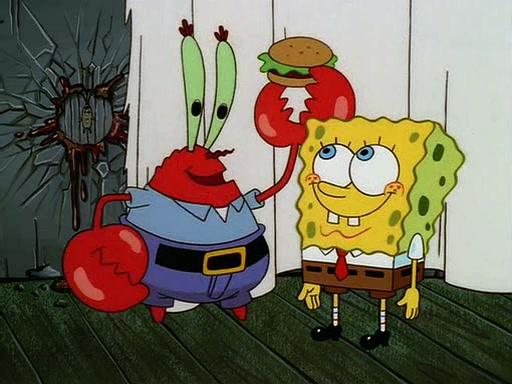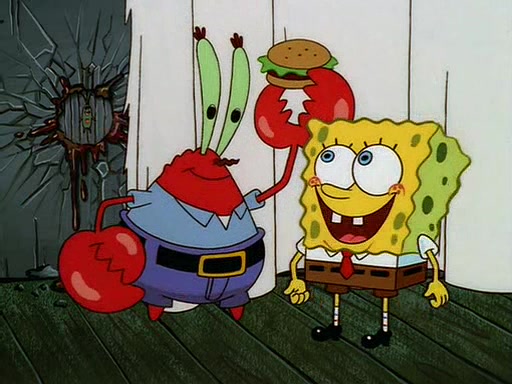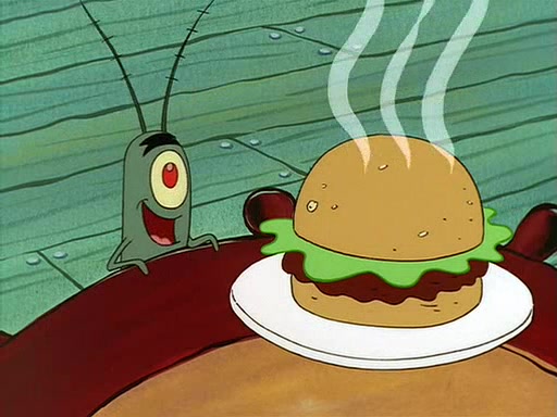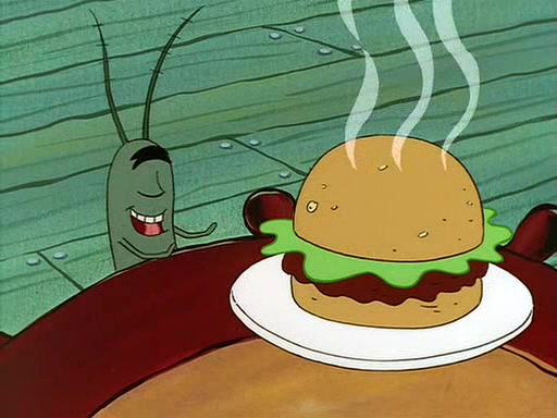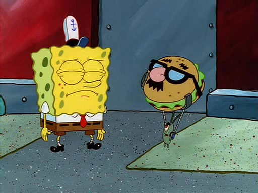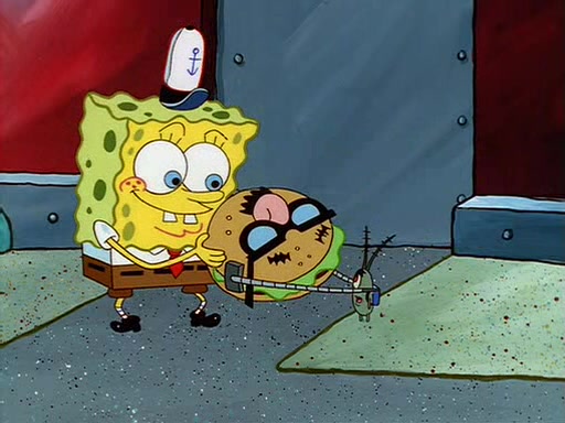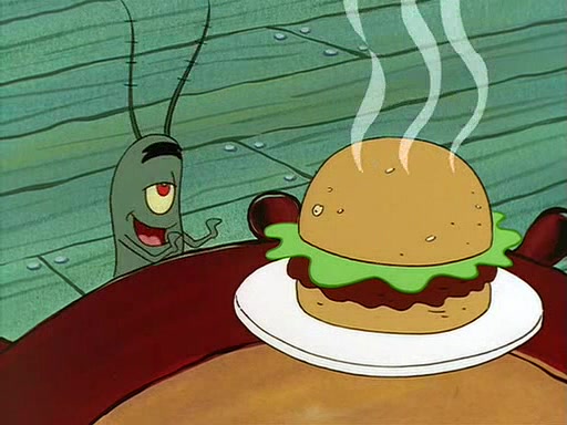 When Mr. Krabs sees this, he refuses to believe that Plankton has changed and sets up a trap for them when they come to the Krusty Krab together the next day. He attempts to tempt Plankton with a Krabby Patty, but he seems not to take the bait. After SpongeBob and Plankton leave to go to the movies, Mr. Krabs begins to suspect that Plankton really has gone straight and nice, until he realizes that he actually did take the patty.