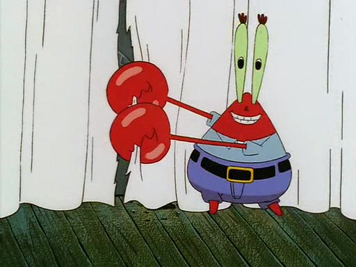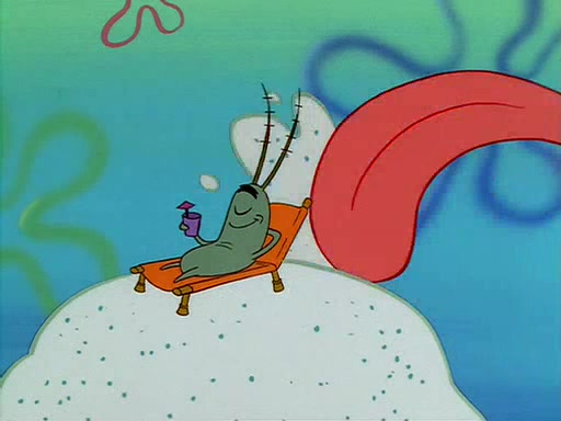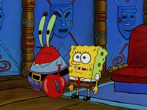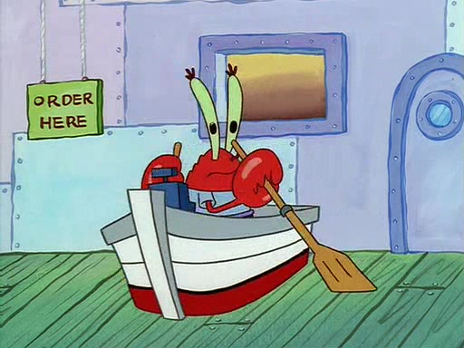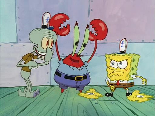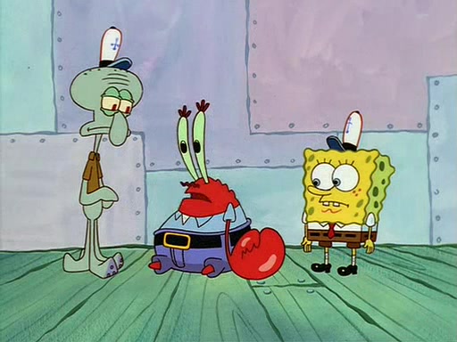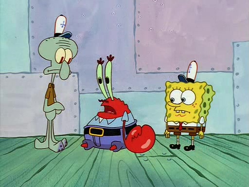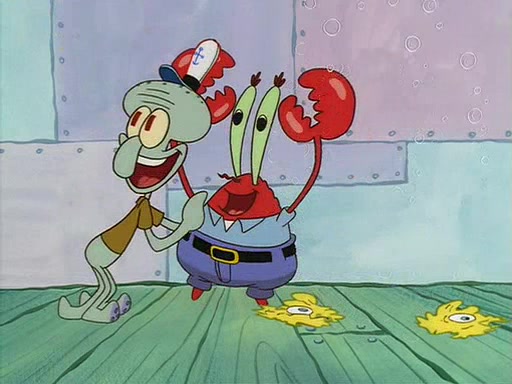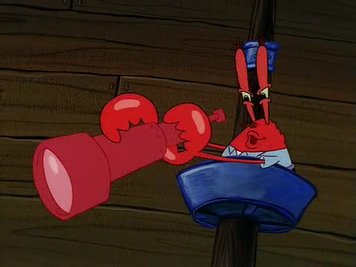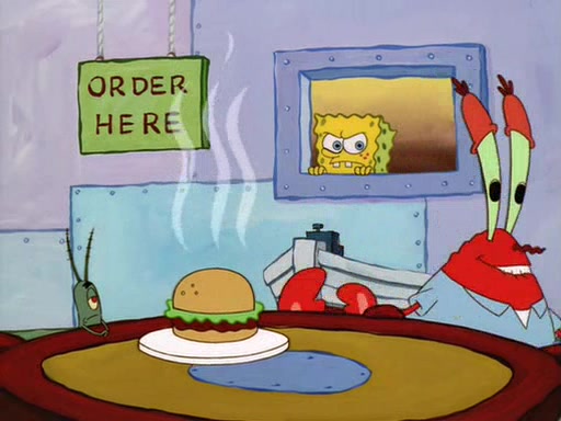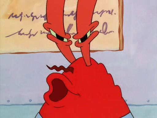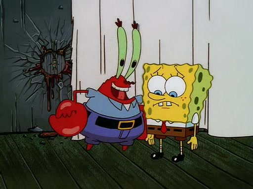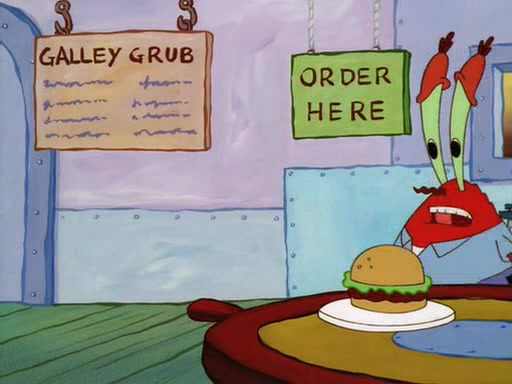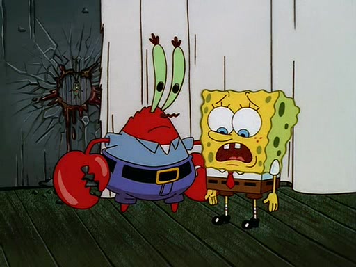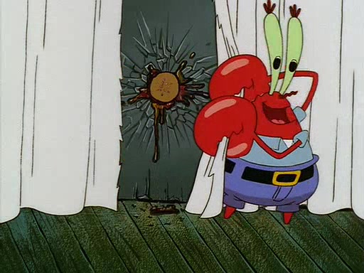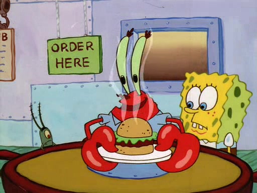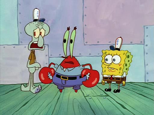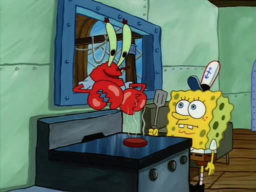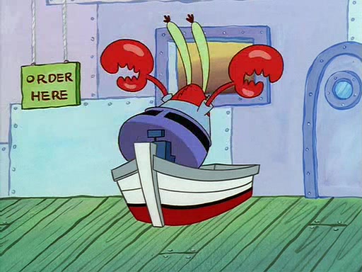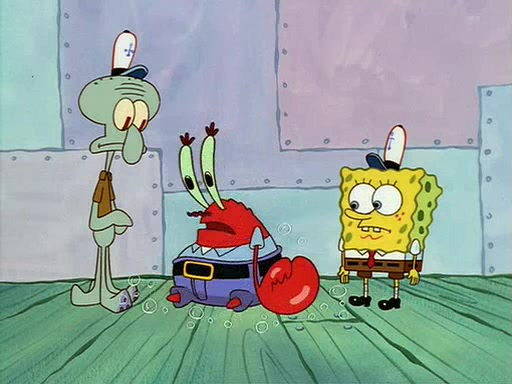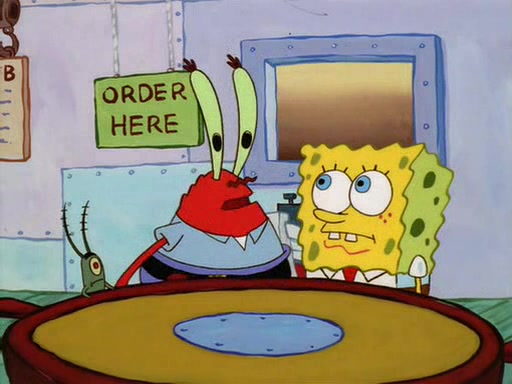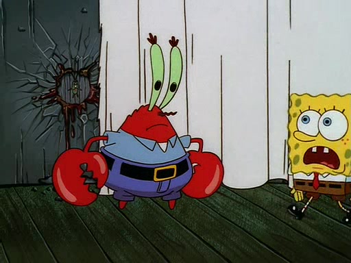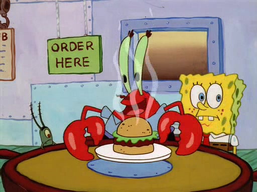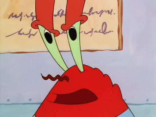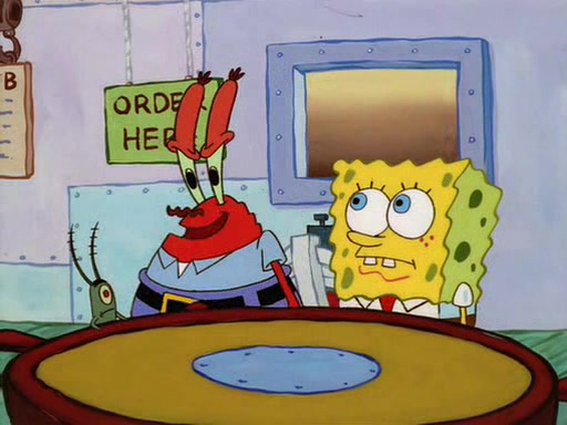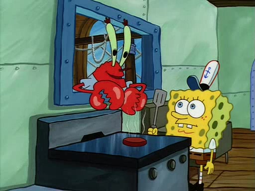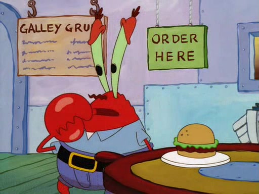 When Mr. Krabs sees this, he refuses to believe that Plankton has changed and sets up a trap for them when they come to the Krusty Krab together the next day. He attempts to tempt Plankton with a Krabby Patty, but he seems not to take the bait. After SpongeBob and Plankton leave to go to the movies, Mr. Krabs begins to suspect that Plankton really has gone straight and nice, until he realizes that he actually did take the patty.