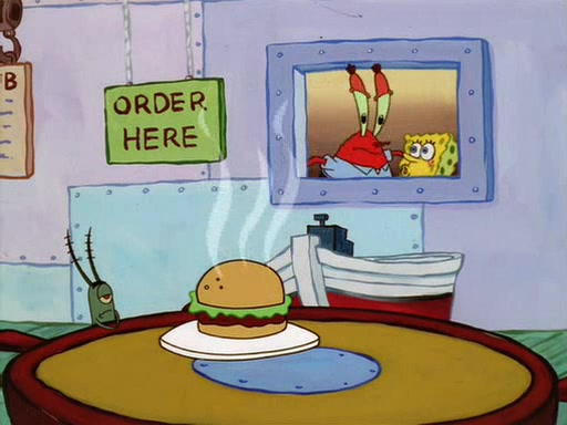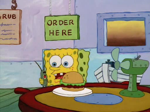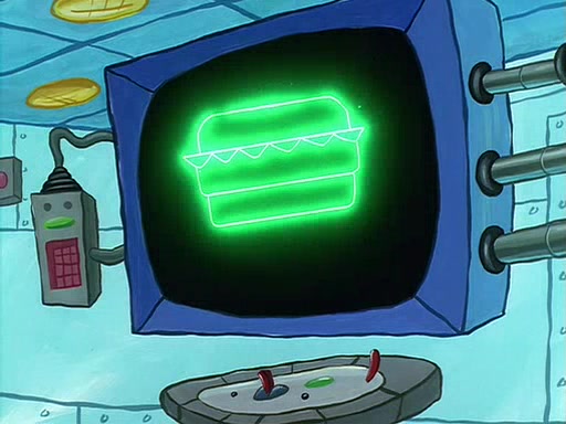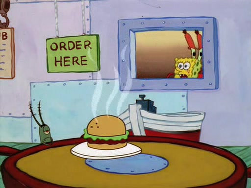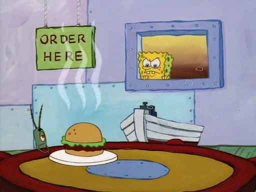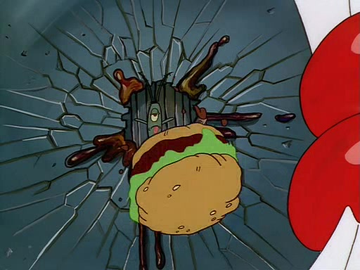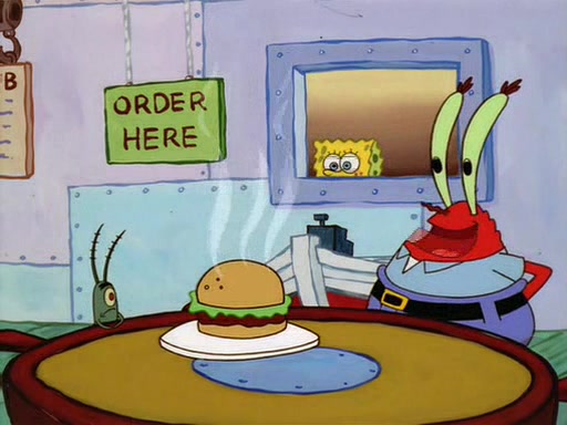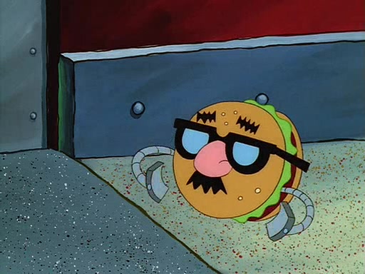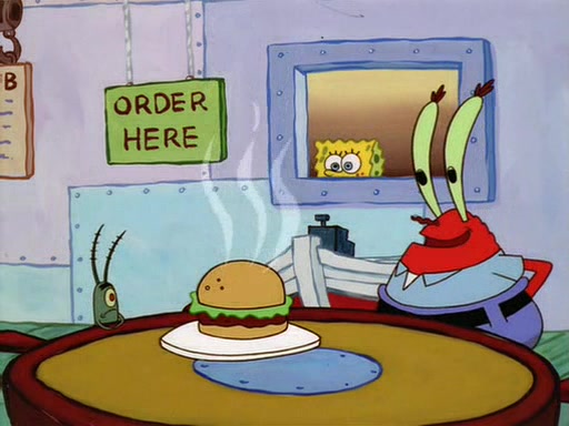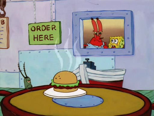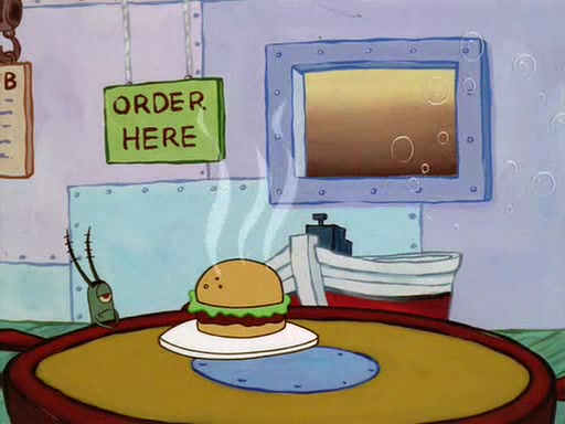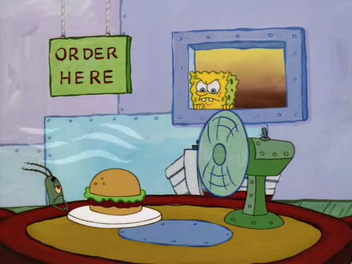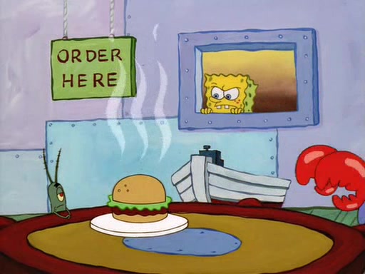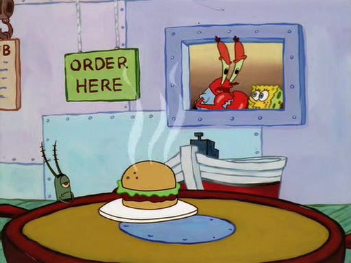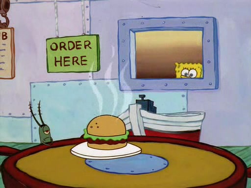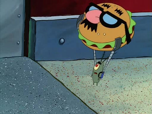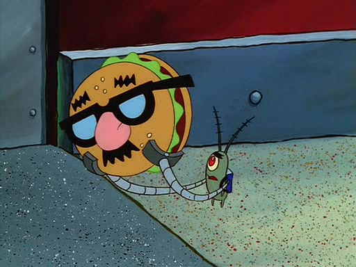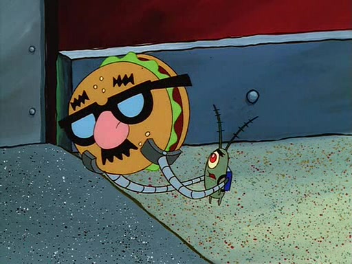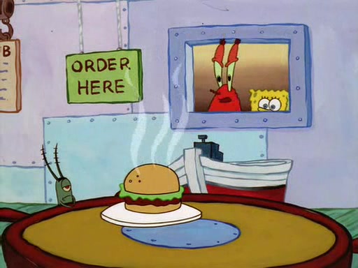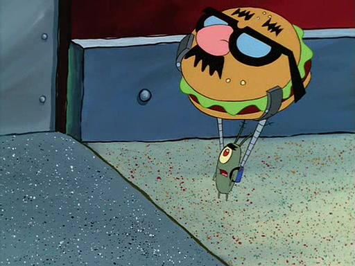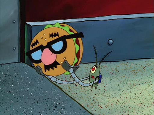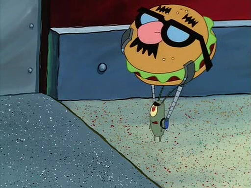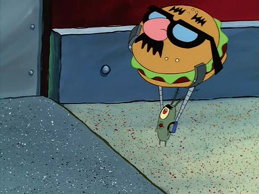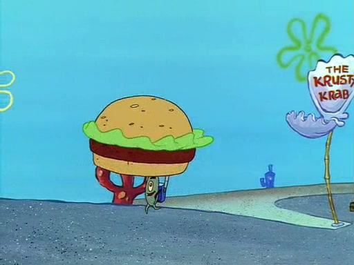 Things are going great at the Krusty Krab, until suddenly an alarm begins to blare, signaling an attempt by Plankton to steal a Krabby Patty. Plankton, controlling the patty, escapes outside with it by making a hole in the wall with a laser.