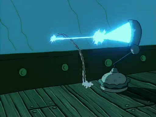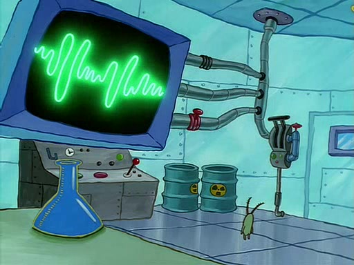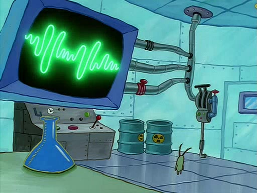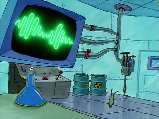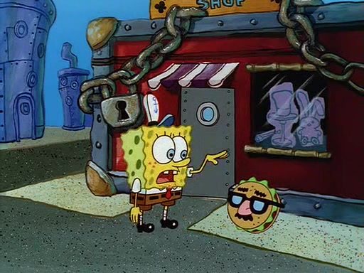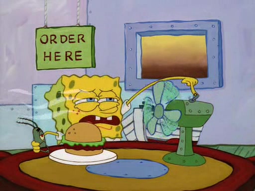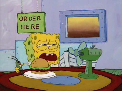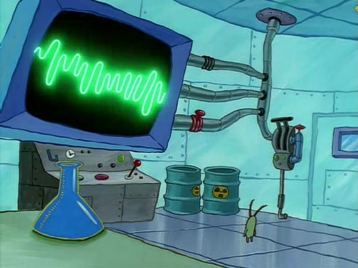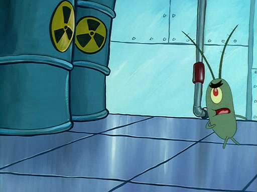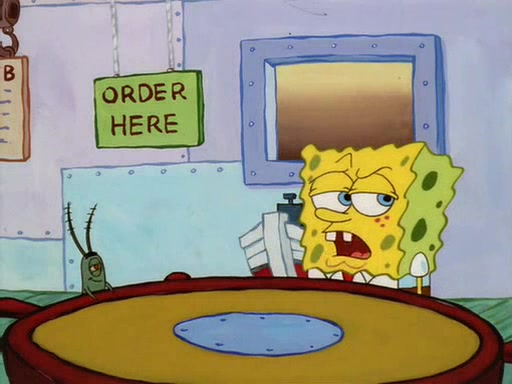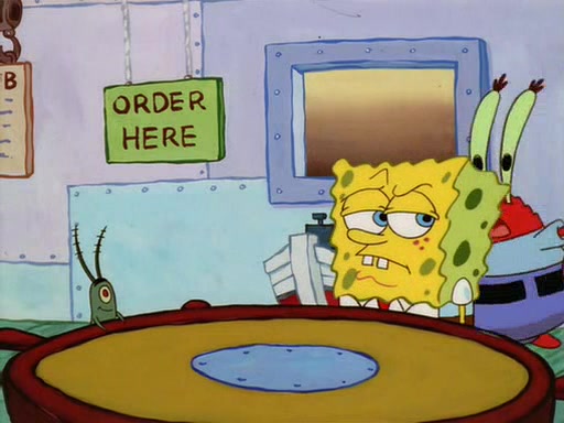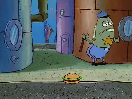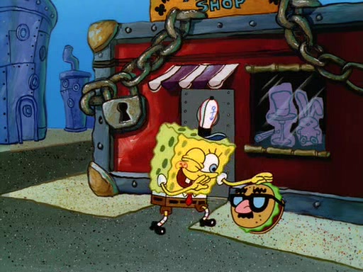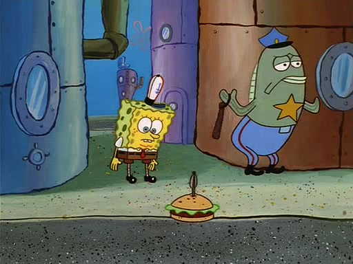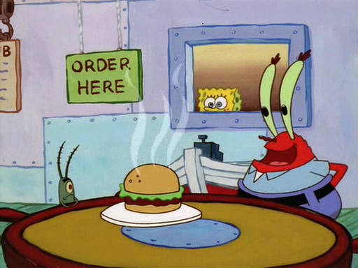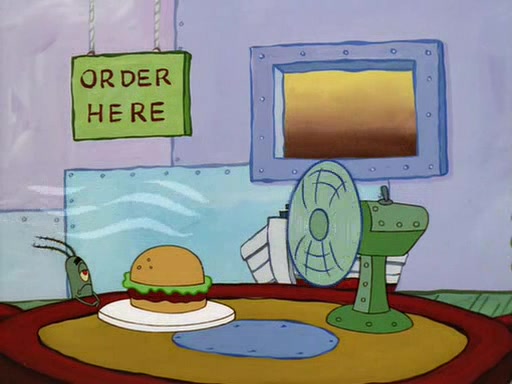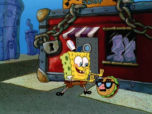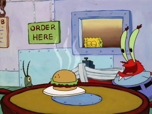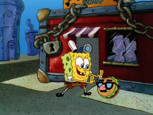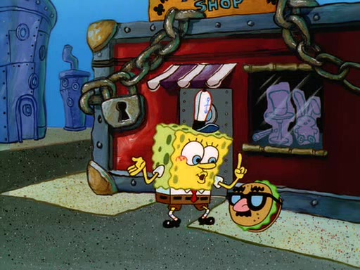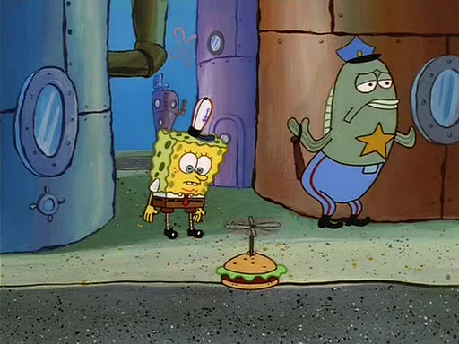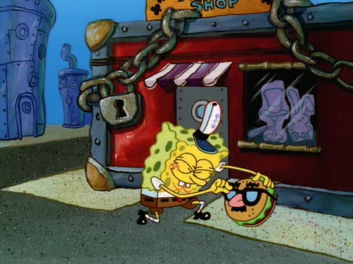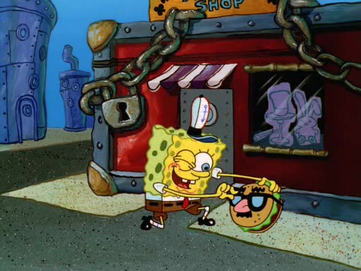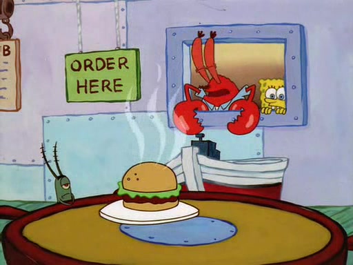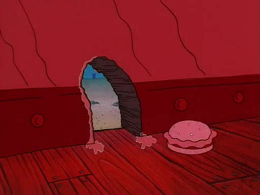 Things are going great at the Krusty Krab, until suddenly an alarm begins to blare, signaling an attempt by Plankton to steal a Krabby Patty. Plankton, controlling the patty, escapes outside with it by making a hole in the wall with a laser.