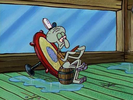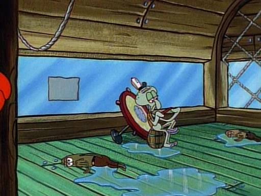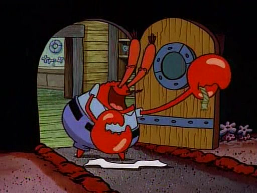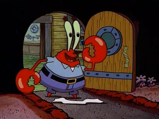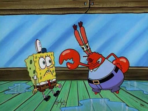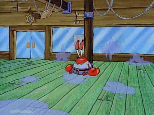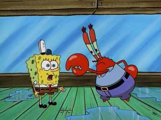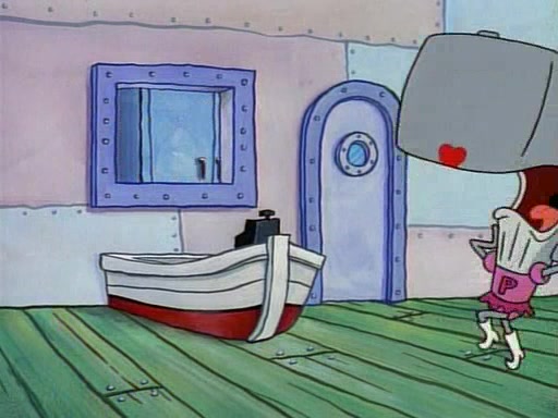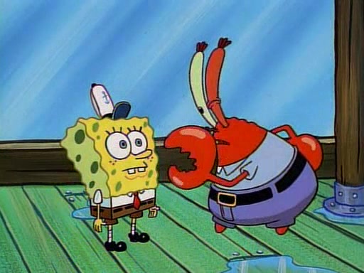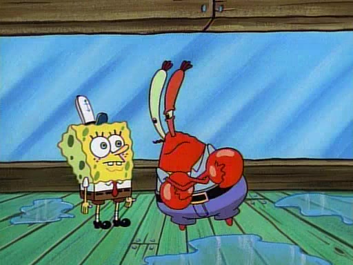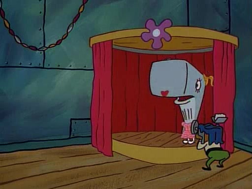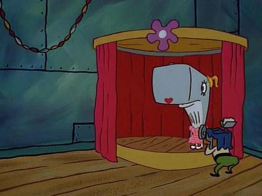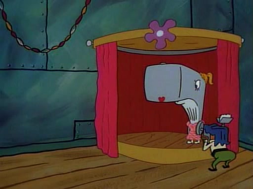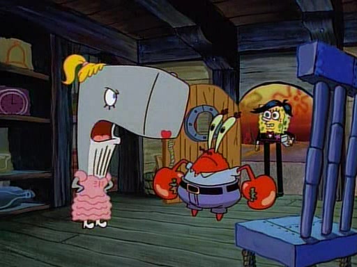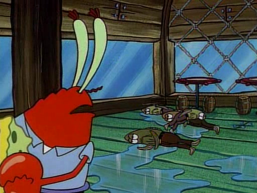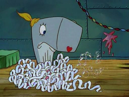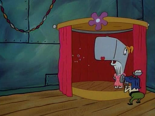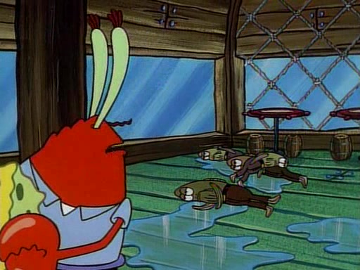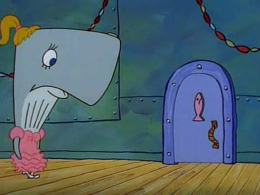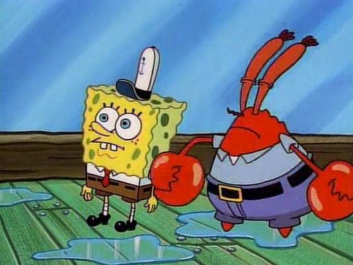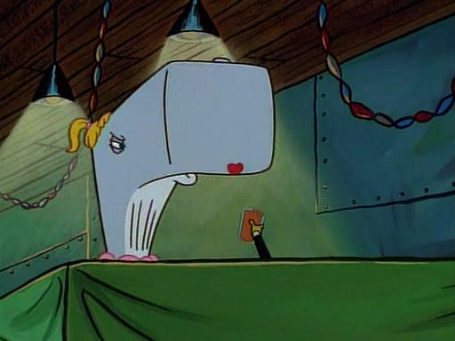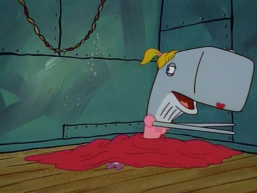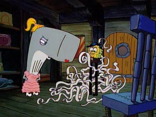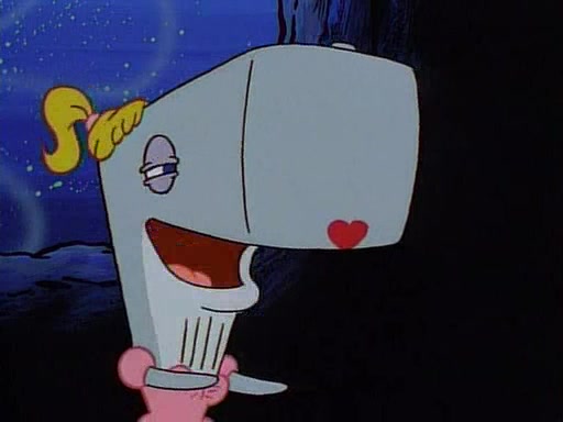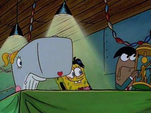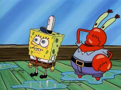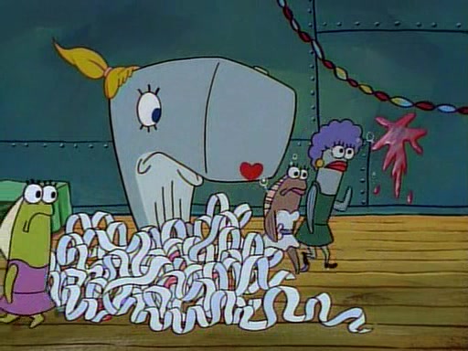 At the Krusty Krab, Pearl runs in crying so profusely that her tears begin literally flooding the restaurant. Mr. Krabs asks her what's wrong, and she explains that her prom date has just dumped her, and the prom is tomorrow night. Mr. Krabs suggests taking himself, but she starts crying, causing an earthquake. He then suggest he takes Squidward or one of the restaurant's customers to the prom, but she continues crying, which causes the earthquake to become worse. Ultimately, he chooses that SpongeBob should be the one that has to go with her. Pearl doesn't want to be embarrassed by SpongeBob, and begs him to do his best not to. At home, using a magazine as a guide, SpongeBob dresses up and uses extremely long artificial legs to make himself look "long, tan, and handsome" for Pearl. On the night of the prom, things initially work well for SpongeBob and Pearl. However, SpongeBob's costume soon begins malfunctioning, resulting in disaster and severely embarrassing Pearl. SpongeBob, after having broken everything at the prom, runs into the ladies' restroom crying. Pearl, feeling sorry for him, attempts to console him and restore his confidence.