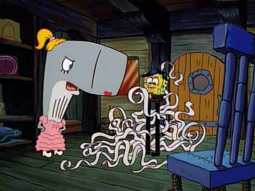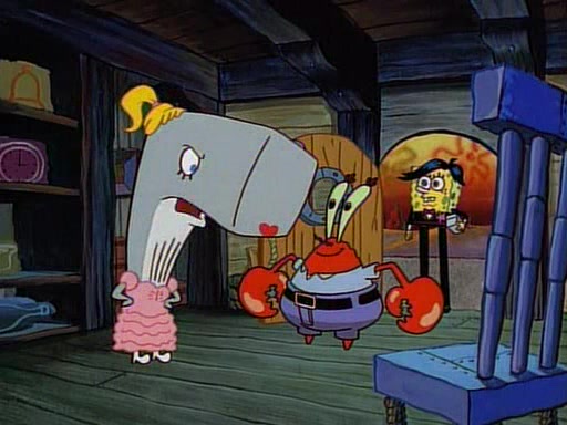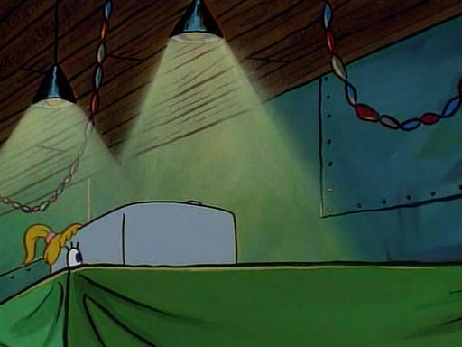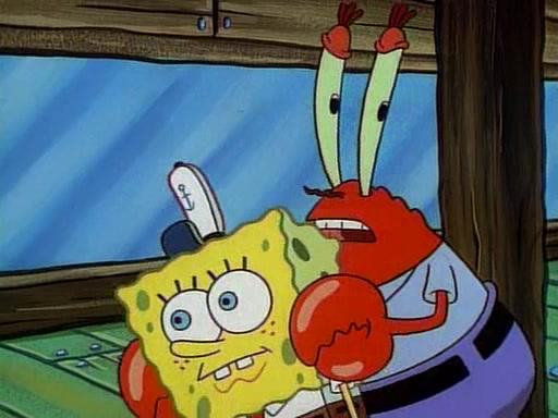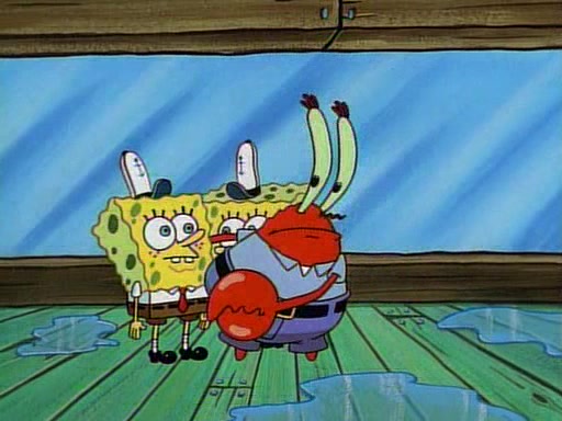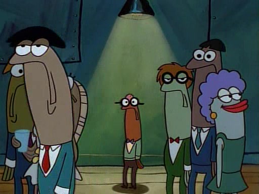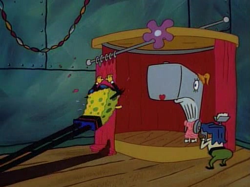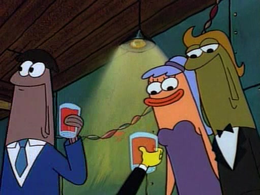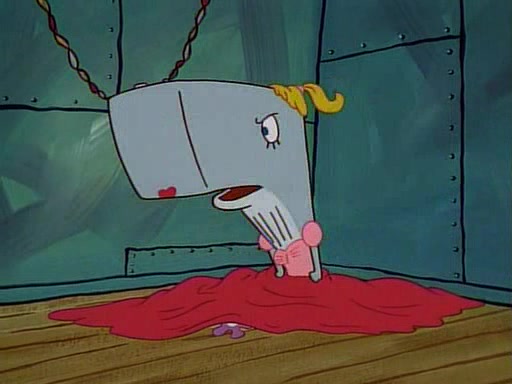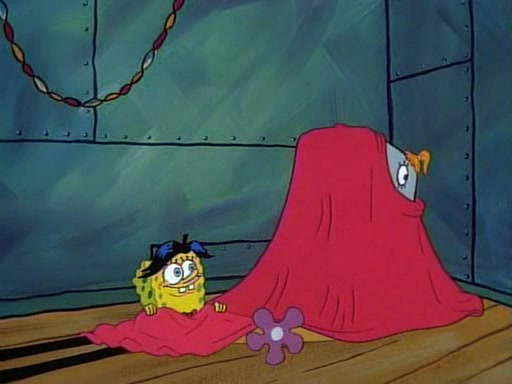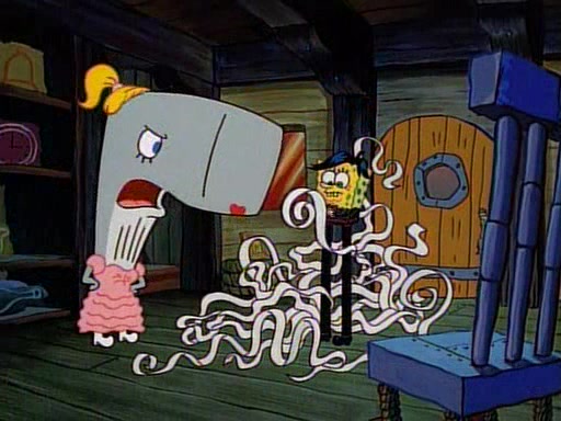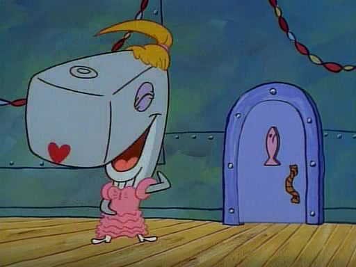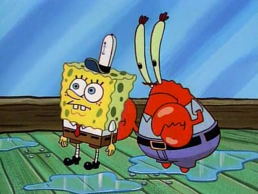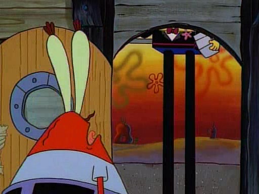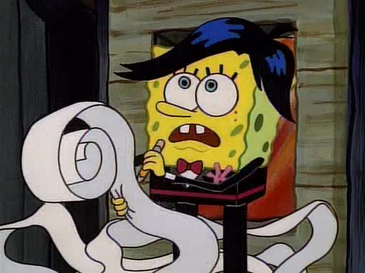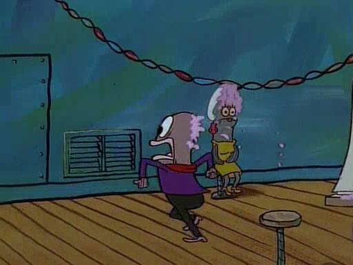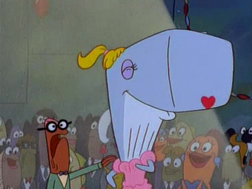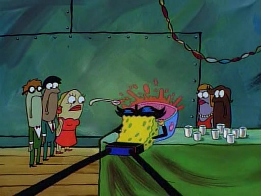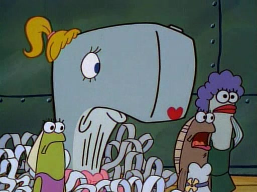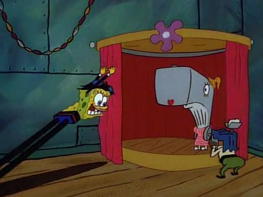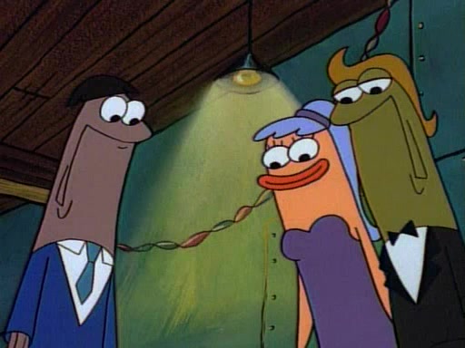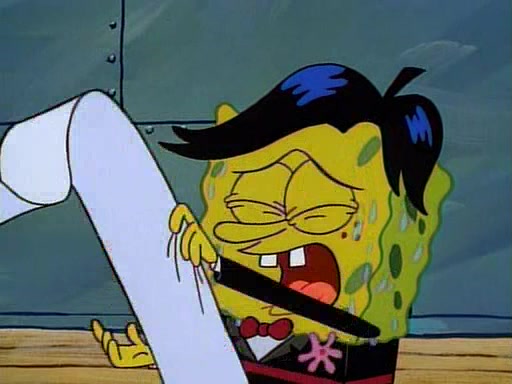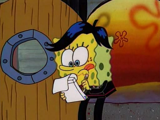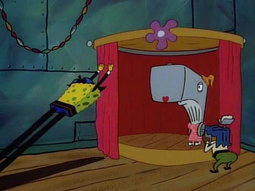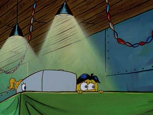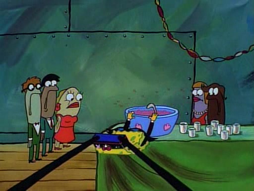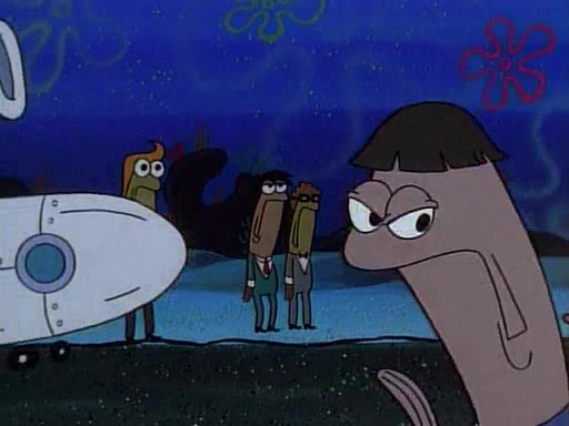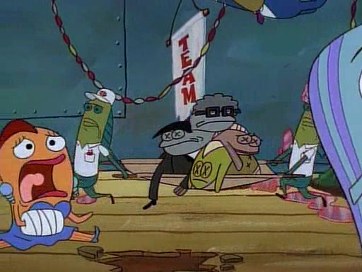 This ultimately succeeds, and Pearl and SpongeBob join the prom dance. They begin doing a dance called "The Sponge," which everyone else soon begins doing. However, this results in many injuries and mass destruction. An angry mob forms and lifts up Pearl and SpongeBob, who think this means that they are popular until the mob throws them out of the building. SpongeBob apologizes, and Pearl says even though it was a disaster, it was really fun. Pearl says goodnight to SpongeBob as she returns home, and tries to get SpongeBob's attention, but as she does so SpongeBob appears to be frozen. Mr. Krabs congratulates SpongeBob on his success at the prom, and the real SpongeBob appears to retrieve his wax dummy of himself (which was seen earlier in the episode), and carries it off, laughing.