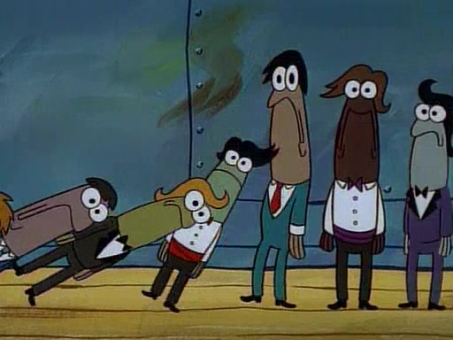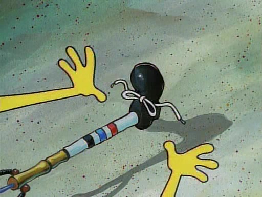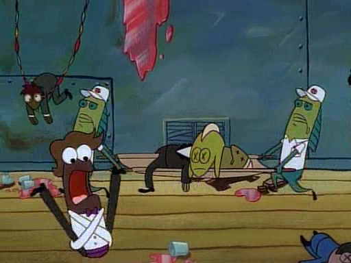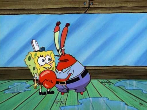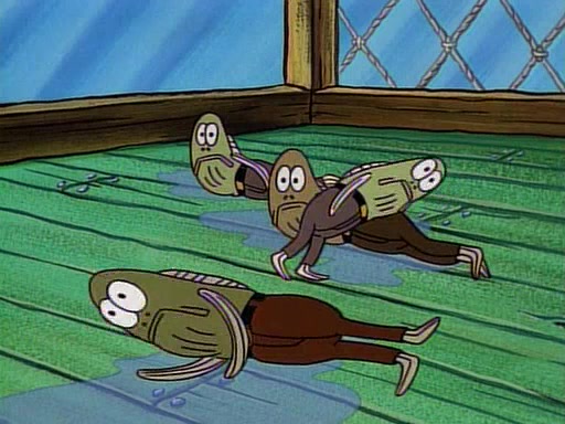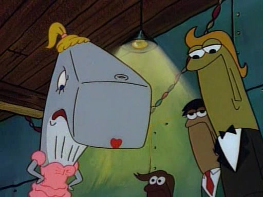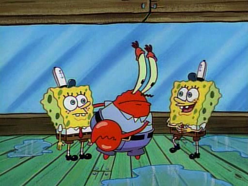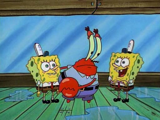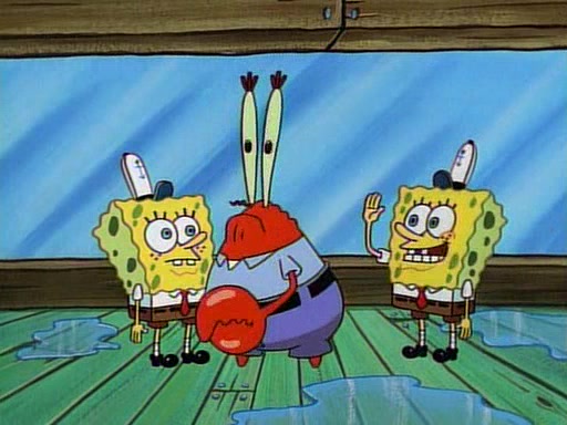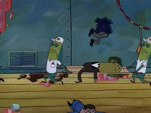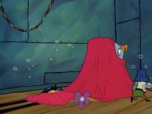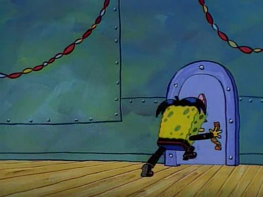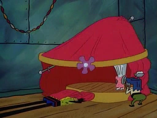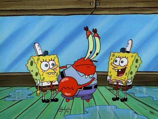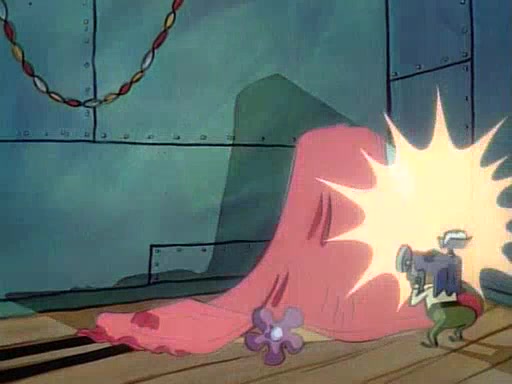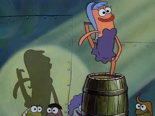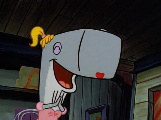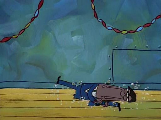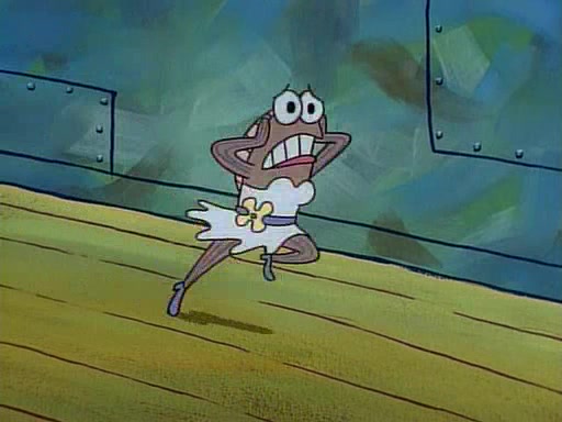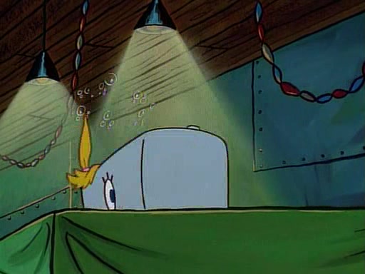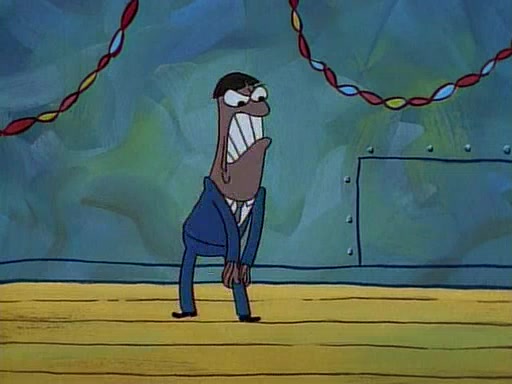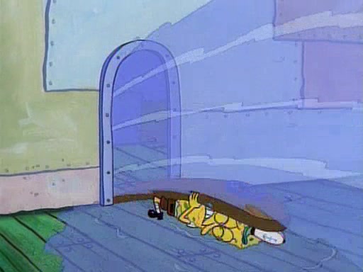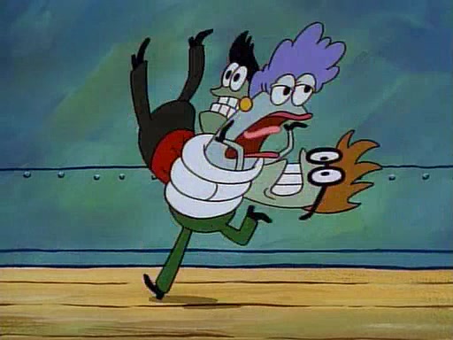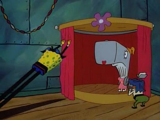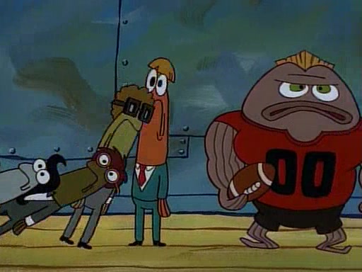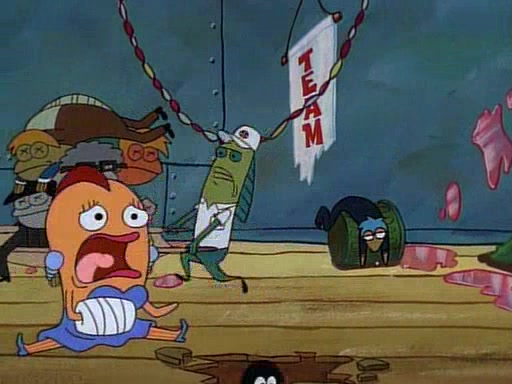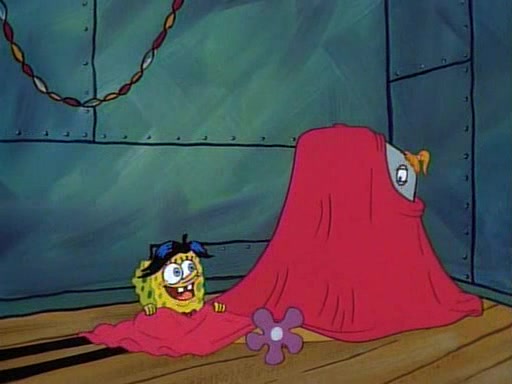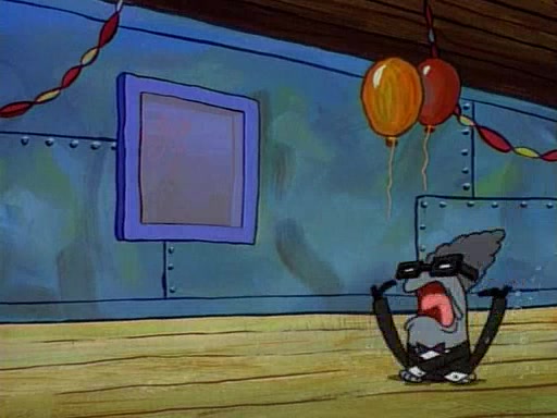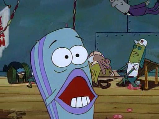 This ultimately succeeds, and Pearl and SpongeBob join the prom dance. They begin doing a dance called "The Sponge," which everyone else soon begins doing. However, this results in many injuries and mass destruction. An angry mob forms and lifts up Pearl and SpongeBob, who think this means that they are popular until the mob throws them out of the building. SpongeBob apologizes, and Pearl says even though it was a disaster, it was really fun. Pearl says goodnight to SpongeBob as she returns home, and tries to get SpongeBob's attention, but as she does so SpongeBob appears to be frozen. Mr. Krabs congratulates SpongeBob on his success at the prom, and the real SpongeBob appears to retrieve his wax dummy of himself (which was seen earlier in the episode), and carries it off, laughing.