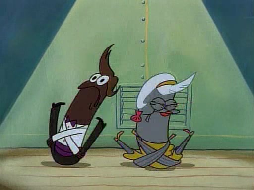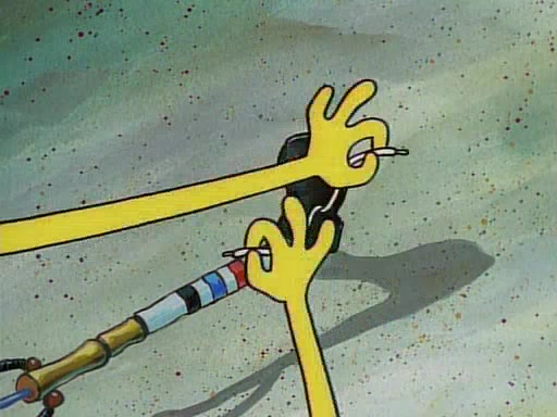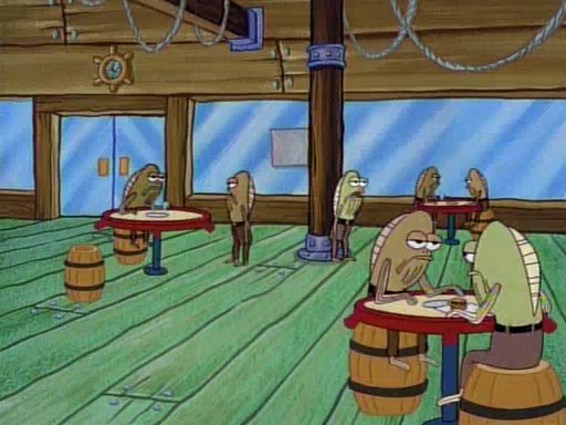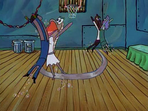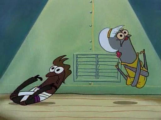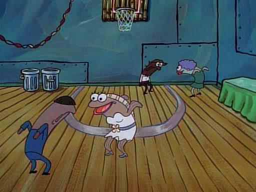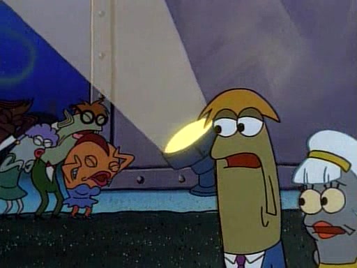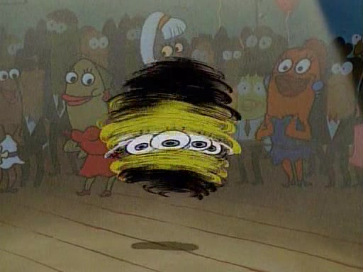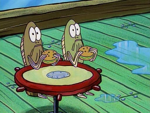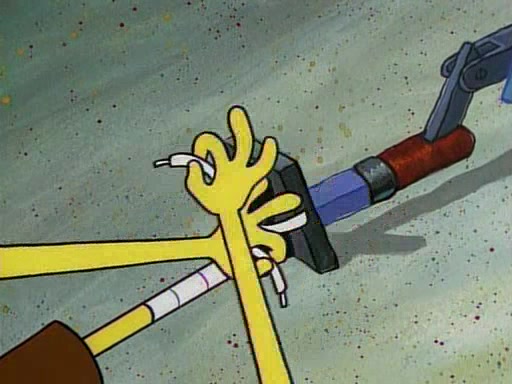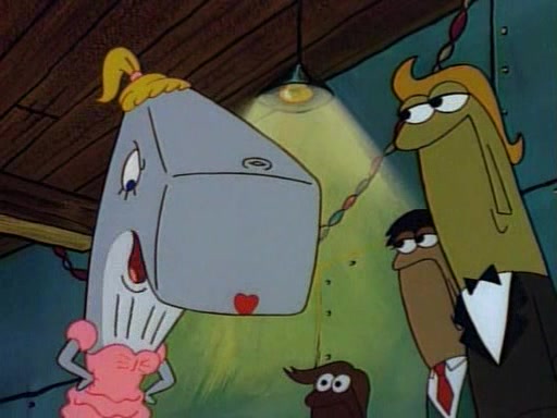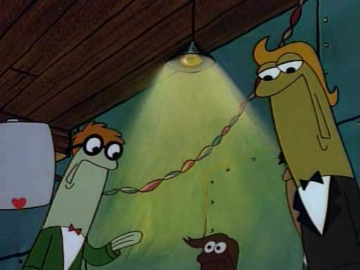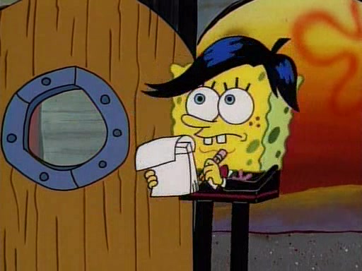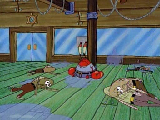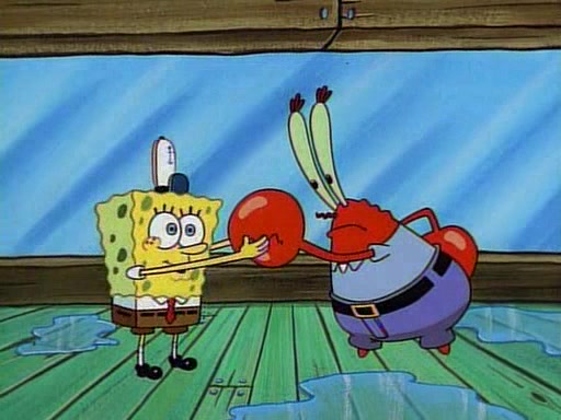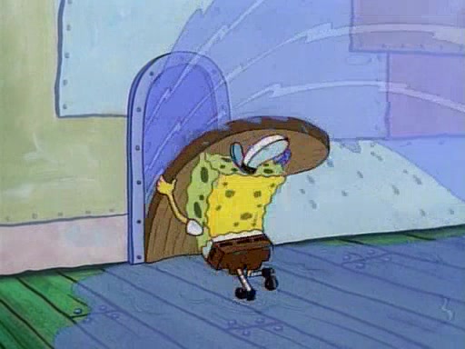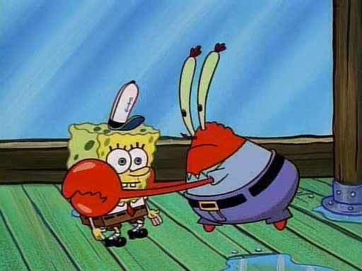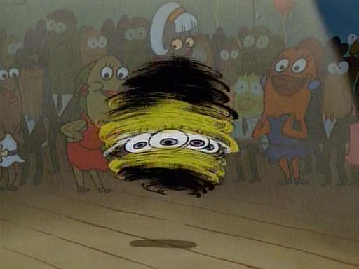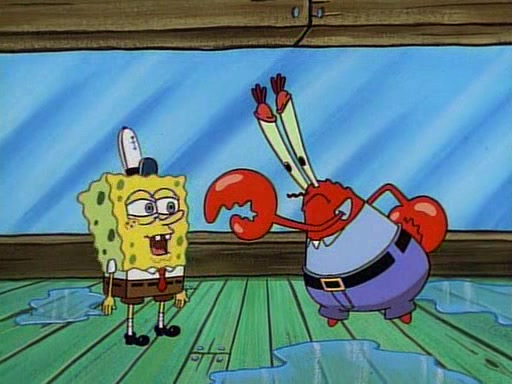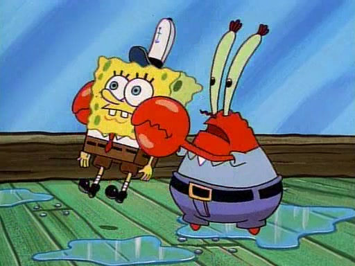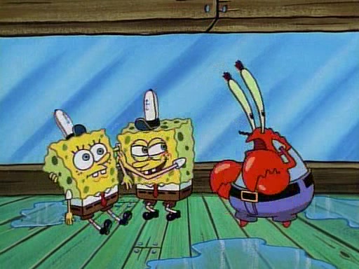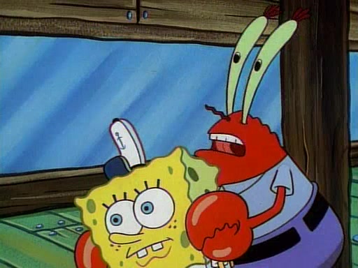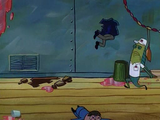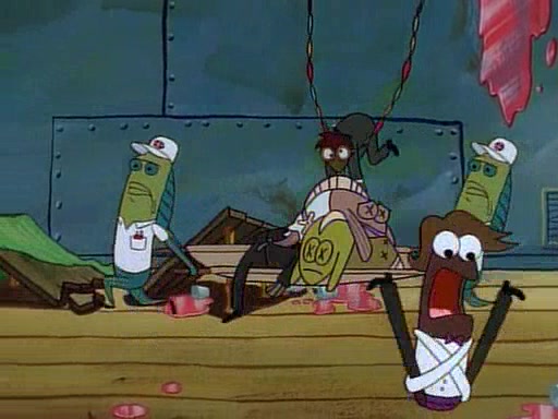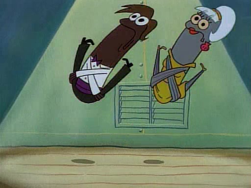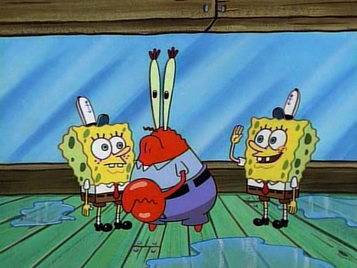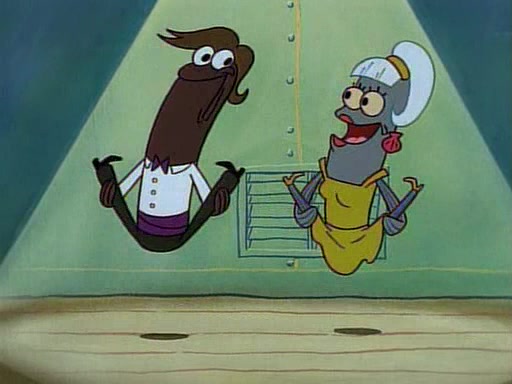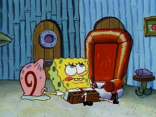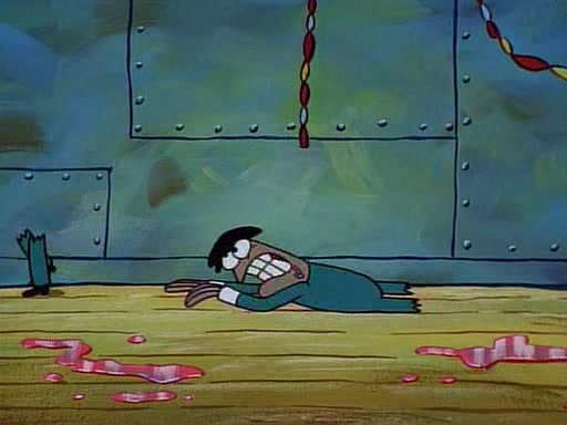 This ultimately succeeds, and Pearl and SpongeBob join the prom dance. They begin doing a dance called "The Sponge," which everyone else soon begins doing. However, this results in many injuries and mass destruction. An angry mob forms and lifts up Pearl and SpongeBob, who think this means that they are popular until the mob throws them out of the building. SpongeBob apologizes, and Pearl says even though it was a disaster, it was really fun. Pearl says goodnight to SpongeBob as she returns home, and tries to get SpongeBob's attention, but as she does so SpongeBob appears to be frozen. Mr. Krabs congratulates SpongeBob on his success at the prom, and the real SpongeBob appears to retrieve his wax dummy of himself (which was seen earlier in the episode), and carries it off, laughing.