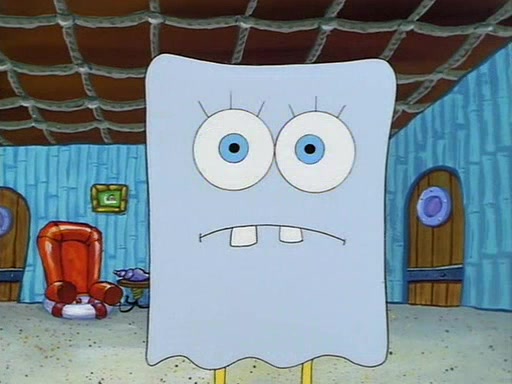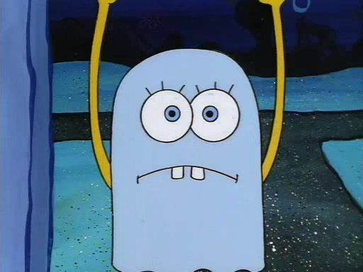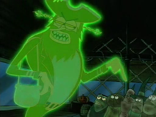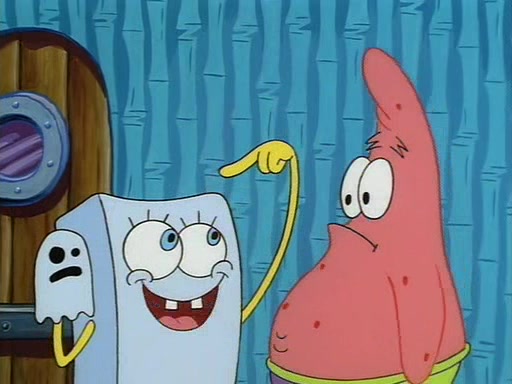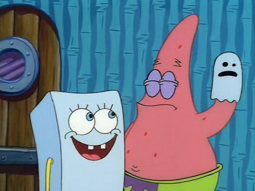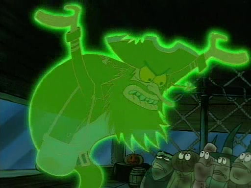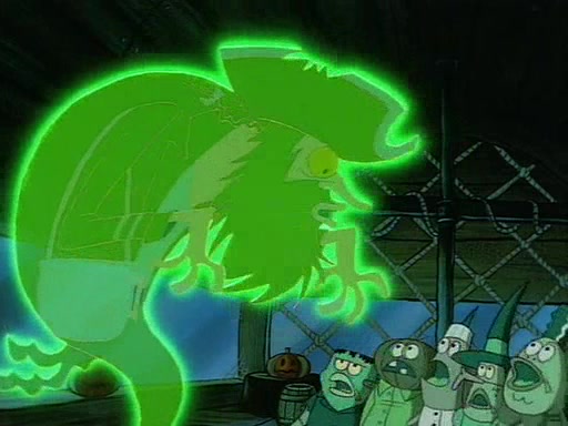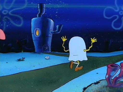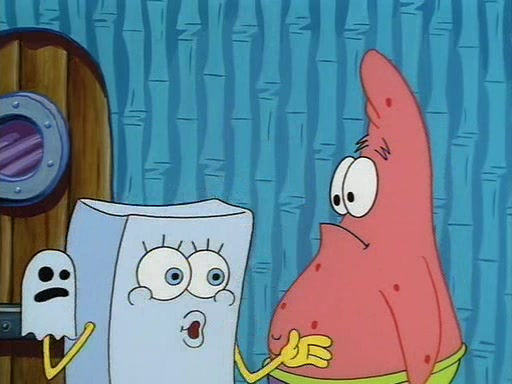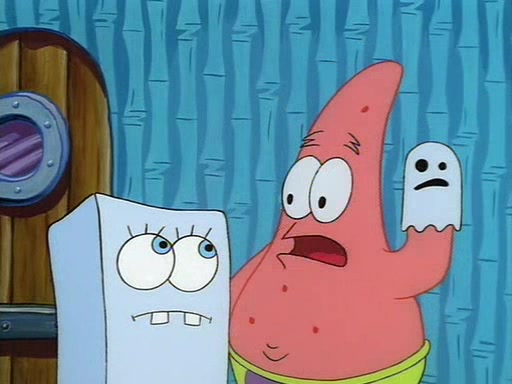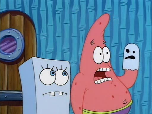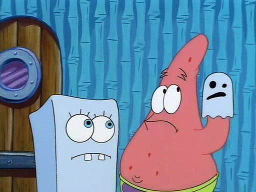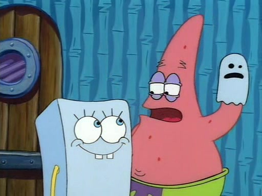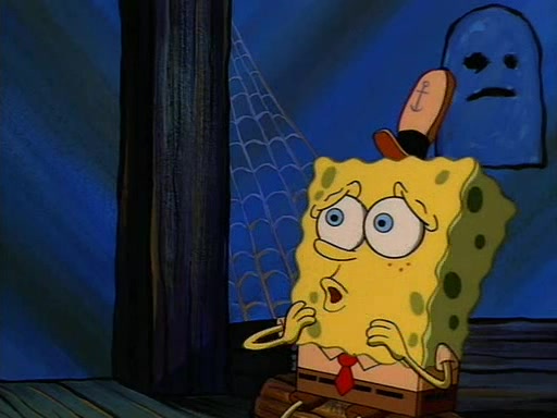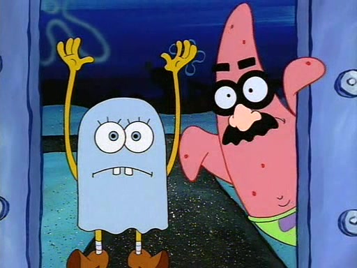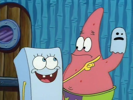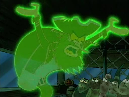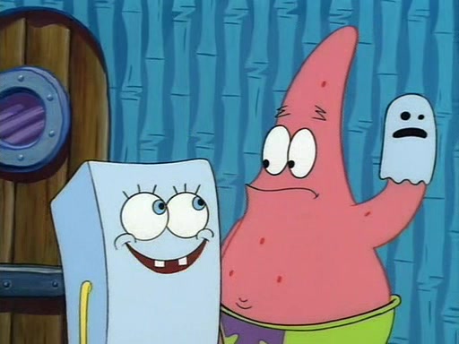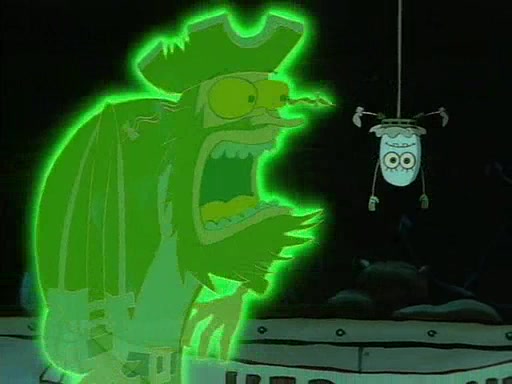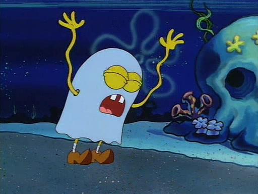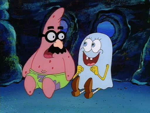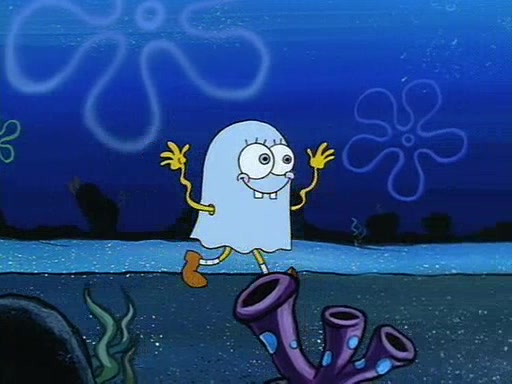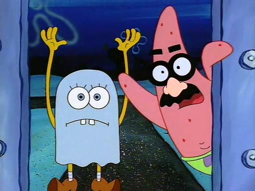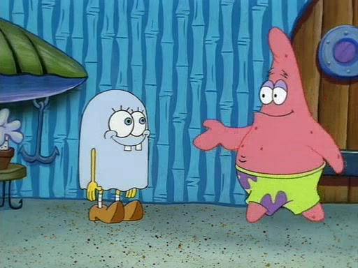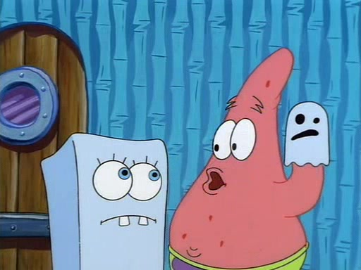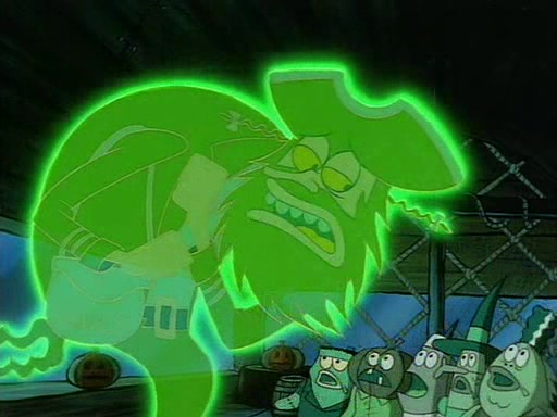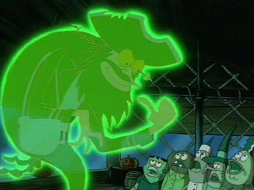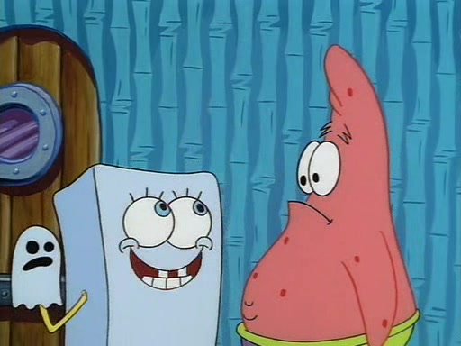 After being scared by Patrick, he asks him for help. They make a "Flying Dutchman" costume, but it fails to scare anyone. SpongeBob realizes that a real ghost has a round head, and that he has a square one. Patrick shaves SpongeBob's head, making it round. Believing themselves to be scary, SpongeBob and Patrick go around town attempting to scare people, and believe themselves to be successful in doing so, although their "victims" are simply confused by their antics.