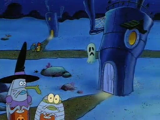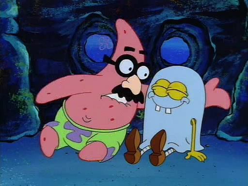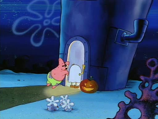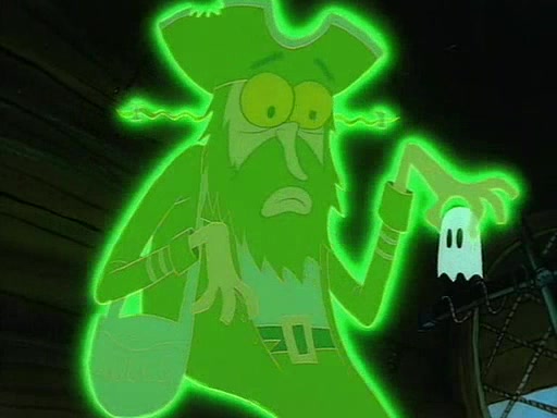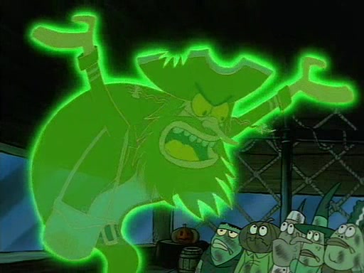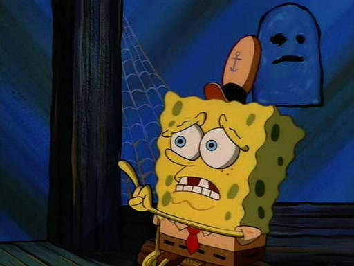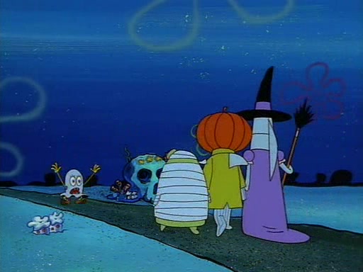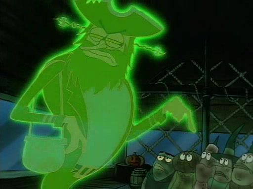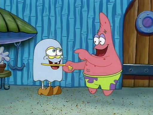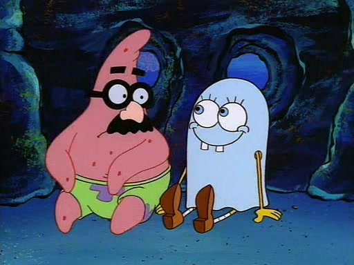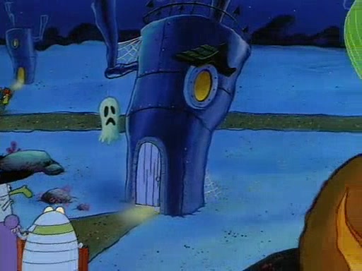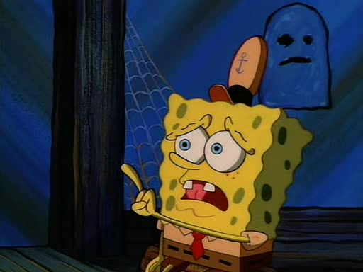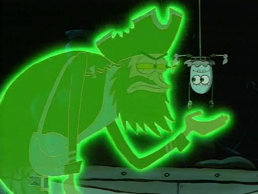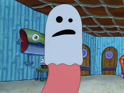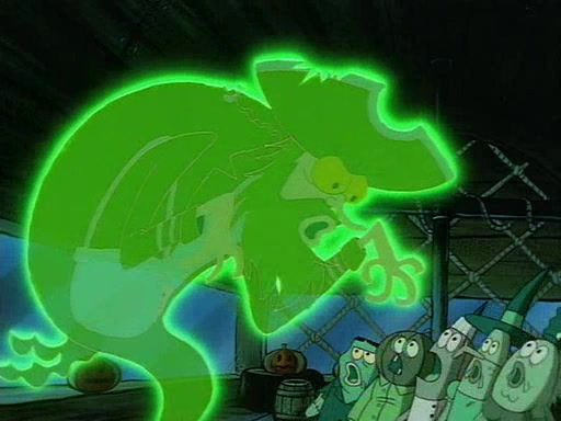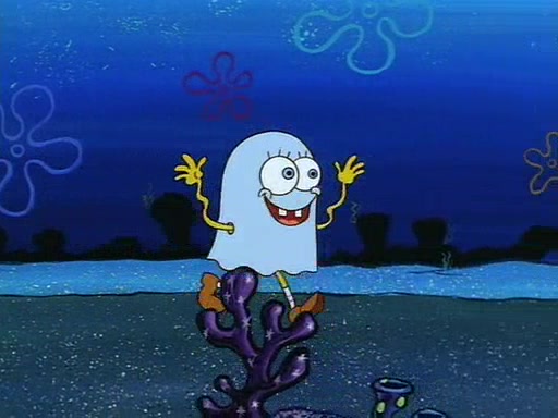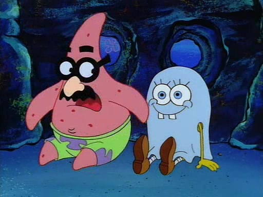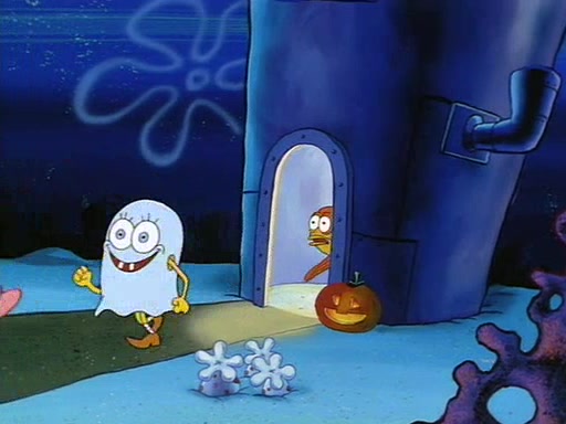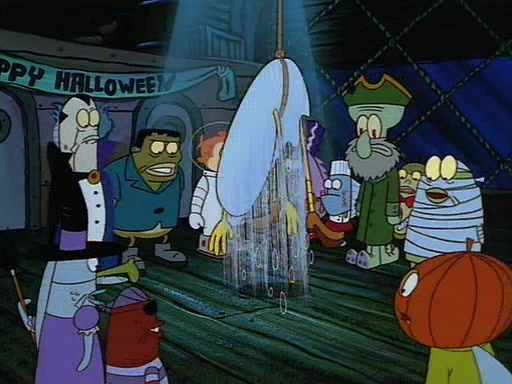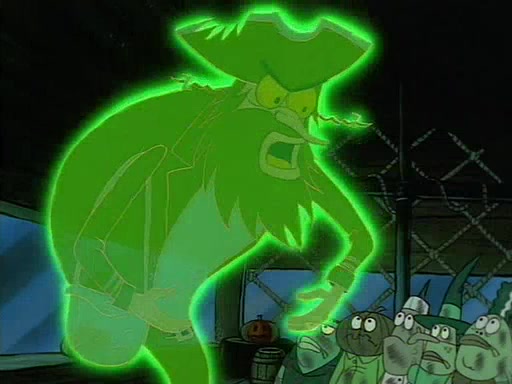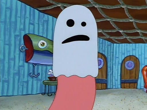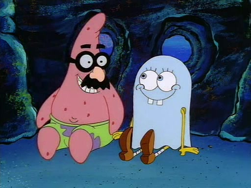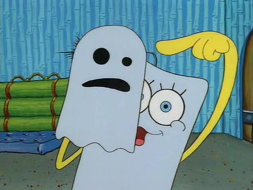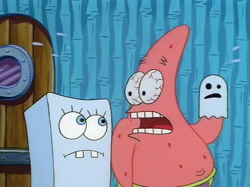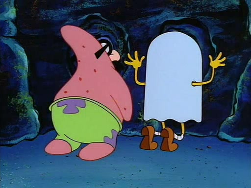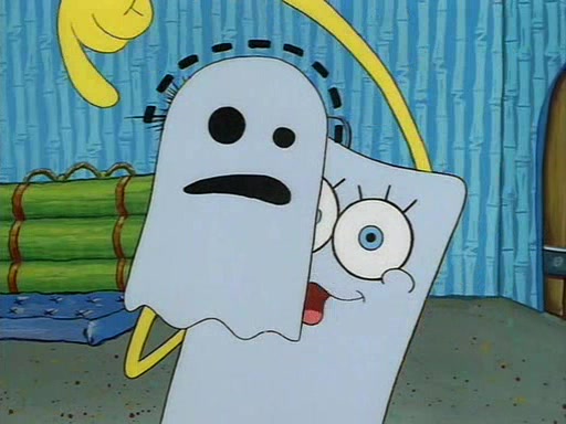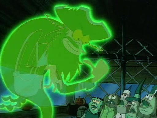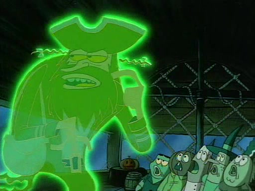 After being scared by Patrick, he asks him for help. They make a "Flying Dutchman" costume, but it fails to scare anyone. SpongeBob realizes that a real ghost has a round head, and that he has a square one. Patrick shaves SpongeBob's head, making it round. Believing themselves to be scary, SpongeBob and Patrick go around town attempting to scare people, and believe themselves to be successful in doing so, although their "victims" are simply confused by their antics.
