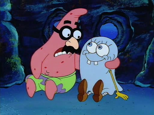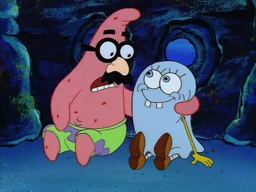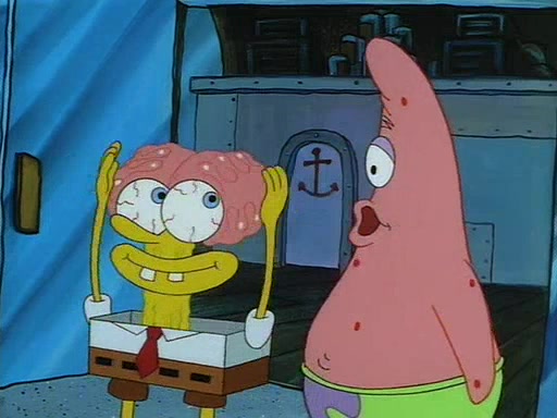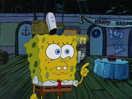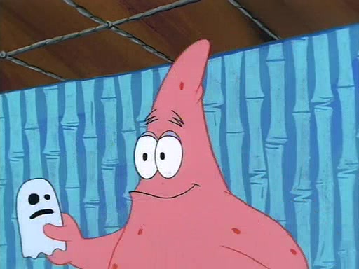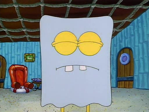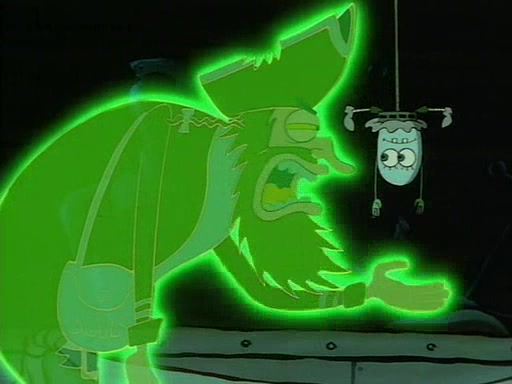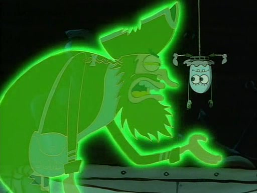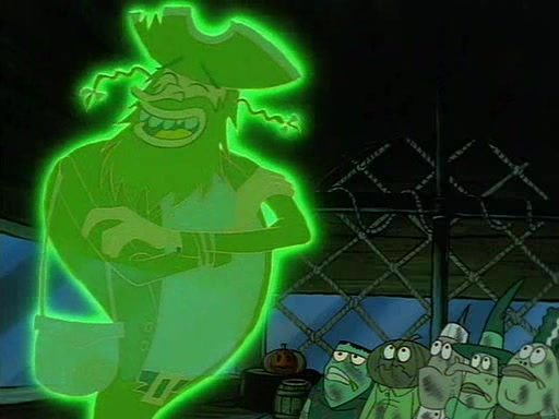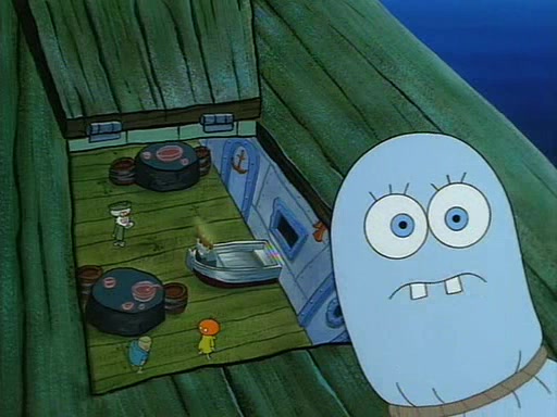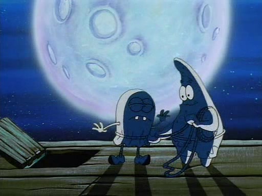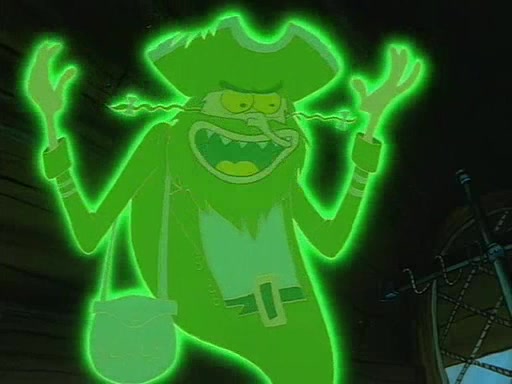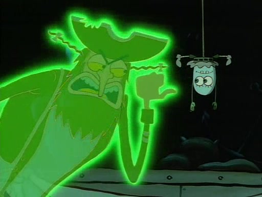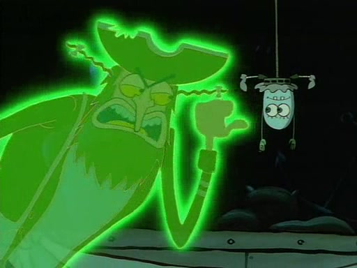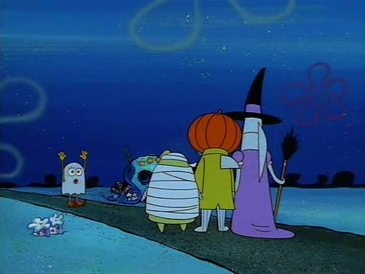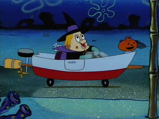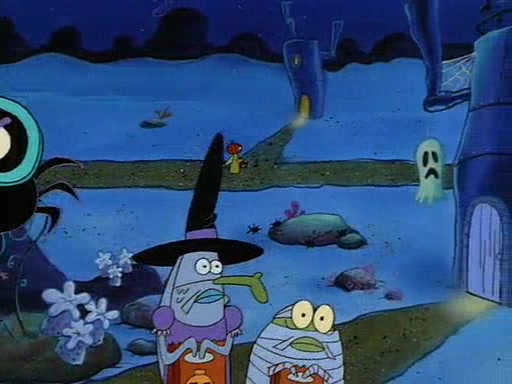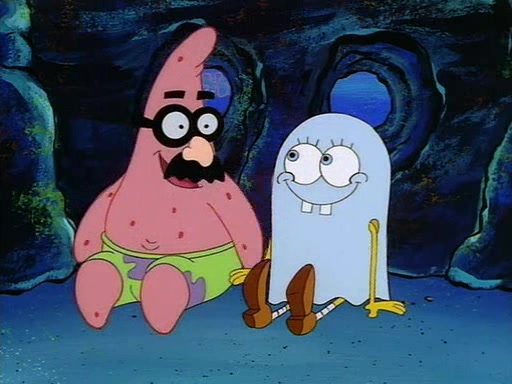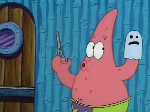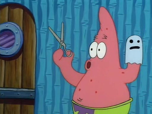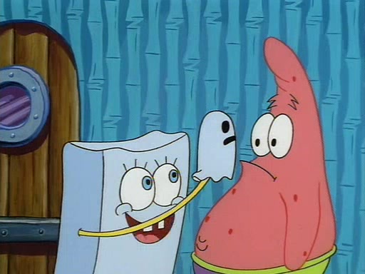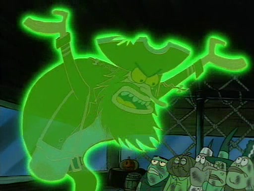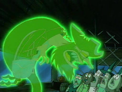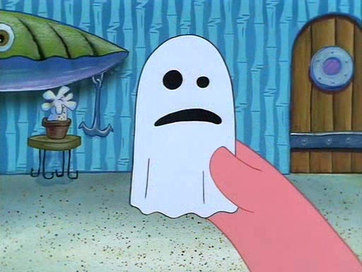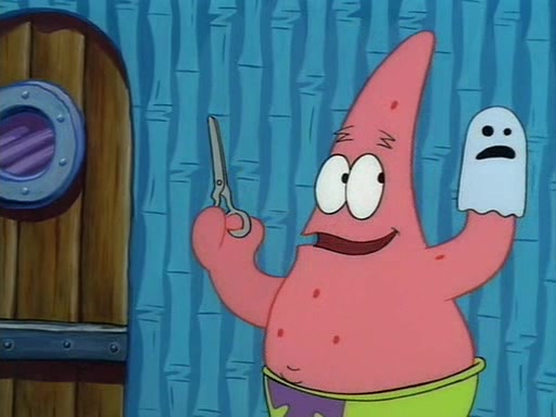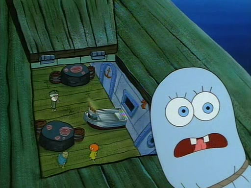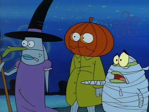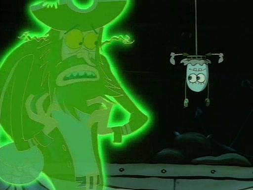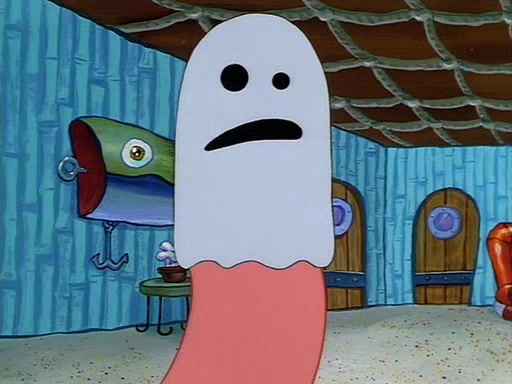 After being scared by Patrick, he asks him for help. They make a "Flying Dutchman" costume, but it fails to scare anyone. SpongeBob realizes that a real ghost has a round head, and that he has a square one. Patrick shaves SpongeBob's head, making it round. Believing themselves to be scary, SpongeBob and Patrick go around town attempting to scare people, and believe themselves to be successful in doing so, although their "victims" are simply confused by their antics.