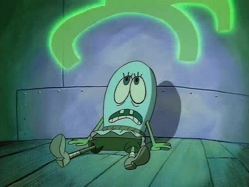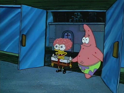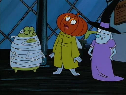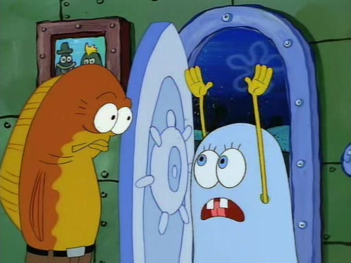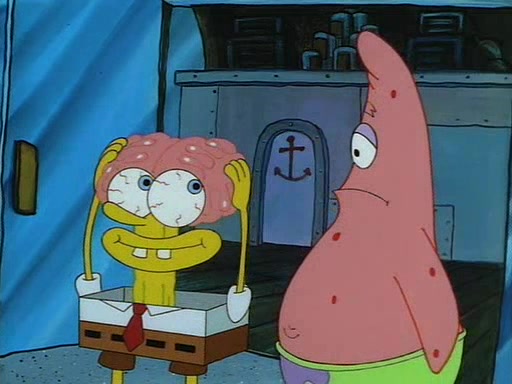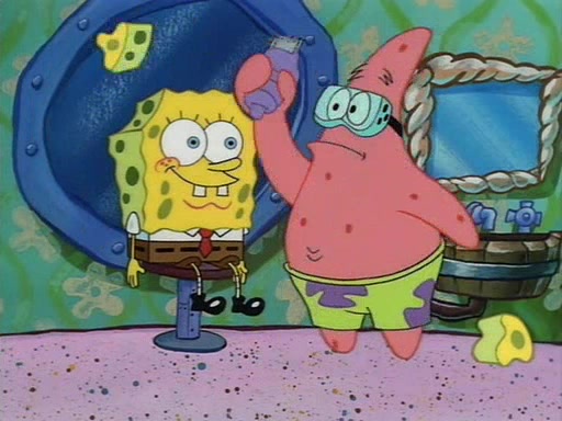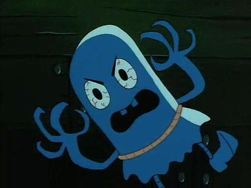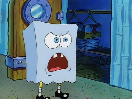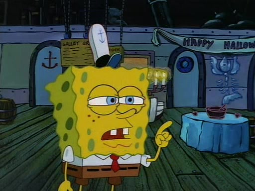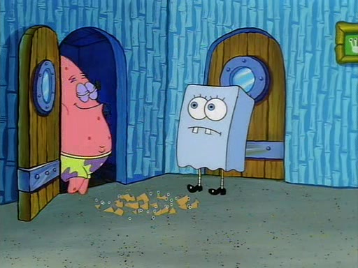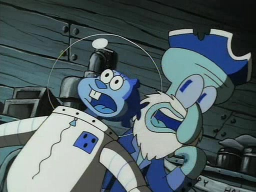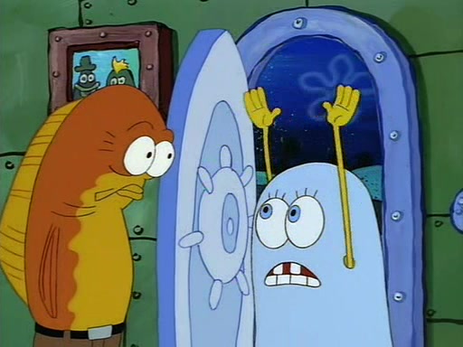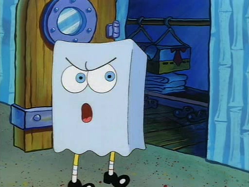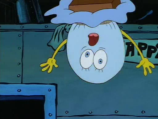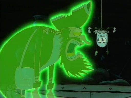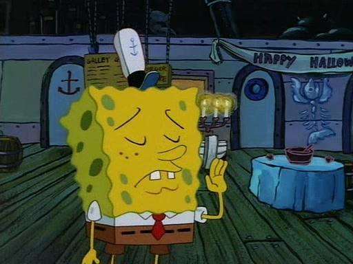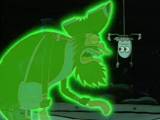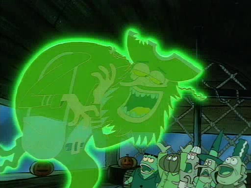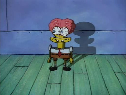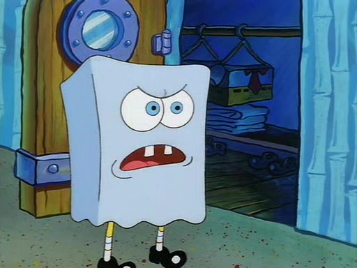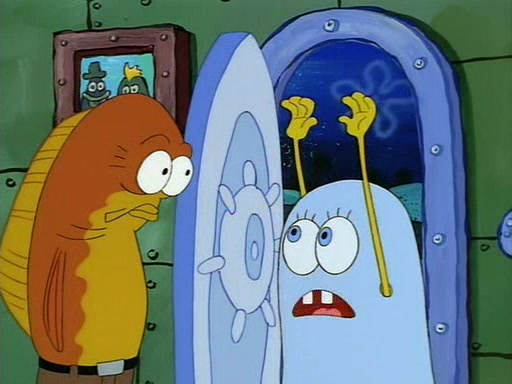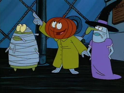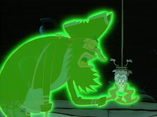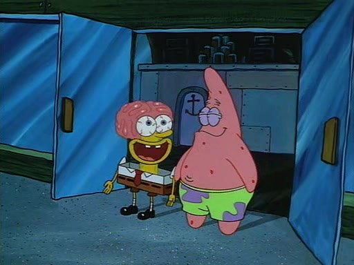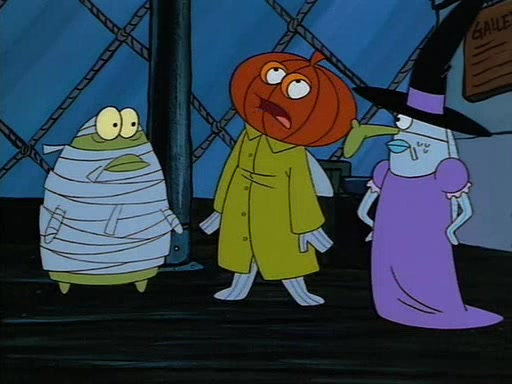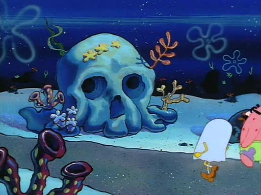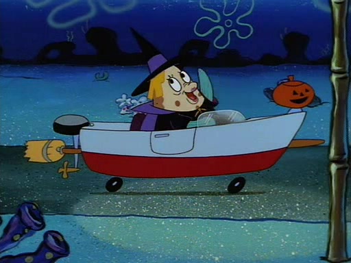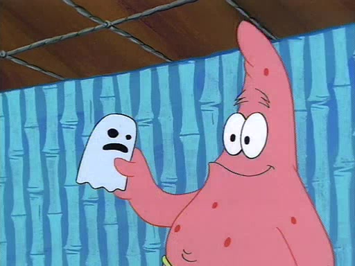 After being scared by Patrick, he asks him for help. They make a "Flying Dutchman" costume, but it fails to scare anyone. SpongeBob realizes that a real ghost has a round head, and that he has a square one. Patrick shaves SpongeBob's head, making it round. Believing themselves to be scary, SpongeBob and Patrick go around town attempting to scare people, and believe themselves to be successful in doing so, although their "victims" are simply confused by their antics.