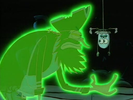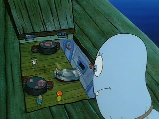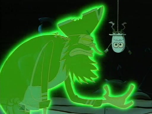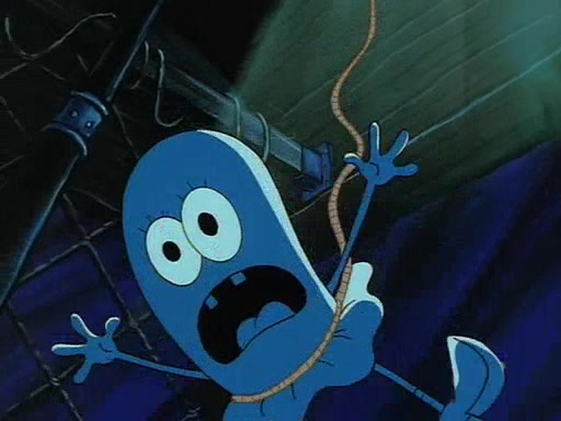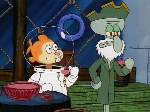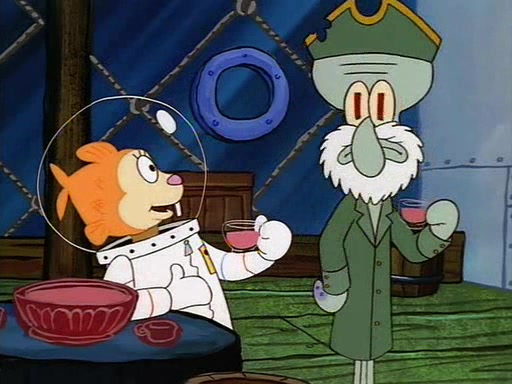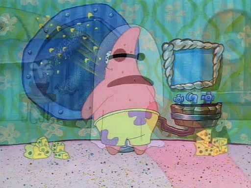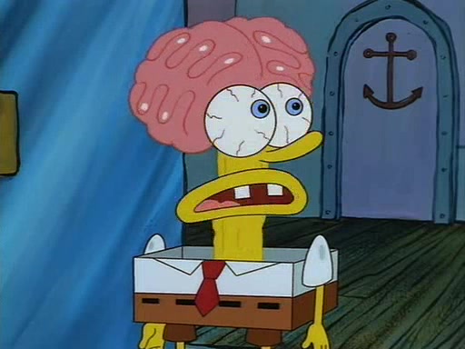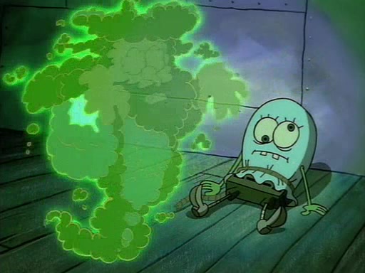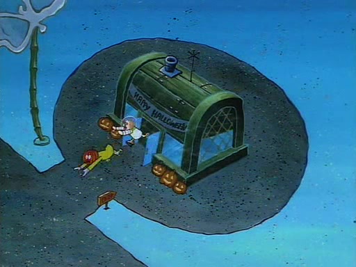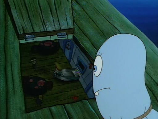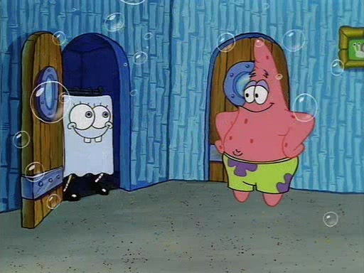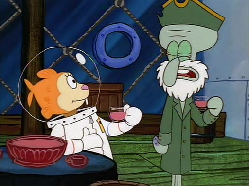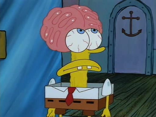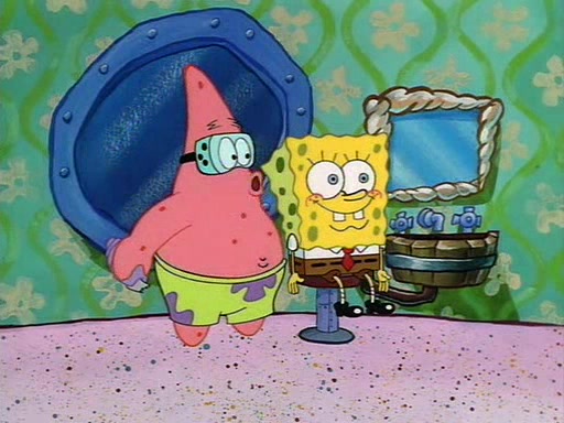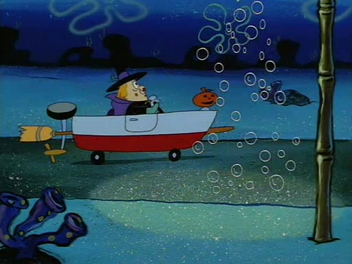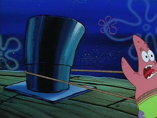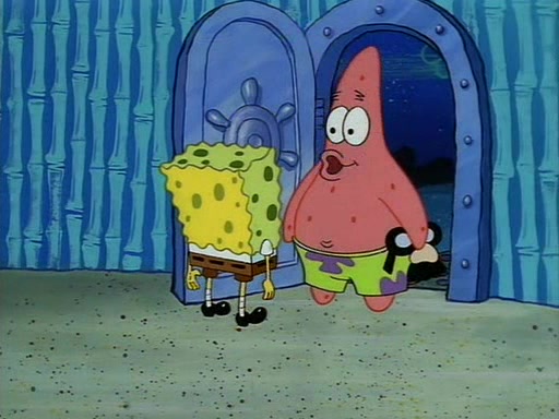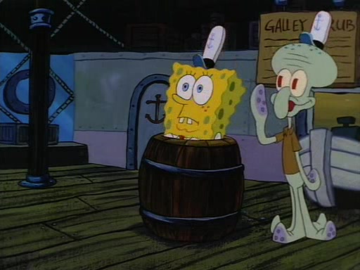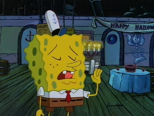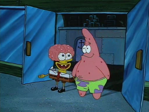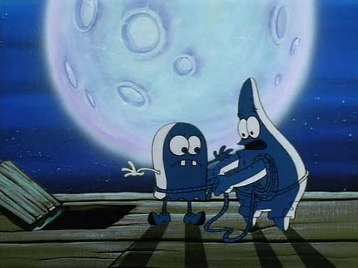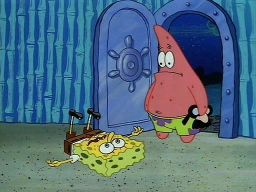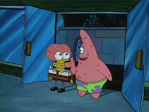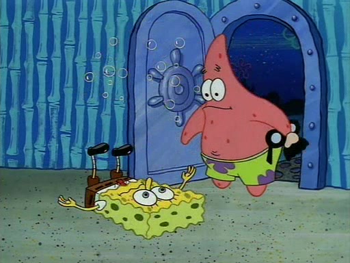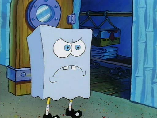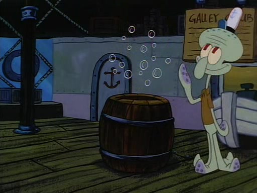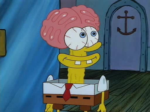 After being scared by Patrick, he asks him for help. They make a "Flying Dutchman" costume, but it fails to scare anyone. SpongeBob realizes that a real ghost has a round head, and that he has a square one. Patrick shaves SpongeBob's head, making it round. Believing themselves to be scary, SpongeBob and Patrick go around town attempting to scare people, and believe themselves to be successful in doing so, although their "victims" are simply confused by their antics.