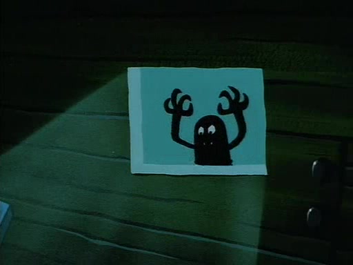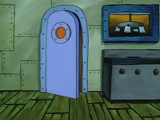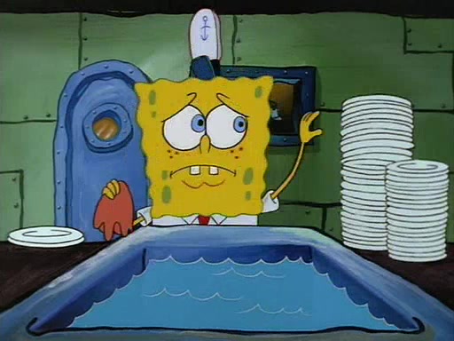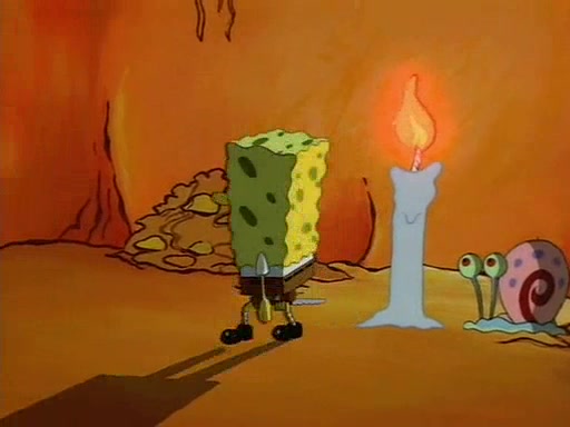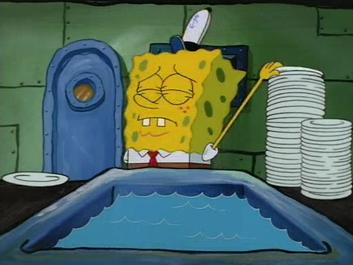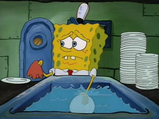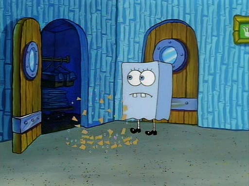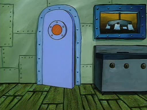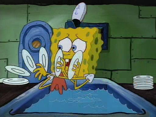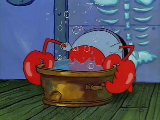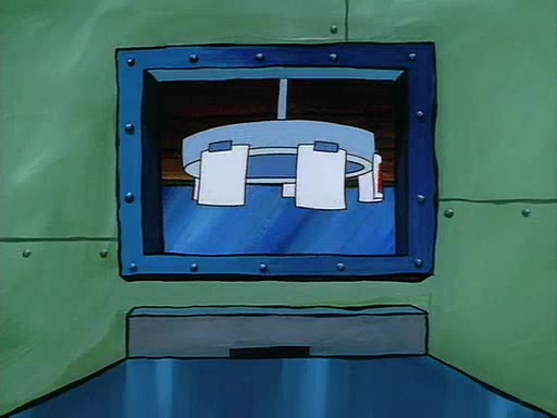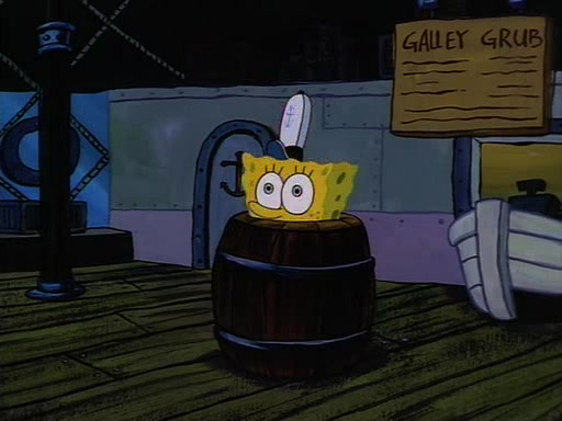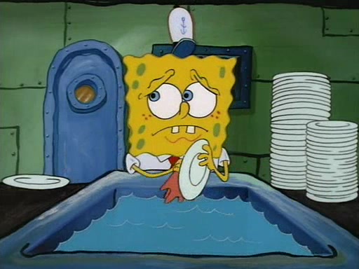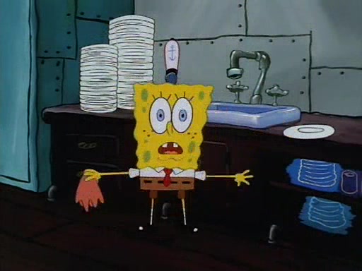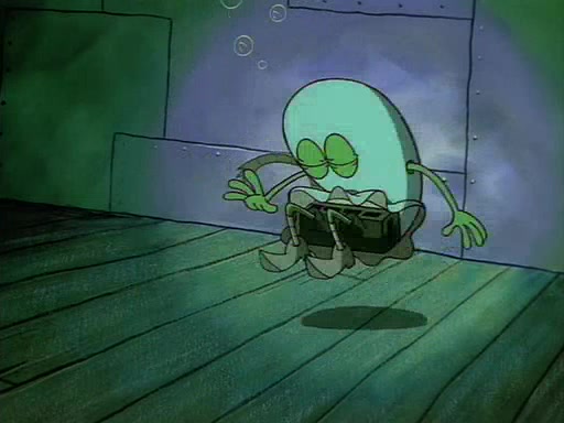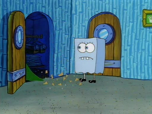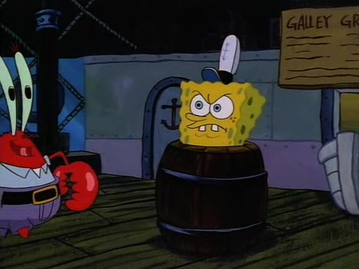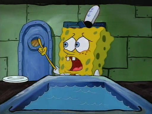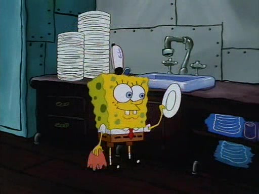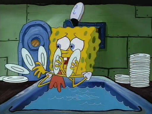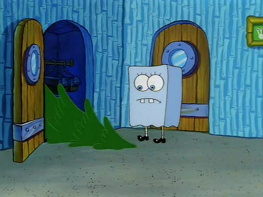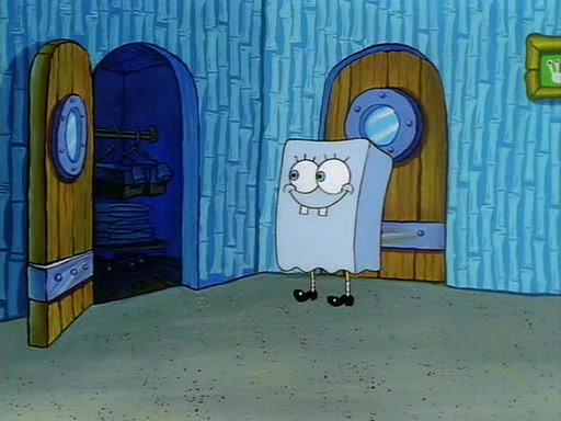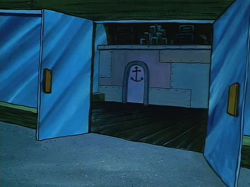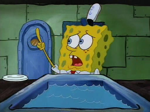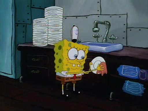 It's Halloween in Bikini Bottom, and SpongeBob is cleaning the dishes in the Krusty Krab at the end of the work day. He is frightened by the creepy door closing and a word (or possibly a message) reading "BOO" on the order slips.