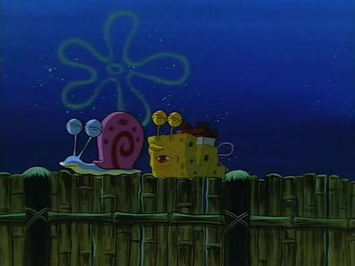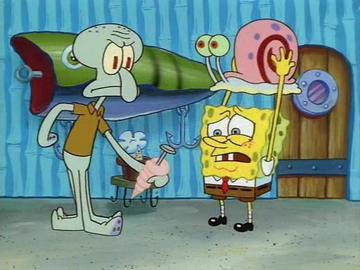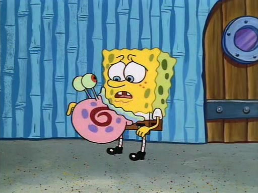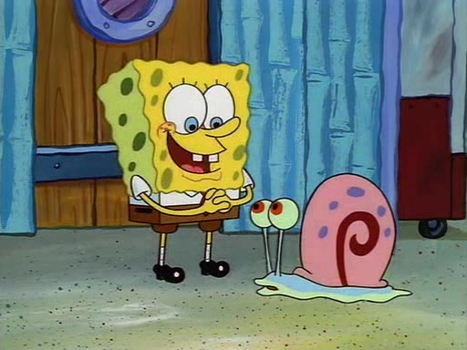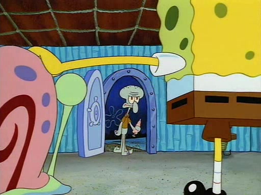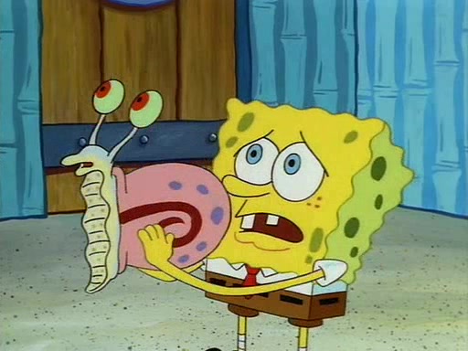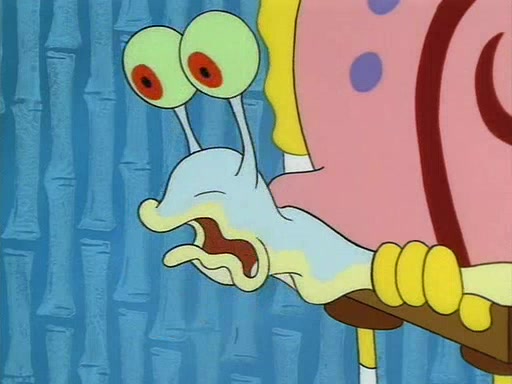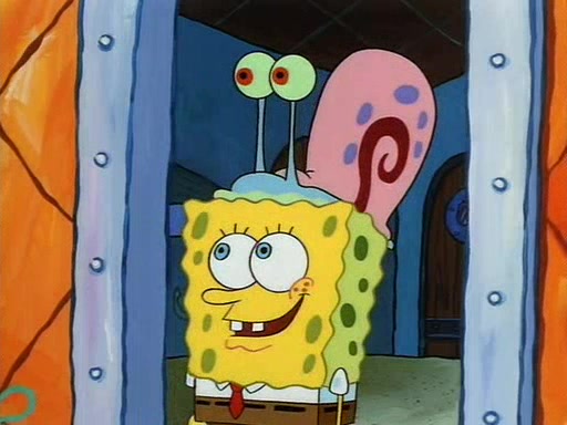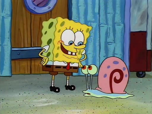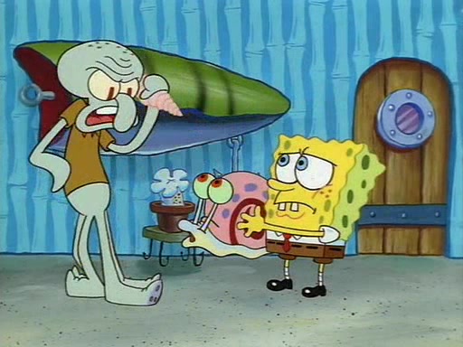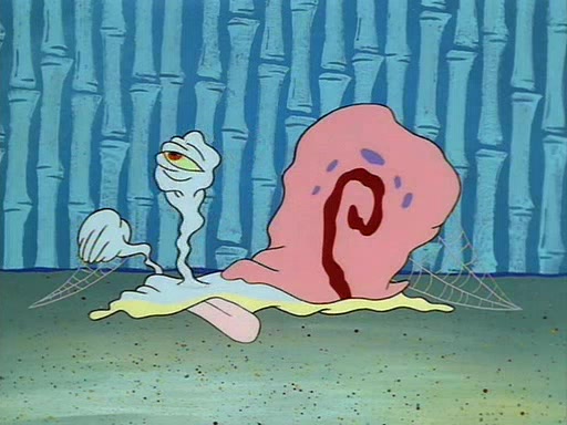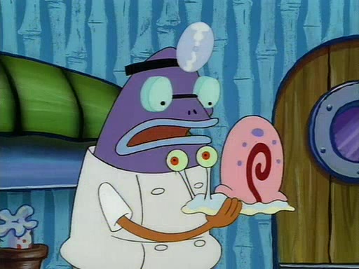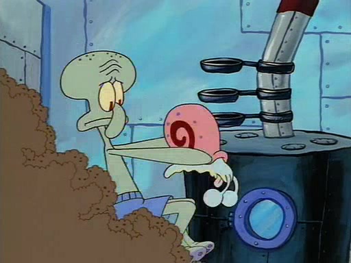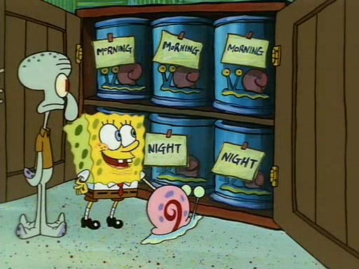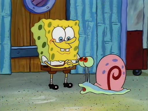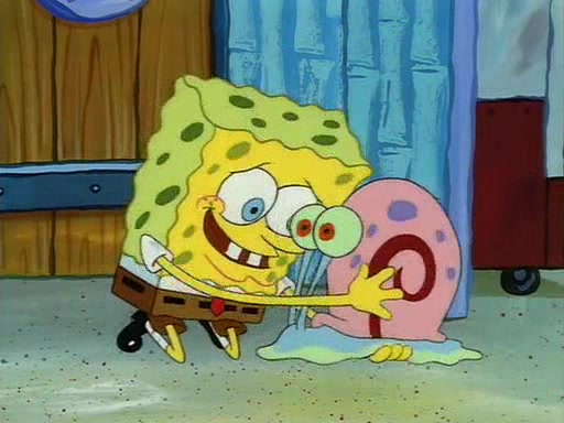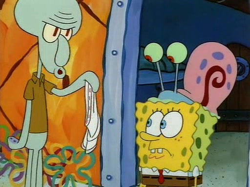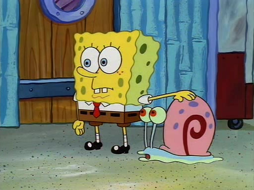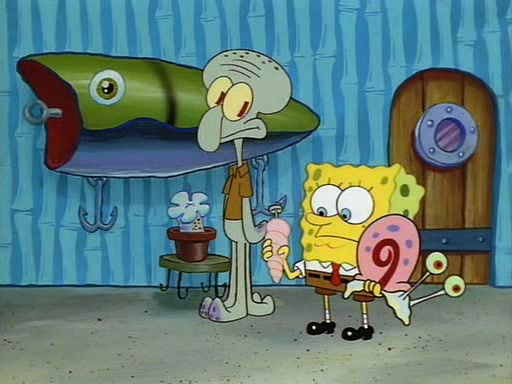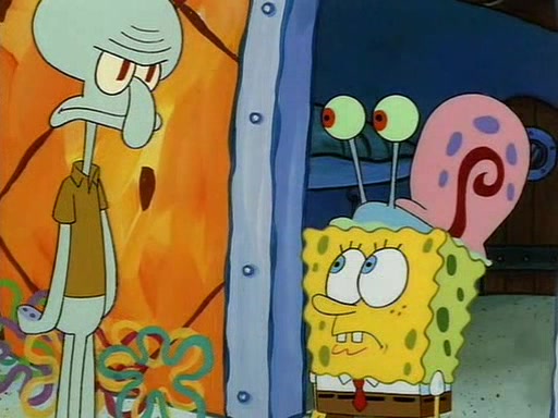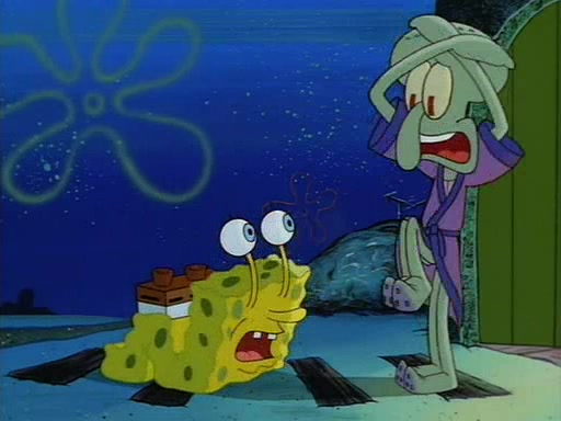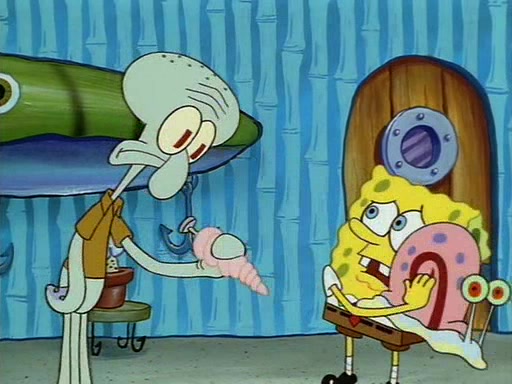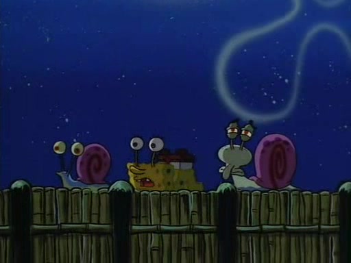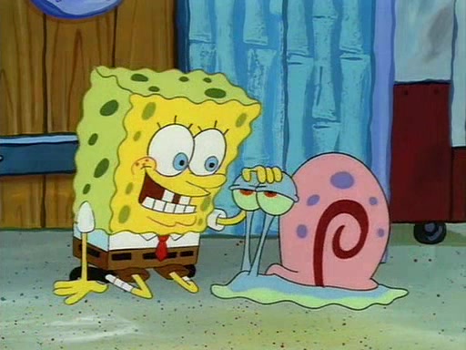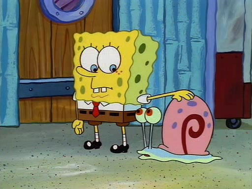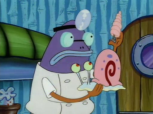 SpongeBob and Patrick are all set to leave for the jellyfishing convention in Ukelele Bottom that weekend. Realizing that he will not be able to take Gary, SpongeBob leaves Gary in Squidward's responsibility. SpongeBob takes Squidward around his house, telling him that he will have to feed Gary for three days. There are very large cans of snail food with the words "morning", "afternoon" and "night" written on them, so that Squidward will be able to keep track. Eager to get rid of both of them, Squidward lies and says that he will do it to get SpongeBob and Patrick to leave. They do, and Squidward runs out of SpongeBob's house and sits in a lounge chair for the whole weekend, thus ignoring Gary. He soaks up plenty of sun, but Gary is left in the house, looking longingly in the direction where SpongeBob left, horribly neglected. When SpongeBob gets back, Squidward suddenly remembers that he was supposed to take care of Gary. However, when he goes to get Gary, he finds him very sick, due to lack of food, water, and attention. Squidward, thinking he will be able to help, tried to give Gary some food. However, Gary is so weak from waiting for SpongeBob to come home, he is limp in Squidward's arms and will not eat. Squidward puts Gary down as he hears SpongeBob and Patrick saying goodbye to each other, and tries to force feed Gary. When he hears SpongeBob coming in, Squidward gives up and puts all of Gary's food into his mouth. He greets SpongeBob awkwardly, and explains that he was only checking on Gary. Just as Squidward is about to leave, a smirk on his face, Gary slowly enters the room. SpongeBob realizes that something is wrong, and quickly calls the local veterinarian, Dr. Gill Gilliam. He comes over to SpongeBob's house, and gives SpongeBob a syringe full of snail plasma. SpongeBob asks Squidward to give Gary the plasma, as he is squeamish. Squidward reluctantly agrees and, while trying to inject Gary, accidentally injects SpongeBob with snail plasma causing SpongeBob to worry about the consequences. Upon realizing that Gary only needed water, Squidward leaves telling SpongeBob not to worry. Sometime later, SpongeBob starts acting slow and somewhat like a snail, as well as eating Gary's food himself. When he goes to the bathroom, his eyes stretch out of his body and grow, his arms and legs disappear into his body, and his body reshapes itself. As a finished result SpongeBob has turned into a snail, becoming SpongeSnail. Afterwards, he goes over to Squidward's house to get help, but Squidward is terrified of the fact that SpongeBob turned into a snail because of his lousy aim and he throws the snail plasma away and he tries to reassure himself, but he hears SpongeSnail at the door and starts blocking the doors and windows and tries to run and hide from SpongeSnail. He chases him for help, but Squidward keeps running from his life thinking he's under attack which ultimately makes a mess of his house. Amongst the chaos, Squidward accidentally injects himself with the plasma, turning him into a snail as well, becoming SquidSnail. The ending has Gary, SpongeSnail and SquidSnail meowing to the tune of "Blow the man down" on top of a fence. Patrick, annoyed by this yells at them to clam up and throws a boot at SquidSnail. Gary and SpongeSnail continue to meow, but SquidSnail tries to meows the rest that ends after fading to black.