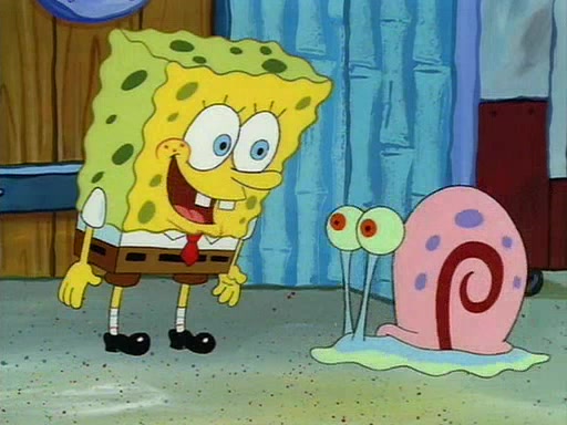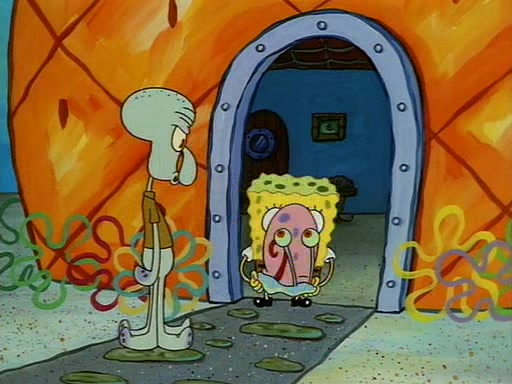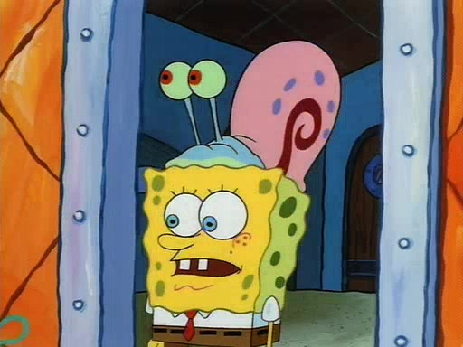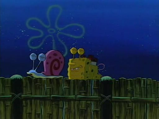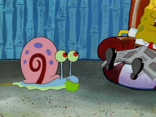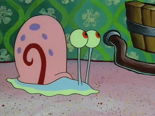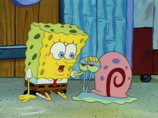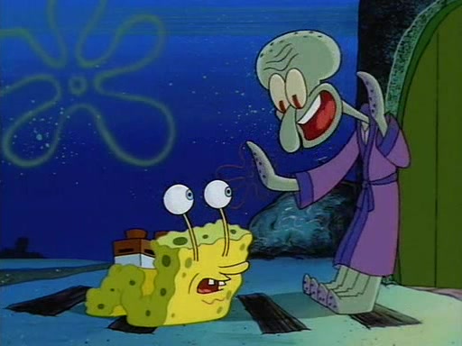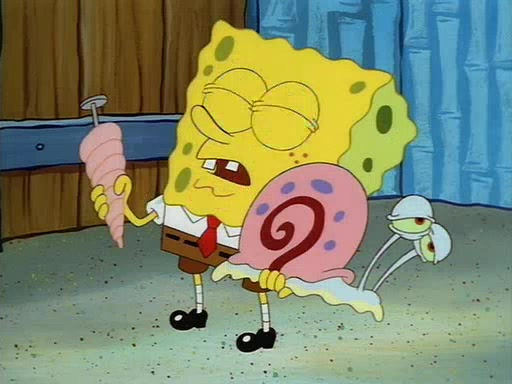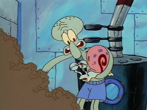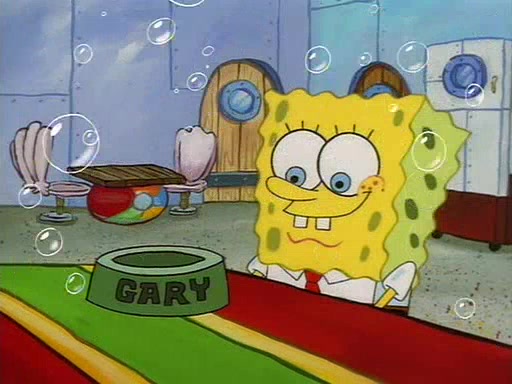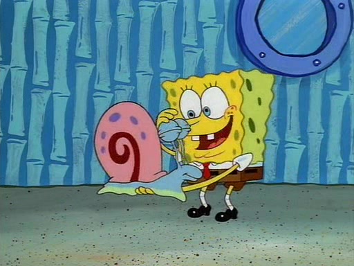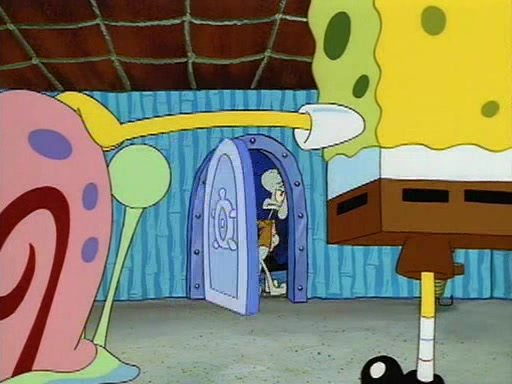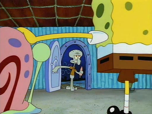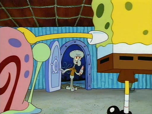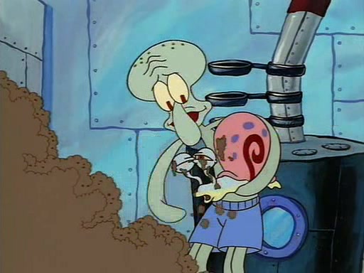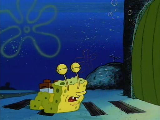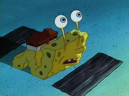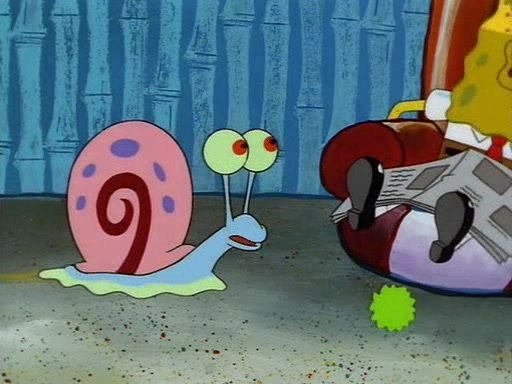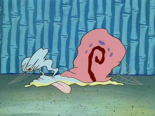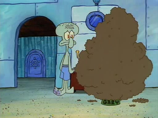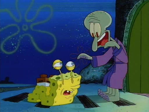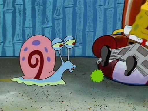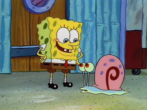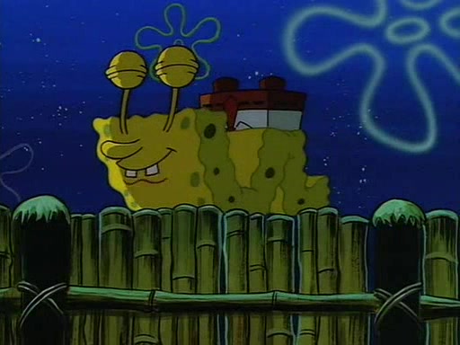 SpongeBob and Patrick are all set to leave for the jellyfishing convention in Ukelele Bottom that weekend. Realizing that he will not be able to take Gary, SpongeBob leaves Gary in Squidward's responsibility. SpongeBob takes Squidward around his house, telling him that he will have to feed Gary for three days. There are very large cans of snail food with the words "morning", "afternoon" and "night" written on them, so that Squidward will be able to keep track. Eager to get rid of both of them, Squidward lies and says that he will do it to get SpongeBob and Patrick to leave. They do, and Squidward runs out of SpongeBob's house and sits in a lounge chair for the whole weekend, thus ignoring Gary. He soaks up plenty of sun, but Gary is left in the house, looking longingly in the direction where SpongeBob left, horribly neglected. When SpongeBob gets back, Squidward suddenly remembers that he was supposed to take care of Gary. However, when he goes to get Gary, he finds him very sick, due to lack of food, water, and attention. Squidward, thinking he will be able to help, tried to give Gary some food. However, Gary is so weak from waiting for SpongeBob to come home, he is limp in Squidward's arms and will not eat. Squidward puts Gary down as he hears SpongeBob and Patrick saying goodbye to each other, and tries to force feed Gary. When he hears SpongeBob coming in, Squidward gives up and puts all of Gary's food into his mouth. He greets SpongeBob awkwardly, and explains that he was only checking on Gary. Just as Squidward is about to leave, a smirk on his face, Gary slowly enters the room. SpongeBob realizes that something is wrong, and quickly calls the local veterinarian, Dr. Gill Gilliam. He comes over to SpongeBob's house, and gives SpongeBob a syringe full of snail plasma. SpongeBob asks Squidward to give Gary the plasma, as he is squeamish. Squidward reluctantly agrees and, while trying to inject Gary, accidentally injects SpongeBob with snail plasma causing SpongeBob to worry about the consequences. Upon realizing that Gary only needed water, Squidward leaves telling SpongeBob not to worry. Sometime later, SpongeBob starts acting slow and somewhat like a snail, as well as eating Gary's food himself. When he goes to the bathroom, his eyes stretch out of his body and grow, his arms and legs disappear into his body, and his body reshapes itself. As a finished result SpongeBob has turned into a snail, becoming SpongeSnail. Afterwards, he goes over to Squidward's house to get help, but Squidward is terrified of the fact that SpongeBob turned into a snail because of his lousy aim and he throws the snail plasma away and he tries to reassure himself, but he hears SpongeSnail at the door and starts blocking the doors and windows and tries to run and hide from SpongeSnail. He chases him for help, but Squidward keeps running from his life thinking he's under attack which ultimately makes a mess of his house. Amongst the chaos, Squidward accidentally injects himself with the plasma, turning him into a snail as well, becoming SquidSnail. The ending has Gary, SpongeSnail and SquidSnail meowing to the tune of "Blow the man down" on top of a fence. Patrick, annoyed by this yells at them to clam up and throws a boot at SquidSnail. Gary and SpongeSnail continue to meow, but SquidSnail tries to meows the rest that ends after fading to black.