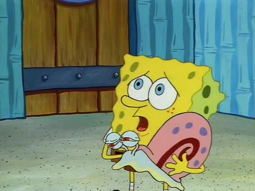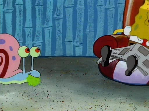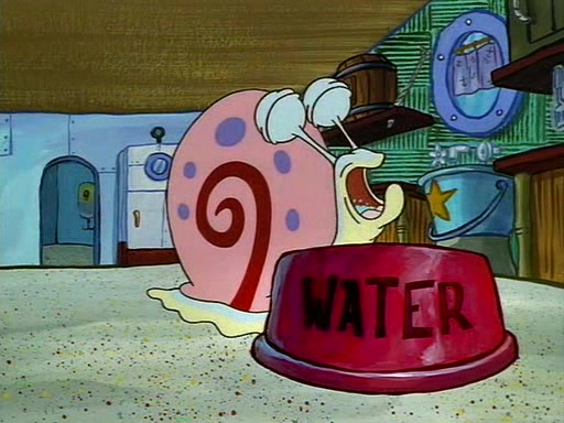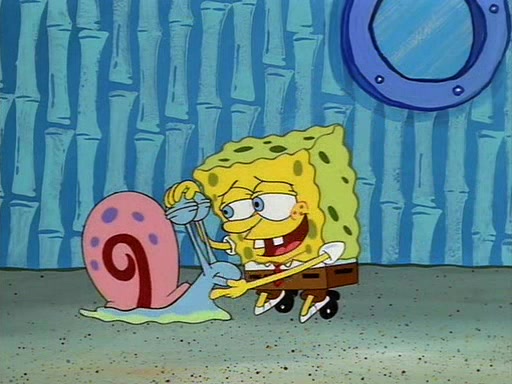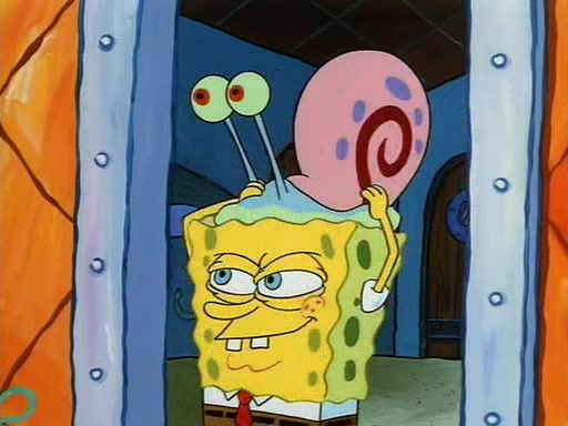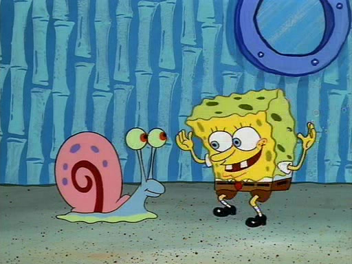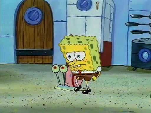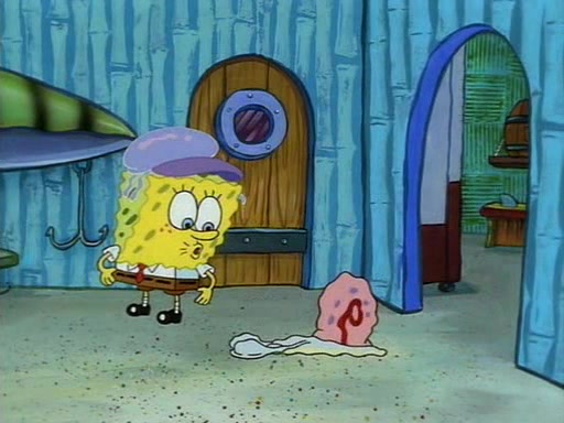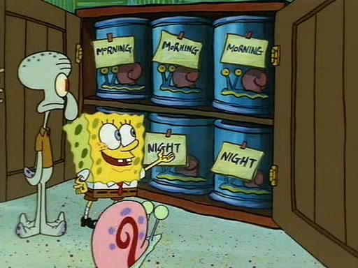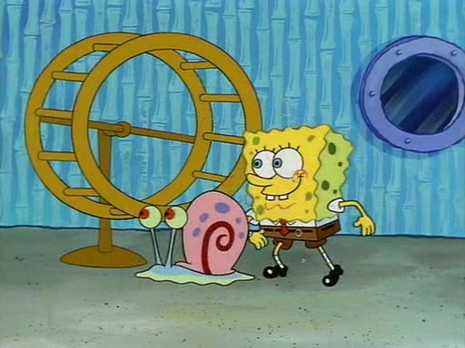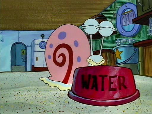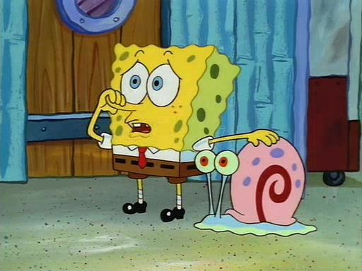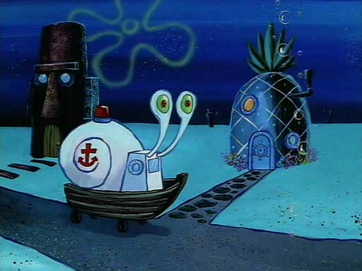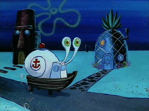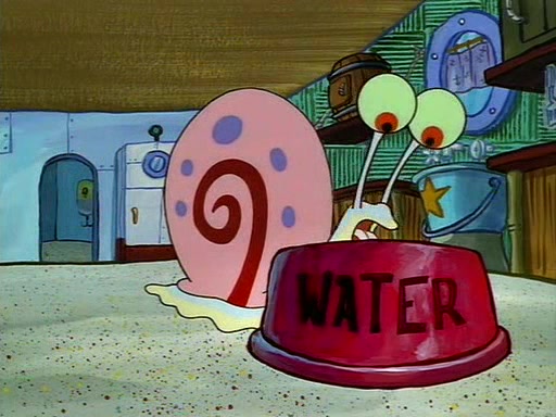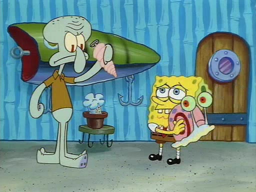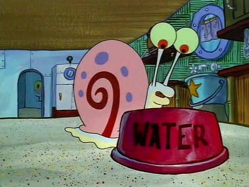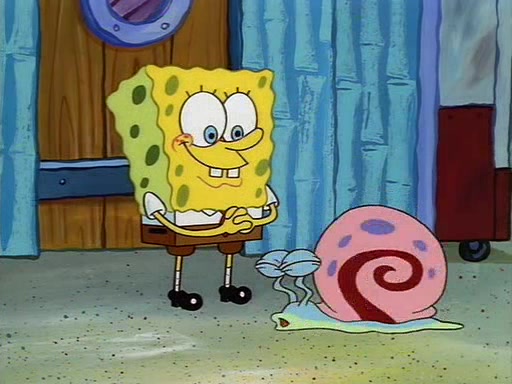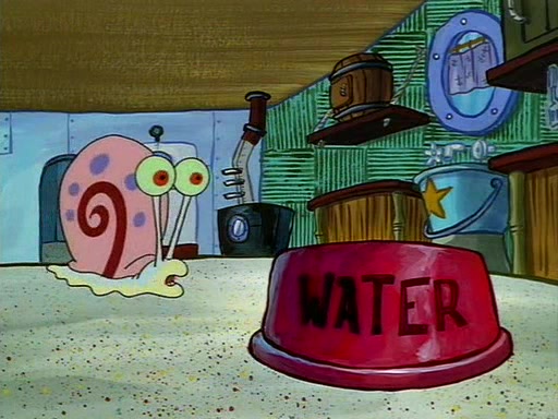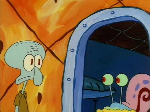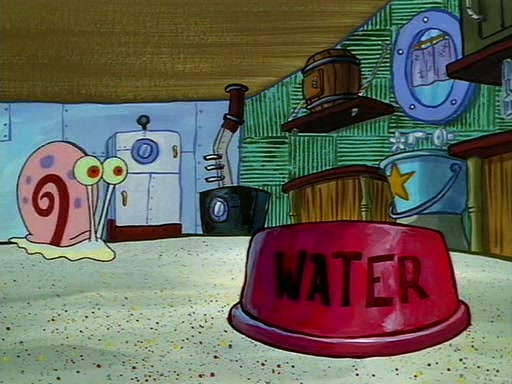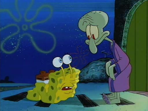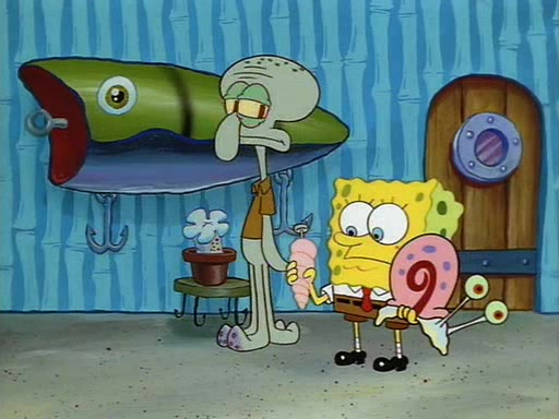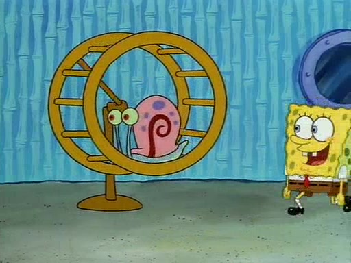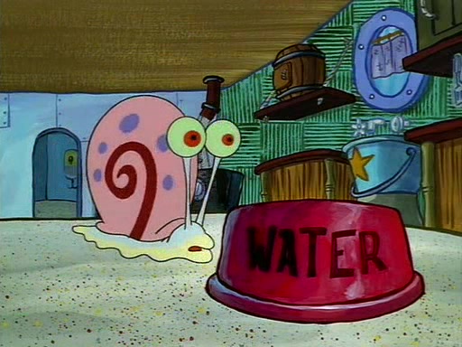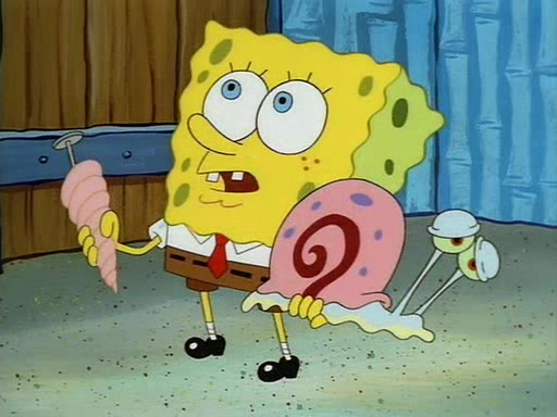 SpongeBob and Patrick are all set to leave for the jellyfishing convention in Ukelele Bottom that weekend. Realizing that he will not be able to take Gary, SpongeBob leaves Gary in Squidward's responsibility. SpongeBob takes Squidward around his house, telling him that he will have to feed Gary for three days. There are very large cans of snail food with the words "morning", "afternoon" and "night" written on them, so that Squidward will be able to keep track. Eager to get rid of both of them, Squidward lies and says that he will do it to get SpongeBob and Patrick to leave. They do, and Squidward runs out of SpongeBob's house and sits in a lounge chair for the whole weekend, thus ignoring Gary. He soaks up plenty of sun, but Gary is left in the house, looking longingly in the direction where SpongeBob left, horribly neglected. When SpongeBob gets back, Squidward suddenly remembers that he was supposed to take care of Gary. However, when he goes to get Gary, he finds him very sick, due to lack of food, water, and attention. Squidward, thinking he will be able to help, tried to give Gary some food. However, Gary is so weak from waiting for SpongeBob to come home, he is limp in Squidward's arms and will not eat. Squidward puts Gary down as he hears SpongeBob and Patrick saying goodbye to each other, and tries to force feed Gary. When he hears SpongeBob coming in, Squidward gives up and puts all of Gary's food into his mouth. He greets SpongeBob awkwardly, and explains that he was only checking on Gary. Just as Squidward is about to leave, a smirk on his face, Gary slowly enters the room. SpongeBob realizes that something is wrong, and quickly calls the local veterinarian, Dr. Gill Gilliam. He comes over to SpongeBob's house, and gives SpongeBob a syringe full of snail plasma. SpongeBob asks Squidward to give Gary the plasma, as he is squeamish. Squidward reluctantly agrees and, while trying to inject Gary, accidentally injects SpongeBob with snail plasma causing SpongeBob to worry about the consequences. Upon realizing that Gary only needed water, Squidward leaves telling SpongeBob not to worry. Sometime later, SpongeBob starts acting slow and somewhat like a snail, as well as eating Gary's food himself. When he goes to the bathroom, his eyes stretch out of his body and grow, his arms and legs disappear into his body, and his body reshapes itself. As a finished result SpongeBob has turned into a snail, becoming SpongeSnail. Afterwards, he goes over to Squidward's house to get help, but Squidward is terrified of the fact that SpongeBob turned into a snail because of his lousy aim and he throws the snail plasma away and he tries to reassure himself, but he hears SpongeSnail at the door and starts blocking the doors and windows and tries to run and hide from SpongeSnail. He chases him for help, but Squidward keeps running from his life thinking he's under attack which ultimately makes a mess of his house. Amongst the chaos, Squidward accidentally injects himself with the plasma, turning him into a snail as well, becoming SquidSnail. The ending has Gary, SpongeSnail and SquidSnail meowing to the tune of "Blow the man down" on top of a fence. Patrick, annoyed by this yells at them to clam up and throws a boot at SquidSnail. Gary and SpongeSnail continue to meow, but SquidSnail tries to meows the rest that ends after fading to black.