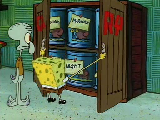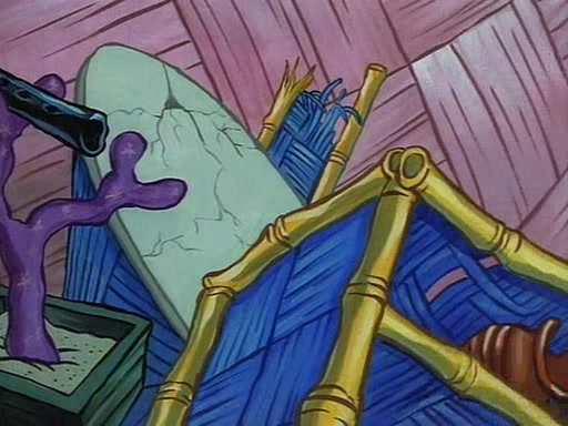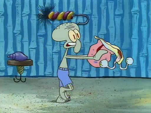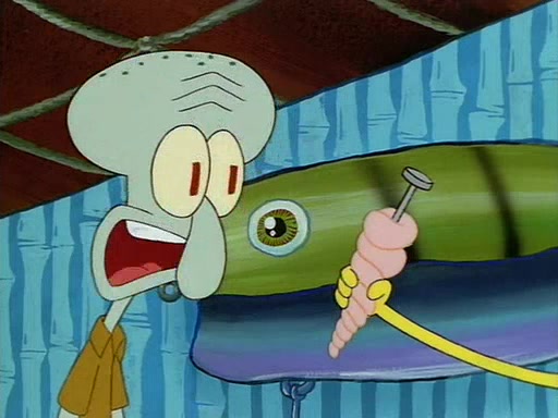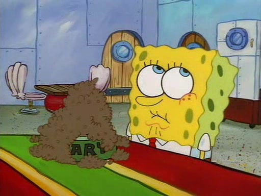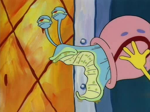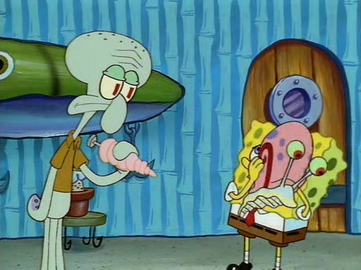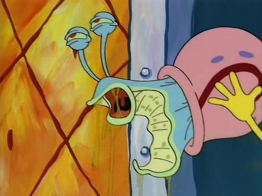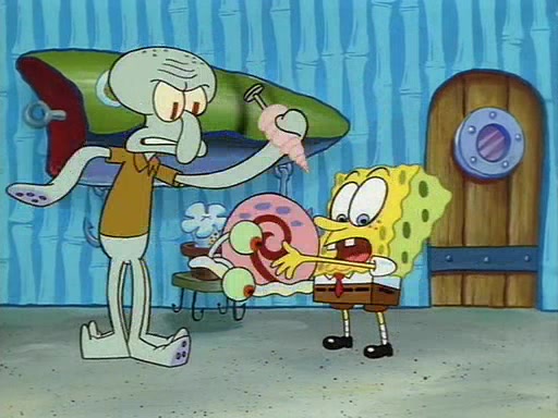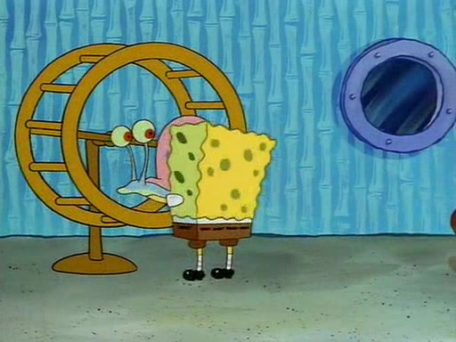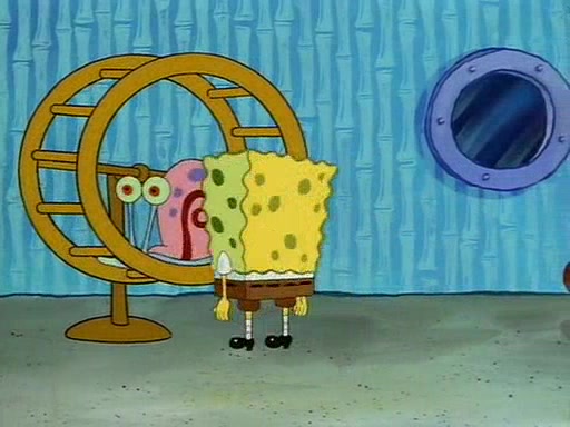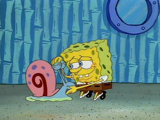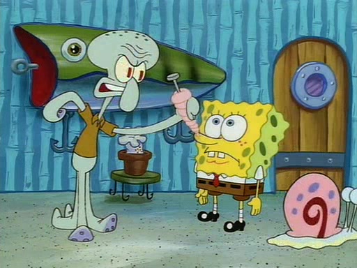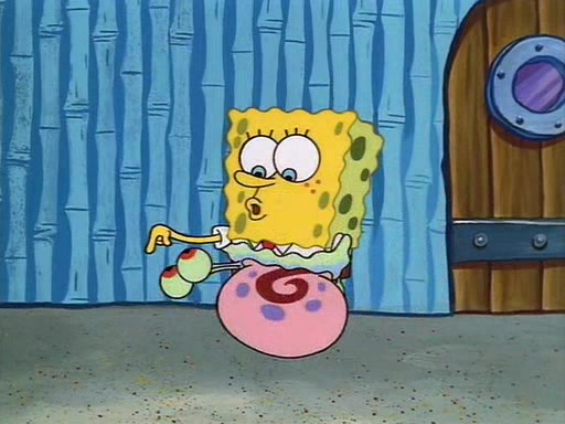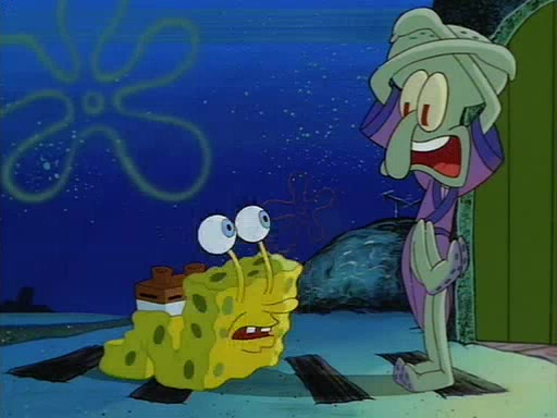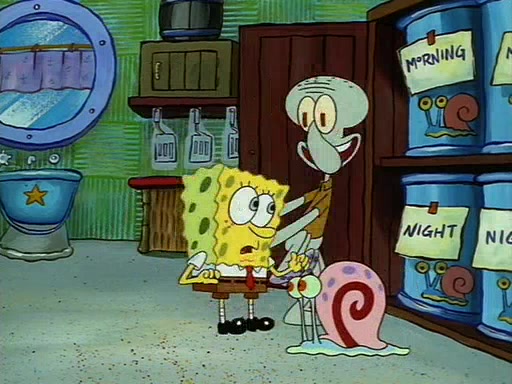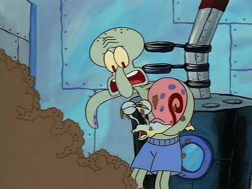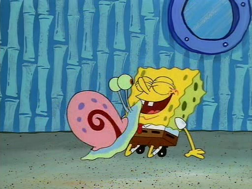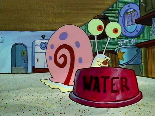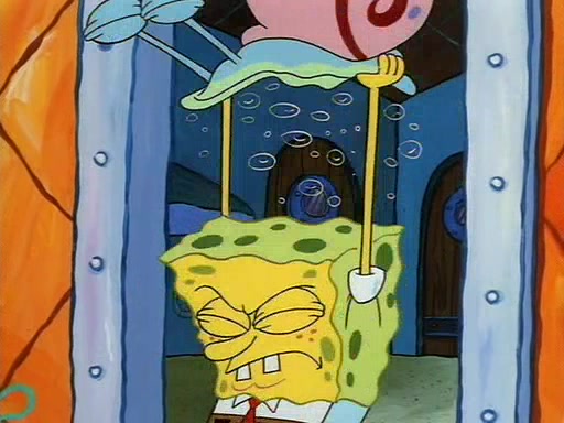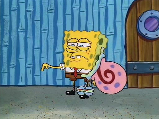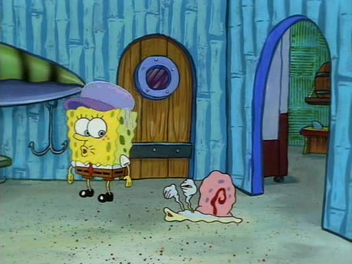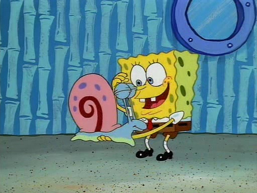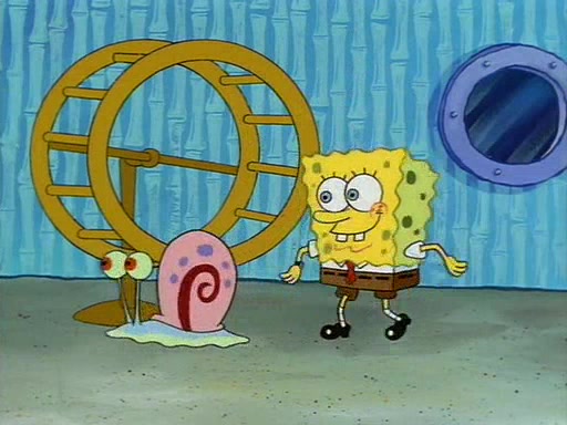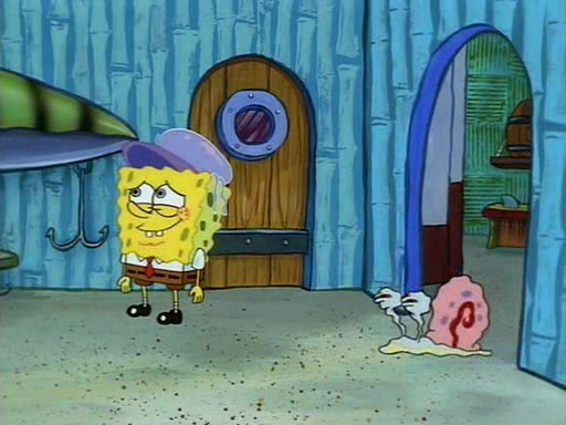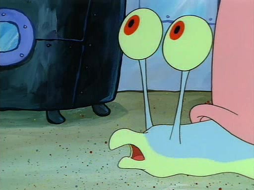 SpongeBob and Patrick are all set to leave for the jellyfishing convention in Ukelele Bottom that weekend. Realizing that he will not be able to take Gary, SpongeBob leaves Gary in Squidward's responsibility. SpongeBob takes Squidward around his house, telling him that he will have to feed Gary for three days. There are very large cans of snail food with the words "morning", "afternoon" and "night" written on them, so that Squidward will be able to keep track. Eager to get rid of both of them, Squidward lies and says that he will do it to get SpongeBob and Patrick to leave. They do, and Squidward runs out of SpongeBob's house and sits in a lounge chair for the whole weekend, thus ignoring Gary. He soaks up plenty of sun, but Gary is left in the house, looking longingly in the direction where SpongeBob left, horribly neglected. When SpongeBob gets back, Squidward suddenly remembers that he was supposed to take care of Gary. However, when he goes to get Gary, he finds him very sick, due to lack of food, water, and attention. Squidward, thinking he will be able to help, tried to give Gary some food. However, Gary is so weak from waiting for SpongeBob to come home, he is limp in Squidward's arms and will not eat. Squidward puts Gary down as he hears SpongeBob and Patrick saying goodbye to each other, and tries to force feed Gary. When he hears SpongeBob coming in, Squidward gives up and puts all of Gary's food into his mouth. He greets SpongeBob awkwardly, and explains that he was only checking on Gary. Just as Squidward is about to leave, a smirk on his face, Gary slowly enters the room. SpongeBob realizes that something is wrong, and quickly calls the local veterinarian, Dr. Gill Gilliam. He comes over to SpongeBob's house, and gives SpongeBob a syringe full of snail plasma. SpongeBob asks Squidward to give Gary the plasma, as he is squeamish. Squidward reluctantly agrees and, while trying to inject Gary, accidentally injects SpongeBob with snail plasma causing SpongeBob to worry about the consequences. Upon realizing that Gary only needed water, Squidward leaves telling SpongeBob not to worry. Sometime later, SpongeBob starts acting slow and somewhat like a snail, as well as eating Gary's food himself. When he goes to the bathroom, his eyes stretch out of his body and grow, his arms and legs disappear into his body, and his body reshapes itself. As a finished result SpongeBob has turned into a snail, becoming SpongeSnail. Afterwards, he goes over to Squidward's house to get help, but Squidward is terrified of the fact that SpongeBob turned into a snail because of his lousy aim and he throws the snail plasma away and he tries to reassure himself, but he hears SpongeSnail at the door and starts blocking the doors and windows and tries to run and hide from SpongeSnail. He chases him for help, but Squidward keeps running from his life thinking he's under attack which ultimately makes a mess of his house. Amongst the chaos, Squidward accidentally injects himself with the plasma, turning him into a snail as well, becoming SquidSnail. The ending has Gary, SpongeSnail and SquidSnail meowing to the tune of "Blow the man down" on top of a fence. Patrick, annoyed by this yells at them to clam up and throws a boot at SquidSnail. Gary and SpongeSnail continue to meow, but SquidSnail tries to meows the rest that ends after fading to black.