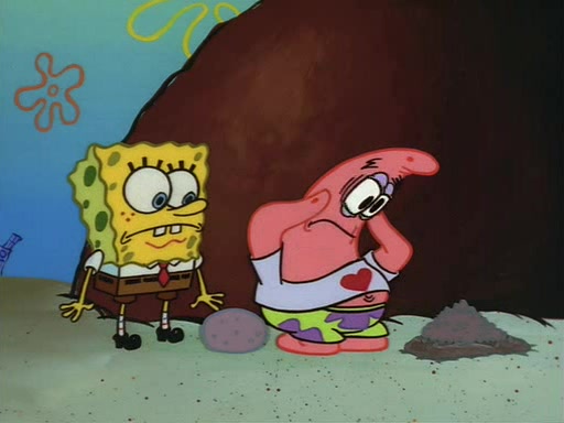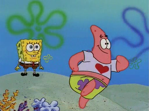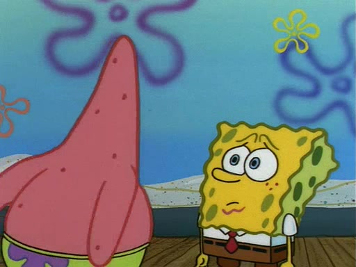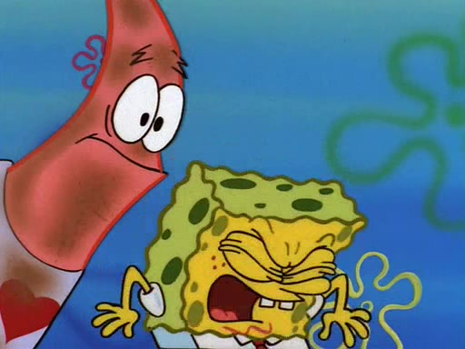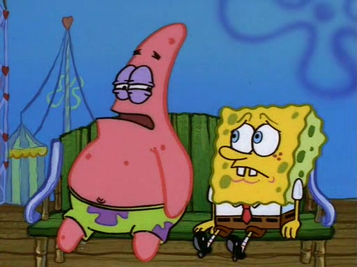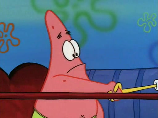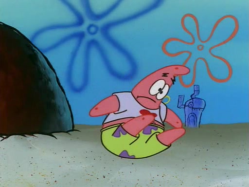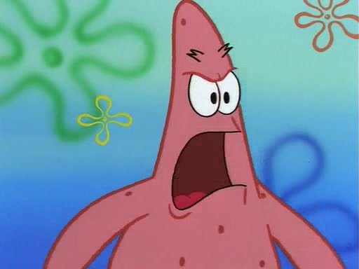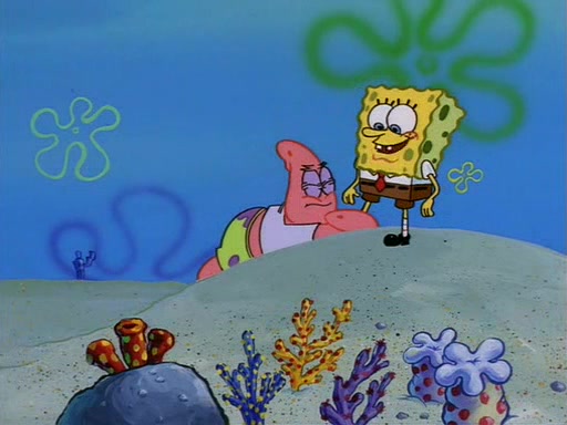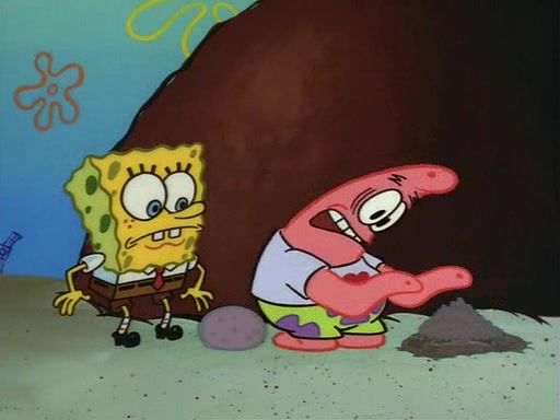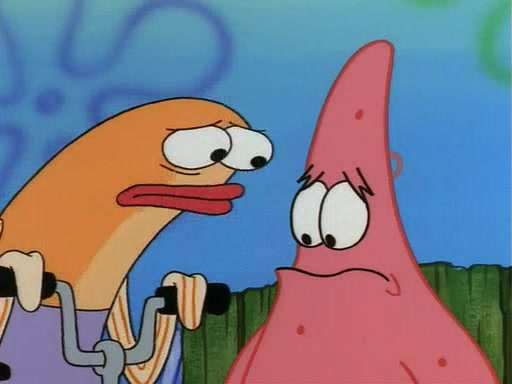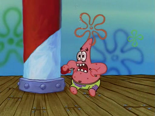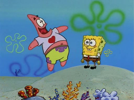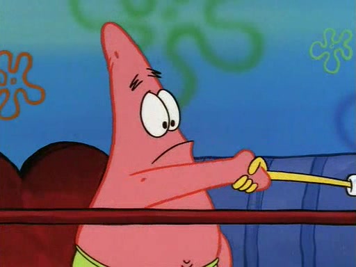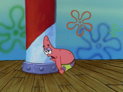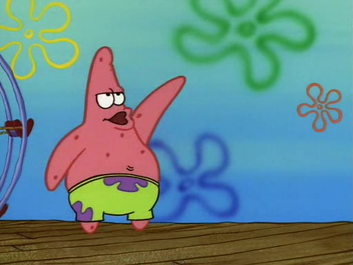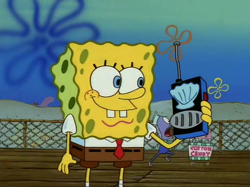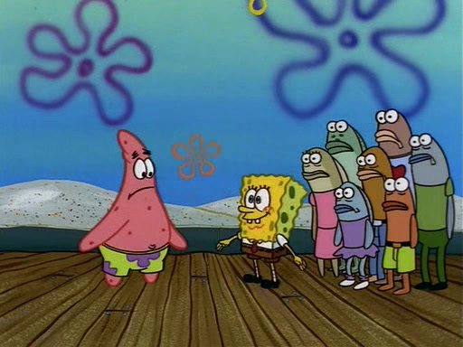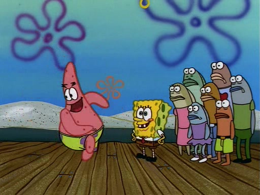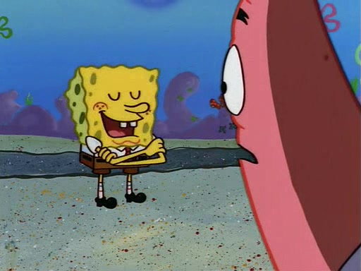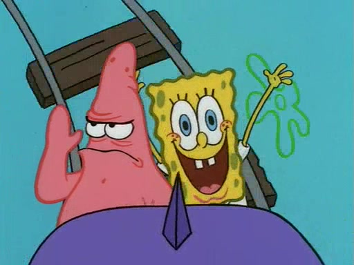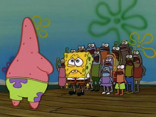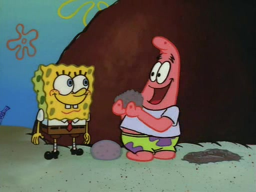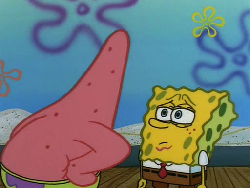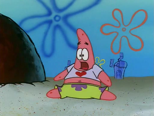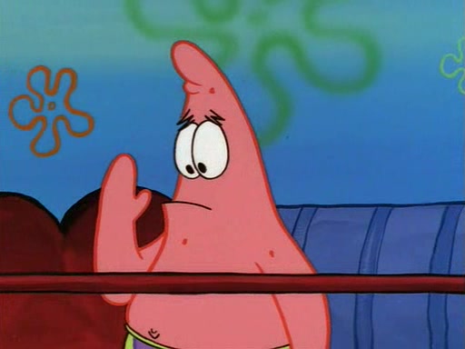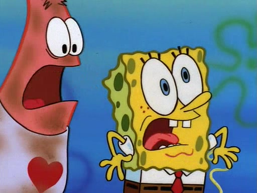 When Patrick sees many other people, including complete strangers (one man only asks for the time), thanking SpongeBob for his gifts to them, he is pushed off the deep end and goes on a rampage. He begins destroying the carnival and corners everyone there, including SpongeBob, seemingly with the intention of killing them all. Before he gets the chance, however, Sandy arrives, having tamed the scallops, who are now helping to keep her balloon afloat. Upon seeing this, Patrick takes a bite of his present, causing it to pop and covering the carnival in chocolate. Smiling at SpongeBob and completely forgetting his anger, Patrick joyfully says, "Aww, SpongeBob, you didn't have to get me anything.".