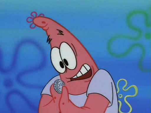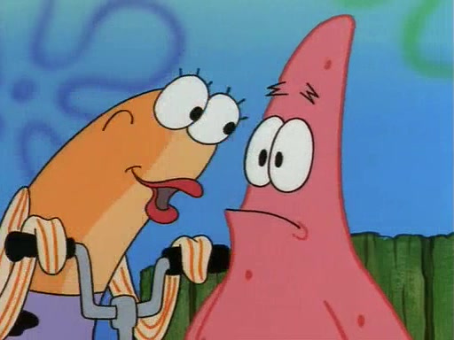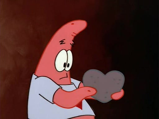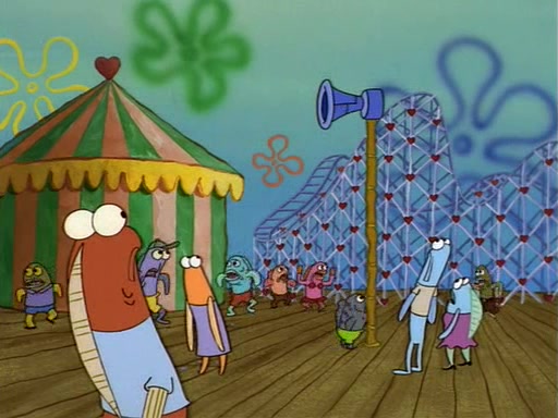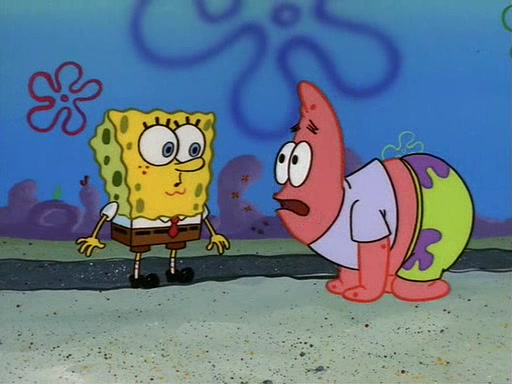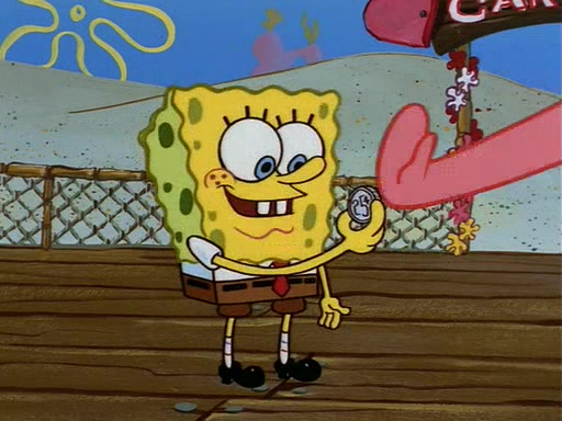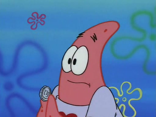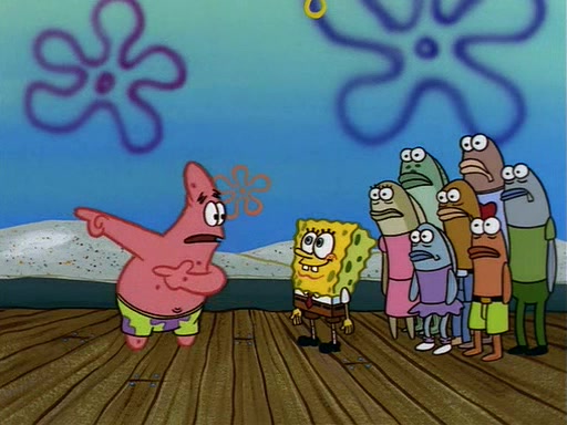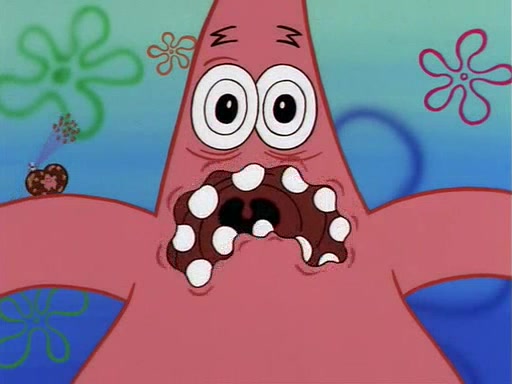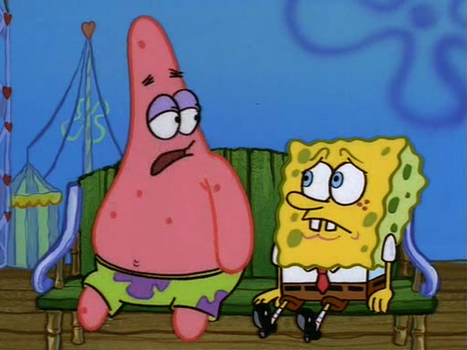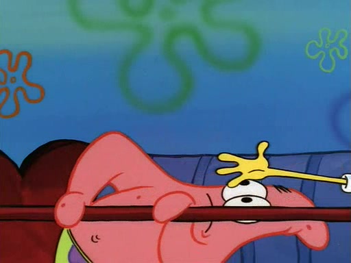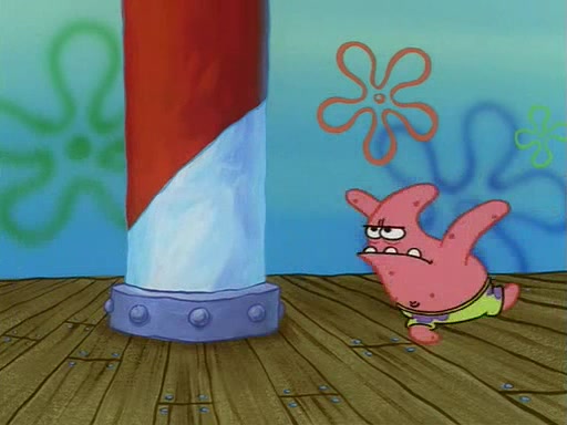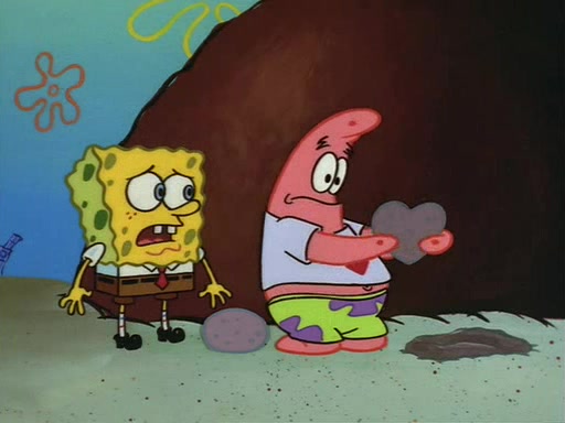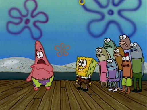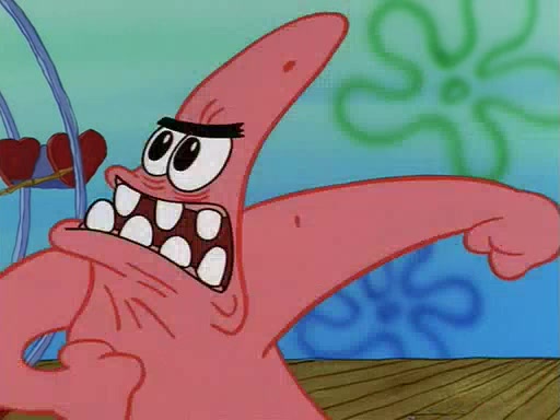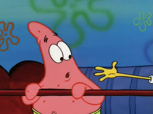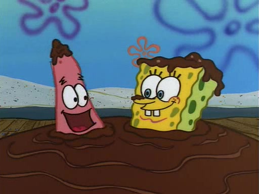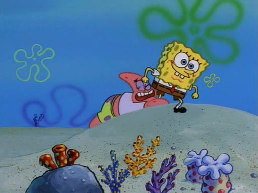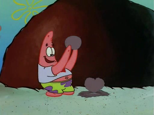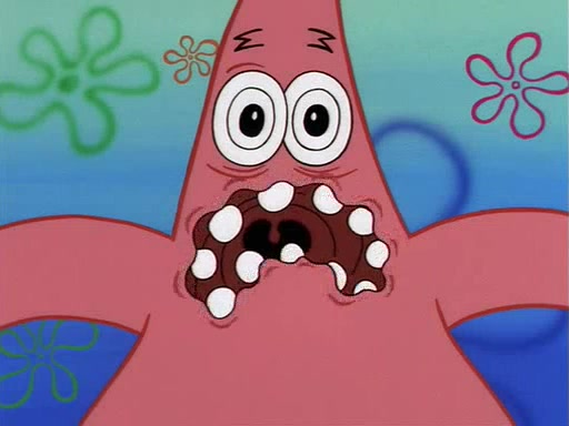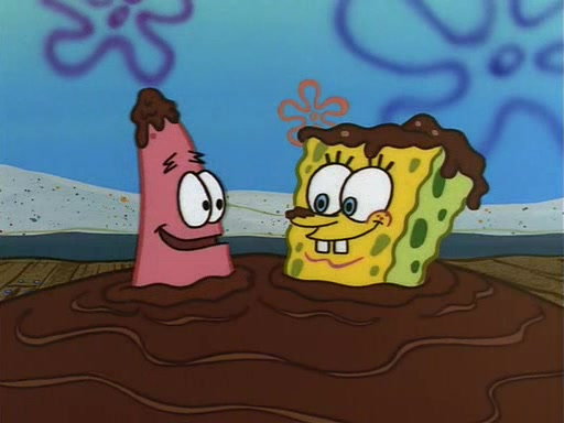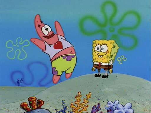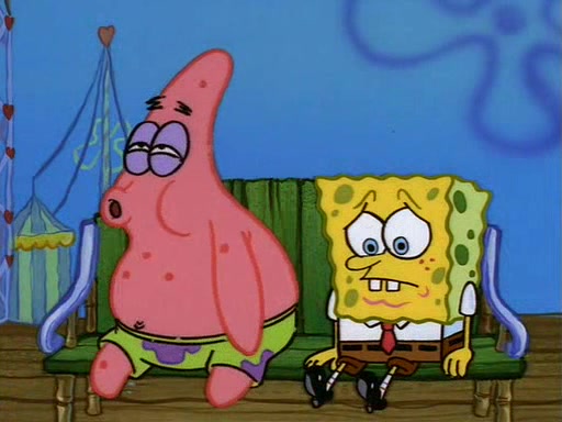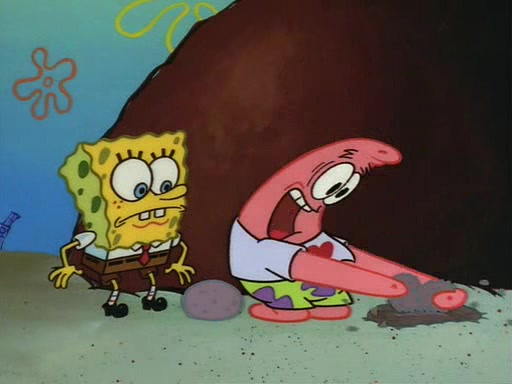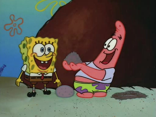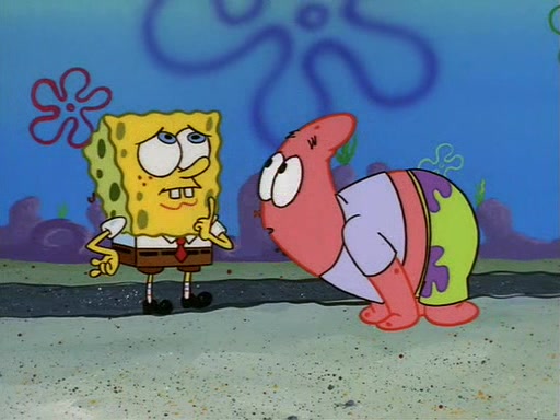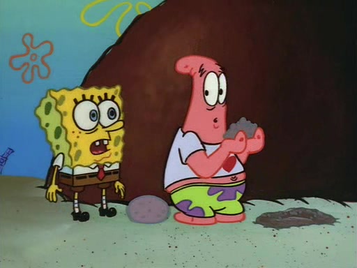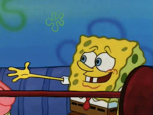 When Patrick sees many other people, including complete strangers (one man only asks for the time), thanking SpongeBob for his gifts to them, he is pushed off the deep end and goes on a rampage. He begins destroying the carnival and corners everyone there, including SpongeBob, seemingly with the intention of killing them all. Before he gets the chance, however, Sandy arrives, having tamed the scallops, who are now helping to keep her balloon afloat. Upon seeing this, Patrick takes a bite of his present, causing it to pop and covering the carnival in chocolate. Smiling at SpongeBob and completely forgetting his anger, Patrick joyfully says, "Aww, SpongeBob, you didn't have to get me anything.".