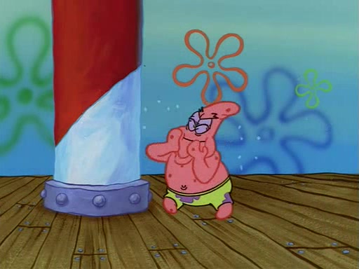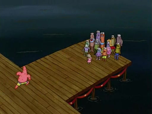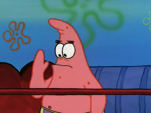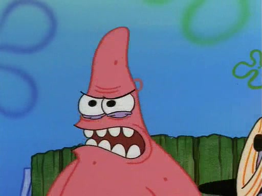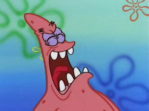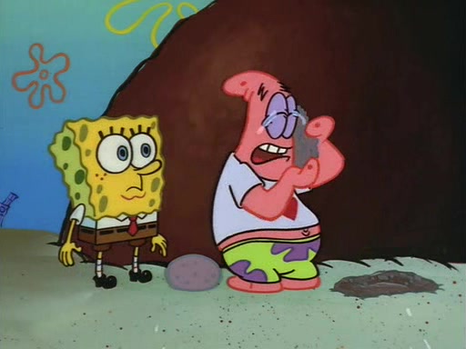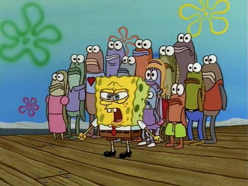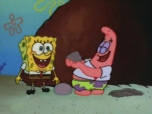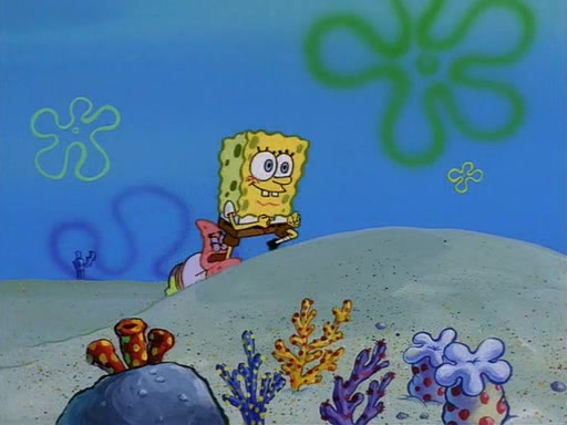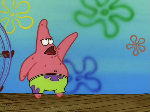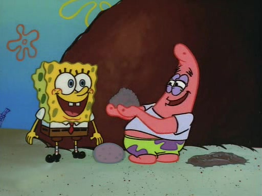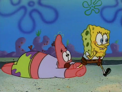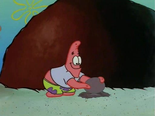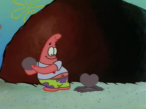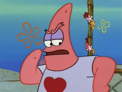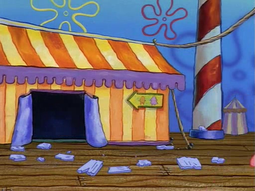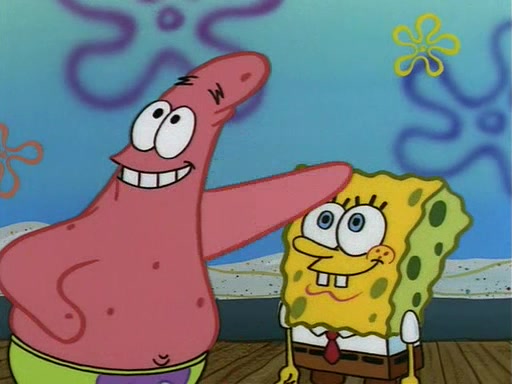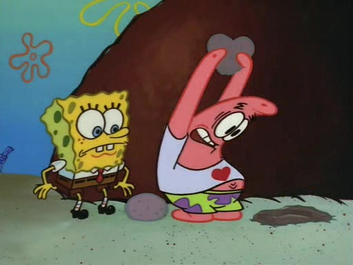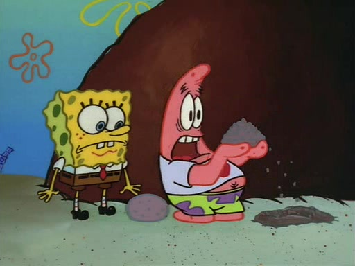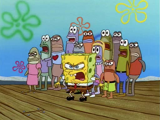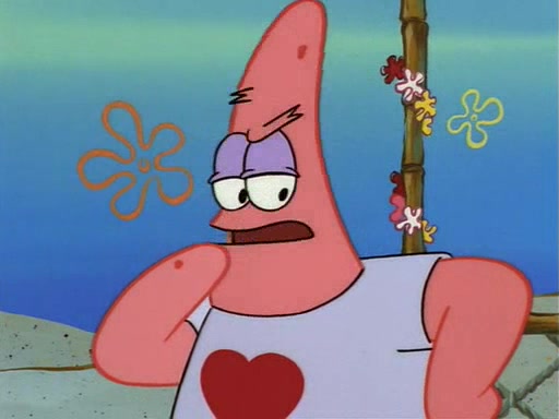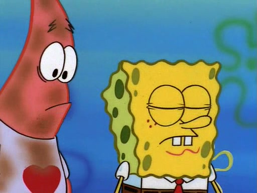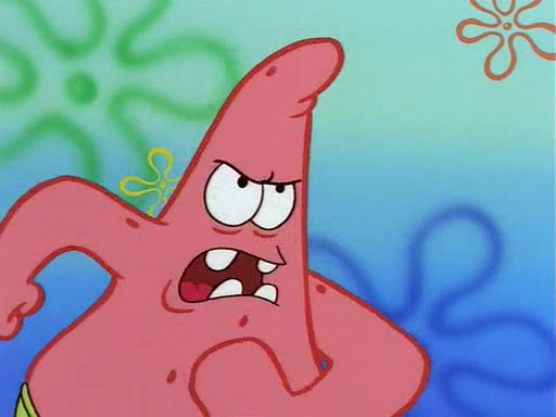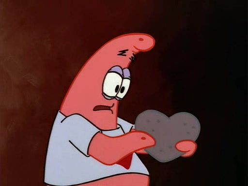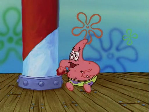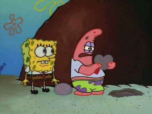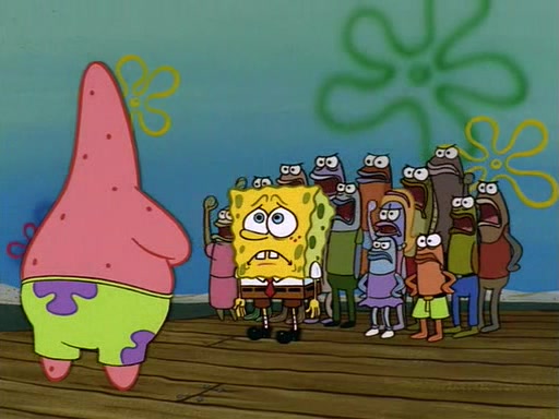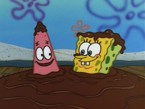 When Patrick sees many other people, including complete strangers (one man only asks for the time), thanking SpongeBob for his gifts to them, he is pushed off the deep end and goes on a rampage. He begins destroying the carnival and corners everyone there, including SpongeBob, seemingly with the intention of killing them all. Before he gets the chance, however, Sandy arrives, having tamed the scallops, who are now helping to keep her balloon afloat. Upon seeing this, Patrick takes a bite of his present, causing it to pop and covering the carnival in chocolate. Smiling at SpongeBob and completely forgetting his anger, Patrick joyfully says, "Aww, SpongeBob, you didn't have to get me anything.".