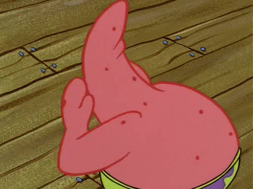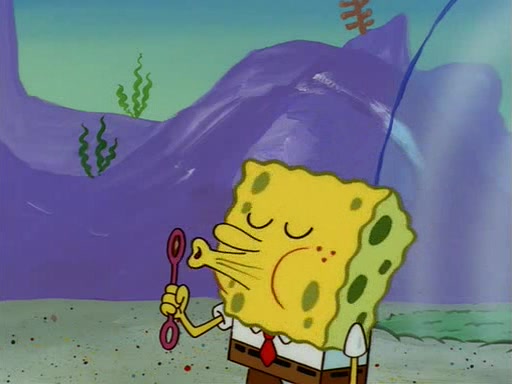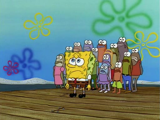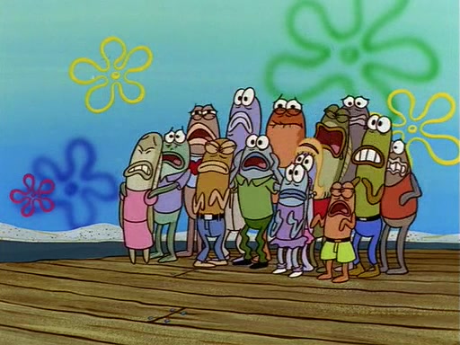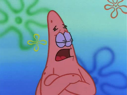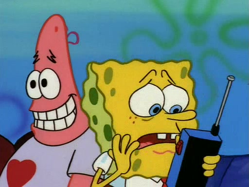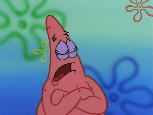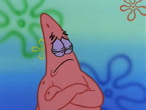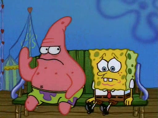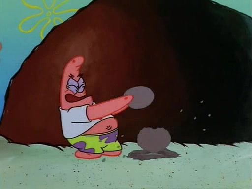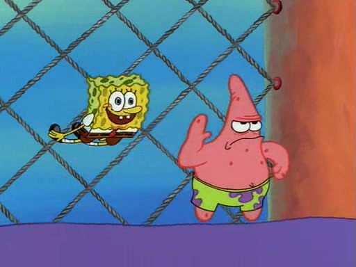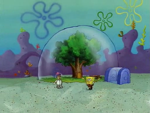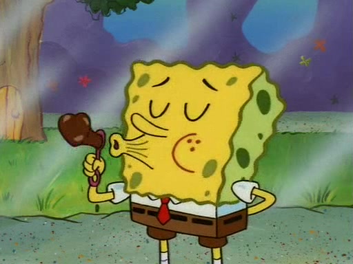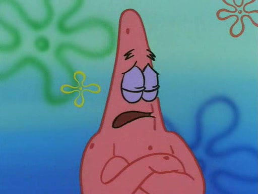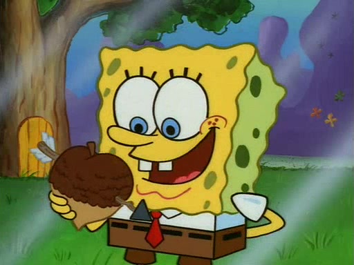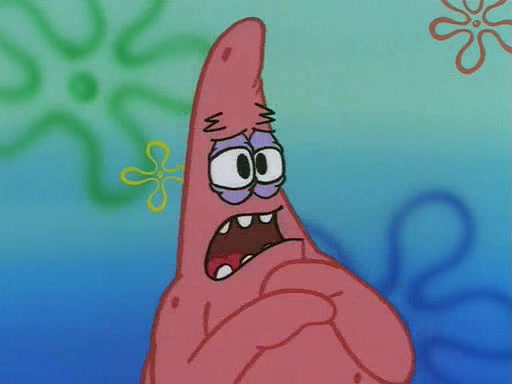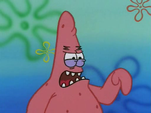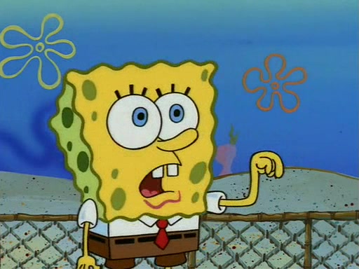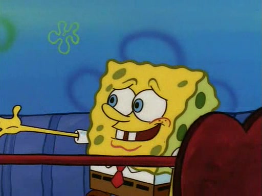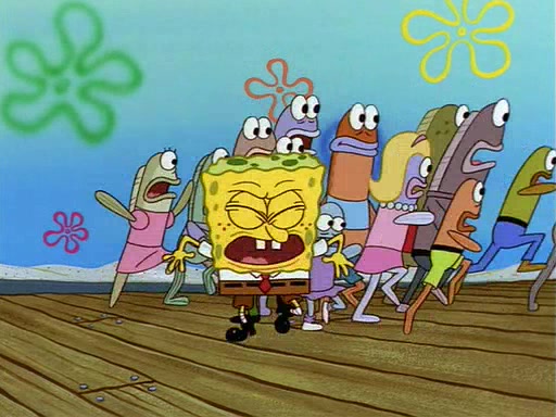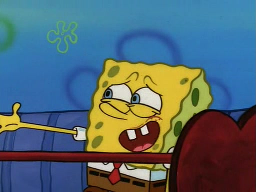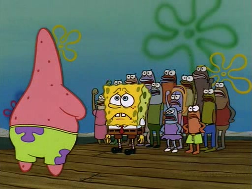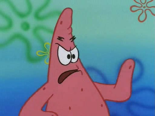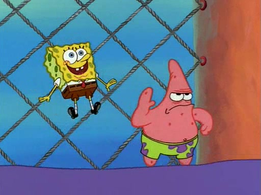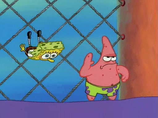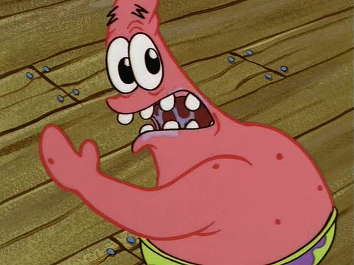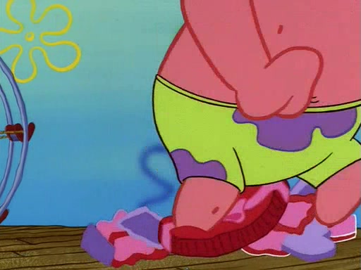 When Patrick sees many other people, including complete strangers (one man only asks for the time), thanking SpongeBob for his gifts to them, he is pushed off the deep end and goes on a rampage. He begins destroying the carnival and corners everyone there, including SpongeBob, seemingly with the intention of killing them all. Before he gets the chance, however, Sandy arrives, having tamed the scallops, who are now helping to keep her balloon afloat. Upon seeing this, Patrick takes a bite of his present, causing it to pop and covering the carnival in chocolate. Smiling at SpongeBob and completely forgetting his anger, Patrick joyfully says, "Aww, SpongeBob, you didn't have to get me anything.".