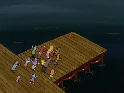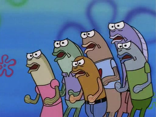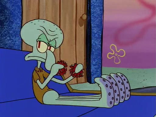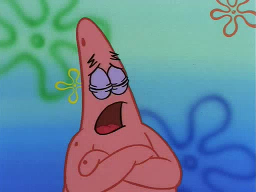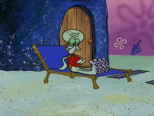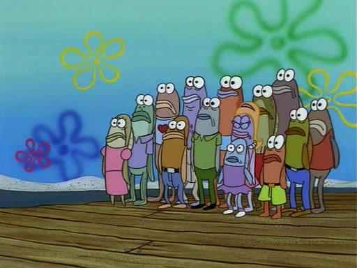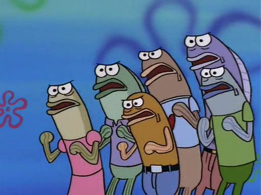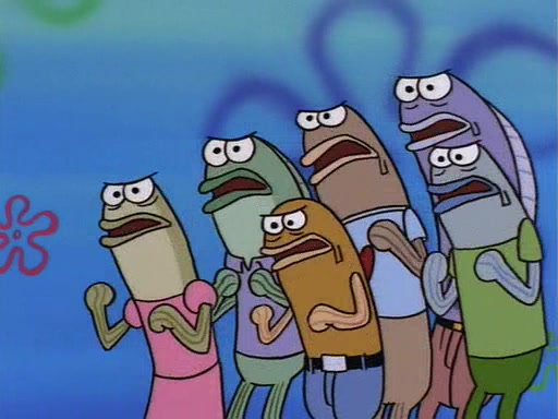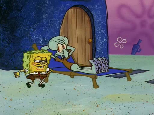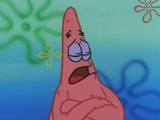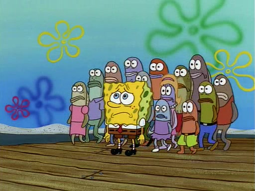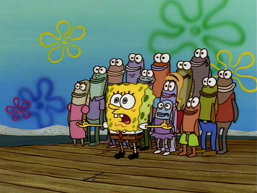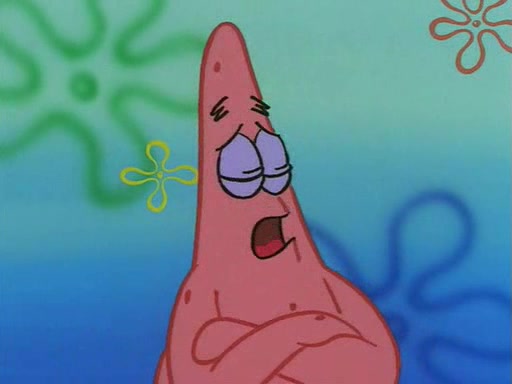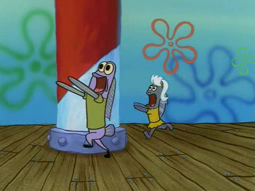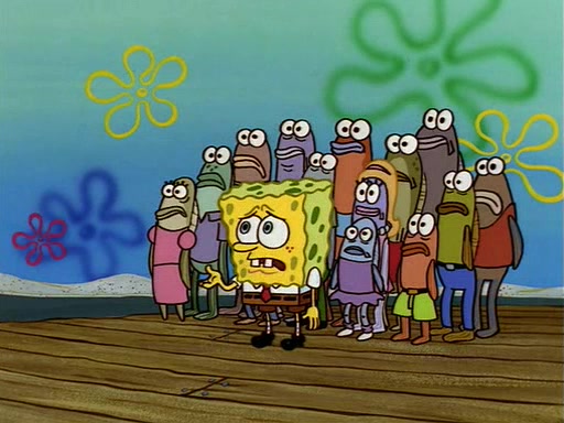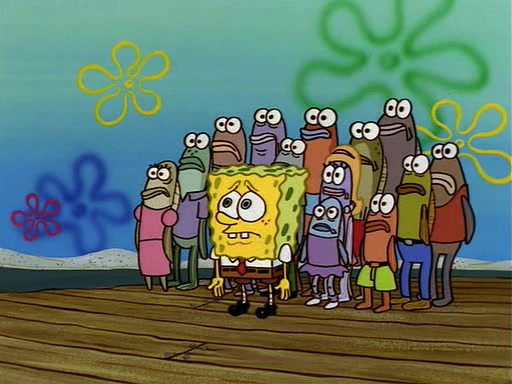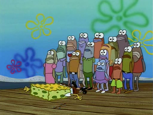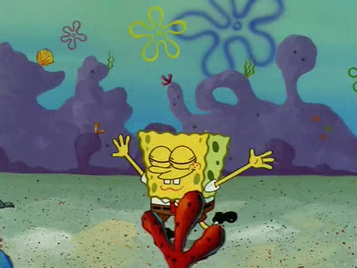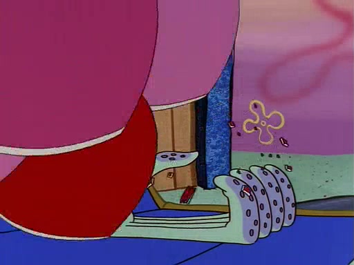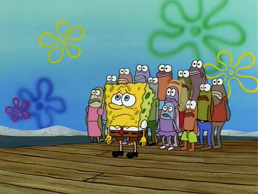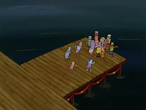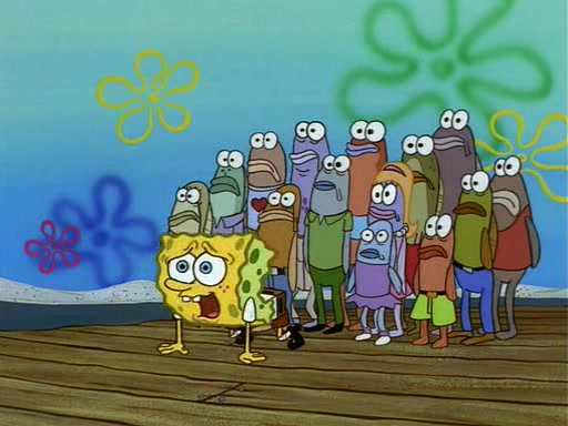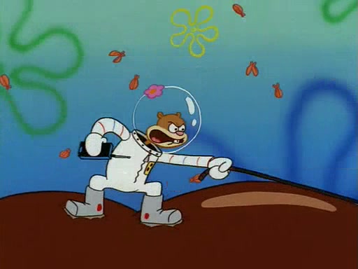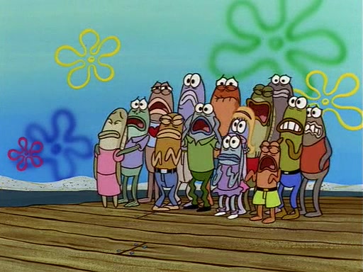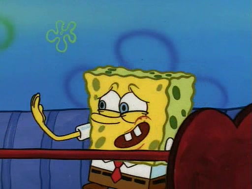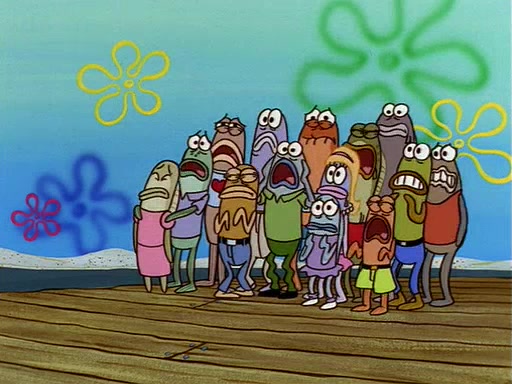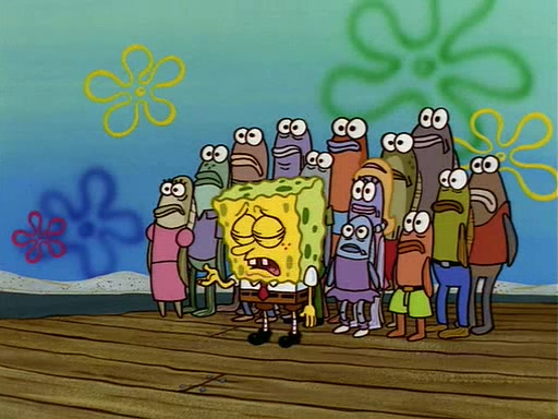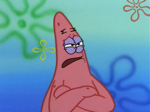 When Patrick sees many other people, including complete strangers (one man only asks for the time), thanking SpongeBob for his gifts to them, he is pushed off the deep end and goes on a rampage. He begins destroying the carnival and corners everyone there, including SpongeBob, seemingly with the intention of killing them all. Before he gets the chance, however, Sandy arrives, having tamed the scallops, who are now helping to keep her balloon afloat. Upon seeing this, Patrick takes a bite of his present, causing it to pop and covering the carnival in chocolate. Smiling at SpongeBob and completely forgetting his anger, Patrick joyfully says, "Aww, SpongeBob, you didn't have to get me anything.".
