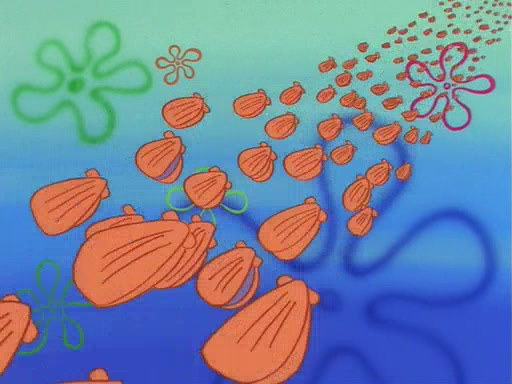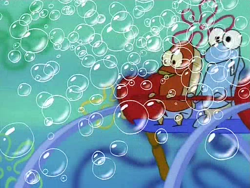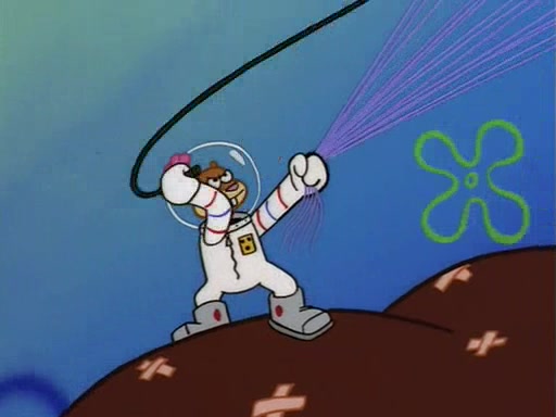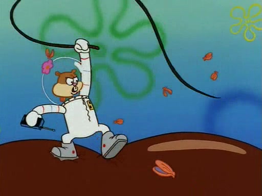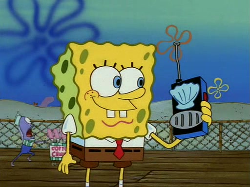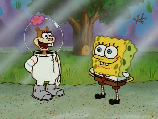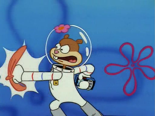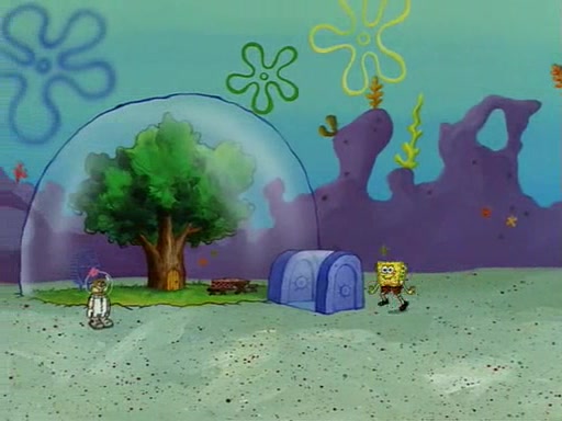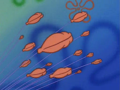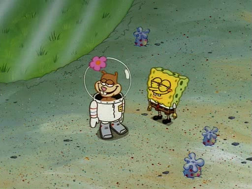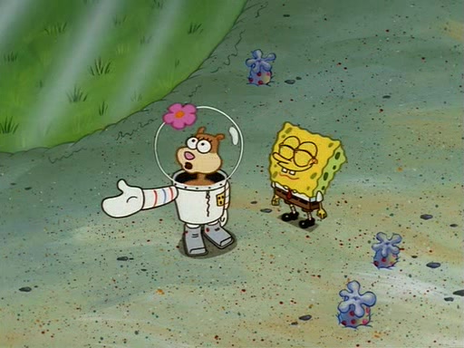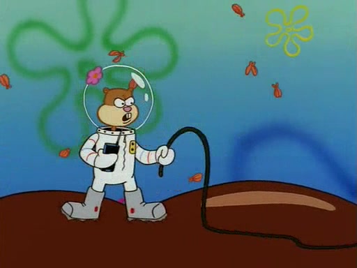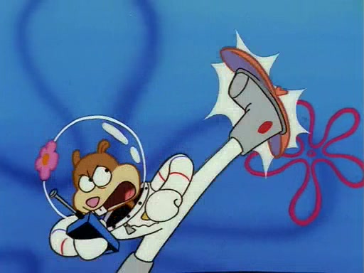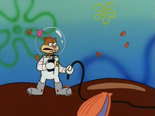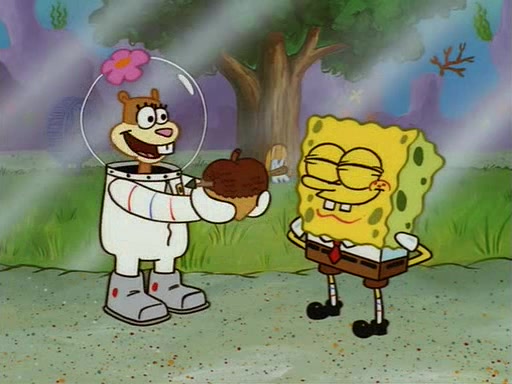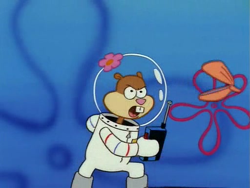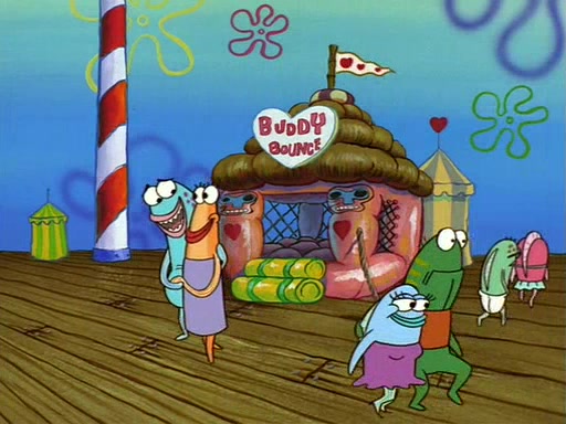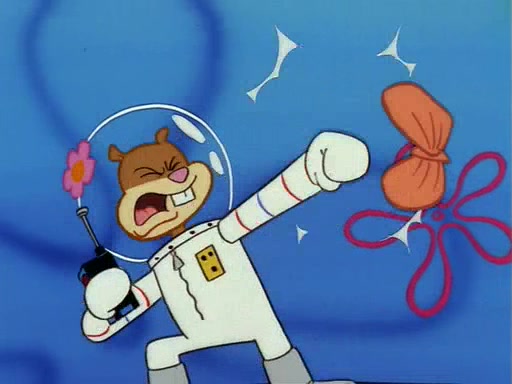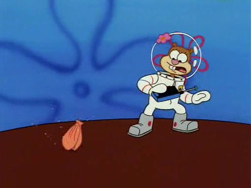 Meanwhile, Sandy, who is in route to the carnival in the chocolate balloon, is attacked by a flock of scallops, which causes the balloon to veer off course as she fights them off. When SpongeBob and Patrick reach the top of the Ferris wheel, where the surprise is to be revealed. However, Sandy contacts SpongeBob via walkie-talkie, informing him of her troubles and telling him that he will have to go with "Plan B". SpongeBob tells Patrick, who is so excited that he is literally shaking the entire Ferris wheel, that his present is a "friendly handshake", greatly disappointing him and making him very angry.