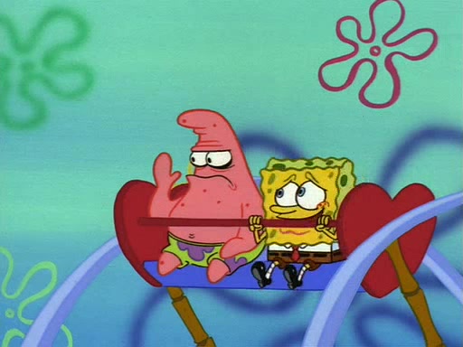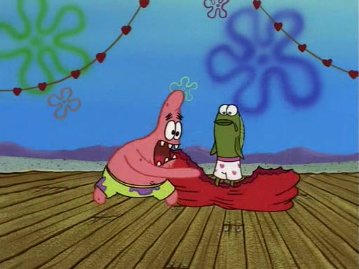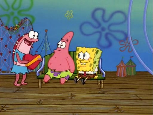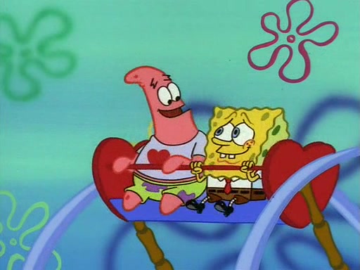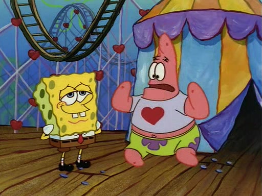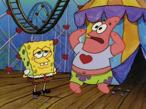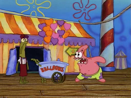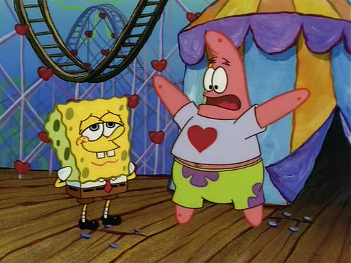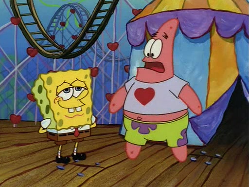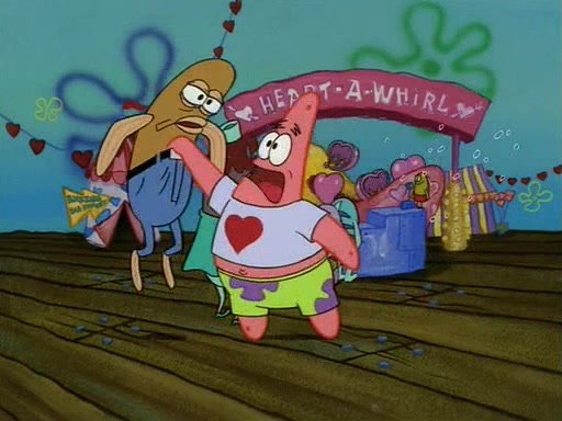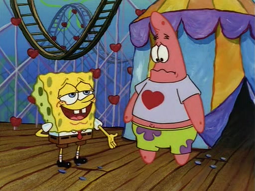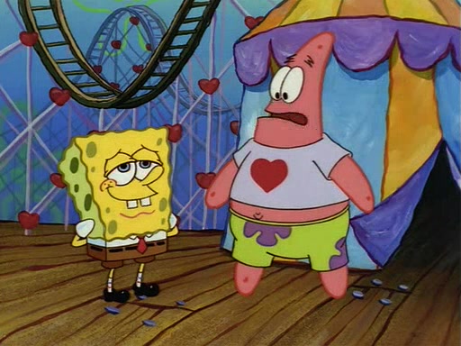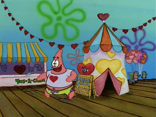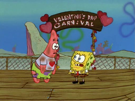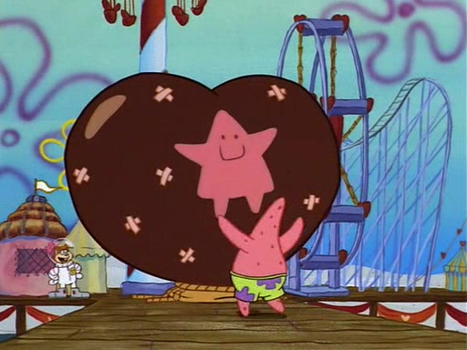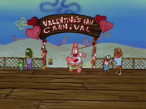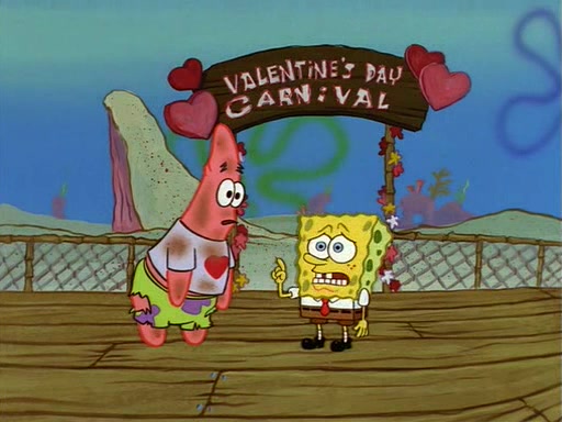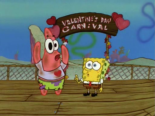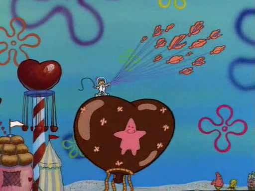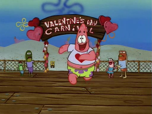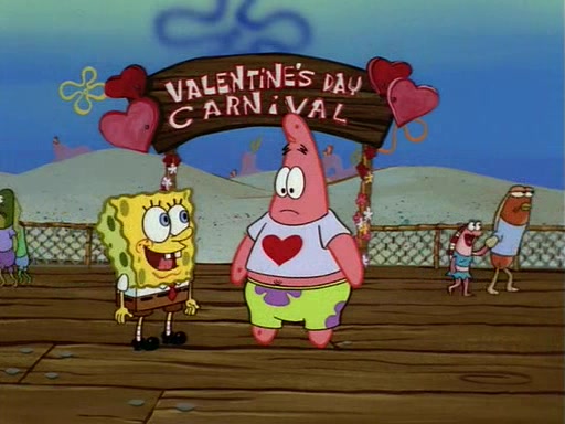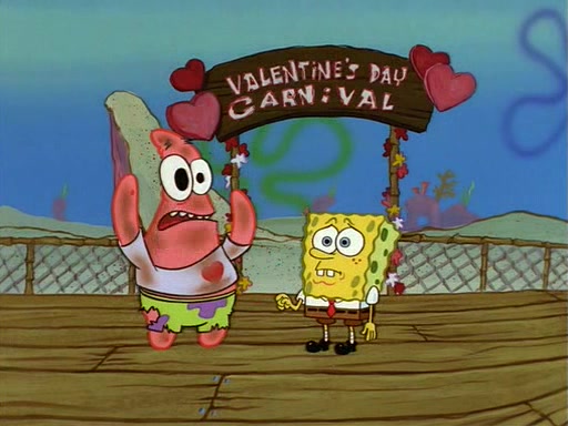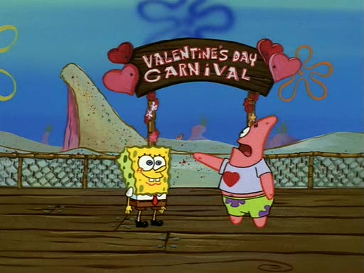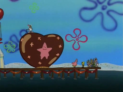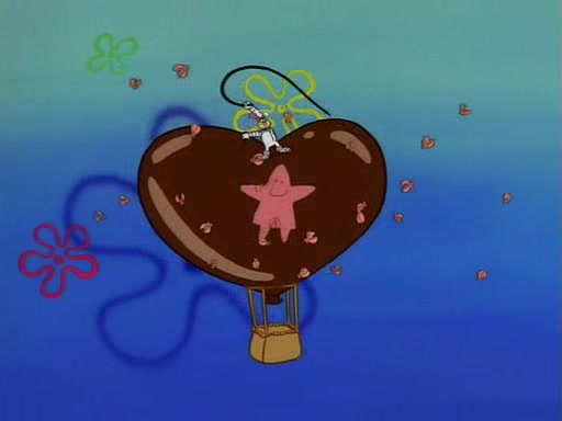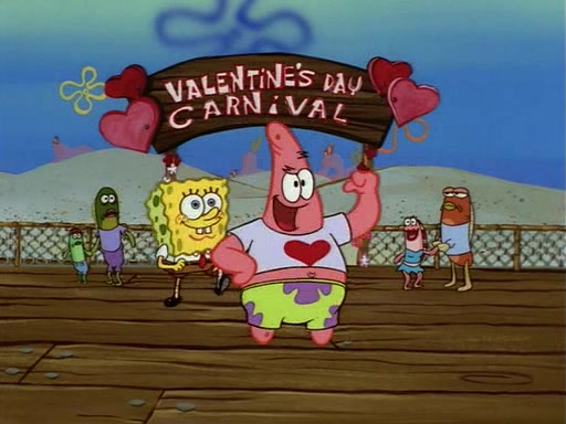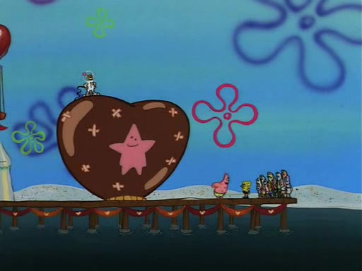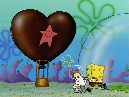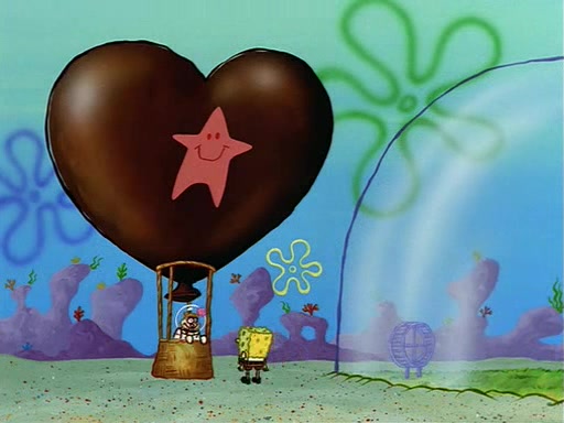On Valentine's Day, SpongeBob is giving out Valentine's Day hearts. He even gives one to Plankton, which is delivered with the help of tweezers. SpongeBob and Sandy have arranged to give Patrick a hot air balloon made out of chocolate. SpongeBob tells Patrick that he has the best present ever for him, and the two go to the Valentine's Day carnival, with Patrick extremely excited for his surprise present.