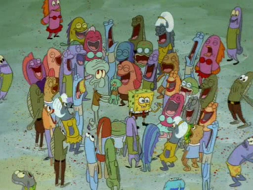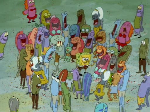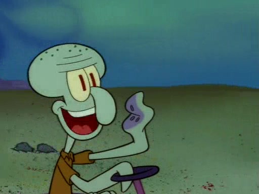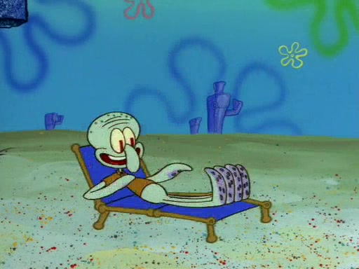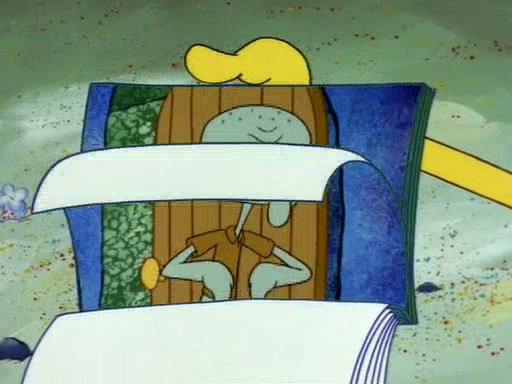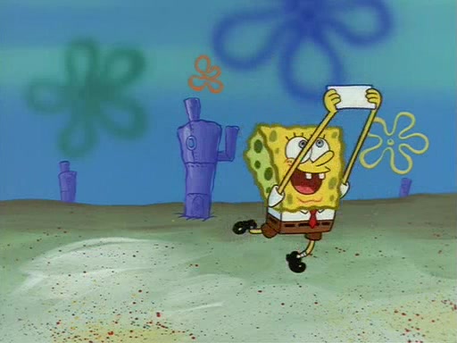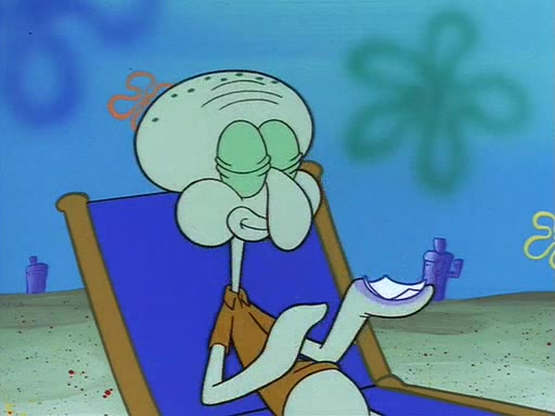 SpongeBob uses his imagination to have fun and do amazing things with the paper, and Squidward becomes jealous and attempts to take it back. However, SpongeBob refuses to give it back, as he promised not to. Squidward desperately begs SpongeBob for the paper, and is not successful until he agrees to trade everything he owns, including his house and shirt. However, Squidward does not have fun with the paper, and realizes that it is indeed completely worthless. Patrick then comes along, takes the paper from Squidward, and throws away his gum in it. Squidward, who has now given up everything he owns for nothing and is standing there naked, asks "Anyone have any sunscreen?".