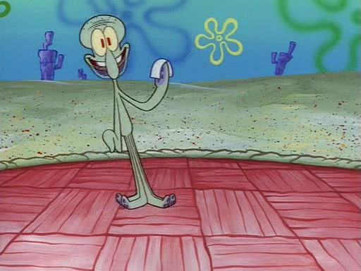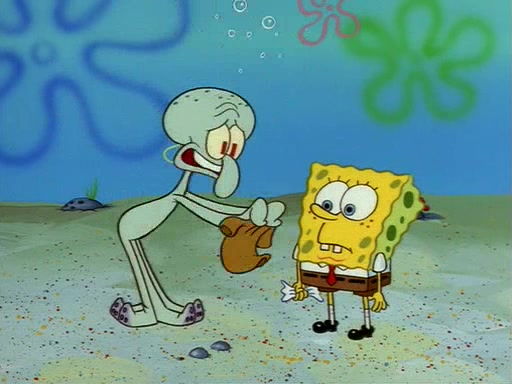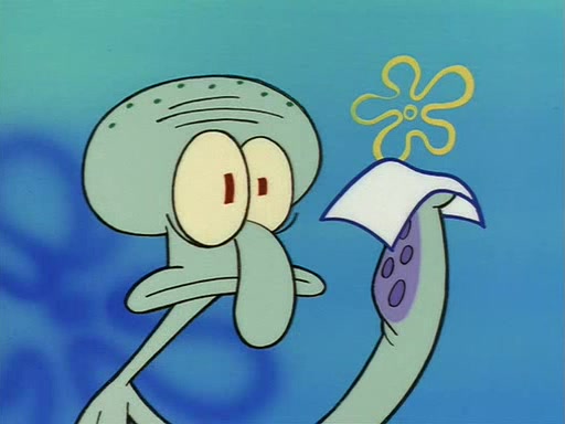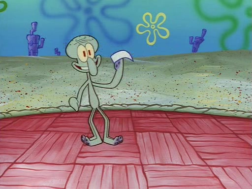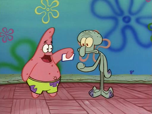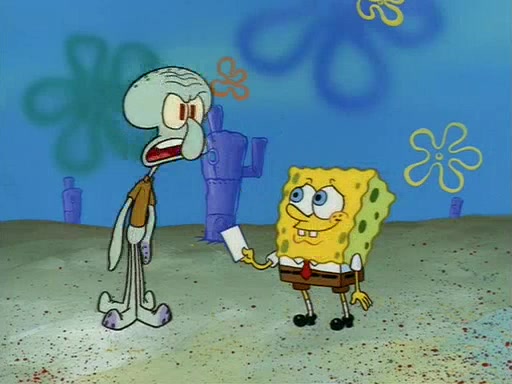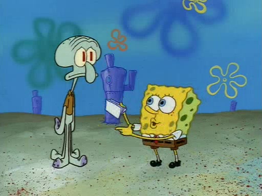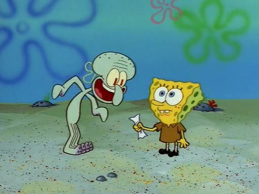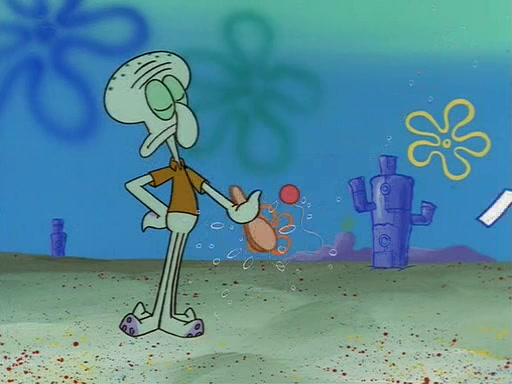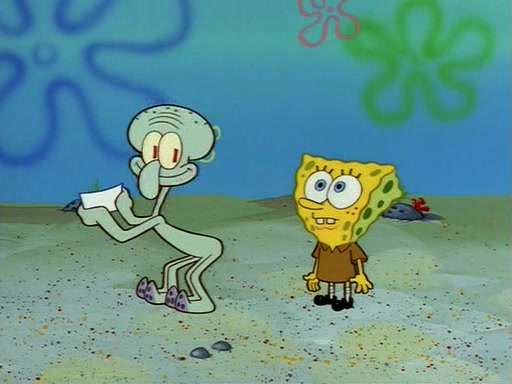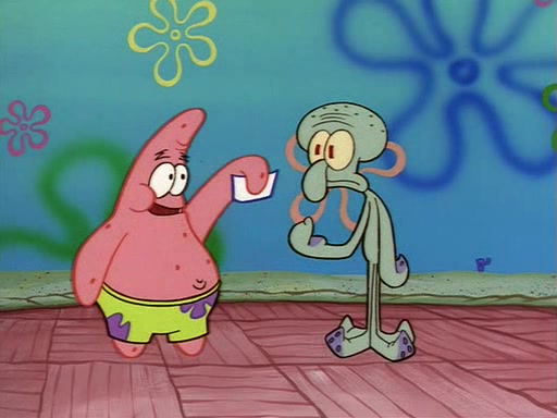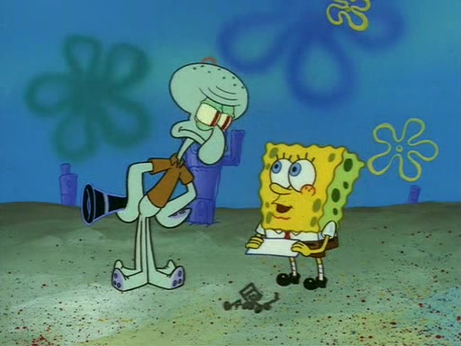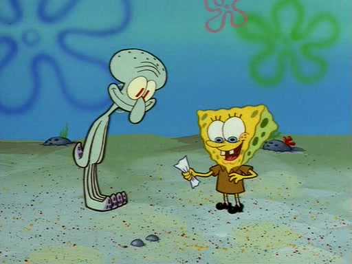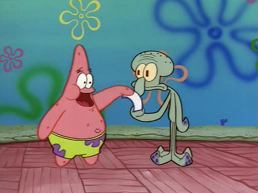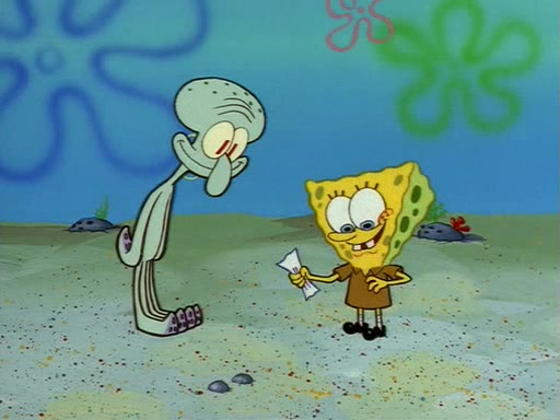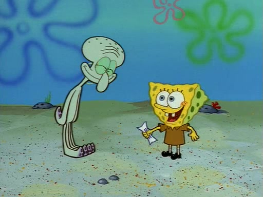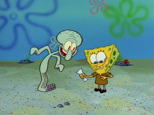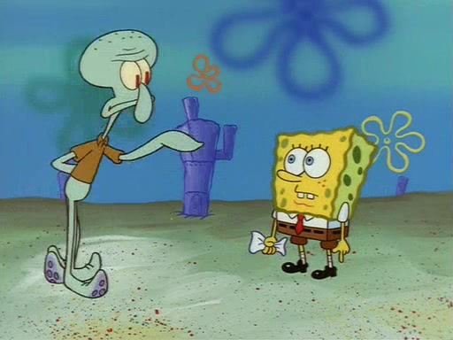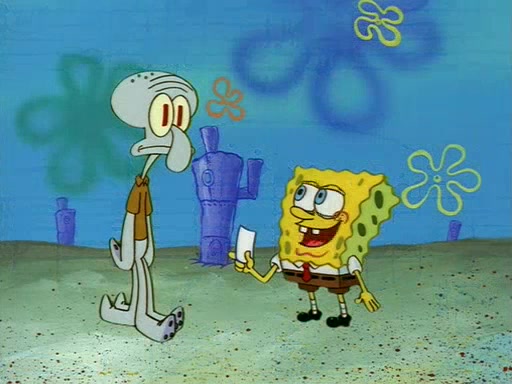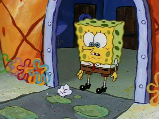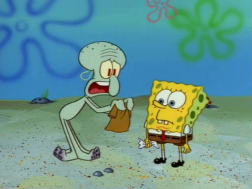 Squidward throws a bubble gum wrapper on SpongeBob's lawn. When SpongeBob discovers it, he asks Squidward if he can keep it. Squidward, who spots the paper as a worthless and useless pile of junk, says yes. SpongeBob asks him several more times to make sure that he doesn't want it, and Squidward assures him that he has no use for the paper, and sarcastically makes him promise to never give it back.