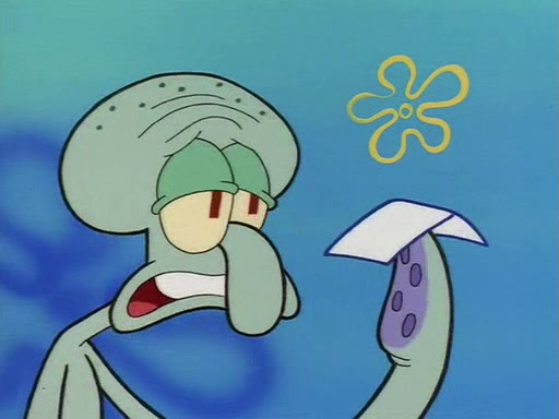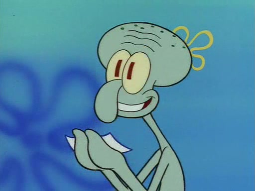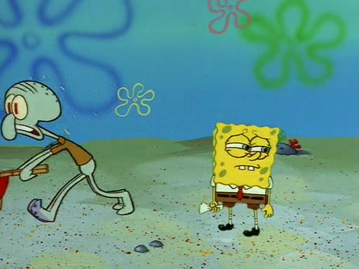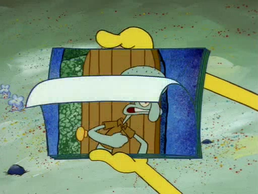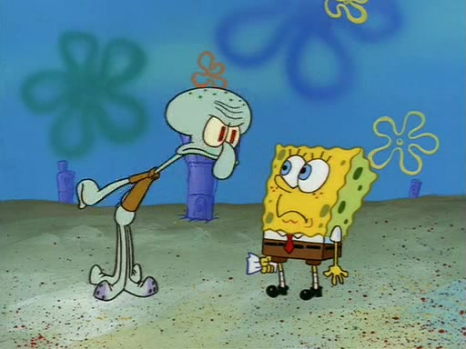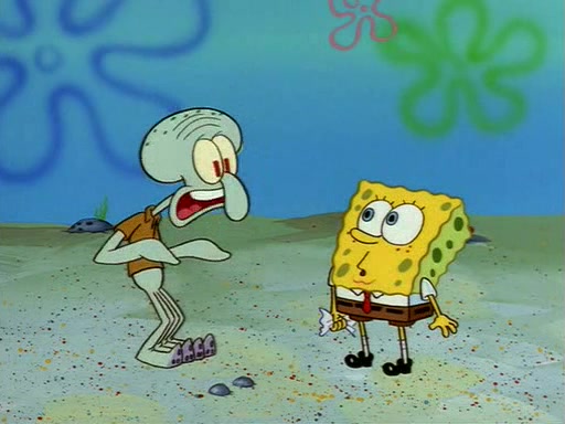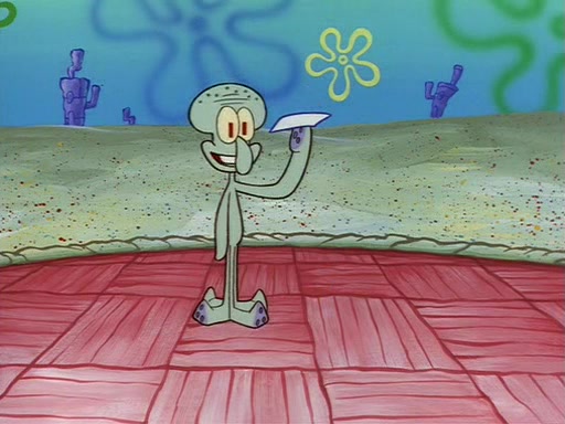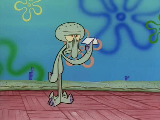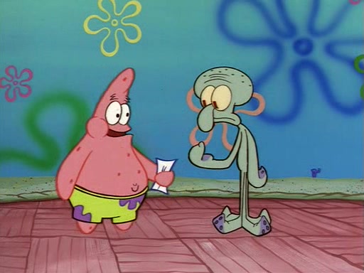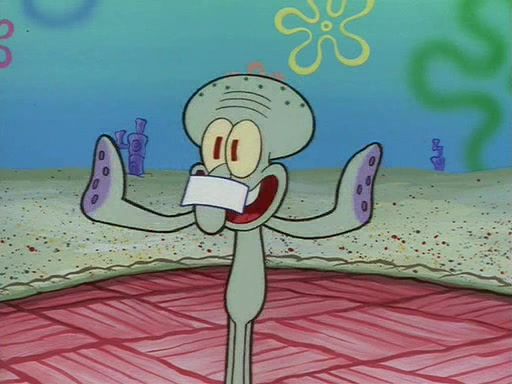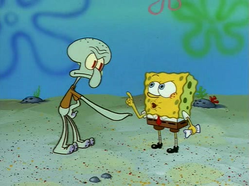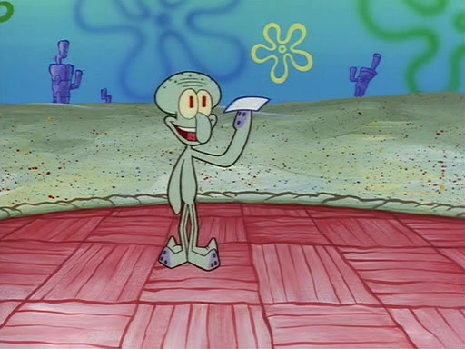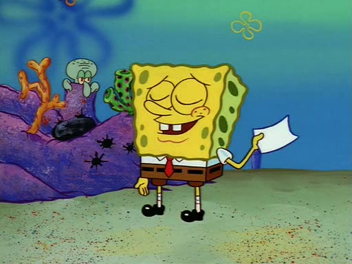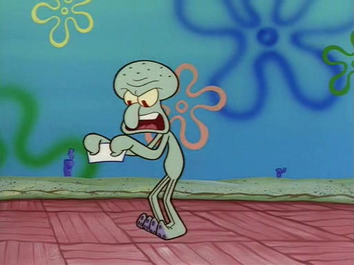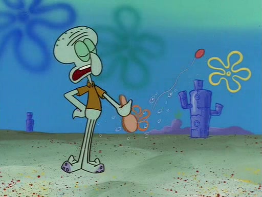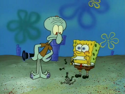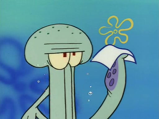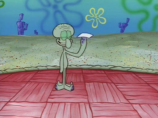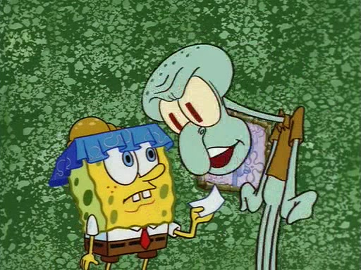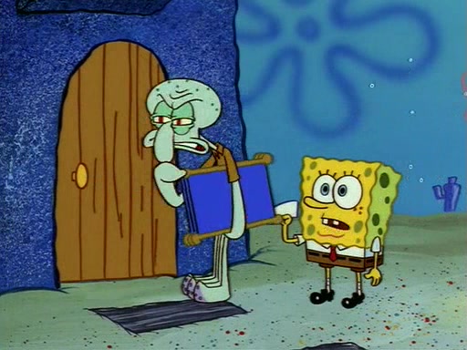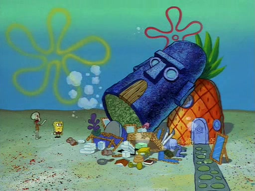 Squidward throws a bubble gum wrapper on SpongeBob's lawn. When SpongeBob discovers it, he asks Squidward if he can keep it. Squidward, who spots the paper as a worthless and useless pile of junk, says yes. SpongeBob asks him several more times to make sure that he doesn't want it, and Squidward assures him that he has no use for the paper, and sarcastically makes him promise to never give it back.