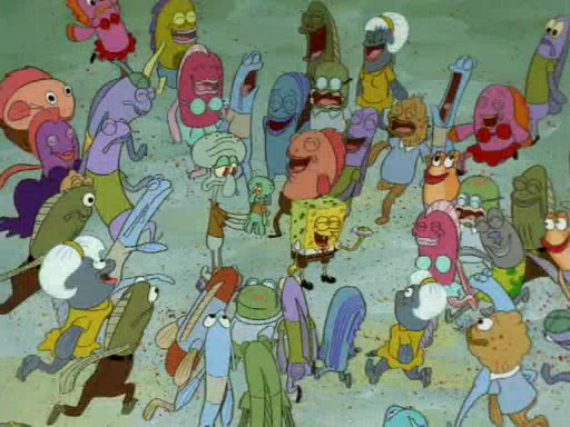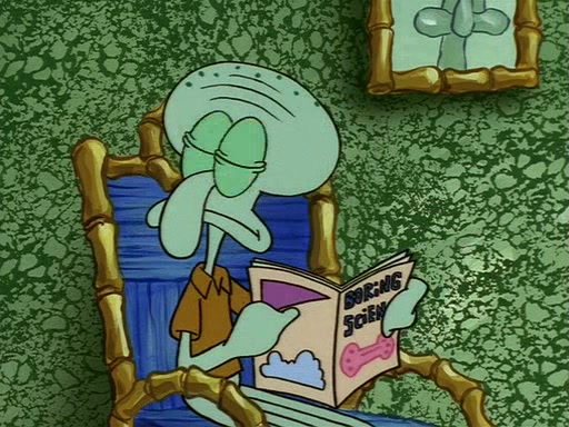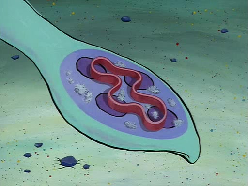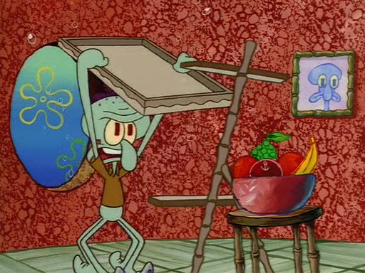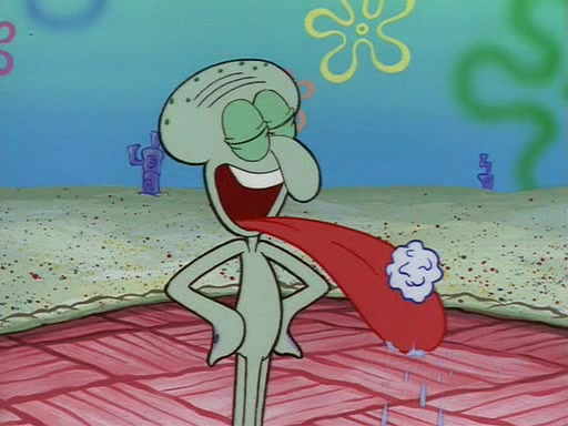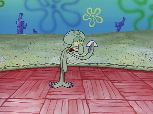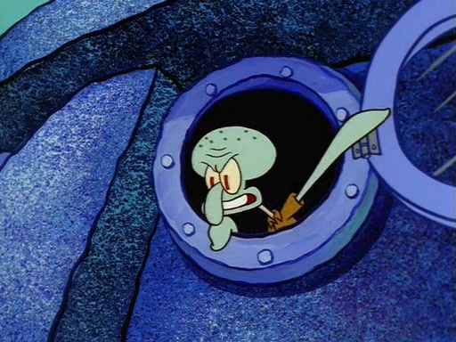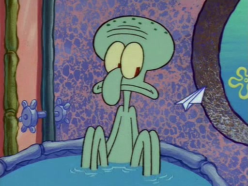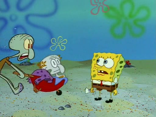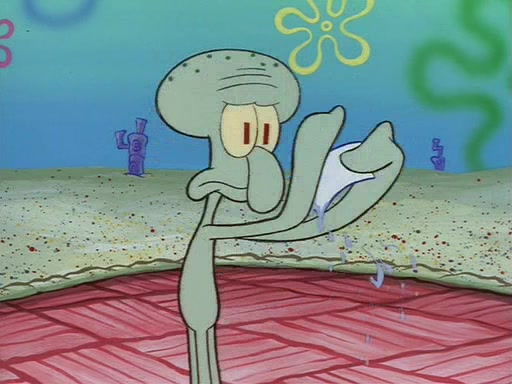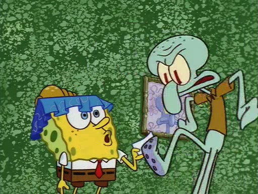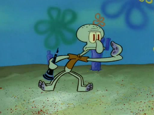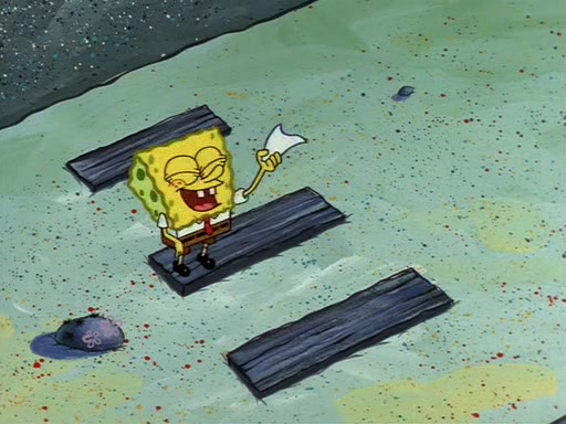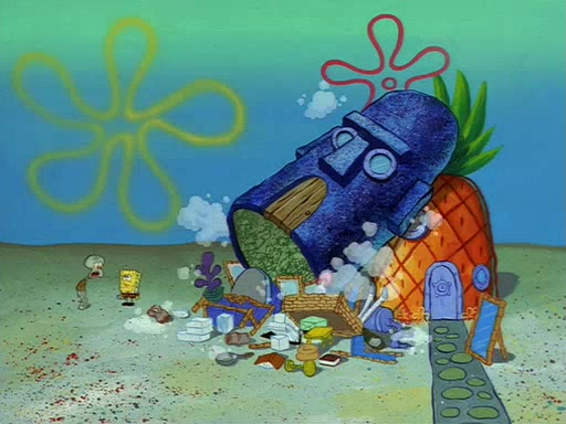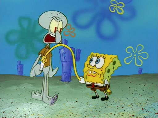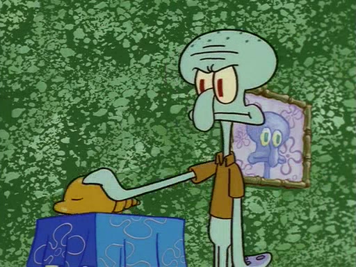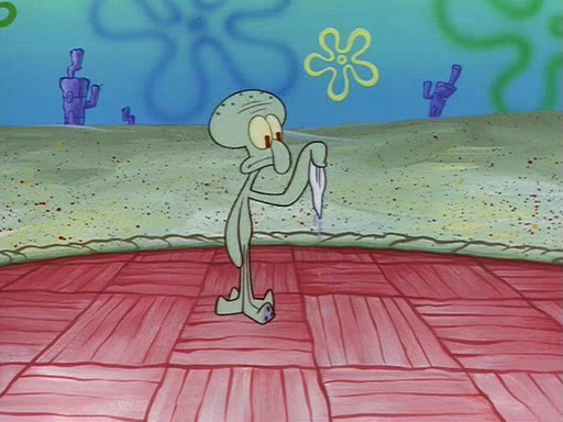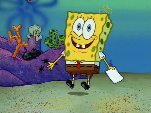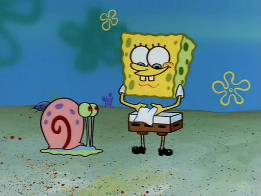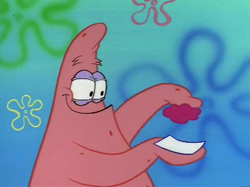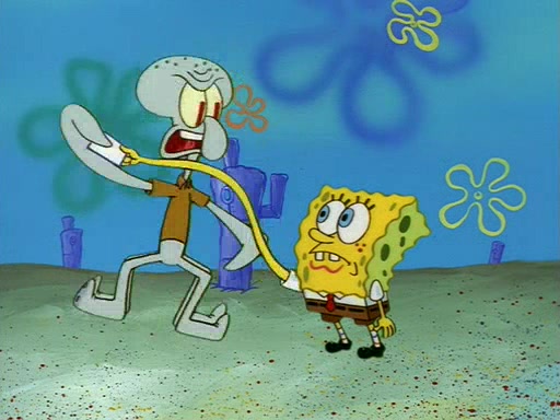 Squidward throws a bubble gum wrapper on SpongeBob's lawn. When SpongeBob discovers it, he asks Squidward if he can keep it. Squidward, who spots the paper as a worthless and useless pile of junk, says yes. SpongeBob asks him several more times to make sure that he doesn't want it, and Squidward assures him that he has no use for the paper, and sarcastically makes him promise to never give it back.