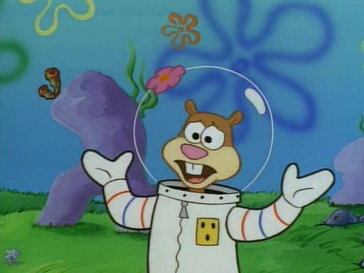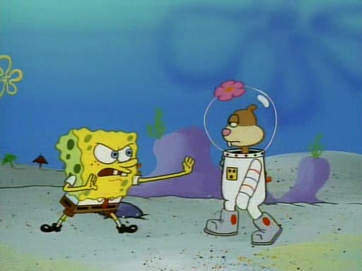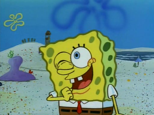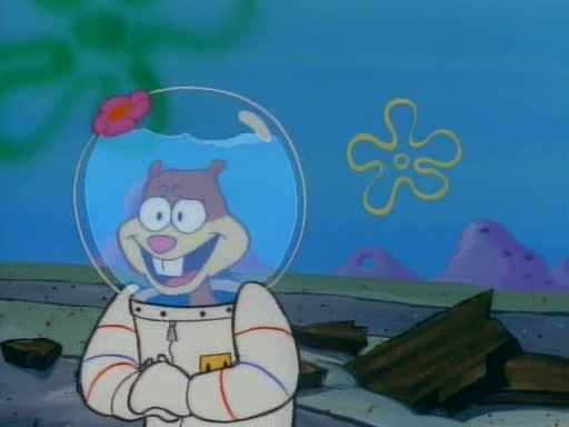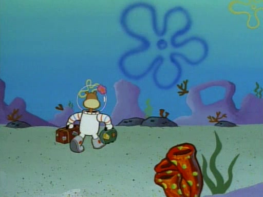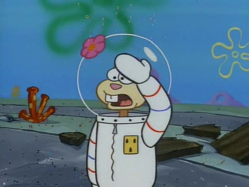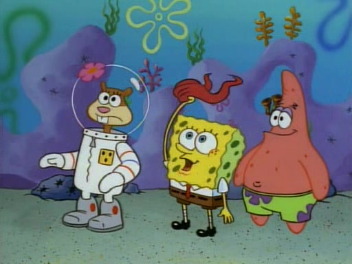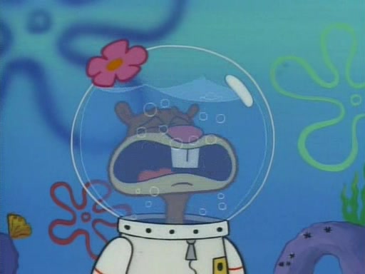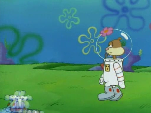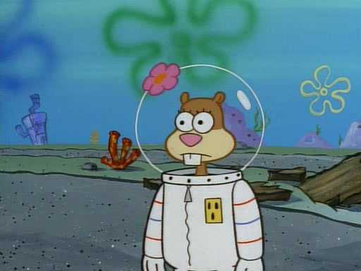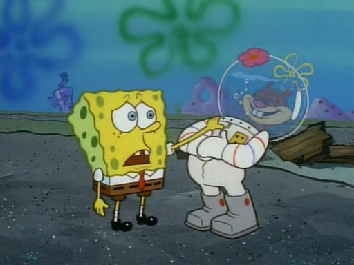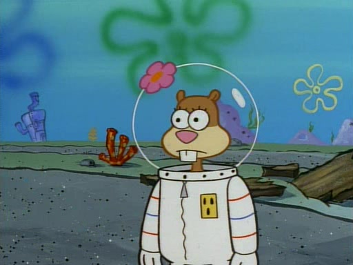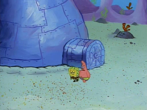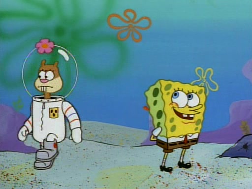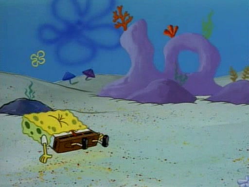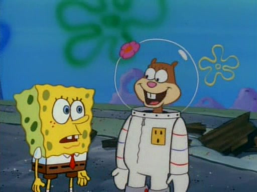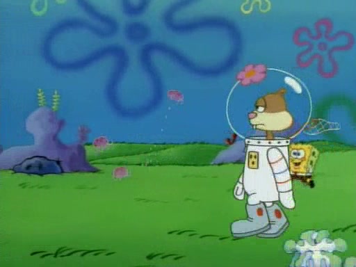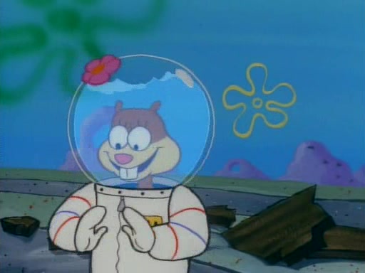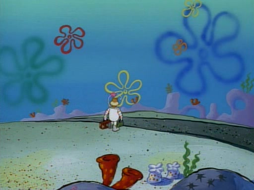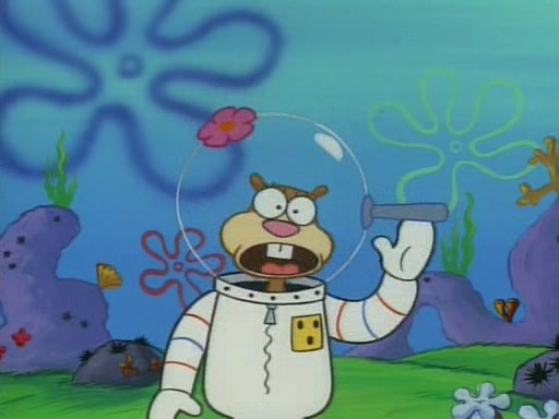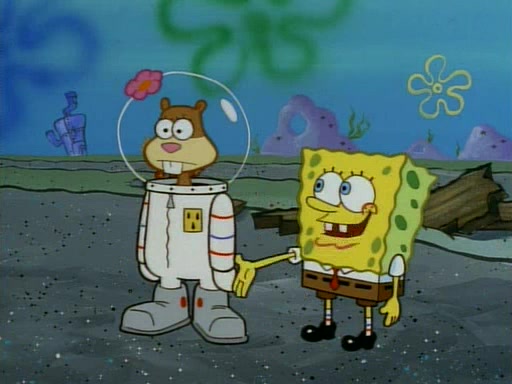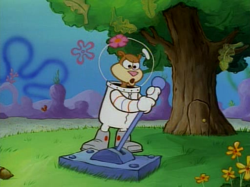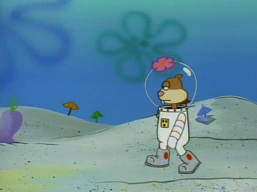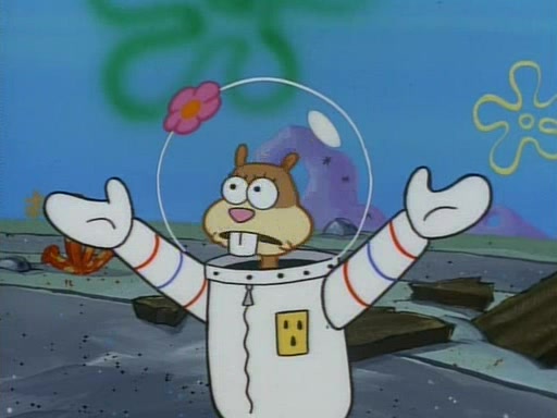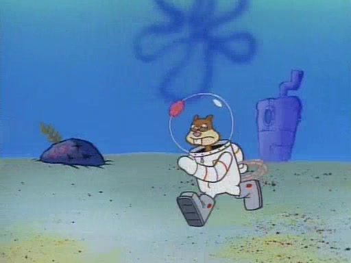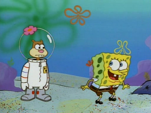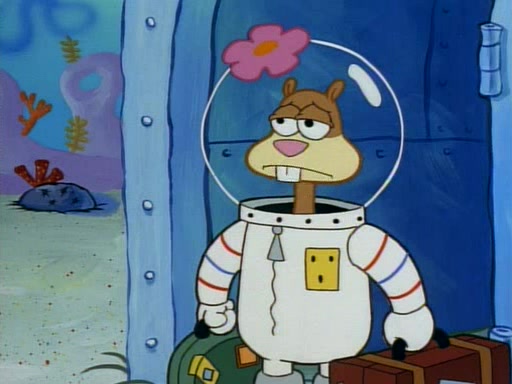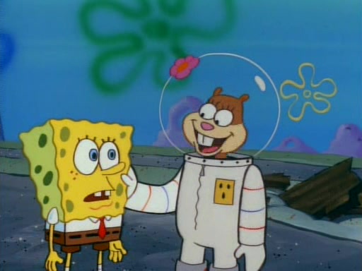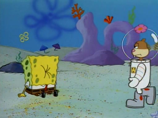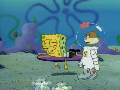 SpongeBob, Patrick and Sandy are playing in the sand at Goo Lagoon. Sandy makes some sand in the shape of Texas, which is soon destroyed by the tide. She walks off sadly, while SpongeBob tries to cheer her up and offers to play with her, but Sandy explains that she is just feeling a little homesick. SpongeBob and Patrick then blindfold her and take her to her treedome, which only adds to Sandy's depression. She begins crying, and runs off.