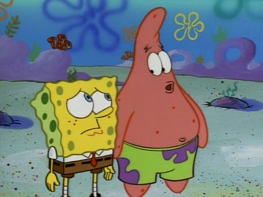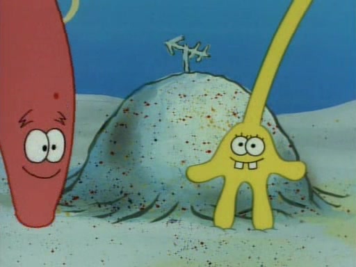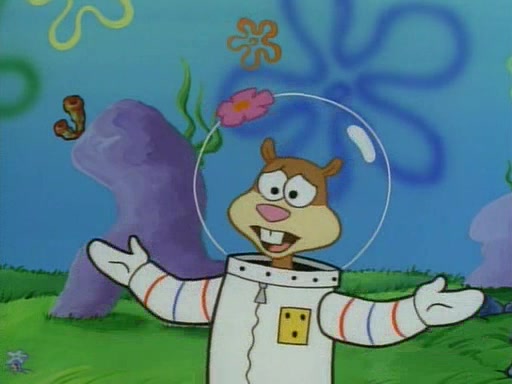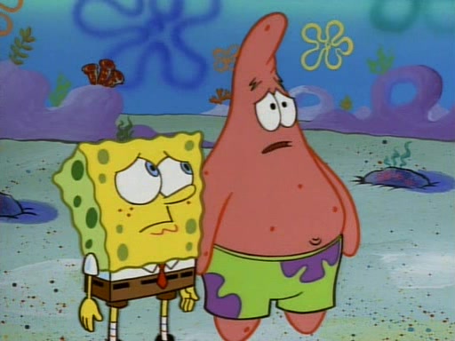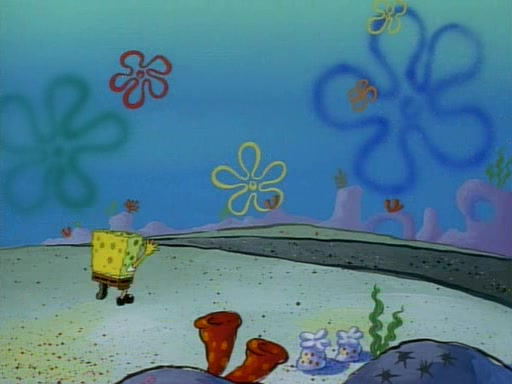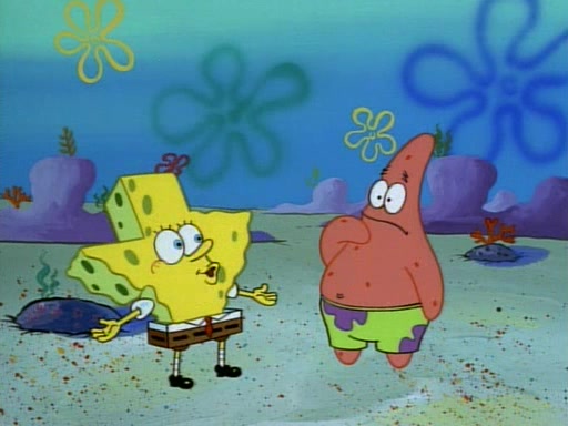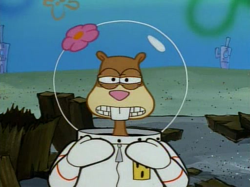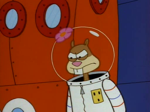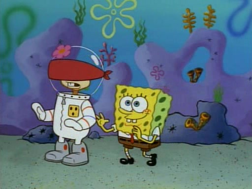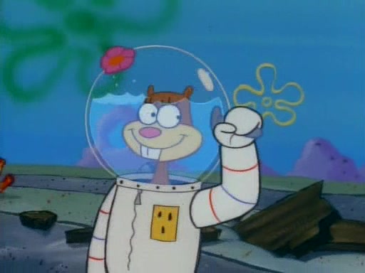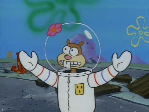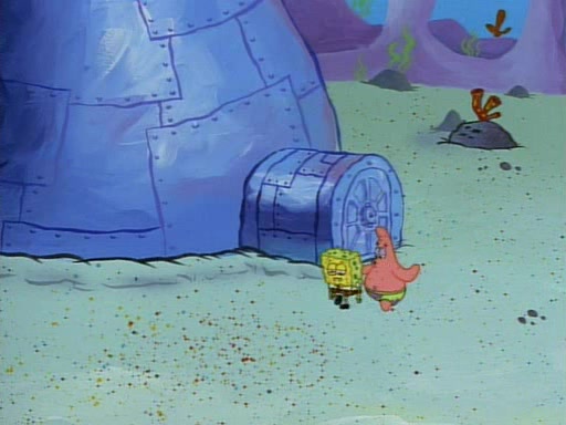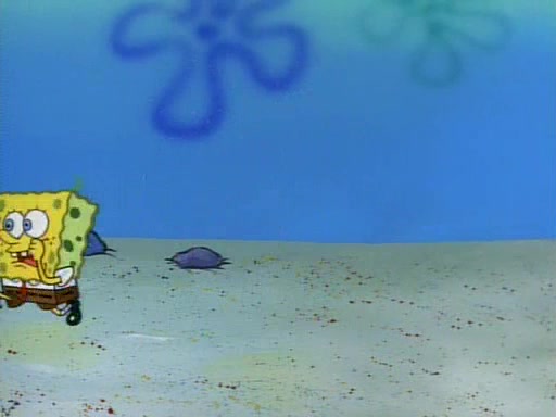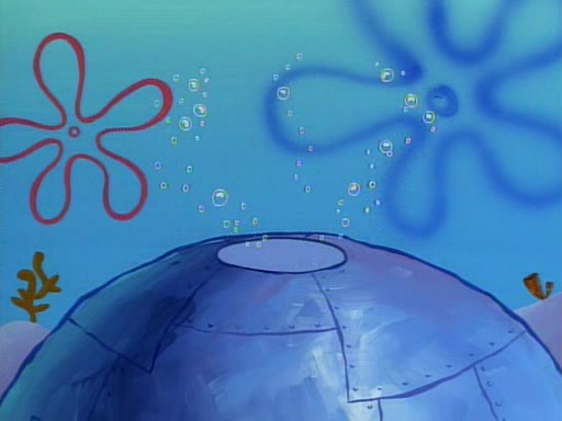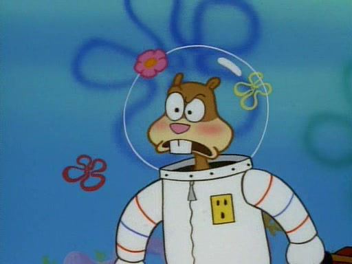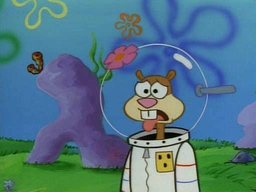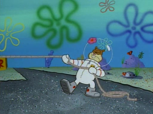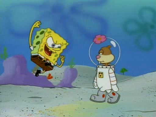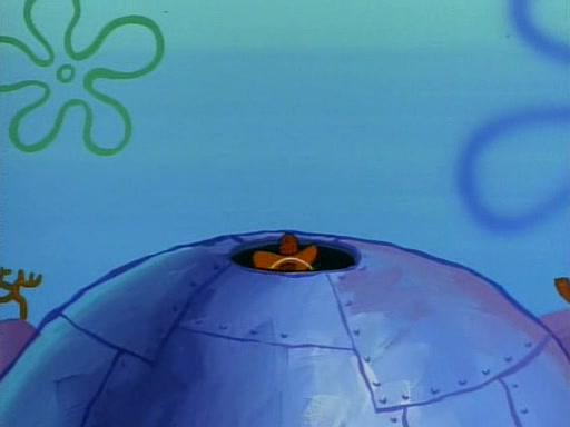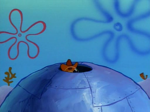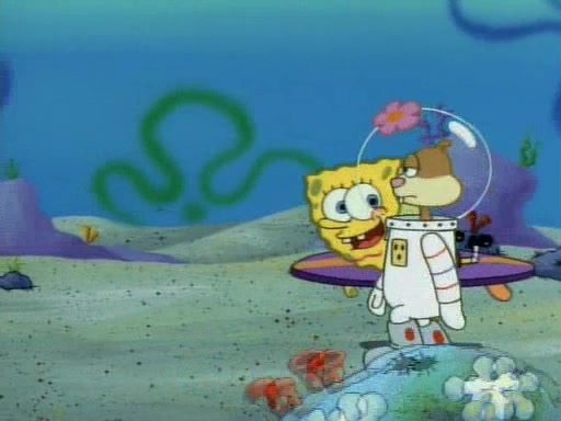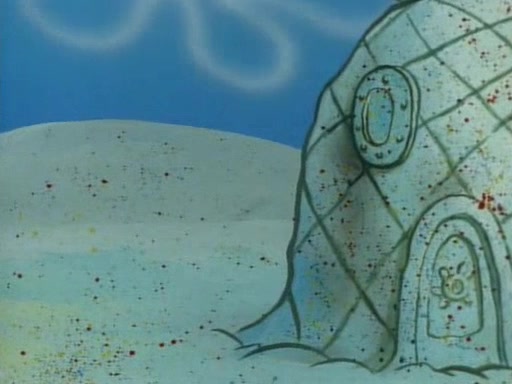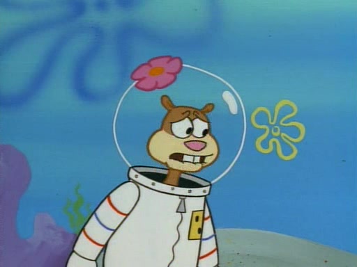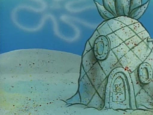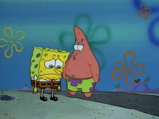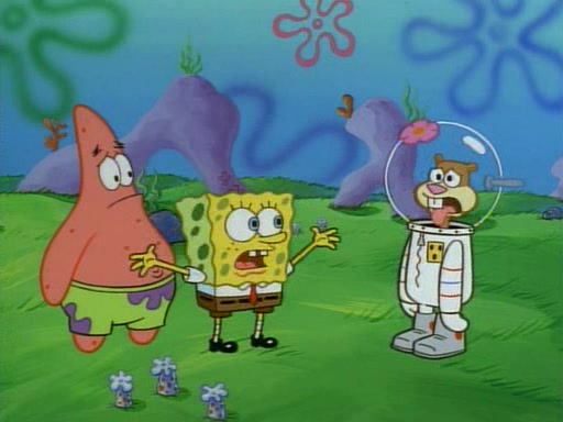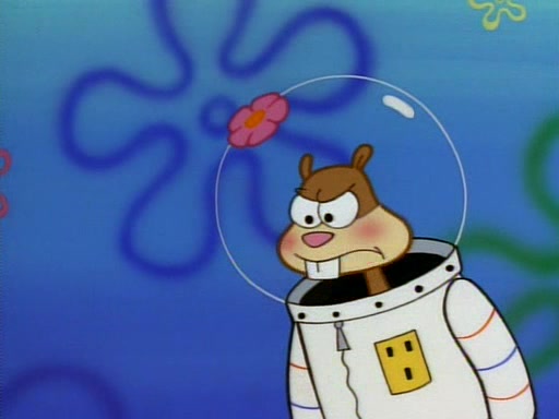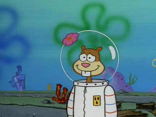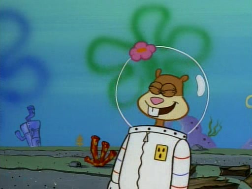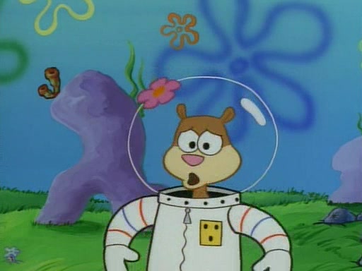 SpongeBob, Patrick and Sandy are playing in the sand at Goo Lagoon. Sandy makes some sand in the shape of Texas, which is soon destroyed by the tide. She walks off sadly, while SpongeBob tries to cheer her up and offers to play with her, but Sandy explains that she is just feeling a little homesick. SpongeBob and Patrick then blindfold her and take her to her treedome, which only adds to Sandy's depression. She begins crying, and runs off.