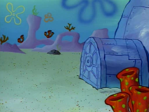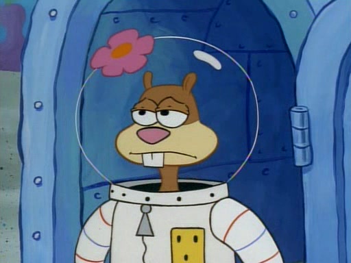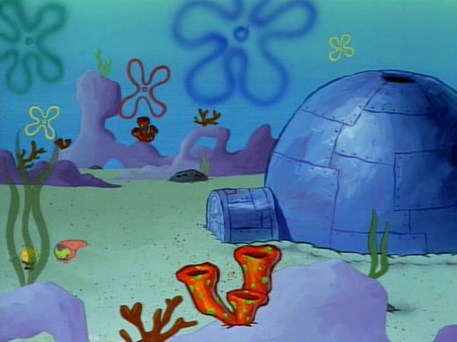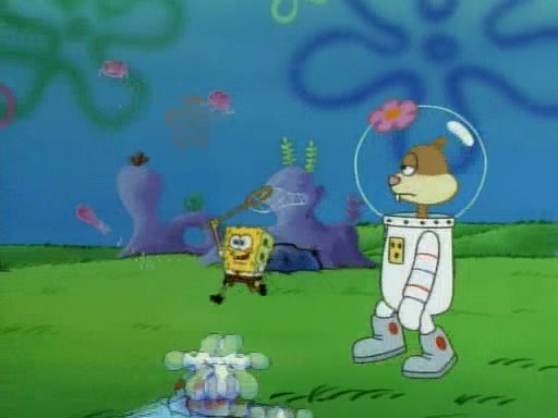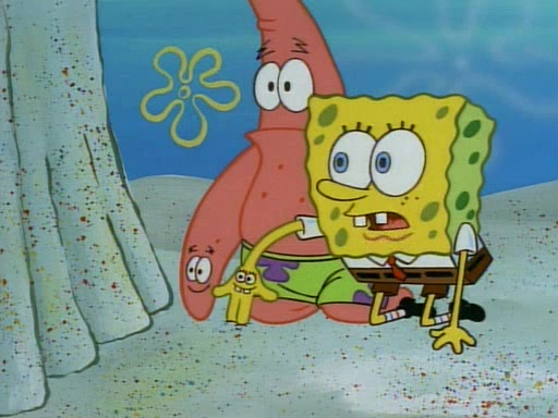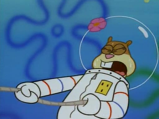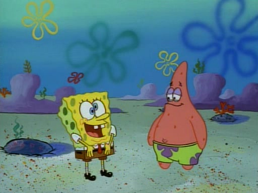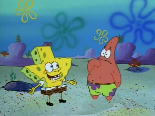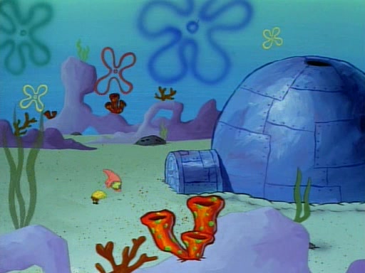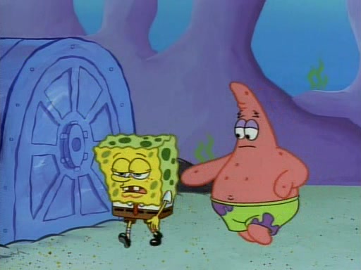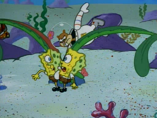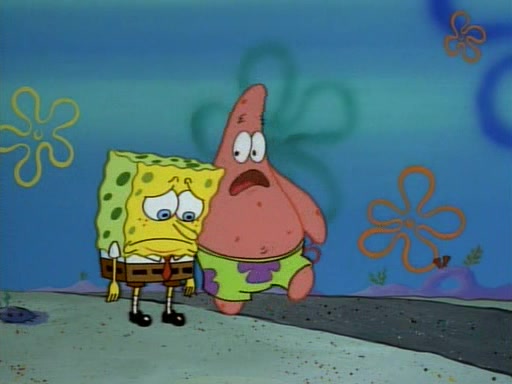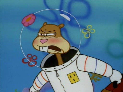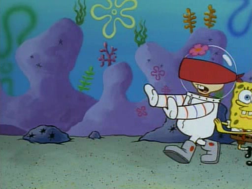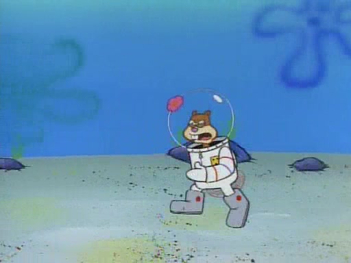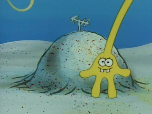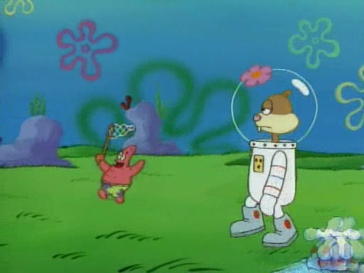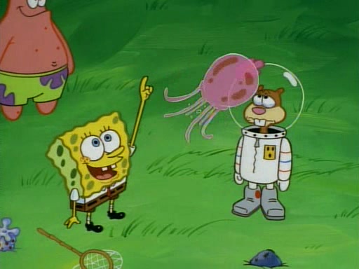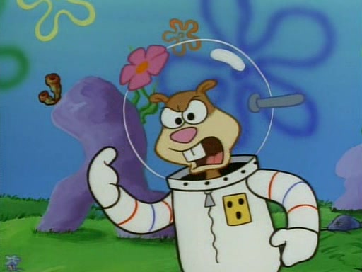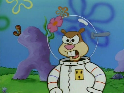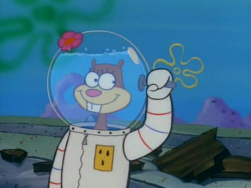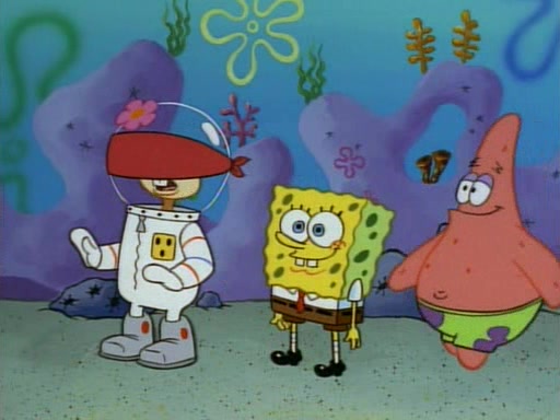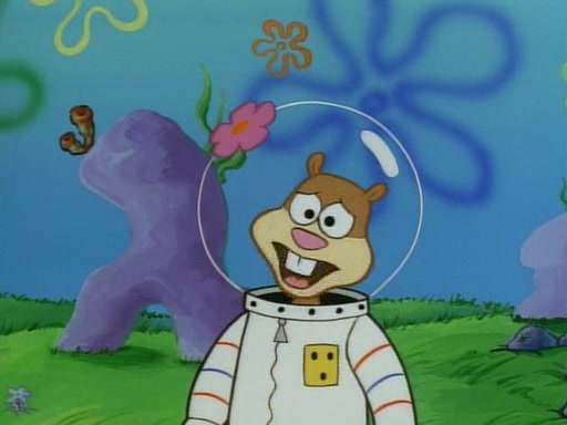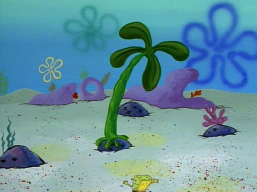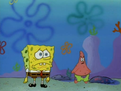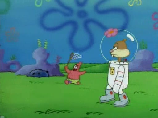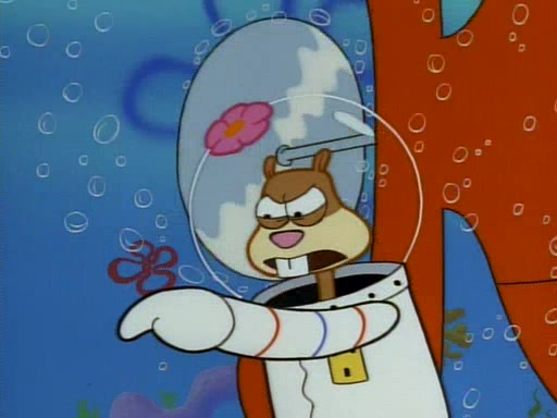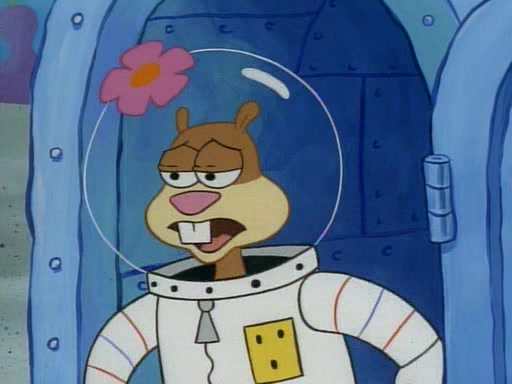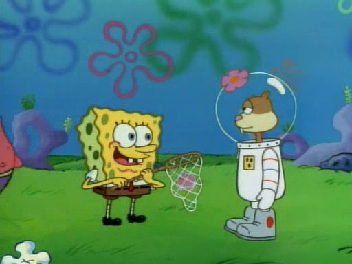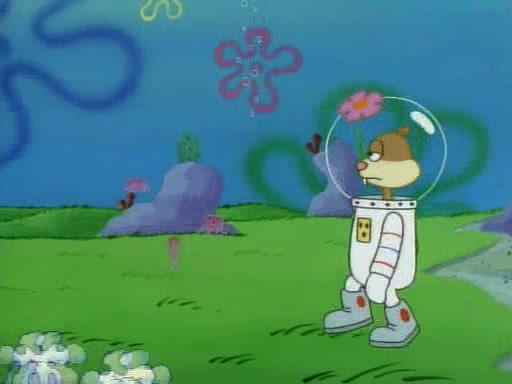 SpongeBob, Patrick and Sandy are playing in the sand at Goo Lagoon. Sandy makes some sand in the shape of Texas, which is soon destroyed by the tide. She walks off sadly, while SpongeBob tries to cheer her up and offers to play with her, but Sandy explains that she is just feeling a little homesick. SpongeBob and Patrick then blindfold her and take her to her treedome, which only adds to Sandy's depression. She begins crying, and runs off.