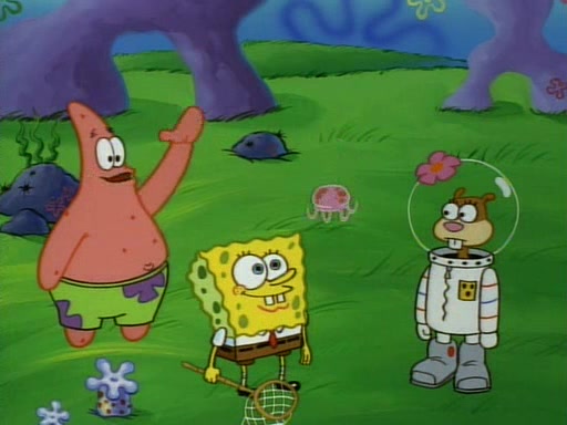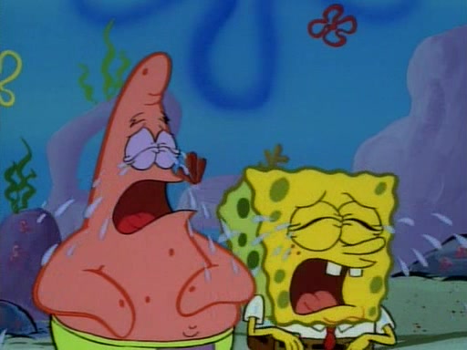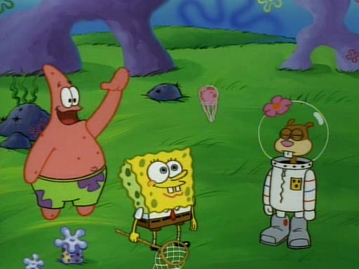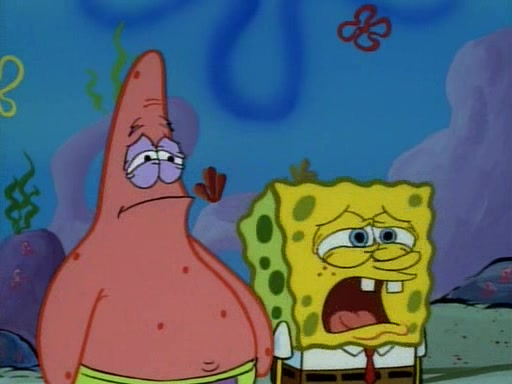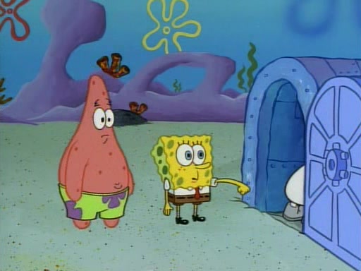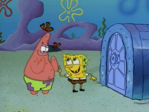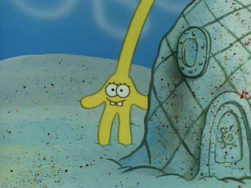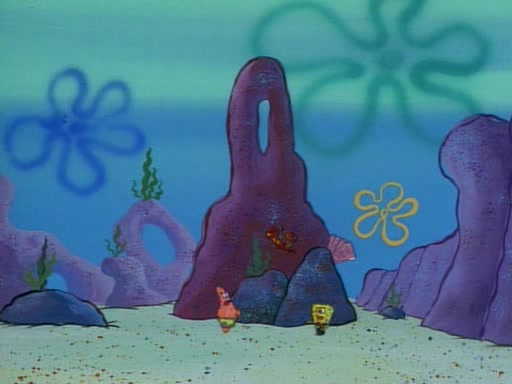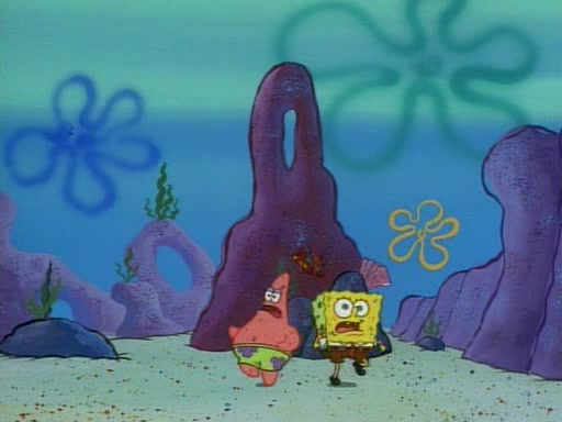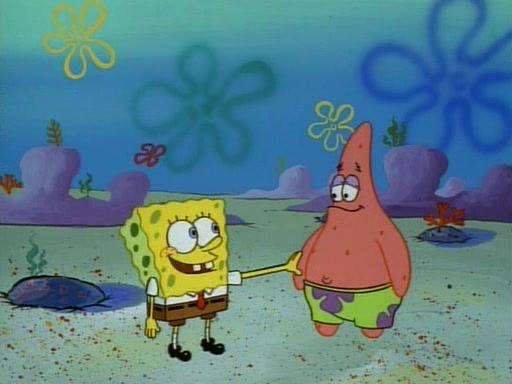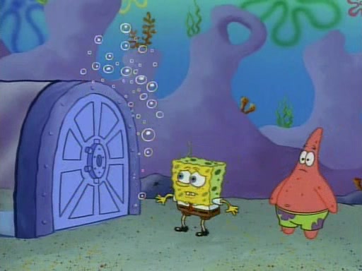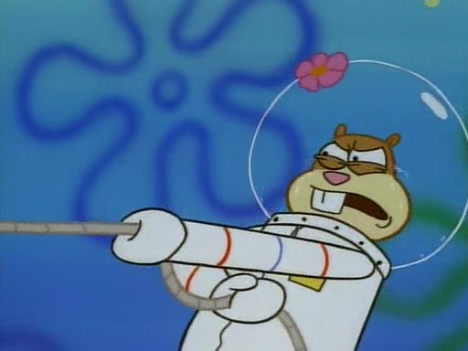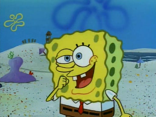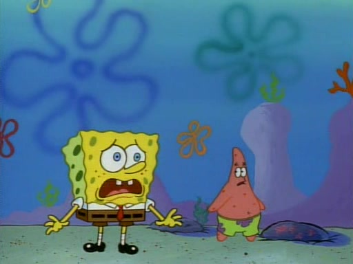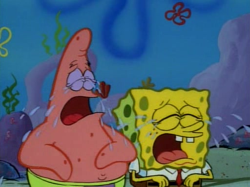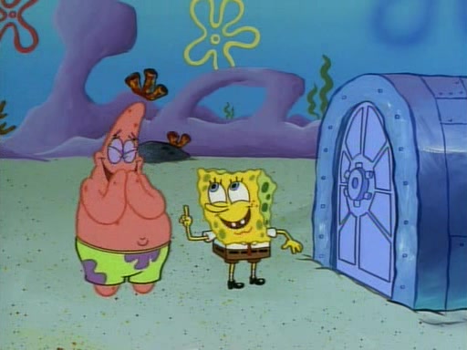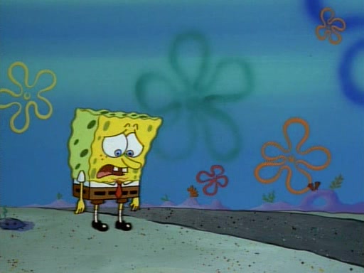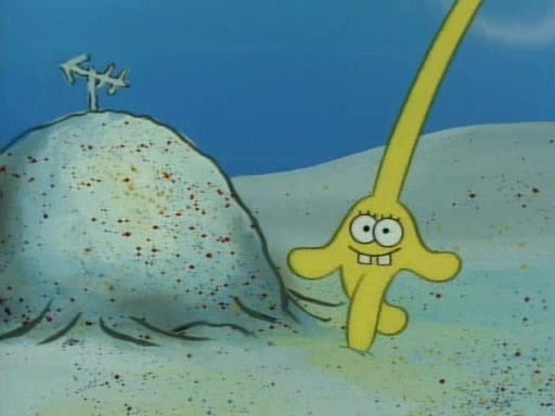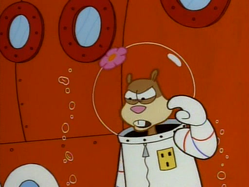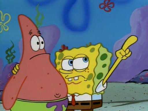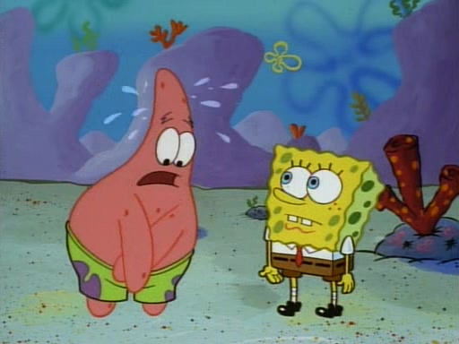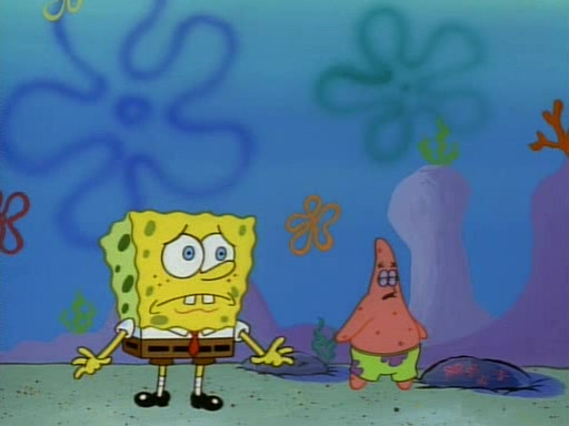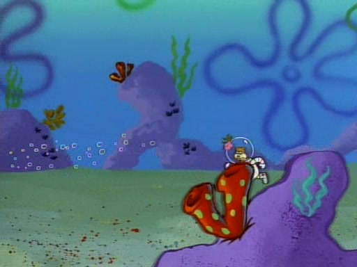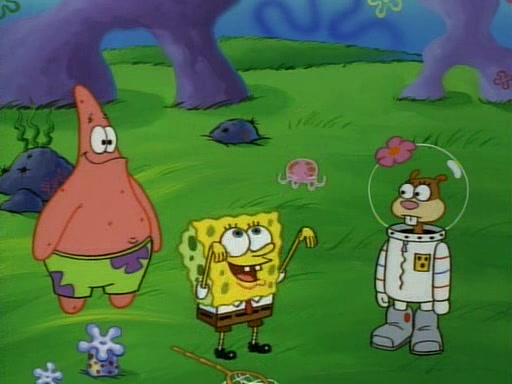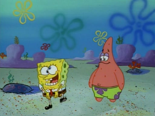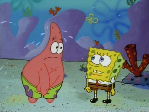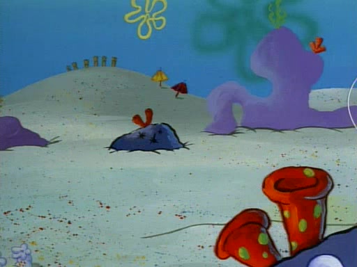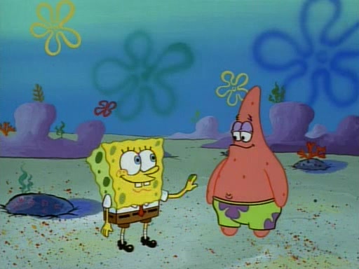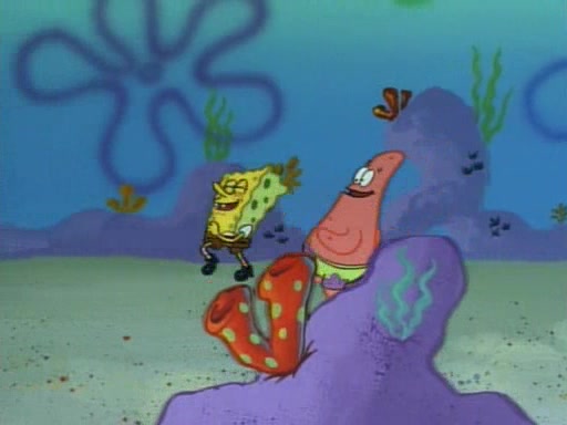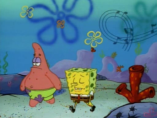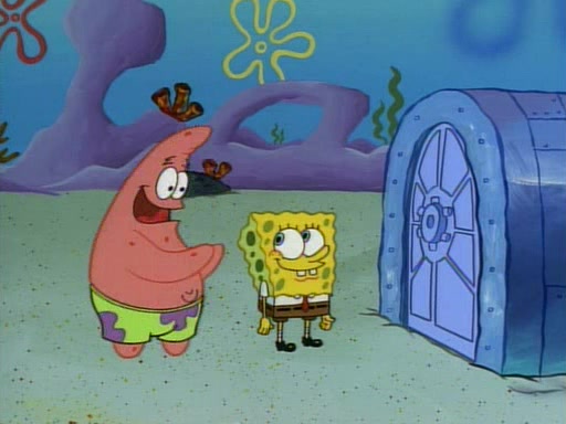 SpongeBob, Patrick and Sandy are playing in the sand at Goo Lagoon. Sandy makes some sand in the shape of Texas, which is soon destroyed by the tide. She walks off sadly, while SpongeBob tries to cheer her up and offers to play with her, but Sandy explains that she is just feeling a little homesick. SpongeBob and Patrick then blindfold her and take her to her treedome, which only adds to Sandy's depression. She begins crying, and runs off.