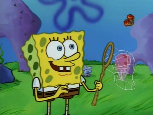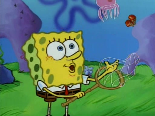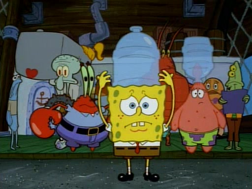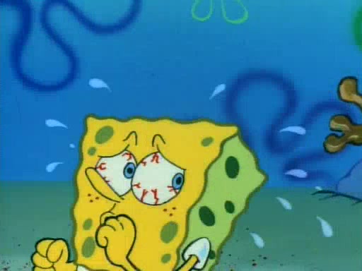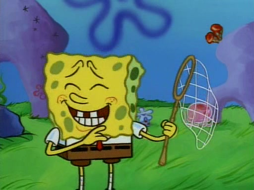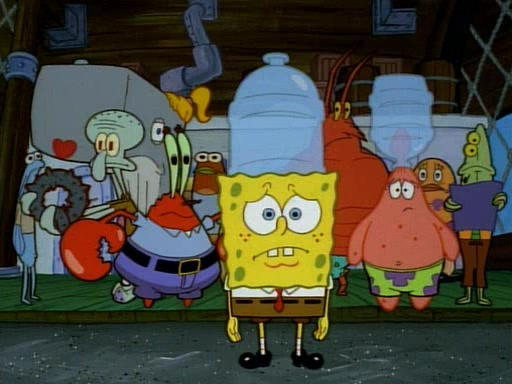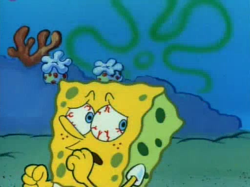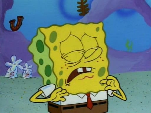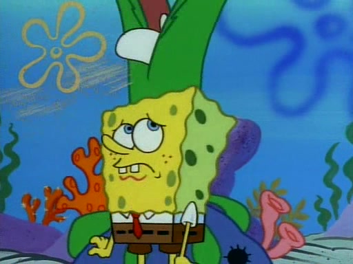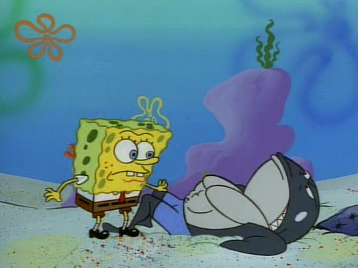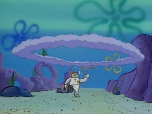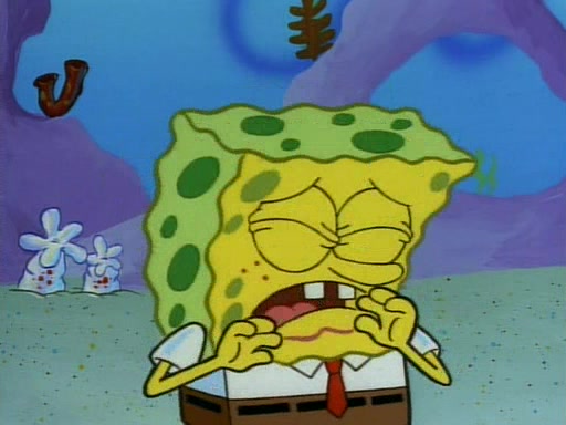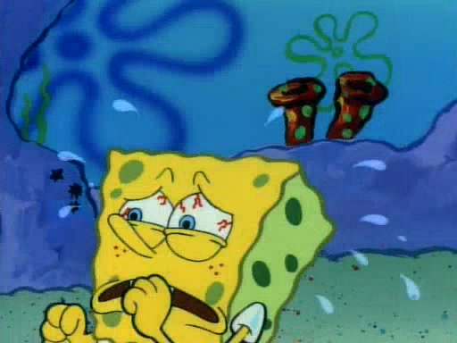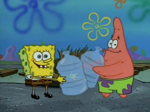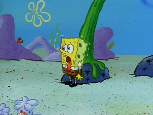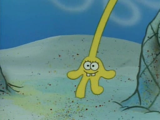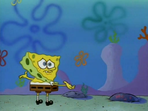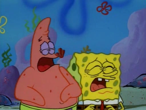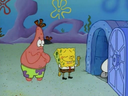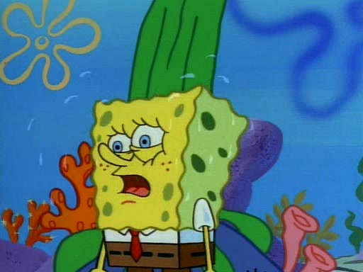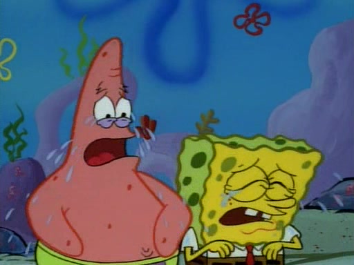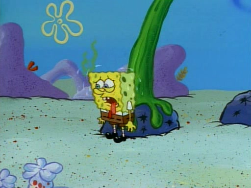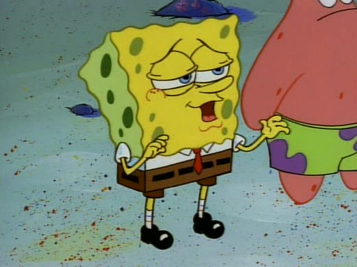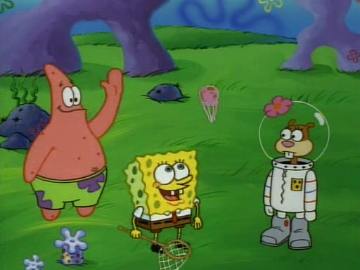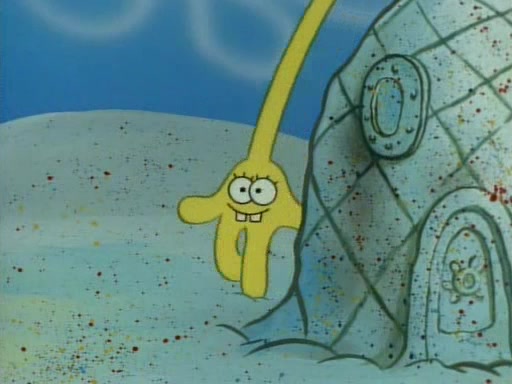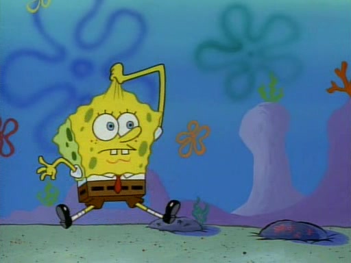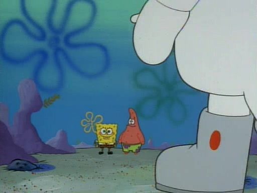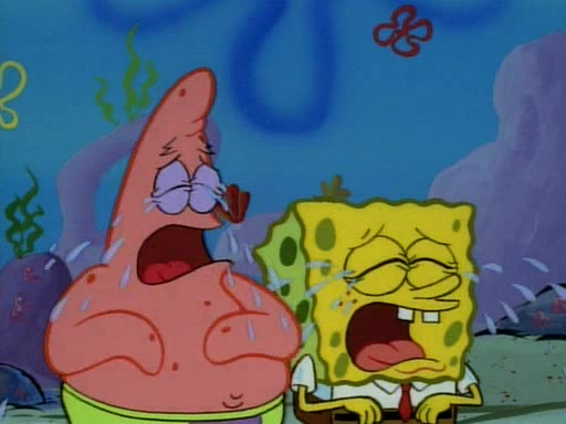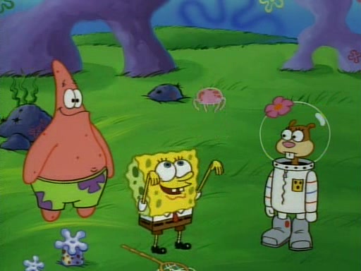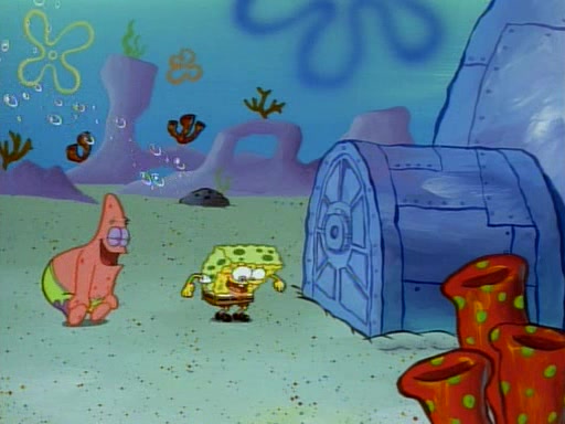 SpongeBob, Patrick and Sandy are playing in the sand at Goo Lagoon. Sandy makes some sand in the shape of Texas, which is soon destroyed by the tide. She walks off sadly, while SpongeBob tries to cheer her up and offers to play with her, but Sandy explains that she is just feeling a little homesick. SpongeBob and Patrick then blindfold her and take her to her treedome, which only adds to Sandy's depression. She begins crying, and runs off.