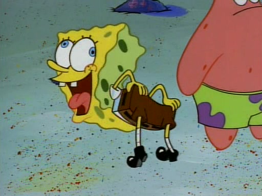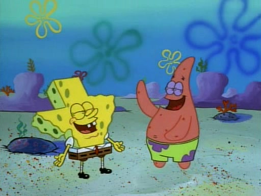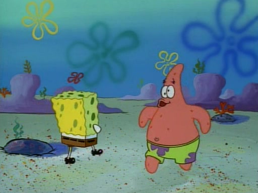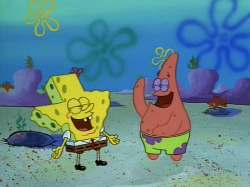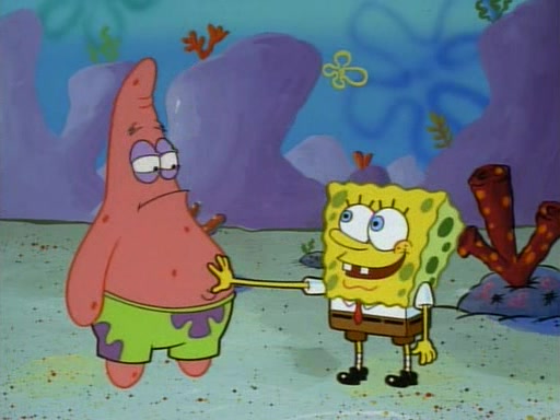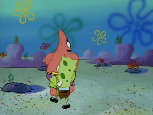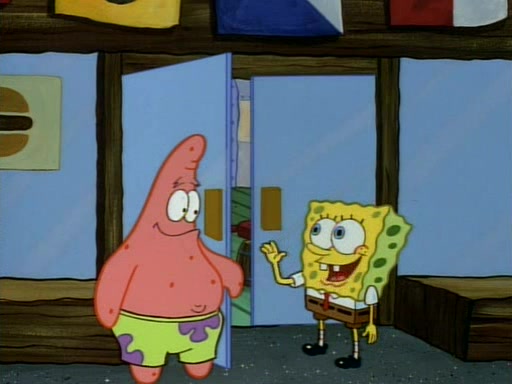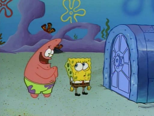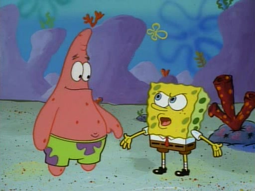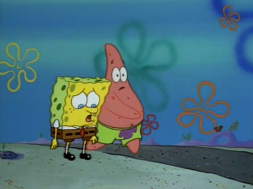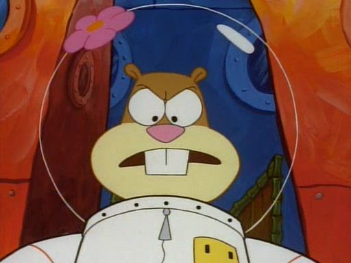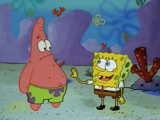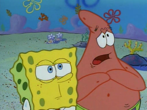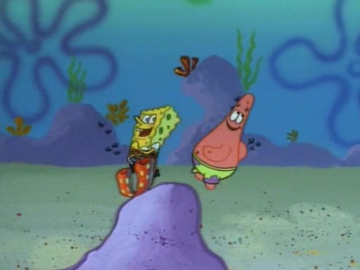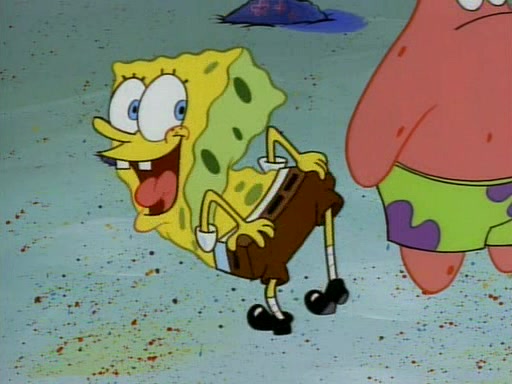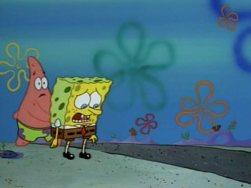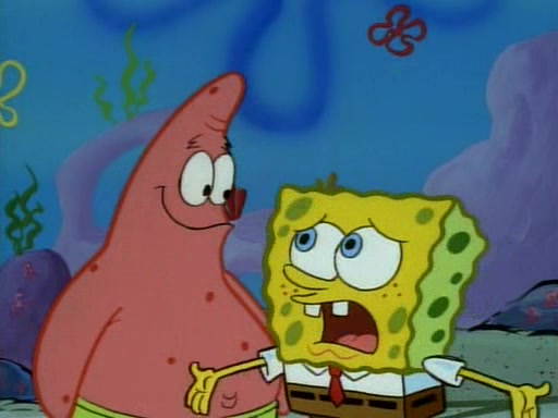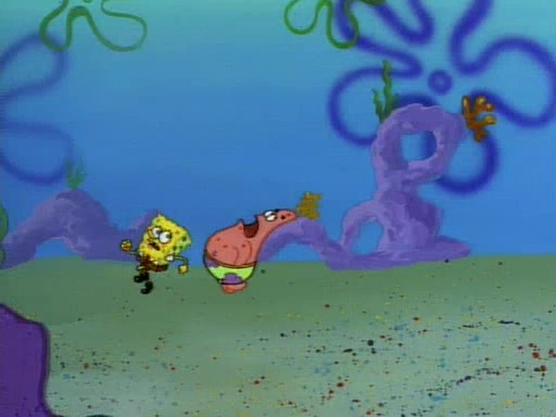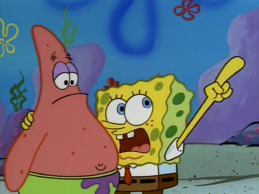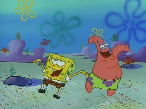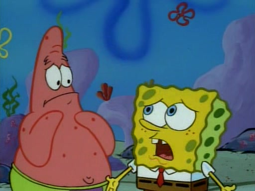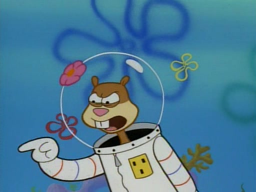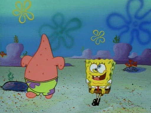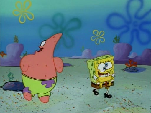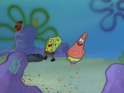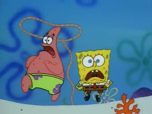 Suddenly, the bus comes back and Sandy returns, offended by Patrick's remark. Patrick then asks if he can say that people from Texas are dumb, which angers her even further. This gives SpongeBob an idea to lure Sandy to the Krusty Krab. He and Patrick continue insulting Texas, and Sandy begins chasing them. They intend to lead Sandy to her surprise party at the Krusty Krab. Patrick continuously insults Texas, thinking Sandy is too slow to catch up to them, only to soon realize that she is catching up to them.
