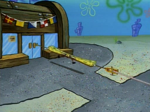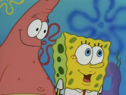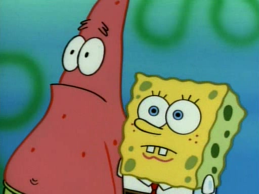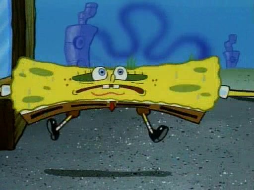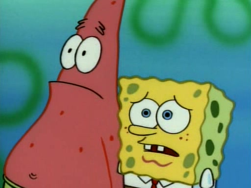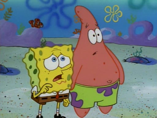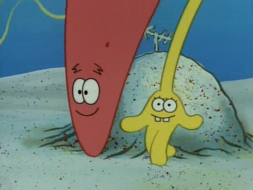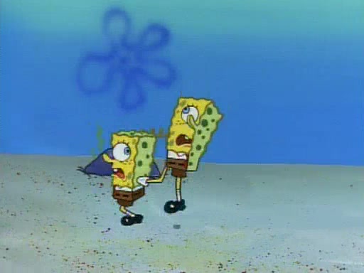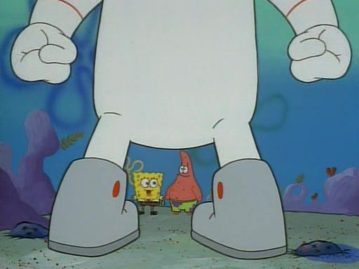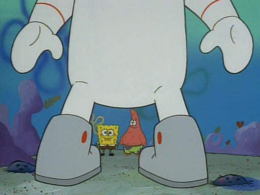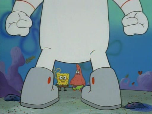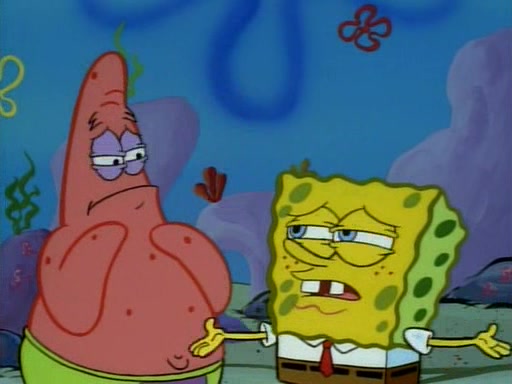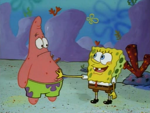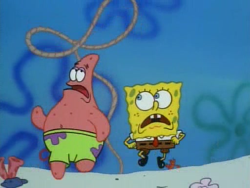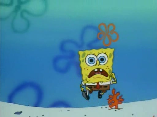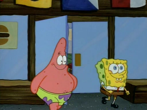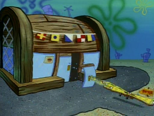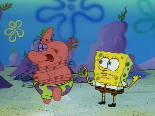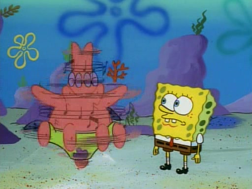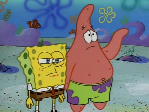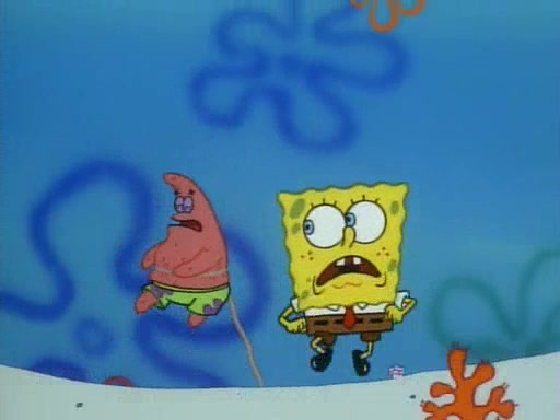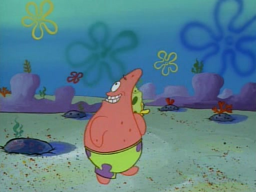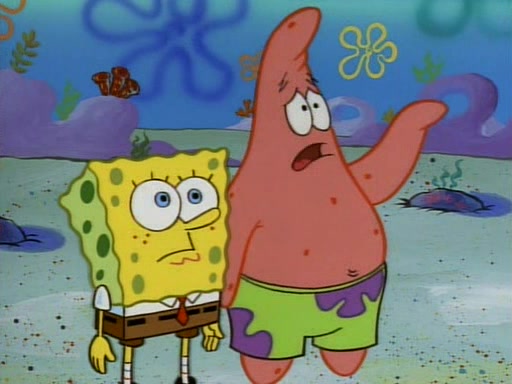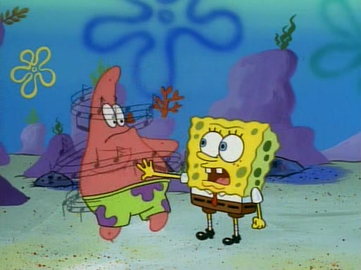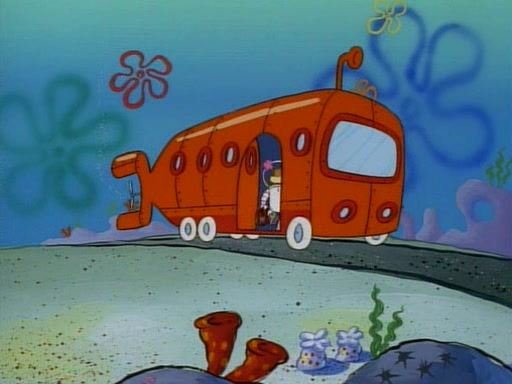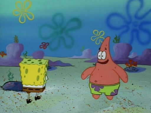 Suddenly, the bus comes back and Sandy returns, offended by Patrick's remark. Patrick then asks if he can say that people from Texas are dumb, which angers her even further. This gives SpongeBob an idea to lure Sandy to the Krusty Krab. He and Patrick continue insulting Texas, and Sandy begins chasing them. They intend to lead Sandy to her surprise party at the Krusty Krab. Patrick continuously insults Texas, thinking Sandy is too slow to catch up to them, only to soon realize that she is catching up to them.