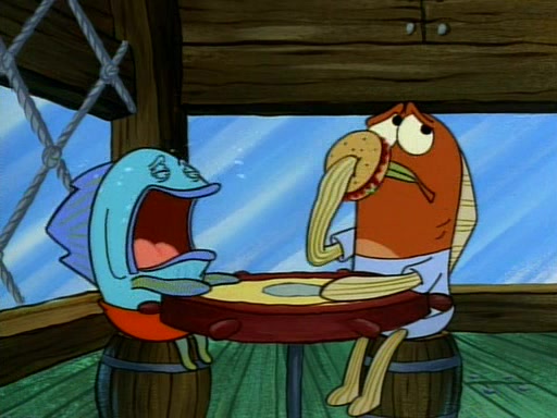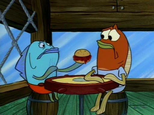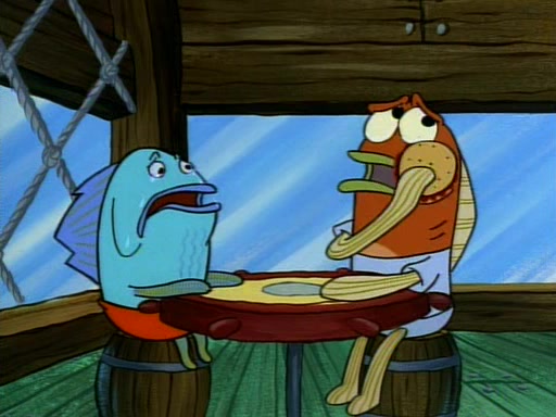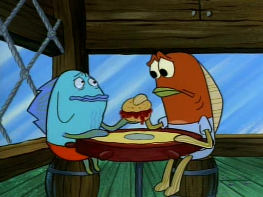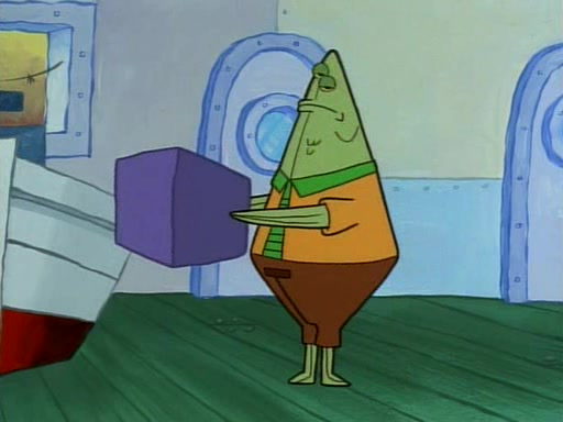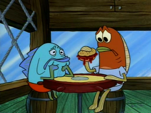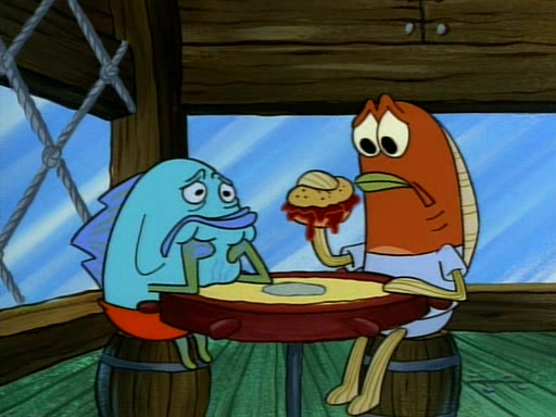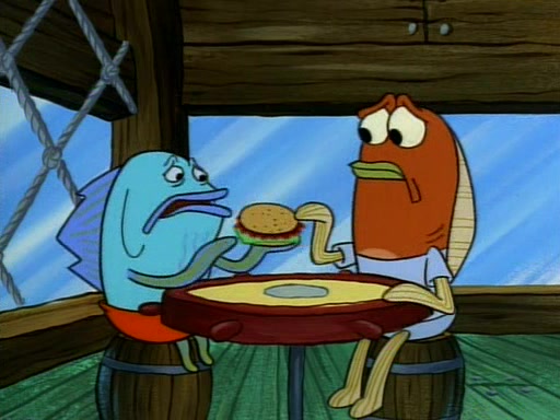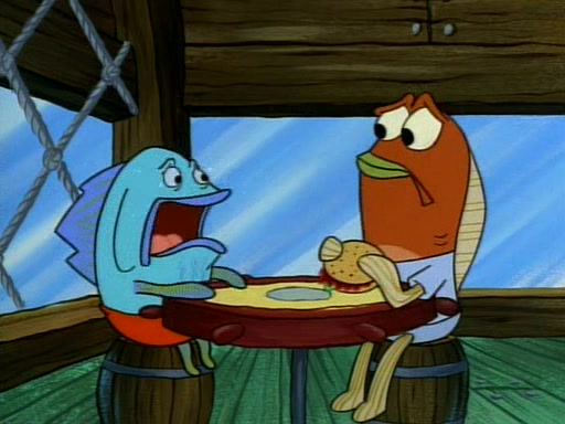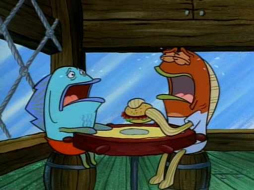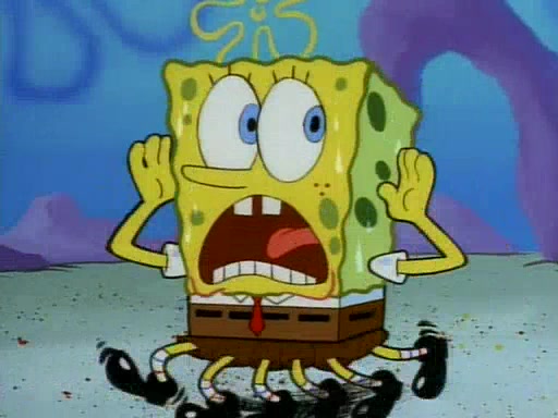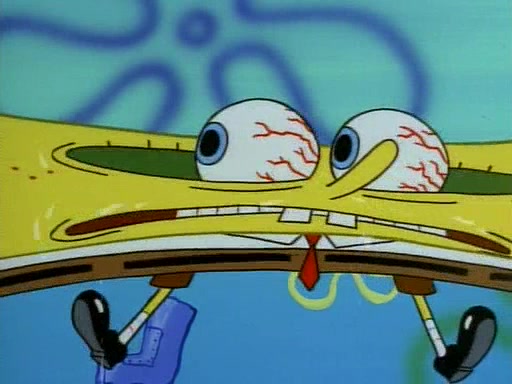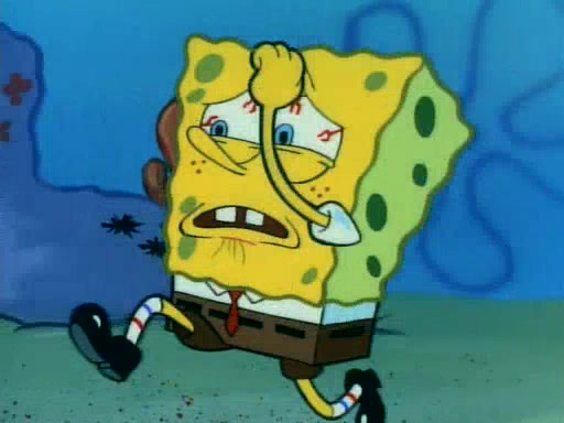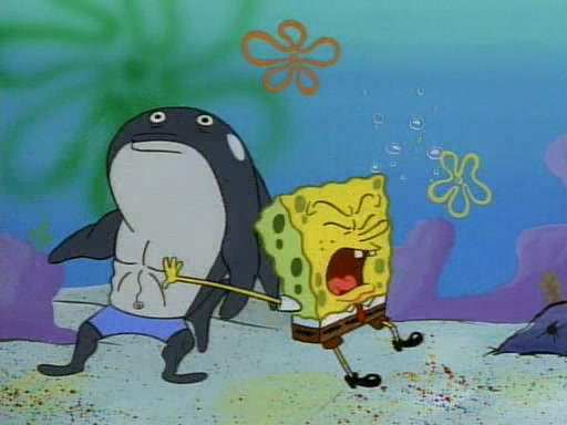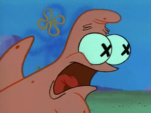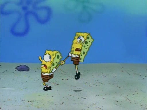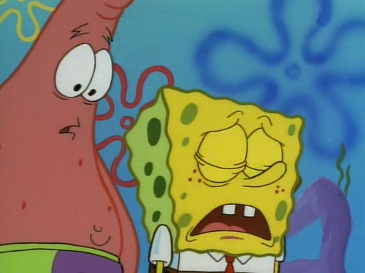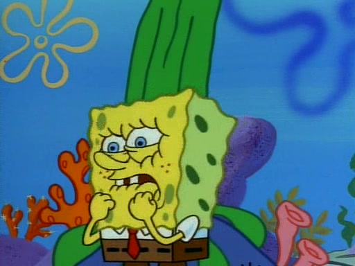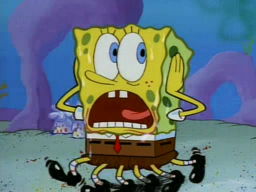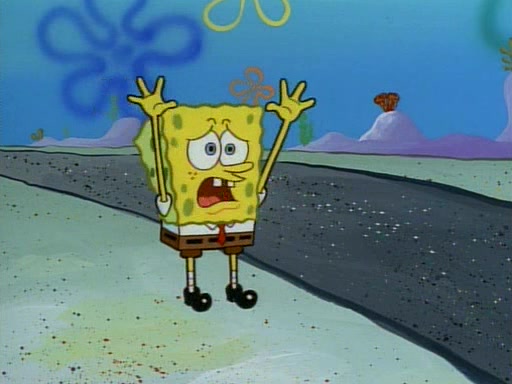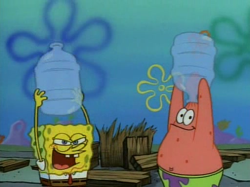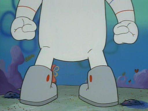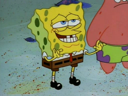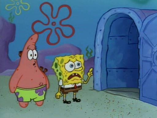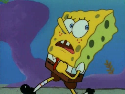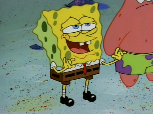 Suddenly, the bus comes back and Sandy returns, offended by Patrick's remark. Patrick then asks if he can say that people from Texas are dumb, which angers her even further. This gives SpongeBob an idea to lure Sandy to the Krusty Krab. He and Patrick continue insulting Texas, and Sandy begins chasing them. They intend to lead Sandy to her surprise party at the Krusty Krab. Patrick continuously insults Texas, thinking Sandy is too slow to catch up to them, only to soon realize that she is catching up to them.
