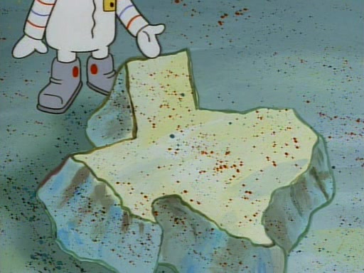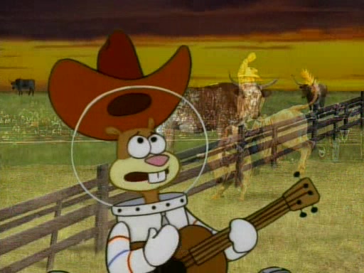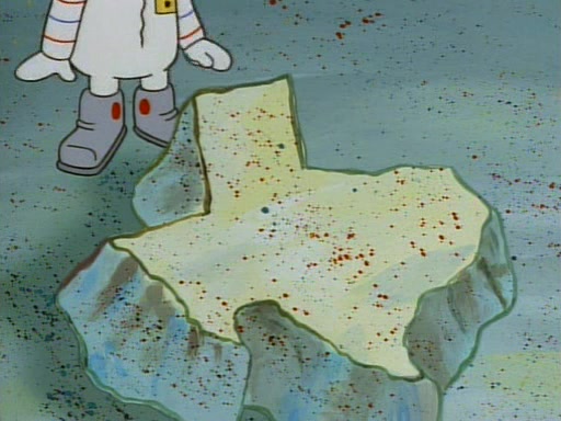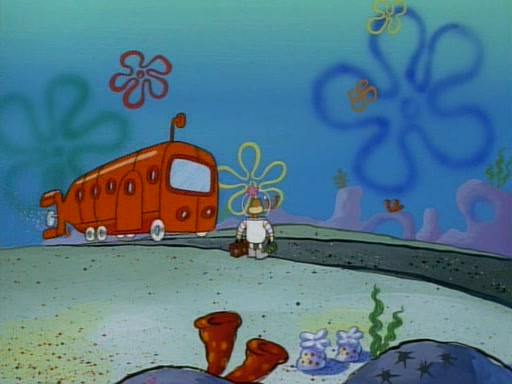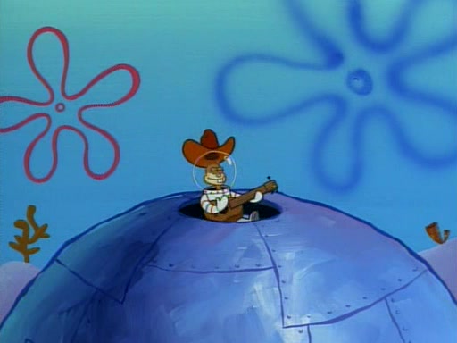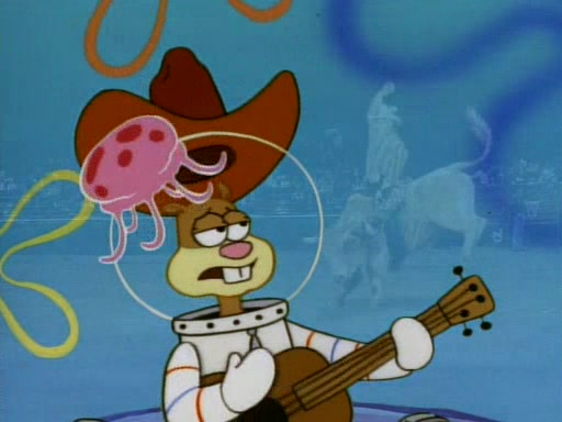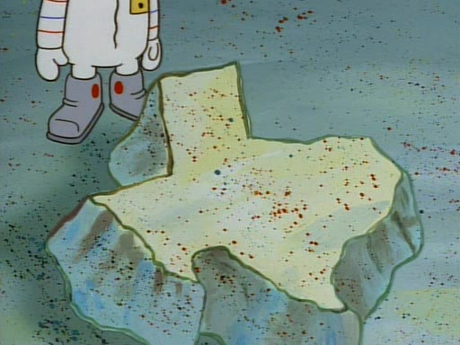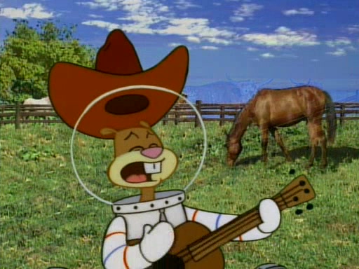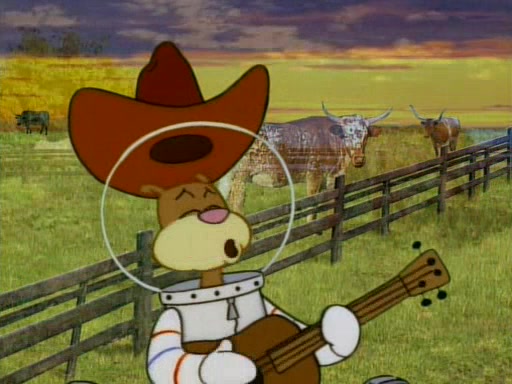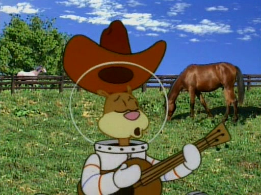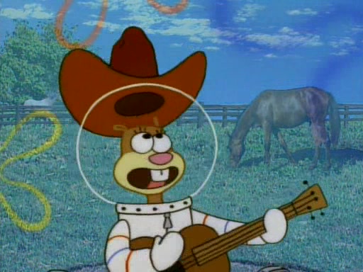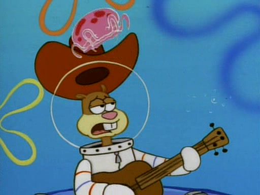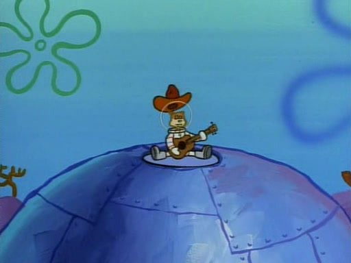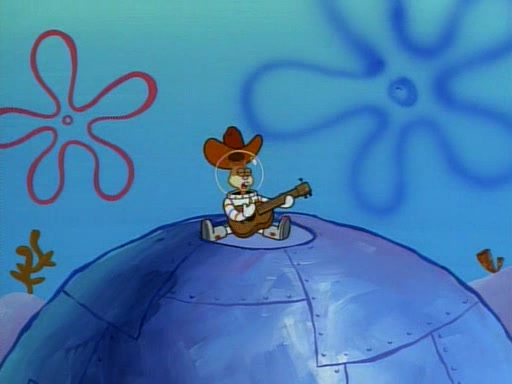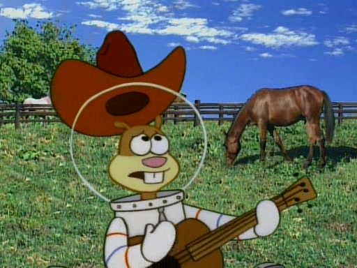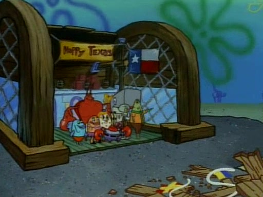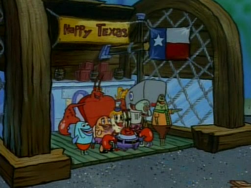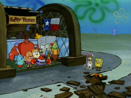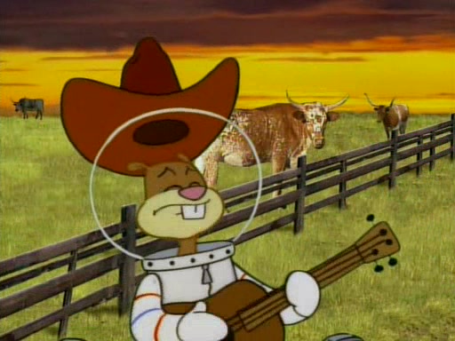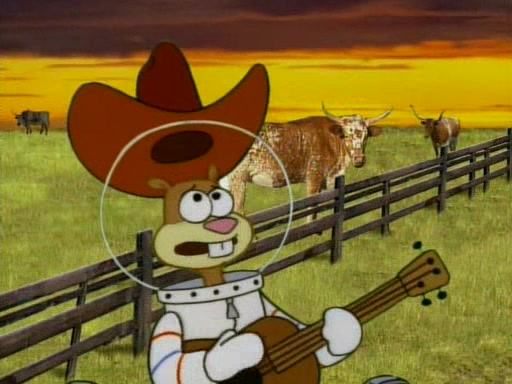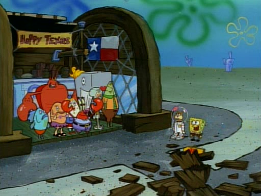 Both SpongeBob and Patrick are confused, until they hear Sandy singing a song from on top of her treedome about how she misses Texas by singing. They decide to cheer up Sandy by throwing a Texas-themed party for her at the Krusty Krab. They go to Sandy's house to ask her to come to the Krusty Krab with them, but she tells them that she is leaving Bikini Bottom to move back to Texas. SpongeBob is shocked by this, and tries to convince her to go to the Krusty Krab, but fails. Sandy gets into a bus out of Bikini Bottom and leaves. Patrick says, "What's so great about dumb ol' Texas?".